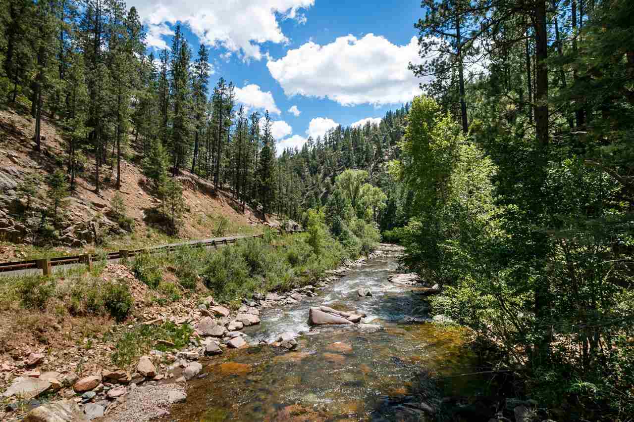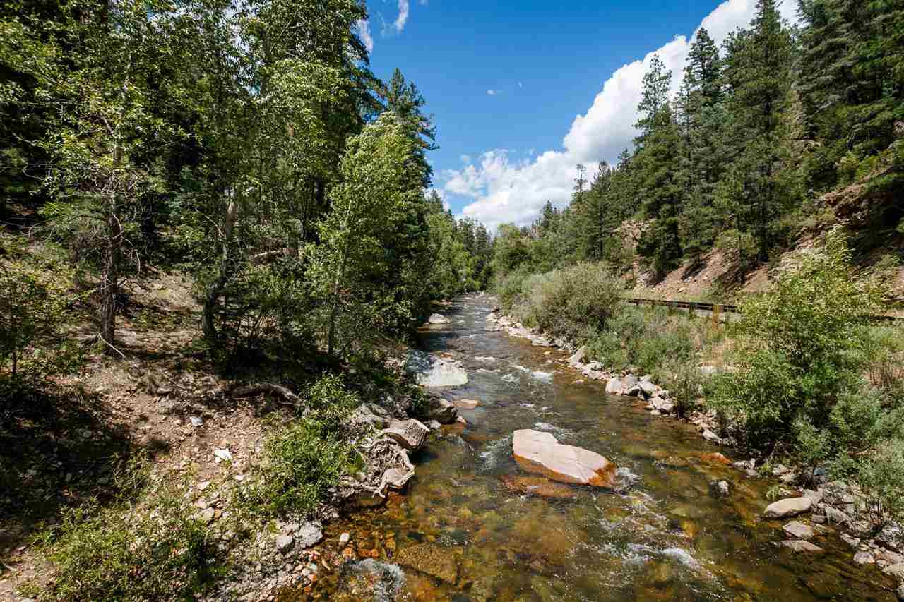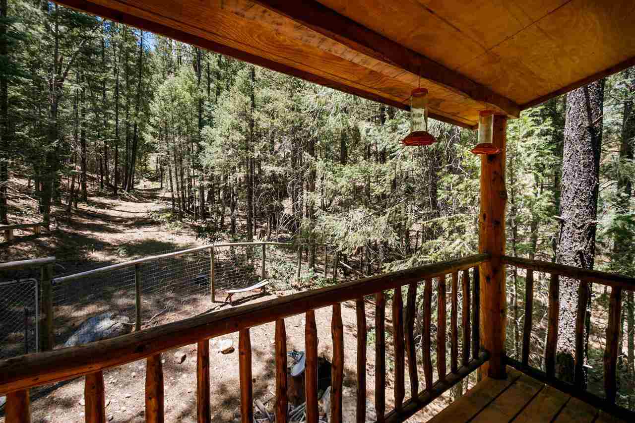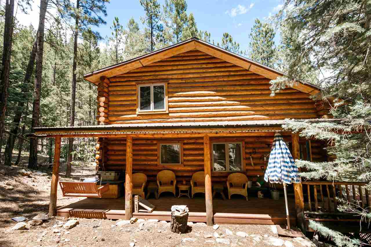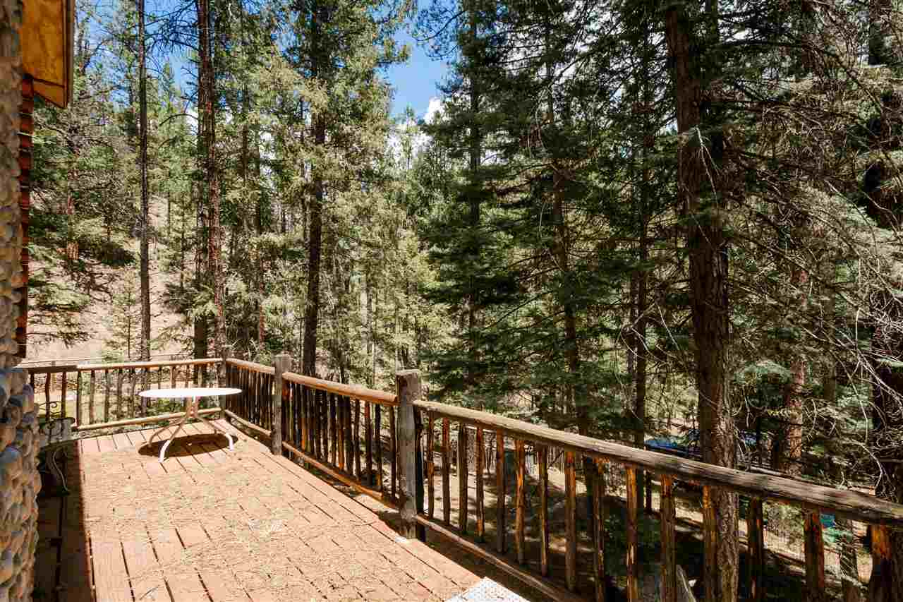 Rare Log Cabin Listing in the heart of the Pecos Canyon that includes the 3/4 acre lot. 1579 NM Hwy 63 was built by Richard Roybal of Pecos Trail Contractor, and has an open concept living/dining/kitchen with River Rock fireplace, vaulted ceiling, covered porch, laundry area and basement storage area. One bedroom and bath downstairs, one bed, bath and office with outdoor balcony, upstairs. The lot adjoins the Santa Fe National Forest, all appliances included and furnishings are available. Fully fenced for a dog, wonderful grassed play area, Granite kitchen counters wrap around porch. Located just before Cathedral Rock, a short distance past Windy bridge. Access for fishing along the Pecos River included, located behind an electric gate. A true destination for weekend fun or year round living. 40 minutes east of Santa Fe in the Pecos Canyon.