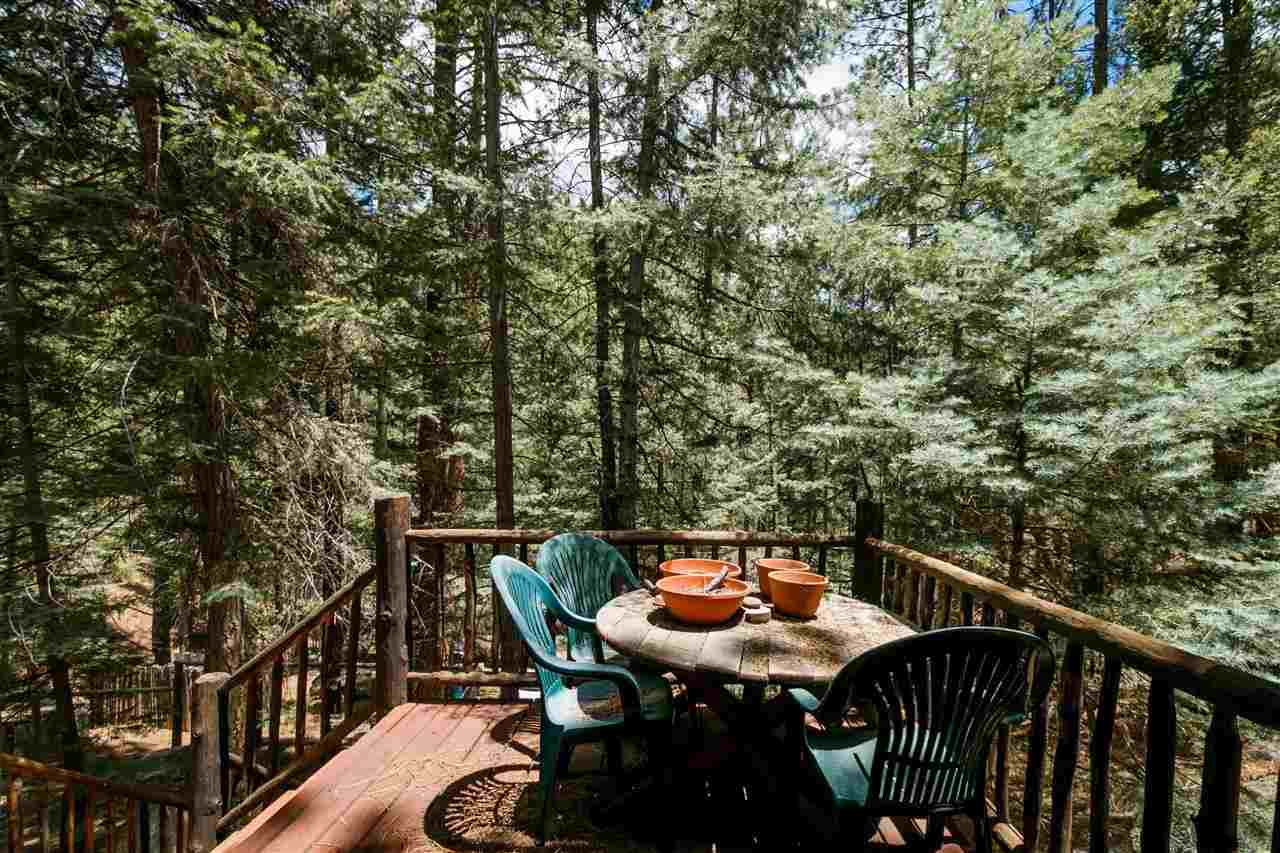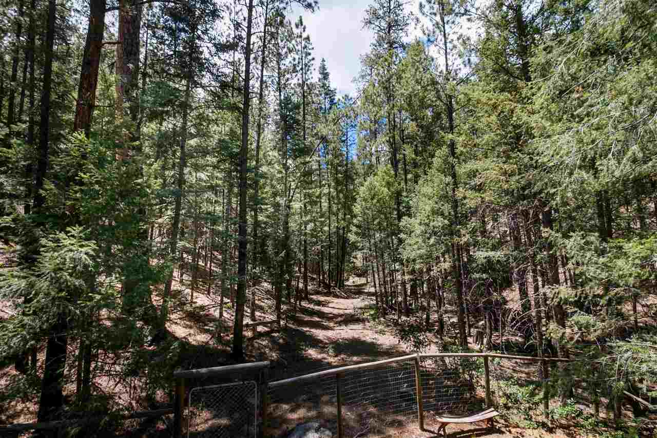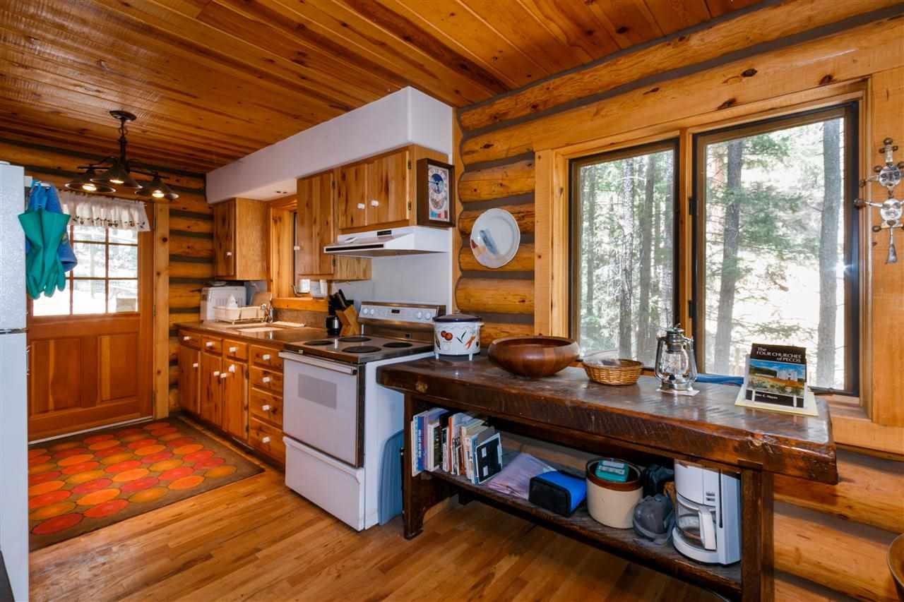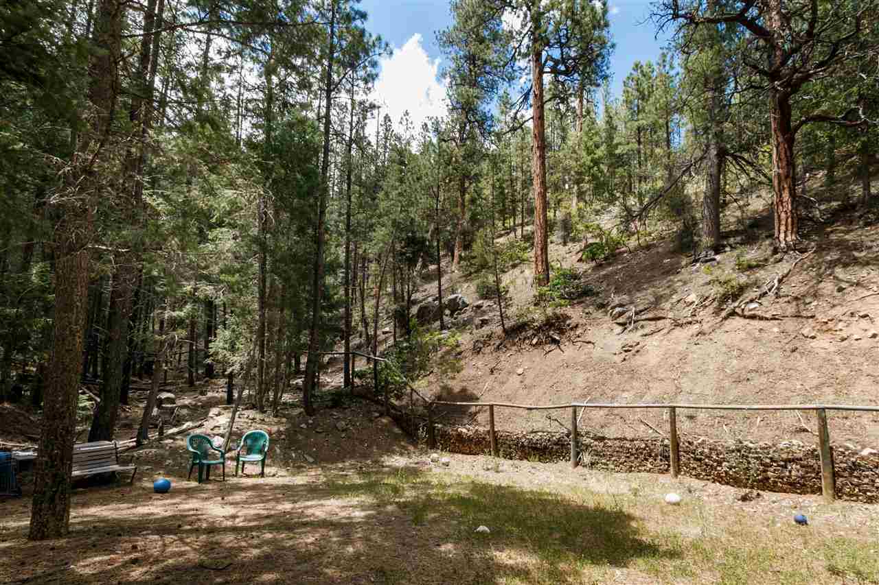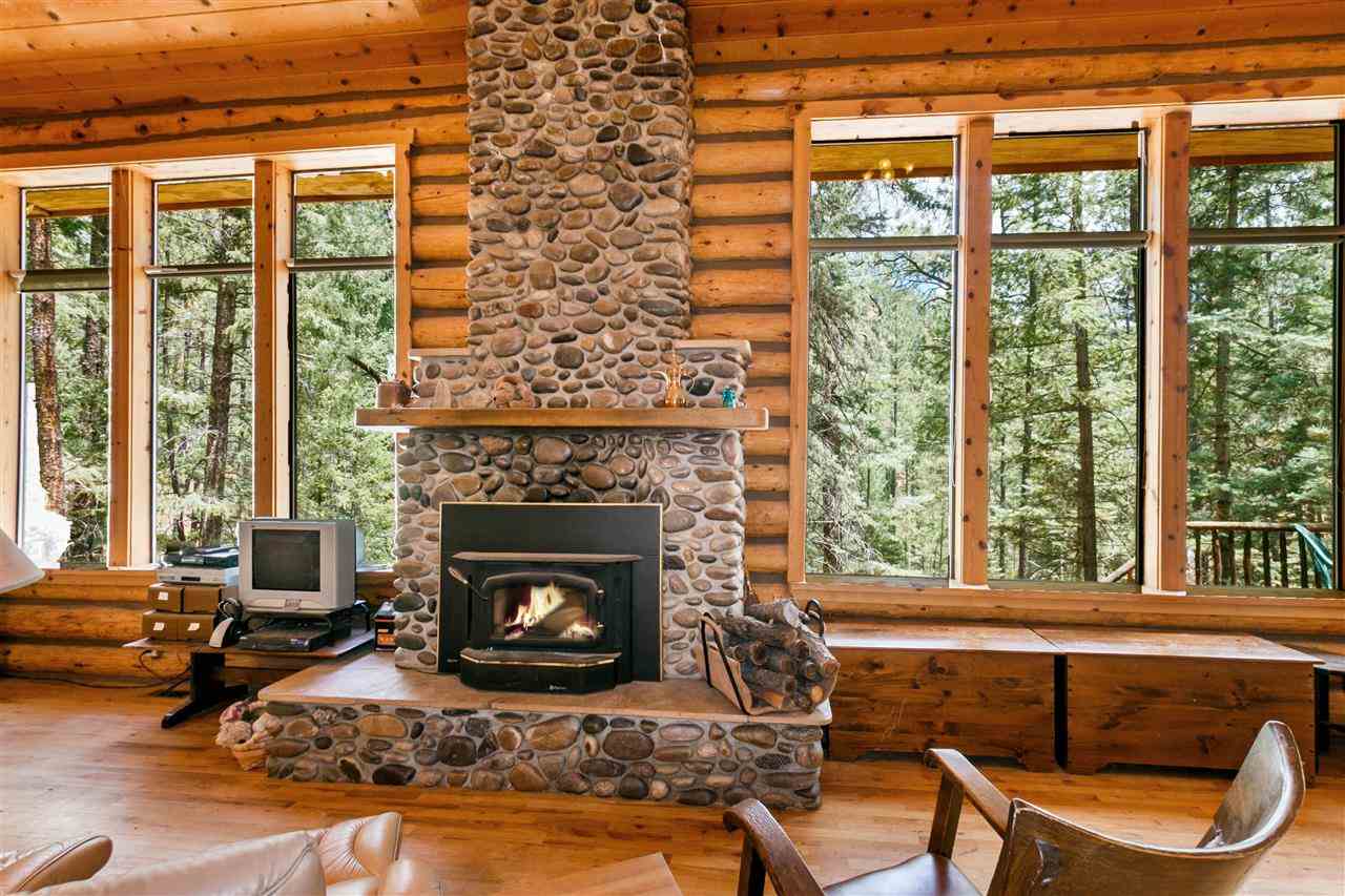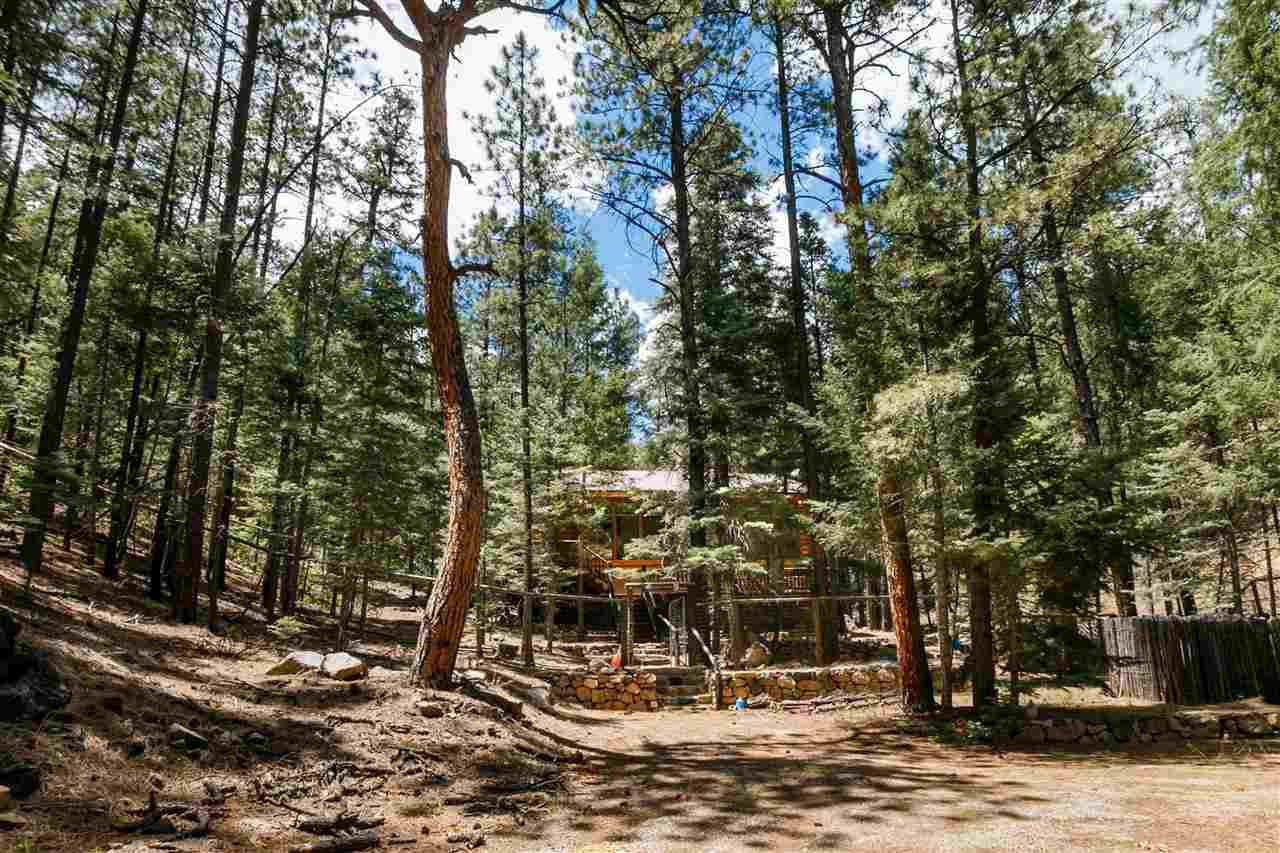 Rare Log Cabin Listing in the heart of the Pecos Canyon that includes the 3/4 acre lot. 1579 NM Hwy 63 was built by Richard Roybal of Pecos Trail Contractor, and has an open concept living/dining/kitchen with River Rock fireplace, vaulted ceiling, covered porch, laundry area and basement storage area. One bedroom and bath downstairs, one bed, bath and office with outdoor balcony, upstairs. The lot adjoins the Santa Fe National Forest, all appliances included and furnishings are available. Fully fenced for a dog, wonderful grassed play area, Granite kitchen counters wrap around porch. Located just before Cathedral Rock, a short distance past Windy bridge. Access for fishing along the Pecos River included, located behind an electric gate. A true destination for weekend fun or year round living. 40 minutes east of Santa Fe in the Pecos Canyon.
