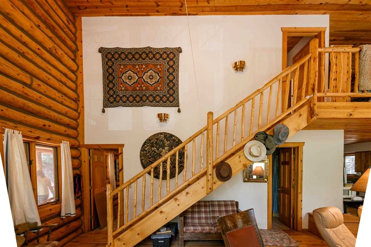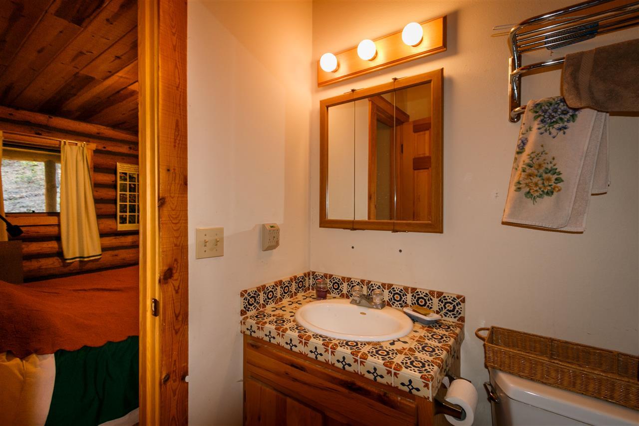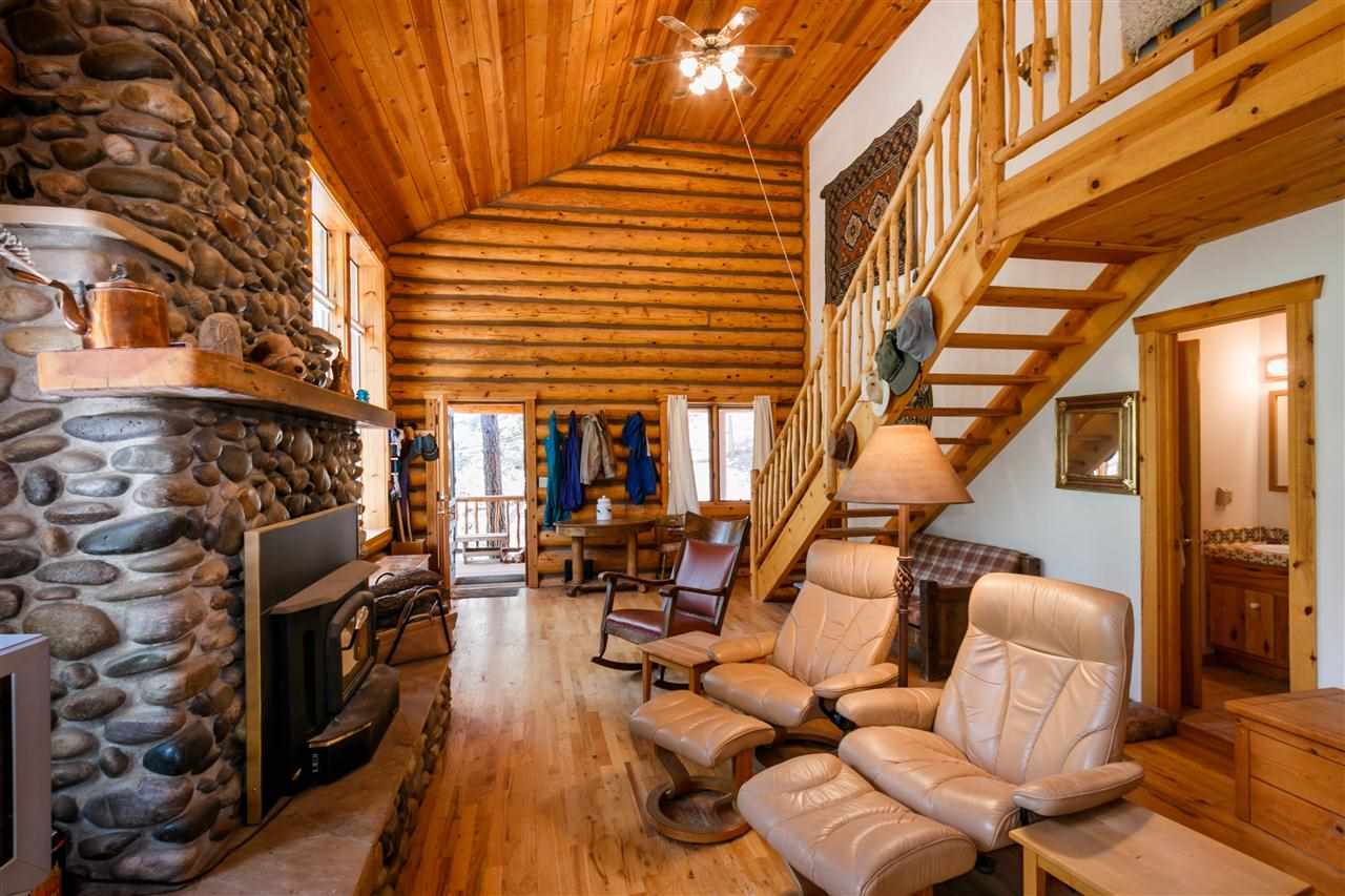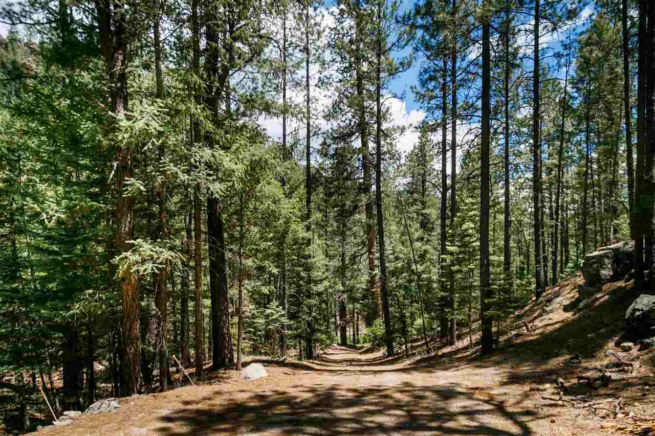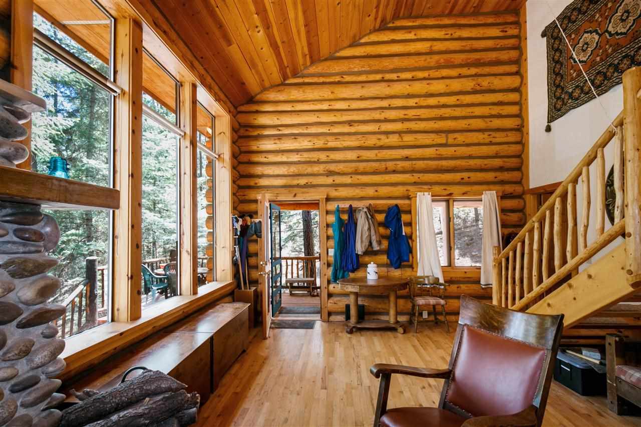 Rare Log Cabin Listing in the heart of the Pecos Canyon that includes the 3/4 acre lot. 1579 NM Hwy 63 was built by Richard Roybal of Pecos Trail Contractor, and has an open concept living/dining/kitchen with River Rock fireplace, vaulted ceiling, covered porch, laundry area and basement storage area. One bedroom and bath downstairs, one bed, bath and office with outdoor balcony, upstairs. The lot adjoins the Santa Fe National Forest, all appliances included and furnishings are available. Fully fenced for a dog, wonderful grassed play area, Granite kitchen counters wrap around porch. Located just before Cathedral Rock, a short distance past Windy bridge. Access for fishing along the Pecos River included, located behind an electric gate. A true destination for weekend fun or year round living. 40 minutes east of Santa Fe in the Pecos Canyon.
