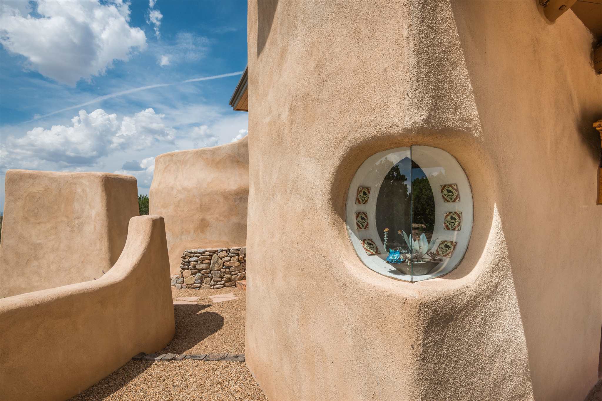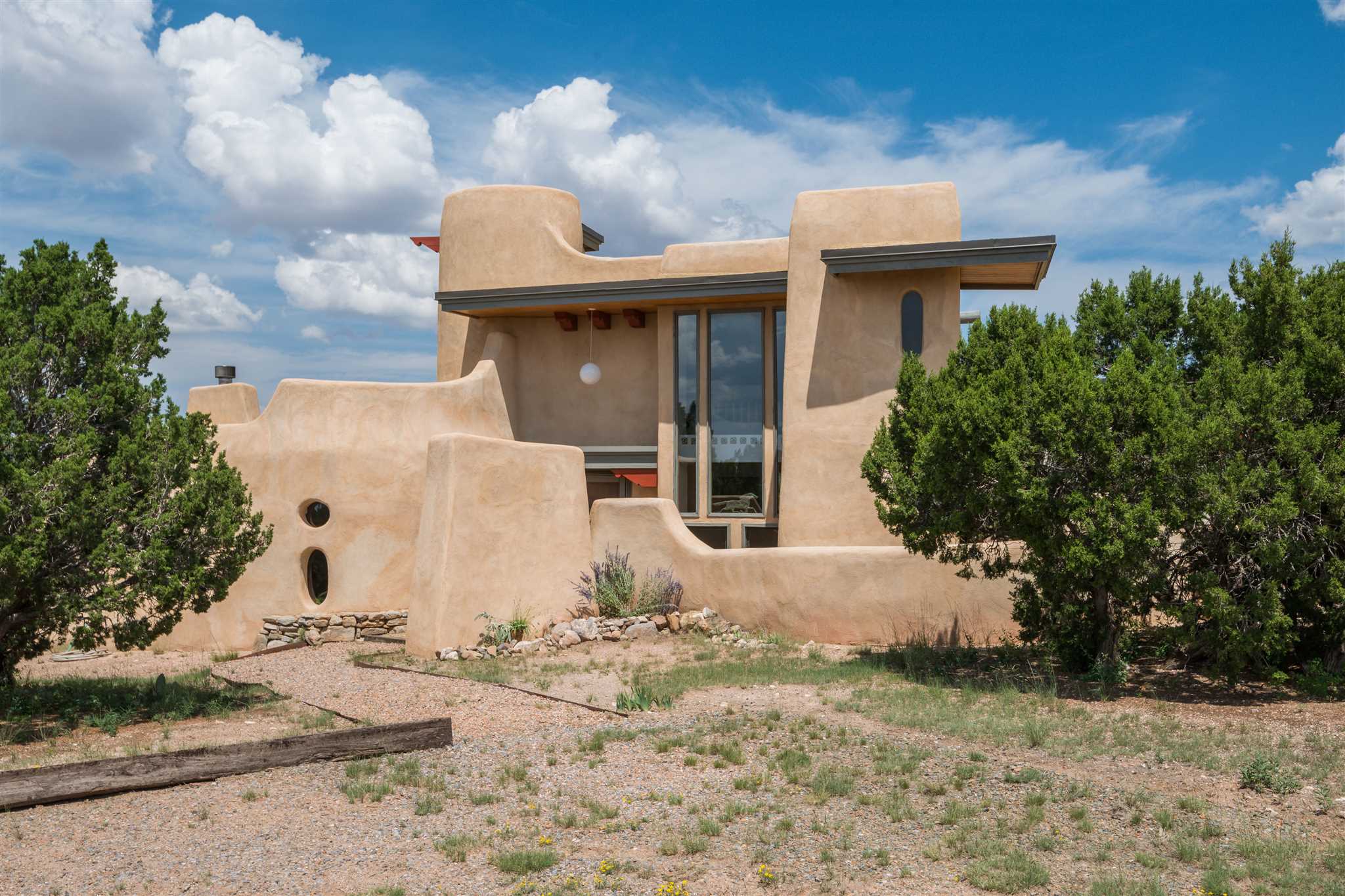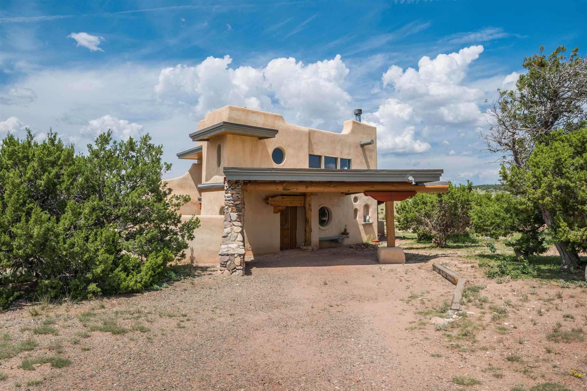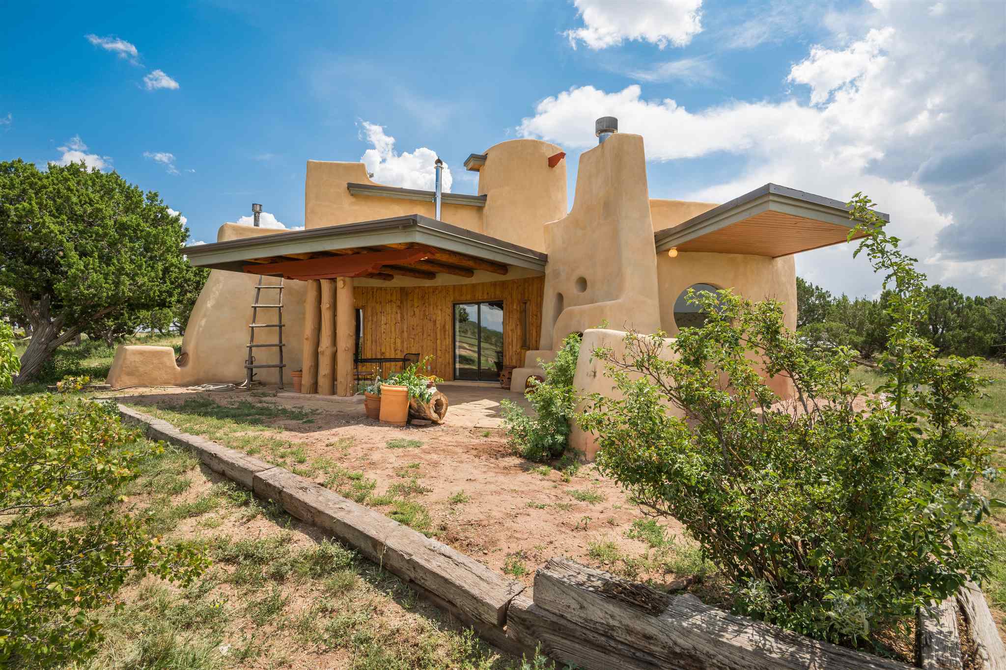 Nestled among beautiful mature trees and a verdant green landscape, this custom-built adobe home boasts breathtaking mountain views on over 77 acres of gentle rolling terrain. Designed by the renowned Swedish architect, Ivor Williams, this fascinating property abounds with whimsical architectural details, such as curved walls, round windows, and a spiral staircase leading to the interior loft. As seen in the artistic renderings, the beauty and functionality of the adobe architecture is prominently displayed throughout this one-of-a-kind home. Built in 2000, this 2-bedroom, 2-bathroom home also includes a large loft space or office,a detached workshop, horse shelter and an outdoor patio. The home has been lovingly updated by the current owners and includes new kitchen appliances, gorgeous granite counter tops, and a new roof installed over existing foam roof in 2016. Filled with charm and character, this property is ideal for the horse enthusiast, the artist or author seeking solitude, or, as the perfect family retreat for relaxing weekend getaways. Close to Rockin' Horse Ranch Indoor Arena for English dressage, cow cutting, and other equestrian events.