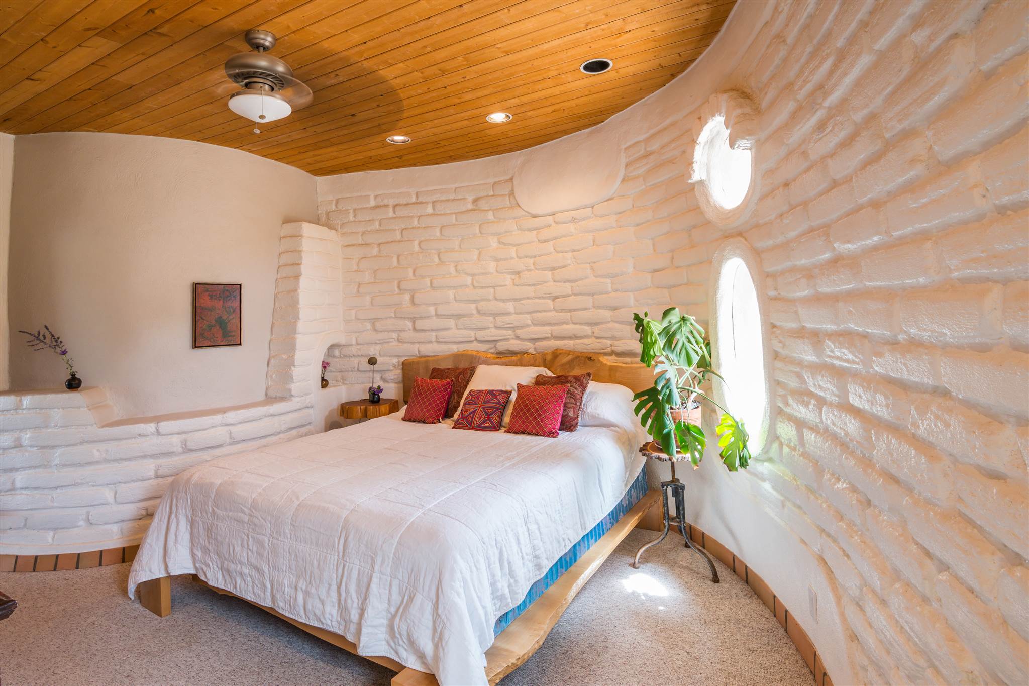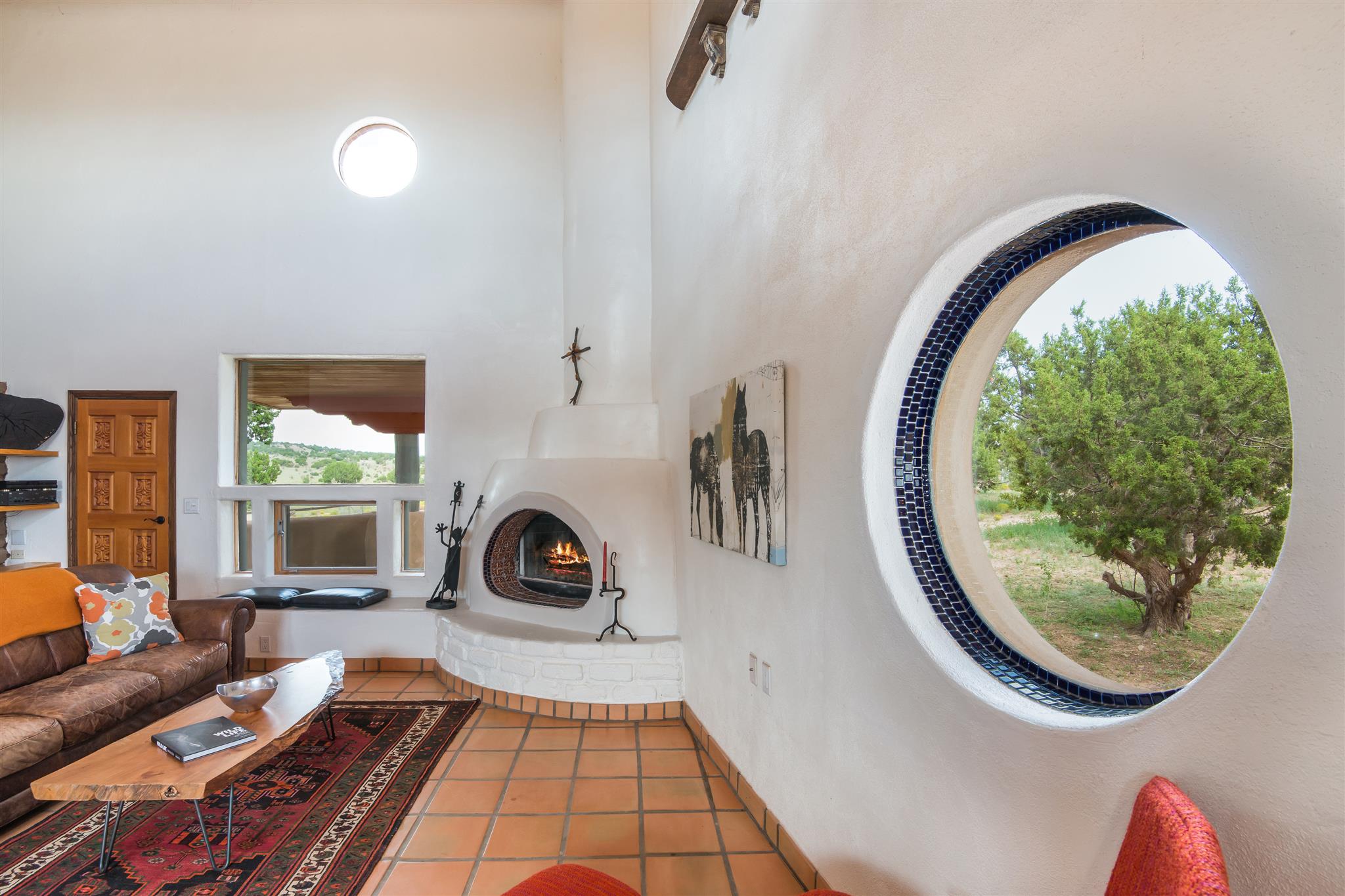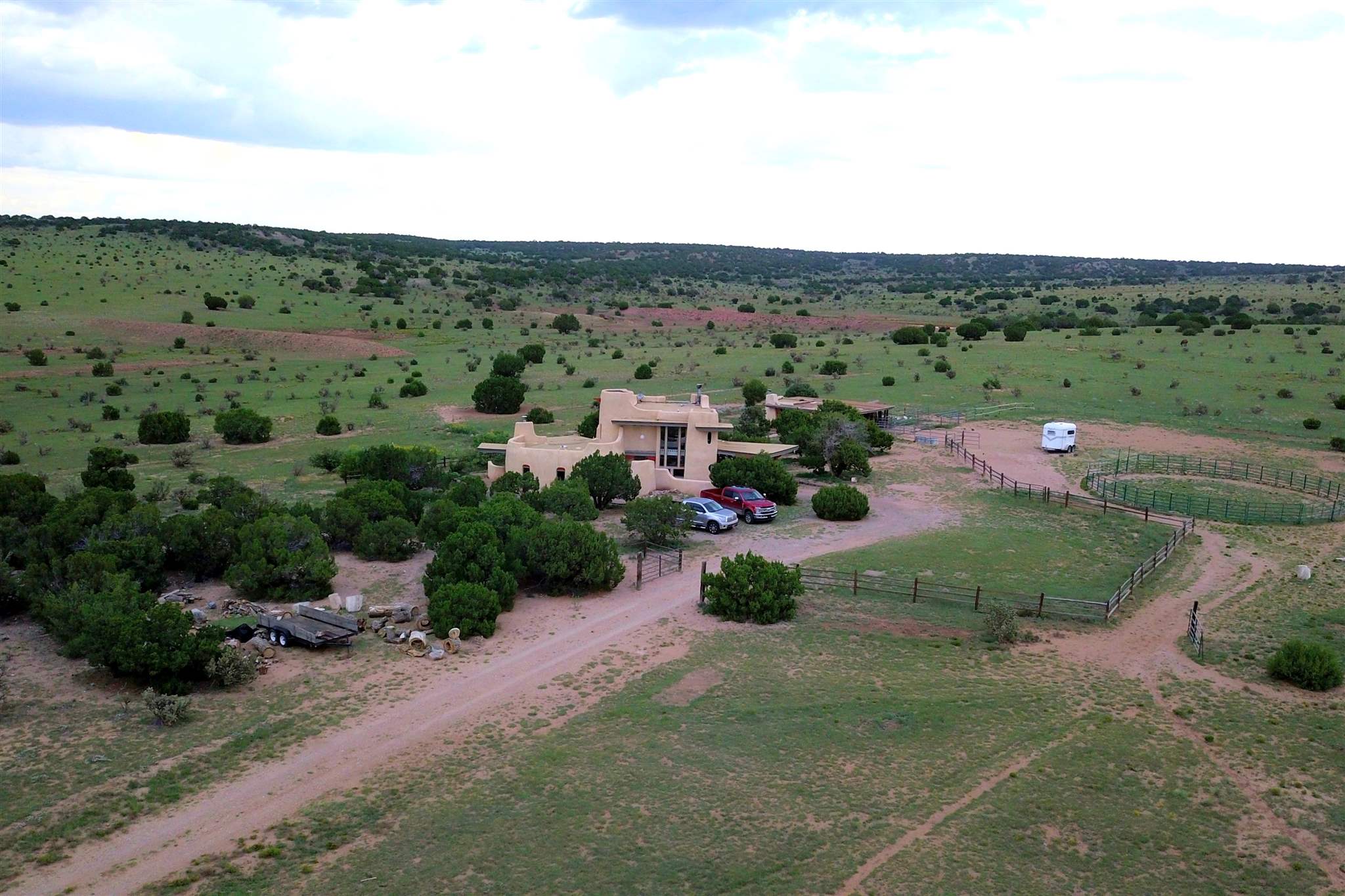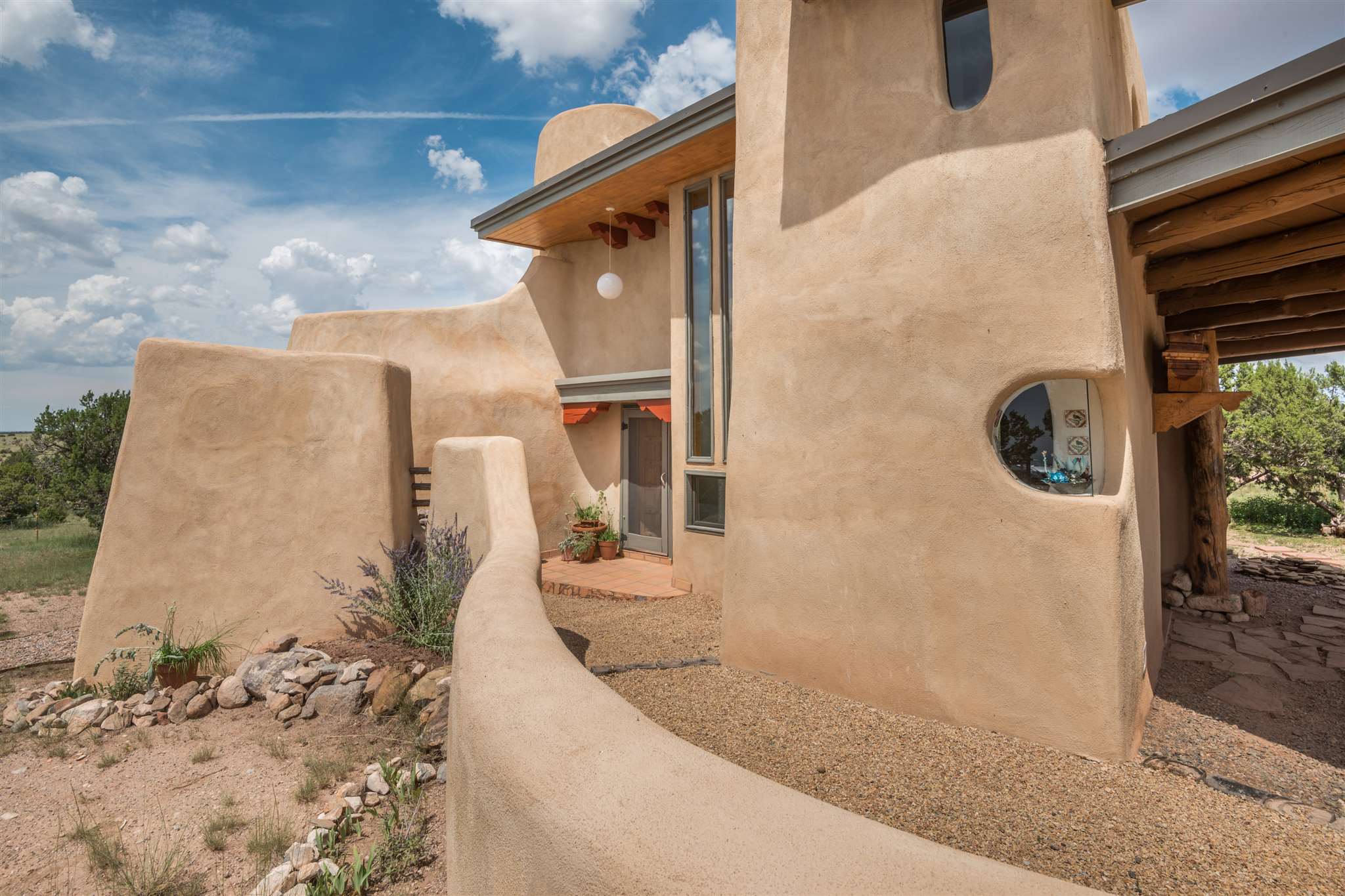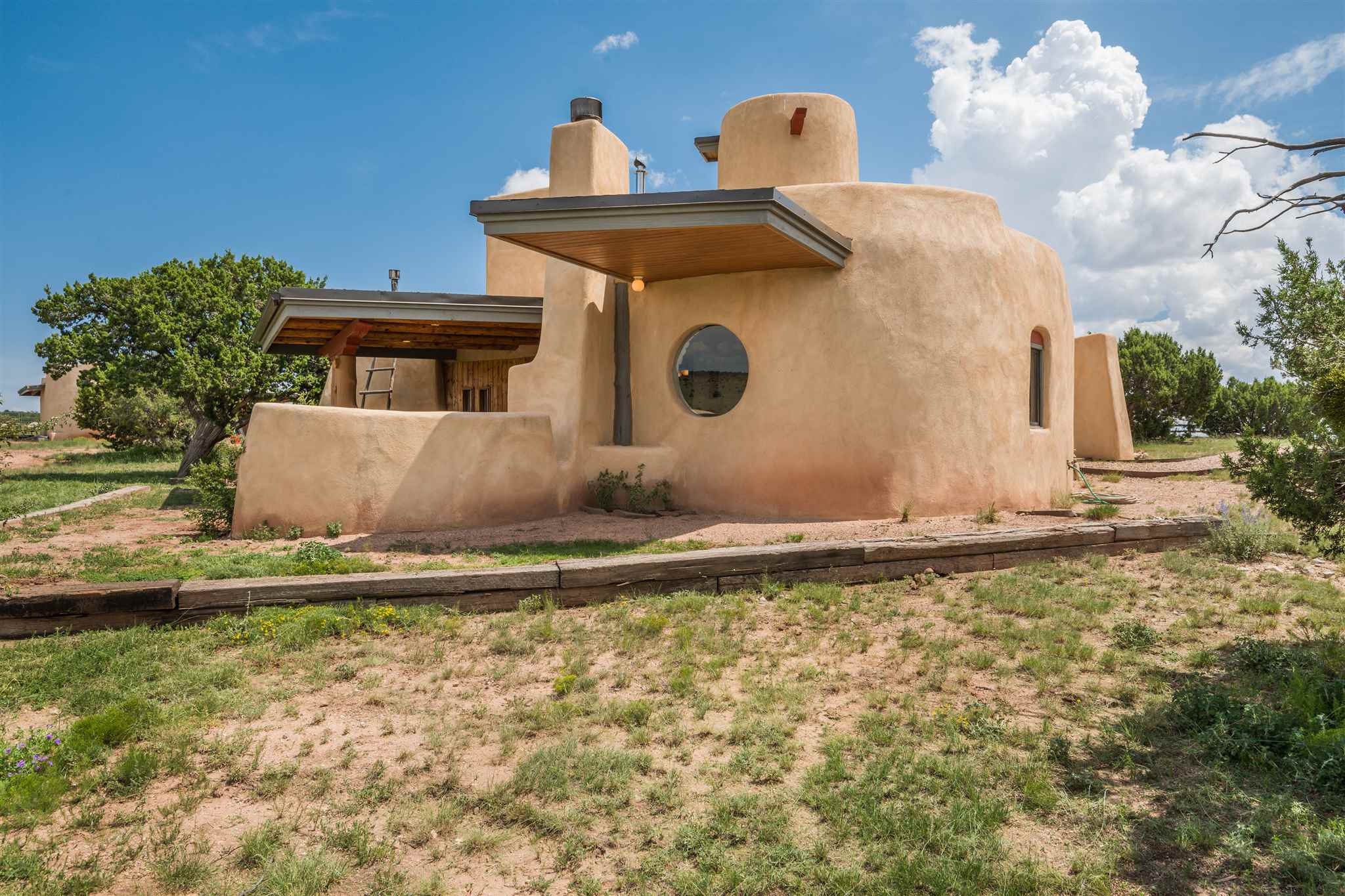 Nestled among beautiful mature trees and a verdant green landscape, this custom-built adobe home boasts breathtaking mountain views on over 77 acres of gentle rolling terrain. Designed by the renowned Swedish architect, Ivor Williams, this fascinating property abounds with whimsical architectural details, such as curved walls, round windows, and a spiral staircase leading to the interior loft. As seen in the artistic renderings, the beauty and functionality of the adobe architecture is prominently displayed throughout this one-of-a-kind home. Built in 2000, this 2-bedroom, 2-bathroom home also includes a large loft space or office,a detached workshop, horse shelter and an outdoor patio. The home has been lovingly updated by the current owners and includes new kitchen appliances, gorgeous granite counter tops, and a new roof installed over existing foam roof in 2016. Filled with charm and character, this property is ideal for the horse enthusiast, the artist or author seeking solitude, or, as the perfect family retreat for relaxing weekend getaways. Close to Rockin' Horse Ranch Indoor Arena for English dressage, cow cutting, and other equestrian events.
