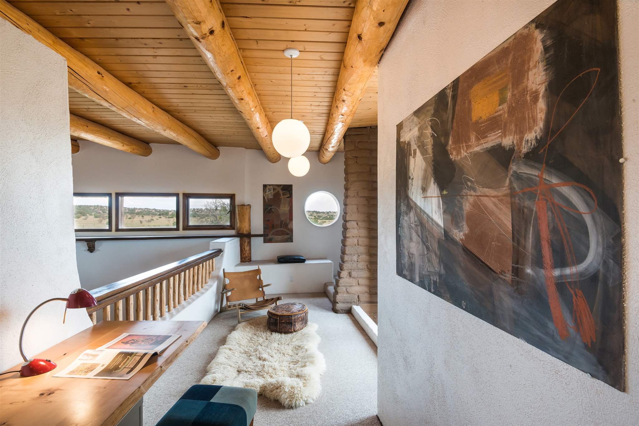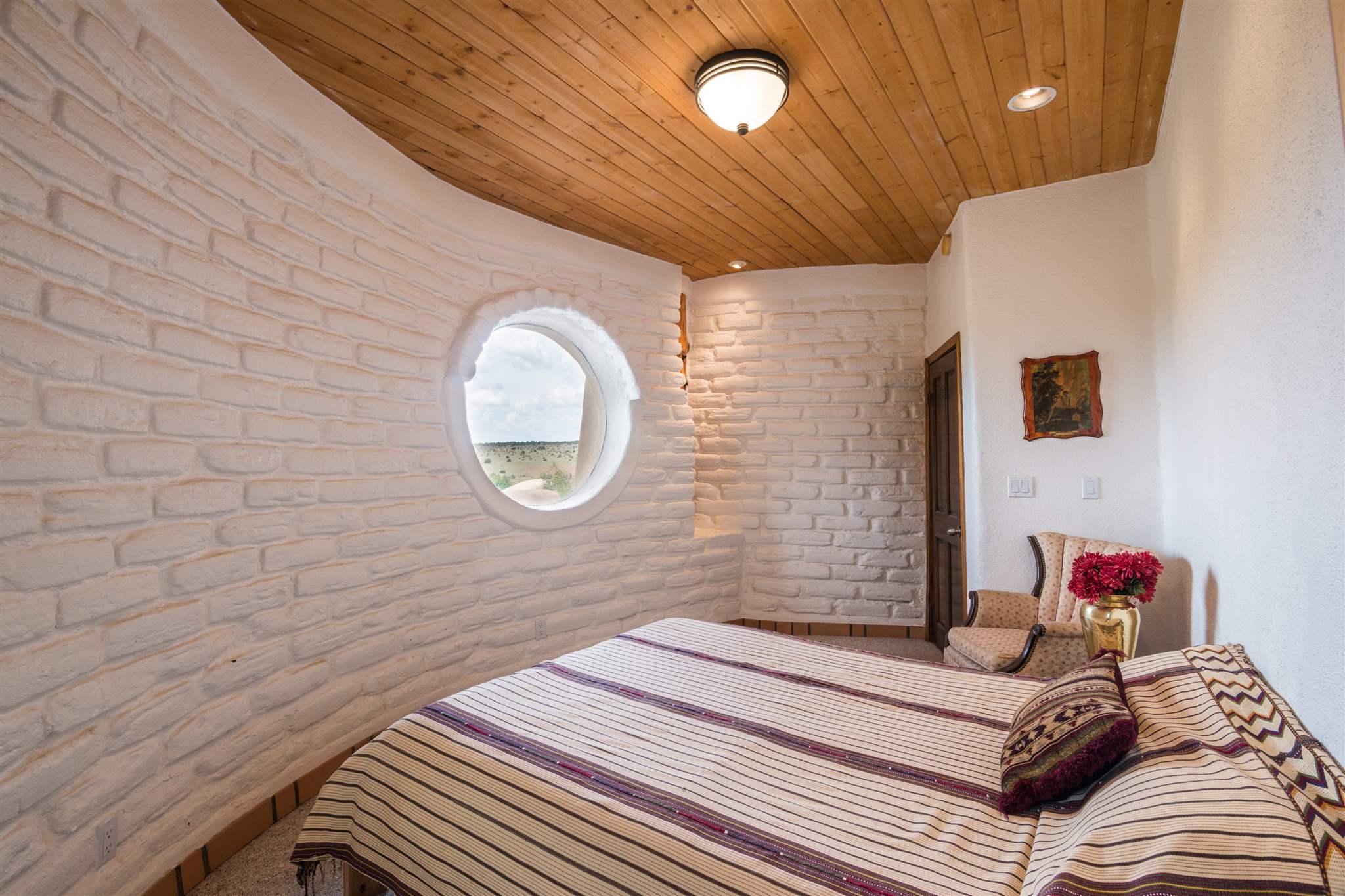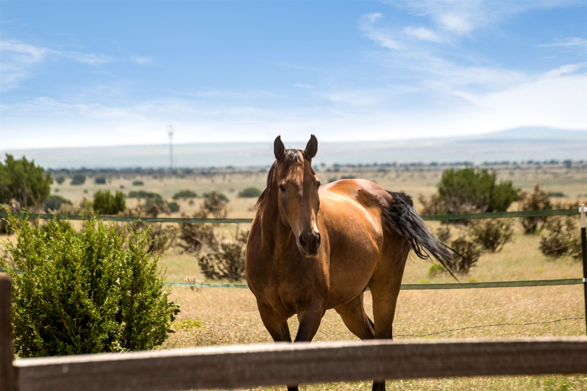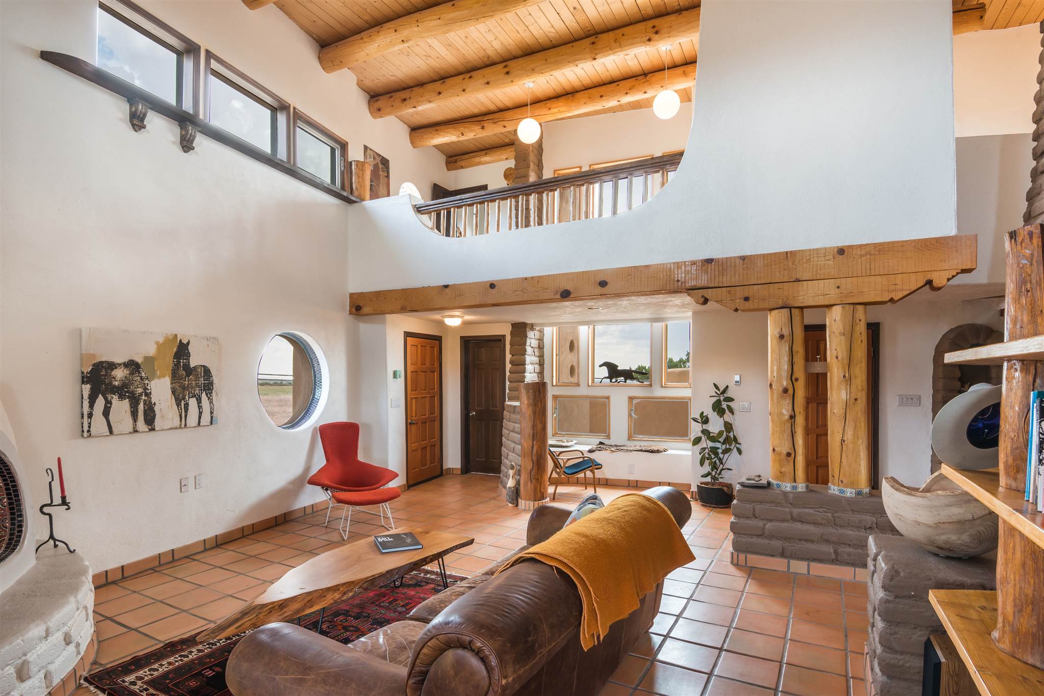 Nestled among beautiful mature trees and a verdant green landscape, this custom-built adobe home boasts breathtaking mountain views on over 77 acres of gentle rolling terrain. Designed by the renowned Swedish architect, Ivor Williams, this fascinating property abounds with whimsical architectural details, such as curved walls, round windows, and a spiral staircase leading to the interior loft. As seen in the artistic renderings, the beauty and functionality of the adobe architecture is prominently displayed throughout this one-of-a-kind home. Built in 2000, this 2-bedroom, 2-bathroom home also includes a large loft space or office,a detached workshop, horse shelter and an outdoor patio. The home has been lovingly updated by the current owners and includes new kitchen appliances, gorgeous granite counter tops, and a new roof installed over existing foam roof in 2016. Filled with charm and character, this property is ideal for the horse enthusiast, the artist or author seeking solitude, or, as the perfect family retreat for relaxing weekend getaways. Close to Rockin' Horse Ranch Indoor Arena for English dressage, cow cutting, and other equestrian events.