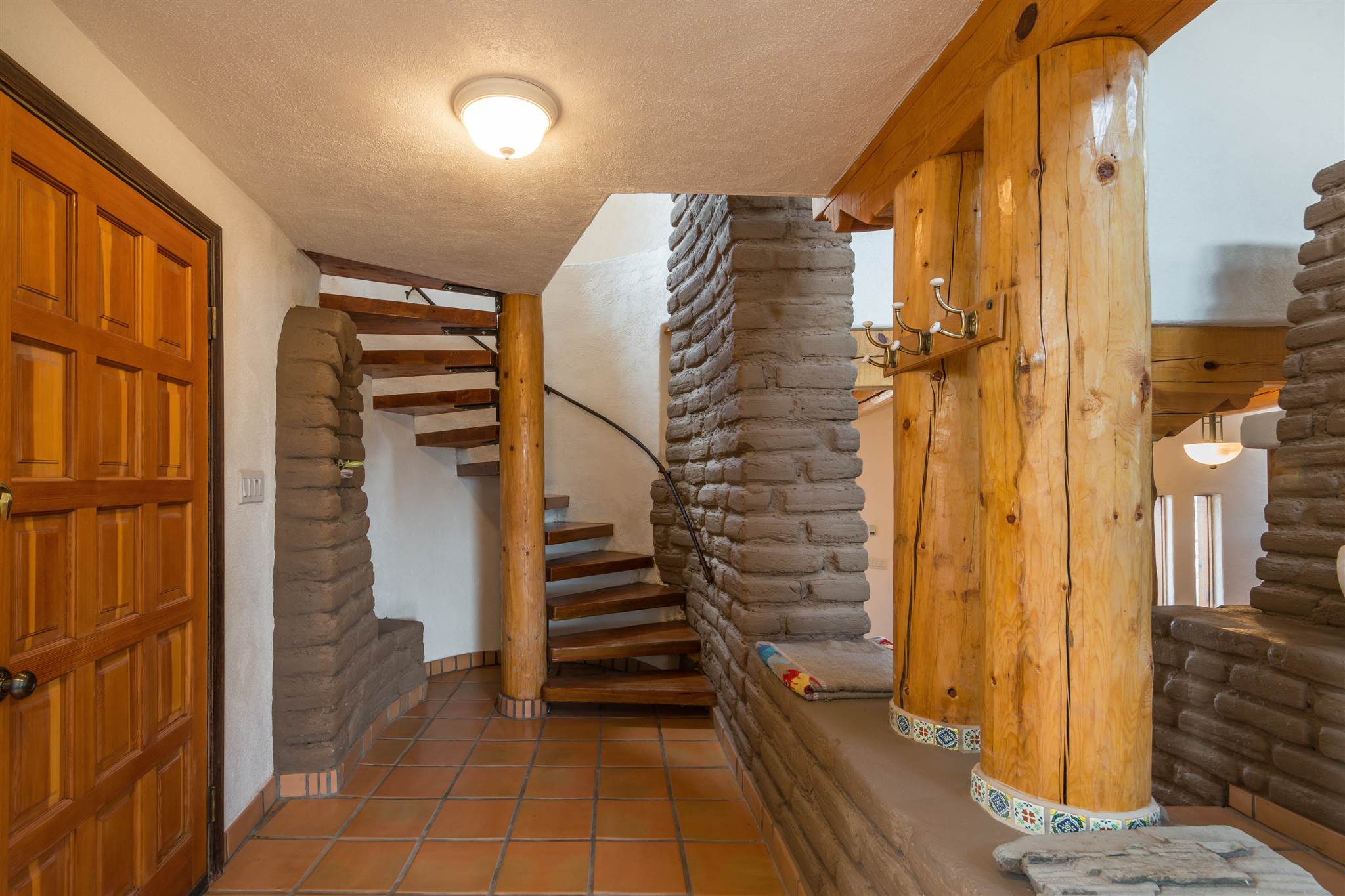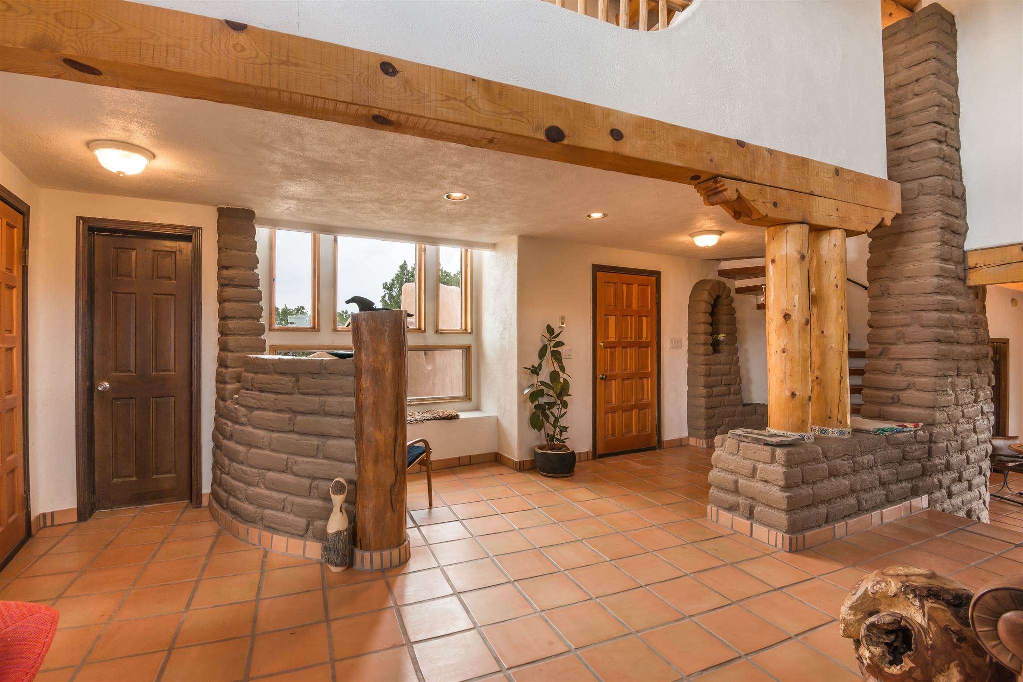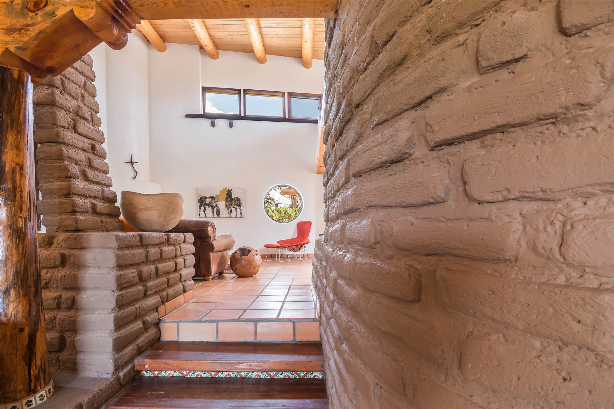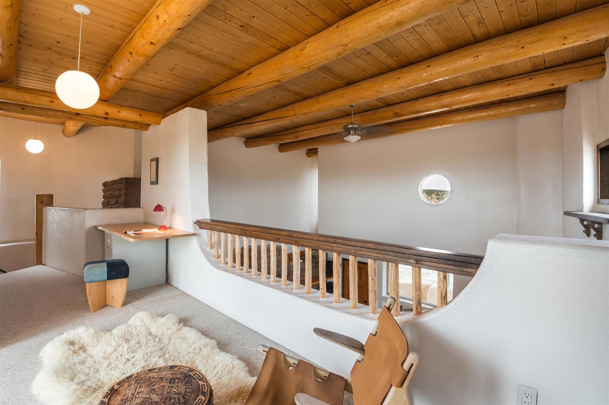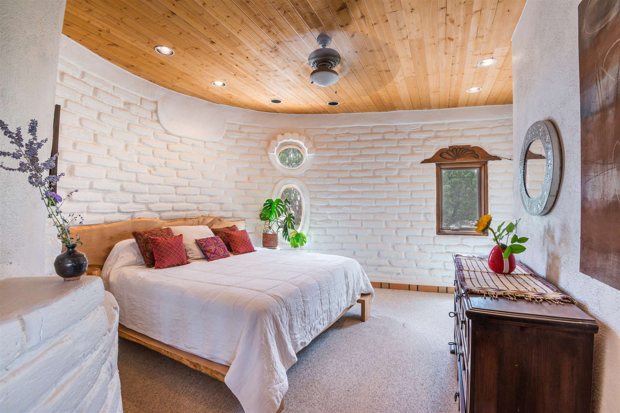 Nestled among beautiful mature trees and a verdant green landscape, this custom-built adobe home boasts breathtaking mountain views on over 77 acres of gentle rolling terrain. Designed by the renowned Swedish architect, Ivor Williams, this fascinating property abounds with whimsical architectural details, such as curved walls, round windows, and a spiral staircase leading to the interior loft. As seen in the artistic renderings, the beauty and functionality of the adobe architecture is prominently displayed throughout this one-of-a-kind home. Built in 2000, this 2-bedroom, 2-bathroom home also includes a large loft space or office,a detached workshop, horse shelter and an outdoor patio. The home has been lovingly updated by the current owners and includes new kitchen appliances, gorgeous granite counter tops, and a new roof installed over existing foam roof in 2016. Filled with charm and character, this property is ideal for the horse enthusiast, the artist or author seeking solitude, or, as the perfect family retreat for relaxing weekend getaways. Close to Rockin' Horse Ranch Indoor Arena for English dressage, cow cutting, and other equestrian events.