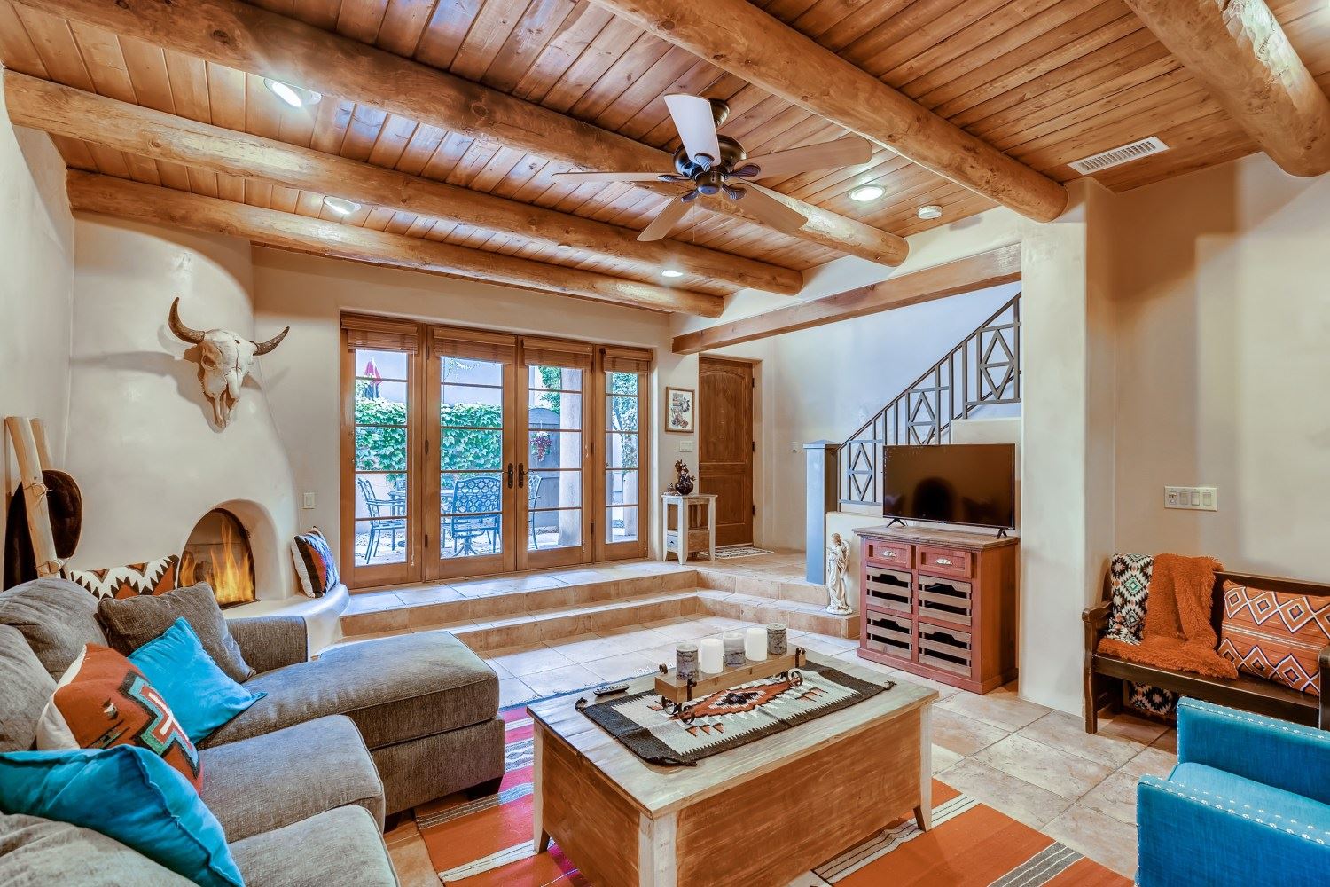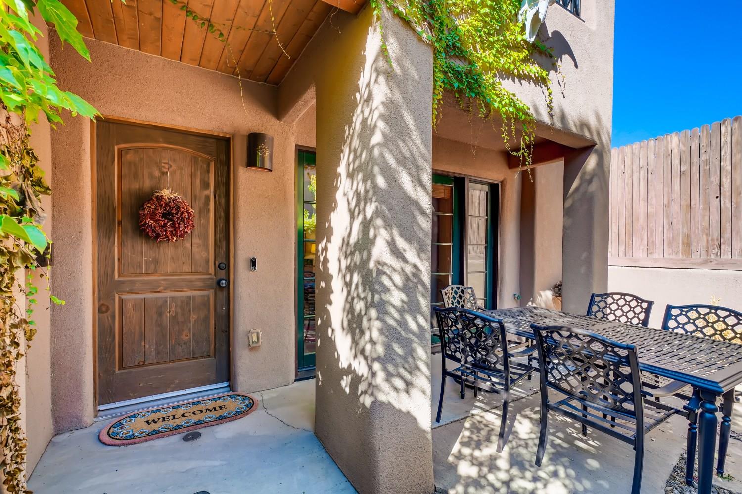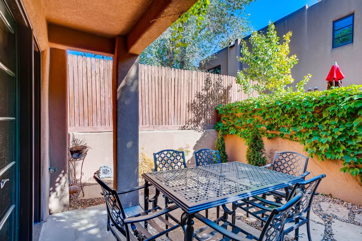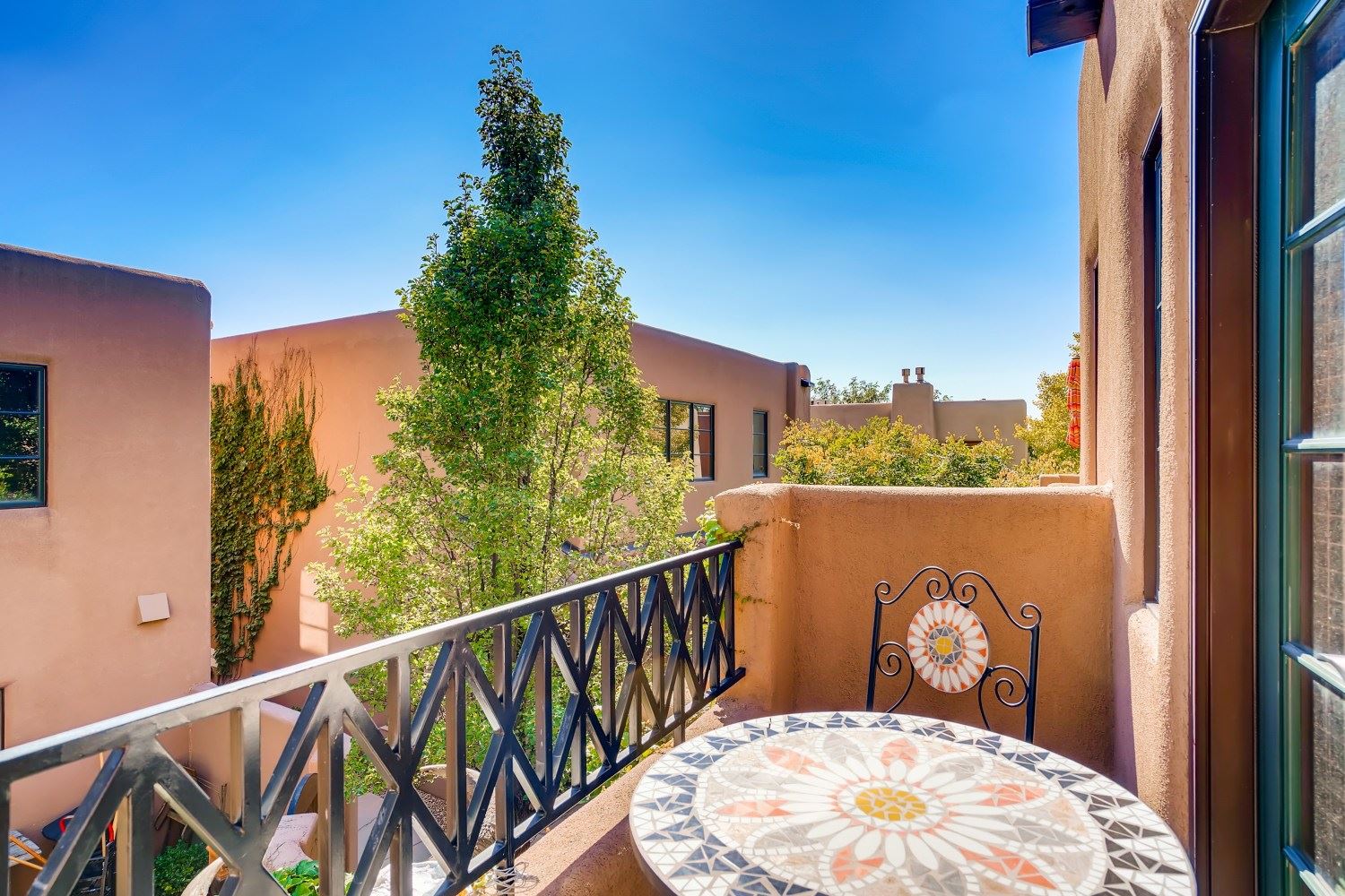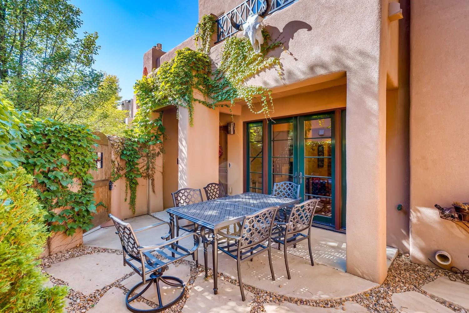 Outstanding interior unit in a quiet location close to the amenities and clubhouse. Beautiful southwestern design in the heart of Santa Fe. Perfect for full time living or lock and leave. Spacious floor plan for easy living, kitchen with stainless steel appliances and gorgeous cabinetry, custom accent tiles throughout, generous storage and closet space, Guest bedroom with en suite bath. This unit has it all and the perfect size. Rarely offered and with all the upgrades, you will fall in love with this home. Close to the Plaza, all the exceptional restaurants, and festivities that downtown living provides. Short drive to the mountain for recreation in the winter. Don't miss this lovely unit.