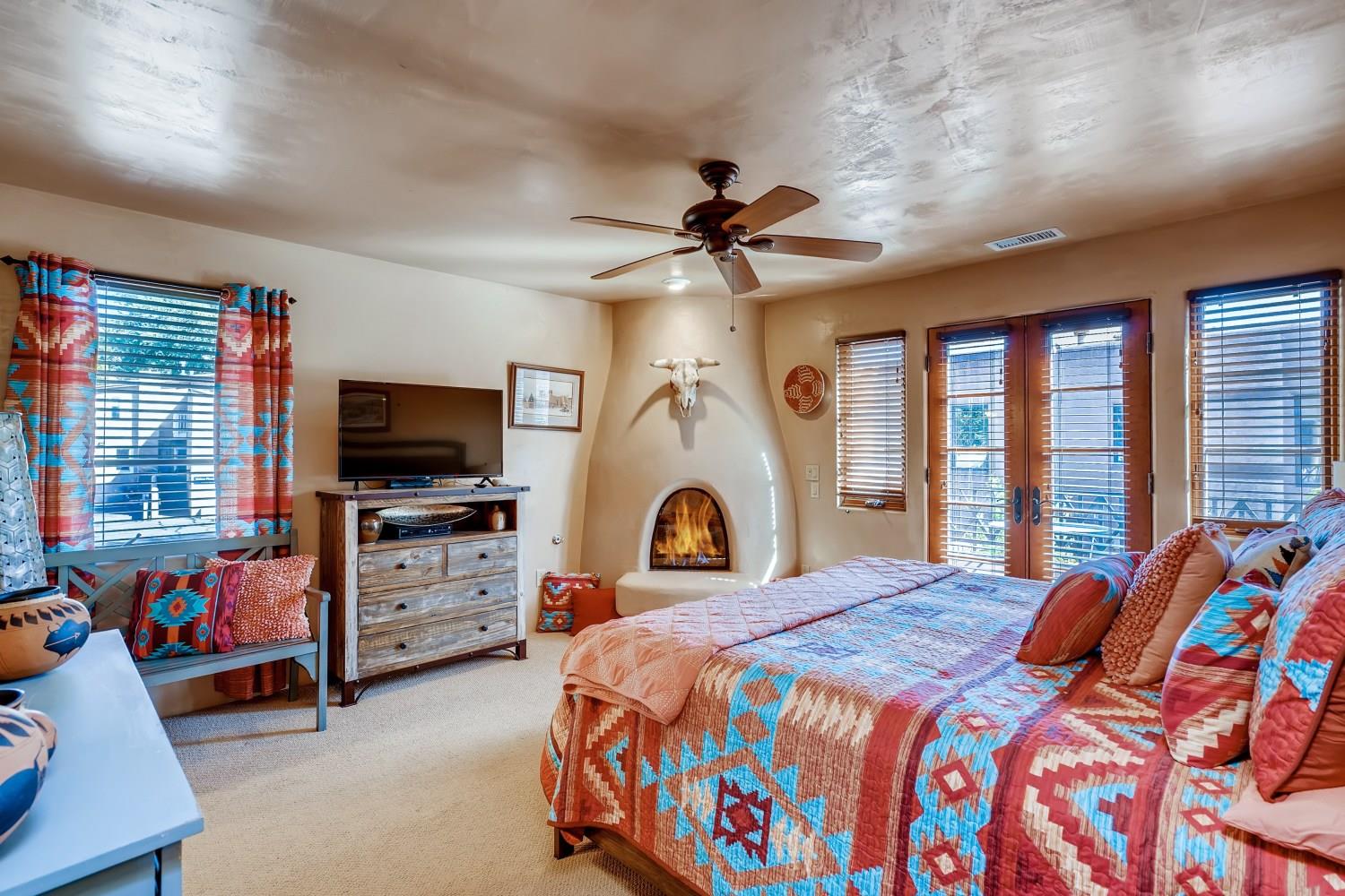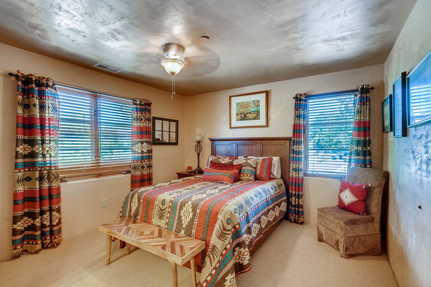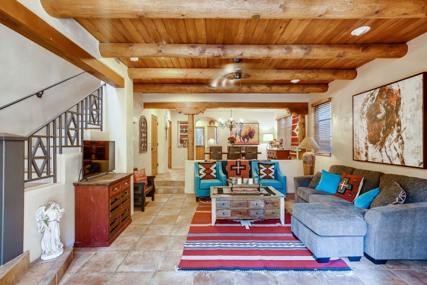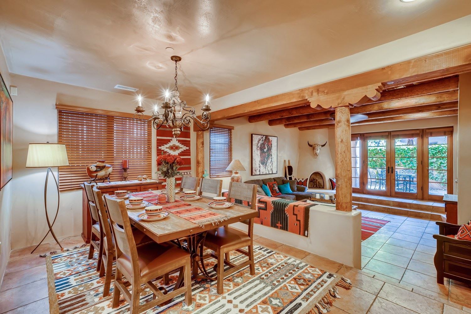 Outstanding interior unit in a quiet location close to the amenities and clubhouse. Beautiful southwestern design in the heart of Santa Fe. Perfect for full time living or lock and leave. Spacious floor plan for easy living, kitchen with stainless steel appliances and gorgeous cabinetry, custom accent tiles throughout, generous storage and closet space, Guest bedroom with en suite bath. This unit has it all and the perfect size. Rarely offered and with all the upgrades, you will fall in love with this home. Close to the Plaza, all the exceptional restaurants, and festivities that downtown living provides. Short drive to the mountain for recreation in the winter. Don't miss this lovely unit.