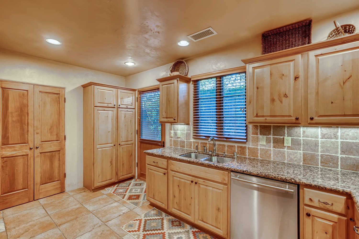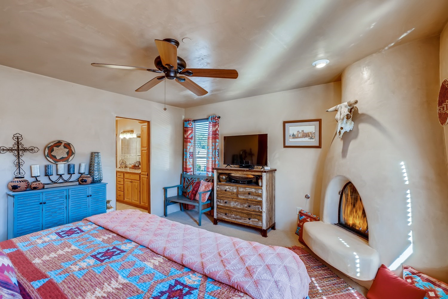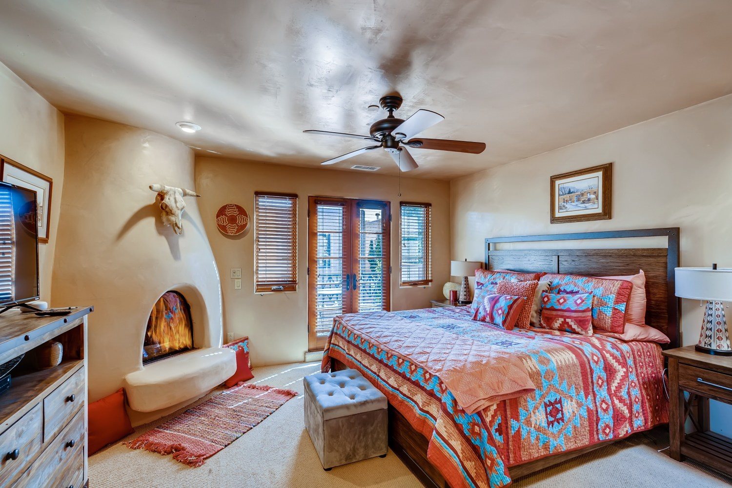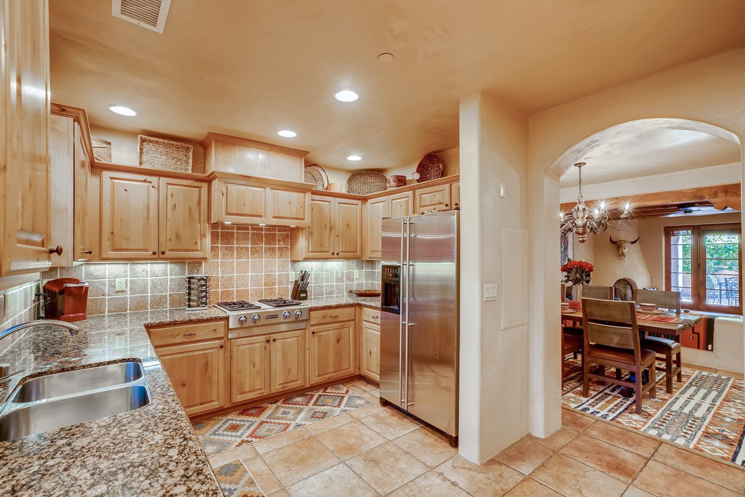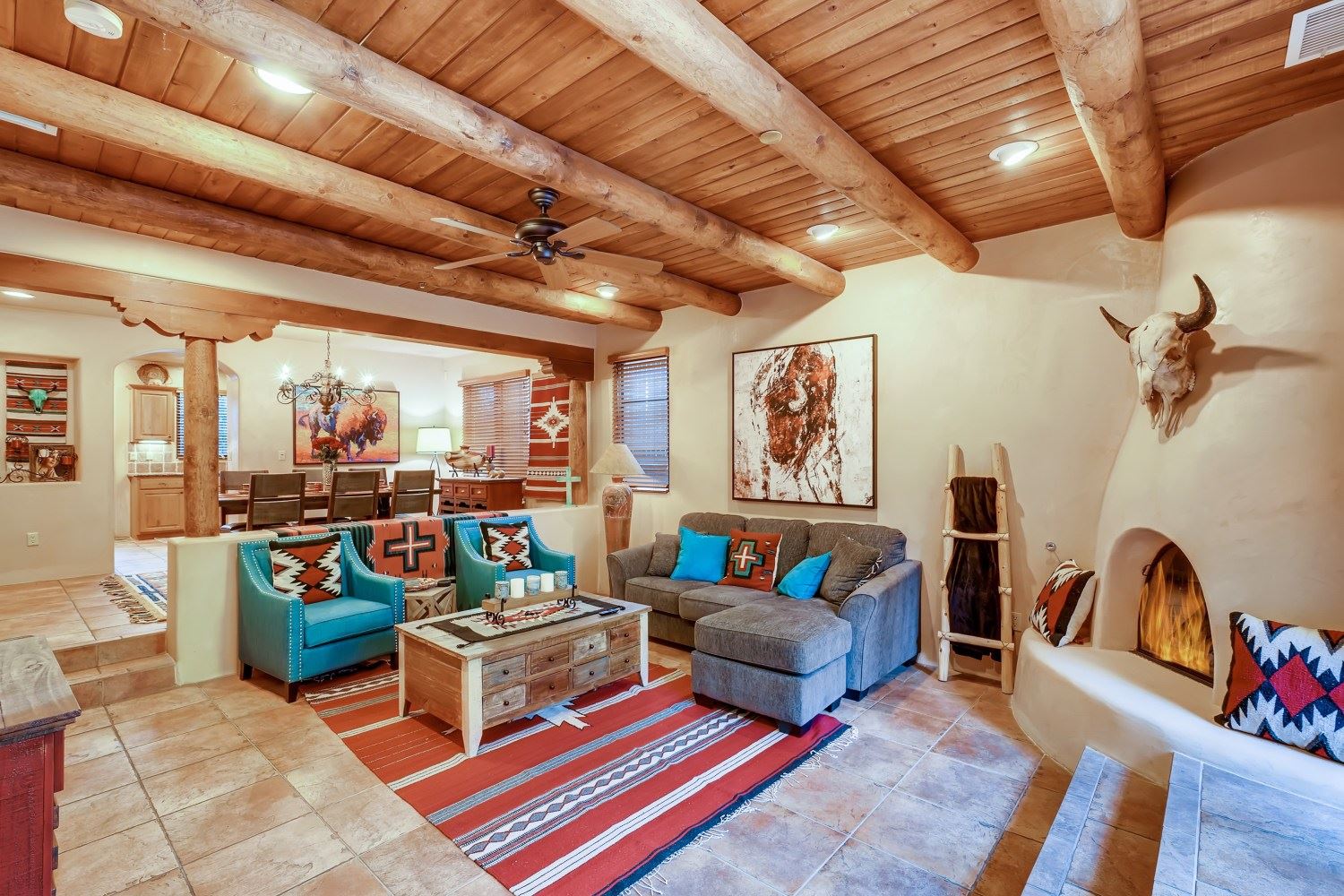 Outstanding interior unit in a quiet location close to the amenities and clubhouse. Beautiful southwestern design in the heart of Santa Fe. Perfect for full time living or lock and leave. Spacious floor plan for easy living, kitchen with stainless steel appliances and gorgeous cabinetry, custom accent tiles throughout, generous storage and closet space, Guest bedroom with en suite bath. This unit has it all and the perfect size. Rarely offered and with all the upgrades, you will fall in love with this home. Close to the Plaza, all the exceptional restaurants, and festivities that downtown living provides. Short drive to the mountain for recreation in the winter. Don't miss this lovely unit.