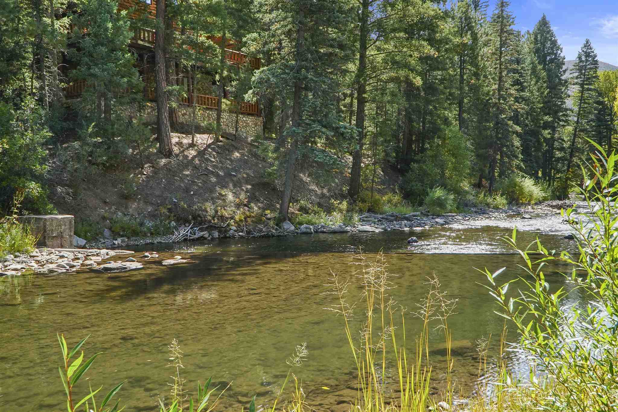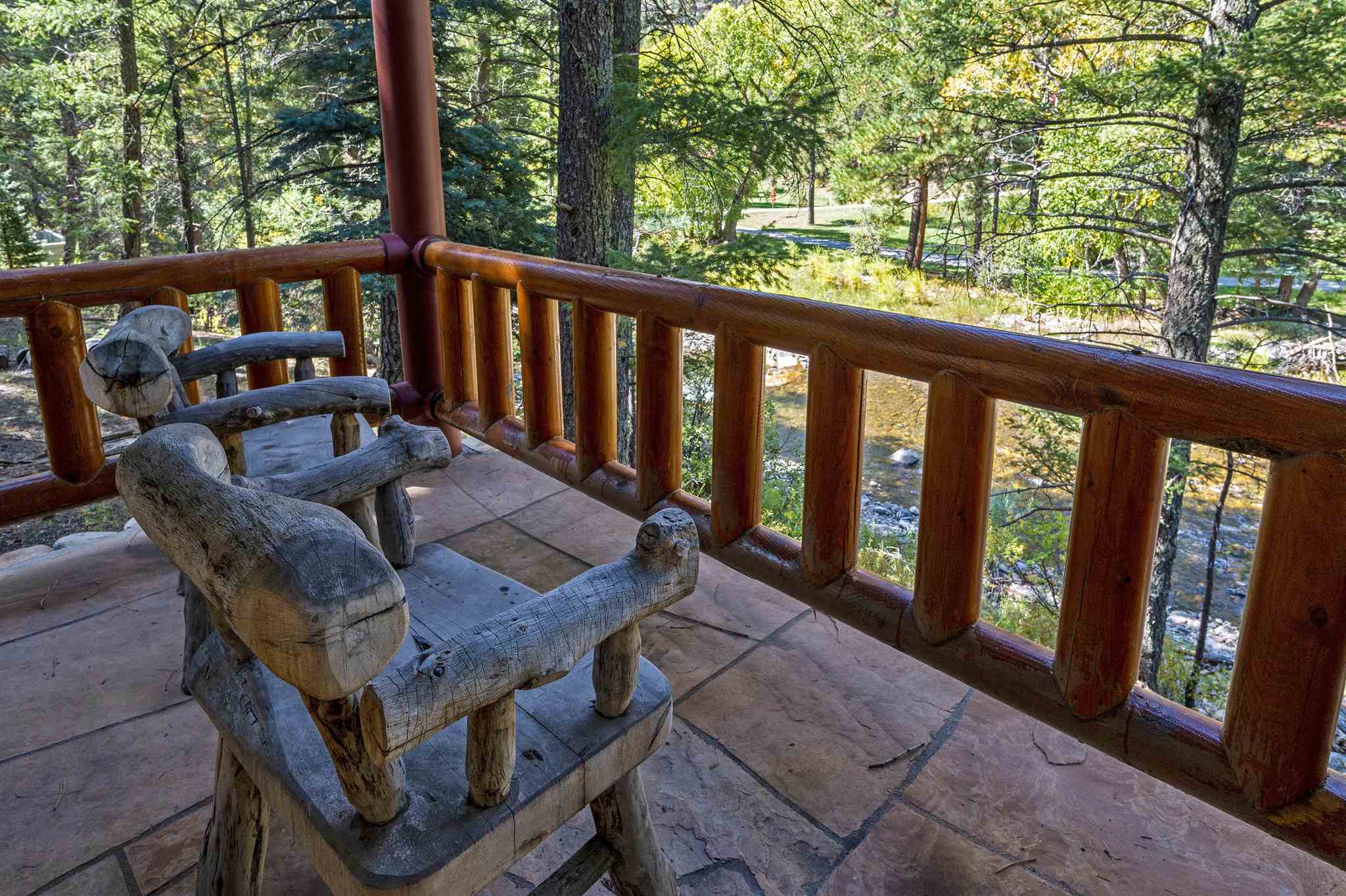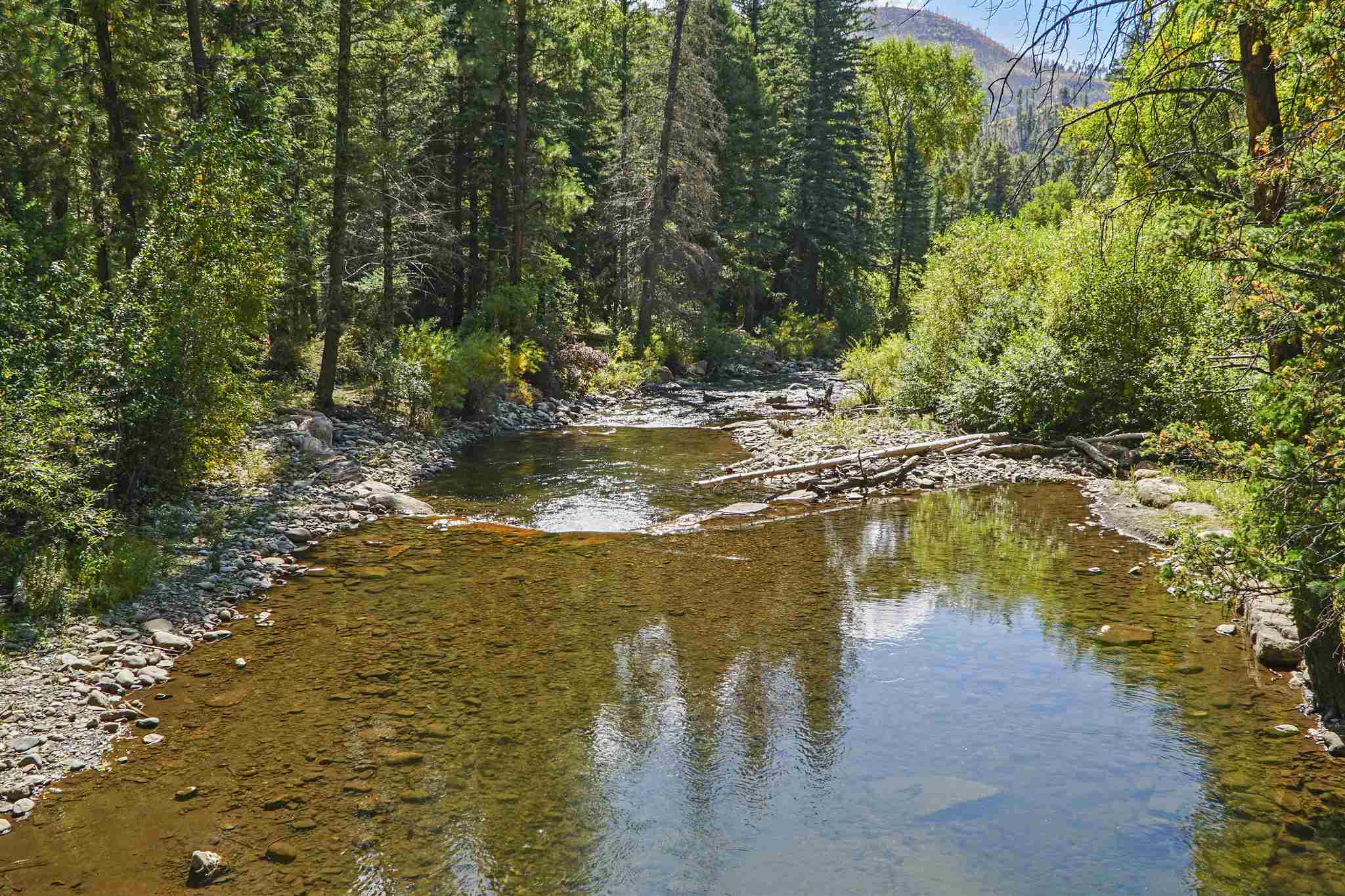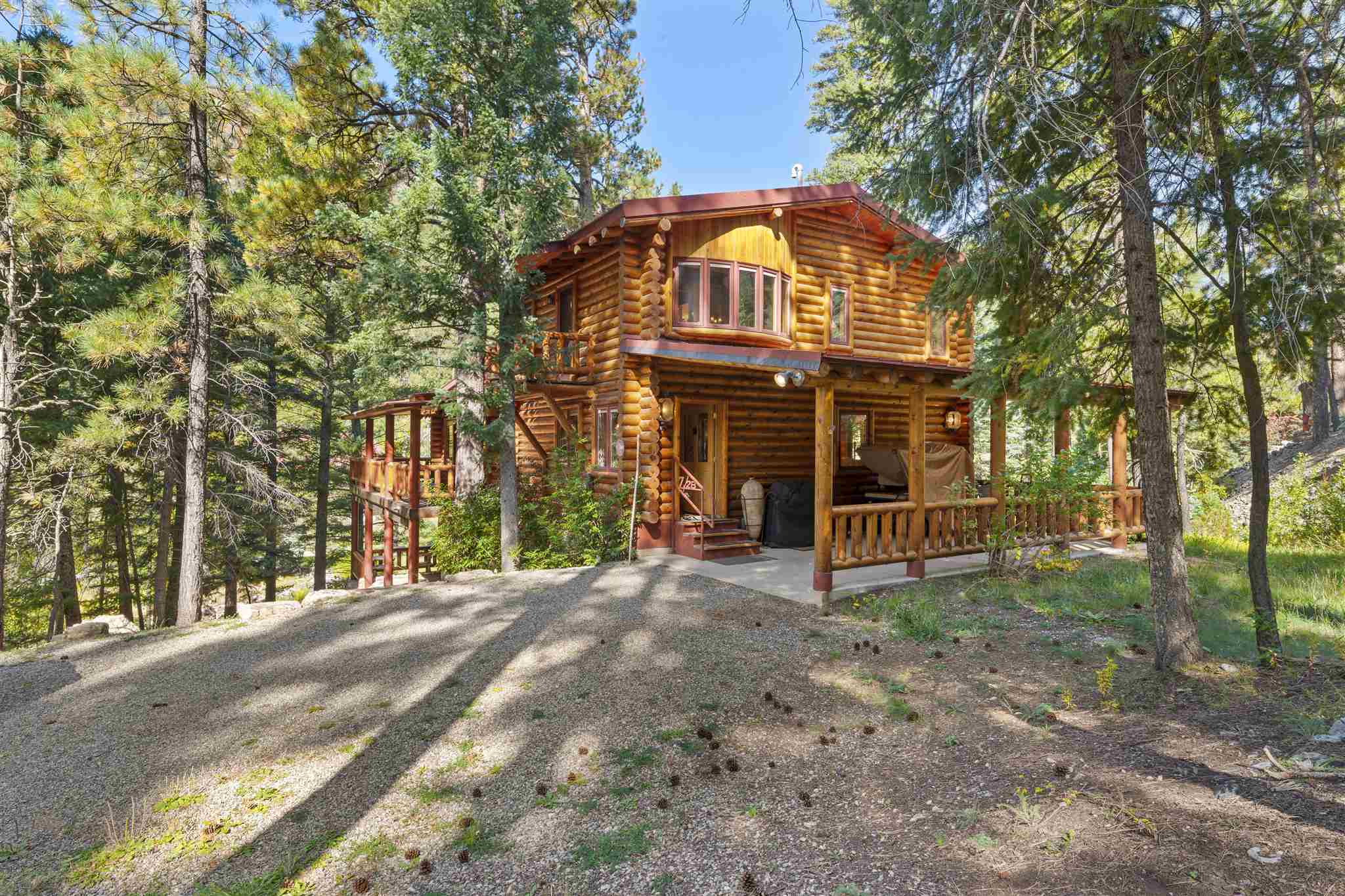 Rare offering of one of the most privately sited cabins in Tres and close proximity to the Santa Fe National Forest. This beautiful log cabin is perched above the river and tucked into the towering pines. Enjoy the sounds and sights of the mountains from within or from the covered and open wraparound deck. The main level features open concept dining, living and kitchen with a stone faced, wood-burning fireplace, spacious guest bedroom and three quarter bathroom. Upstairs is reserved for the master suite with a luxurious master bathroom and two small balconies to enjoy the crisp mountain air. The lower level, walk out basement features a bunk bedroom with a full bathroom, plus a fly fishing staging area, perfect for putting on waders and heading out to fish! Tres Lagunas offers excellent fly fishing access to owners and their guests, over one third of a mile of the Pecos River, 3 stocked ponds, on-site caretakers, all make for a wonderful retreat less than an hour from Santa Fe.