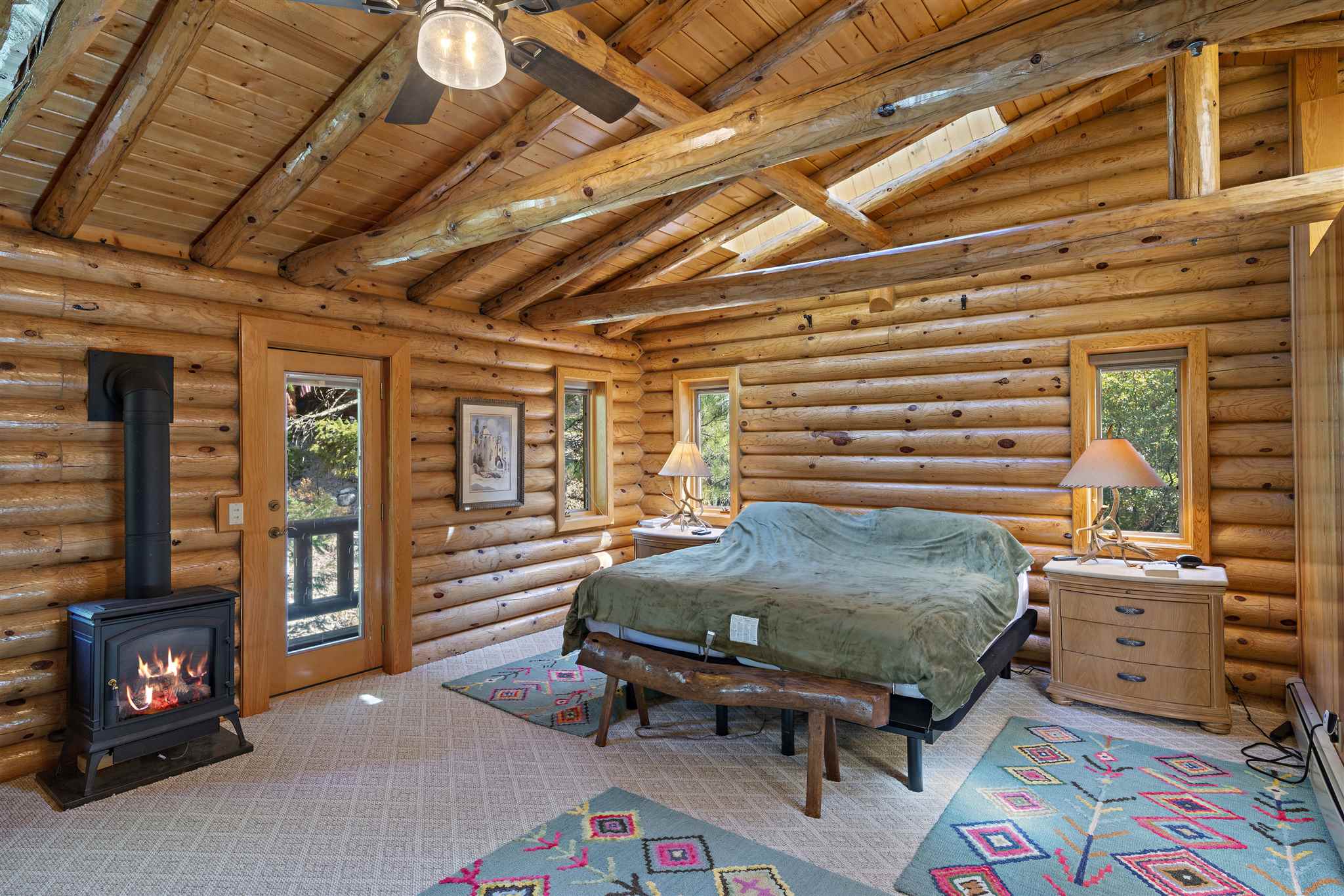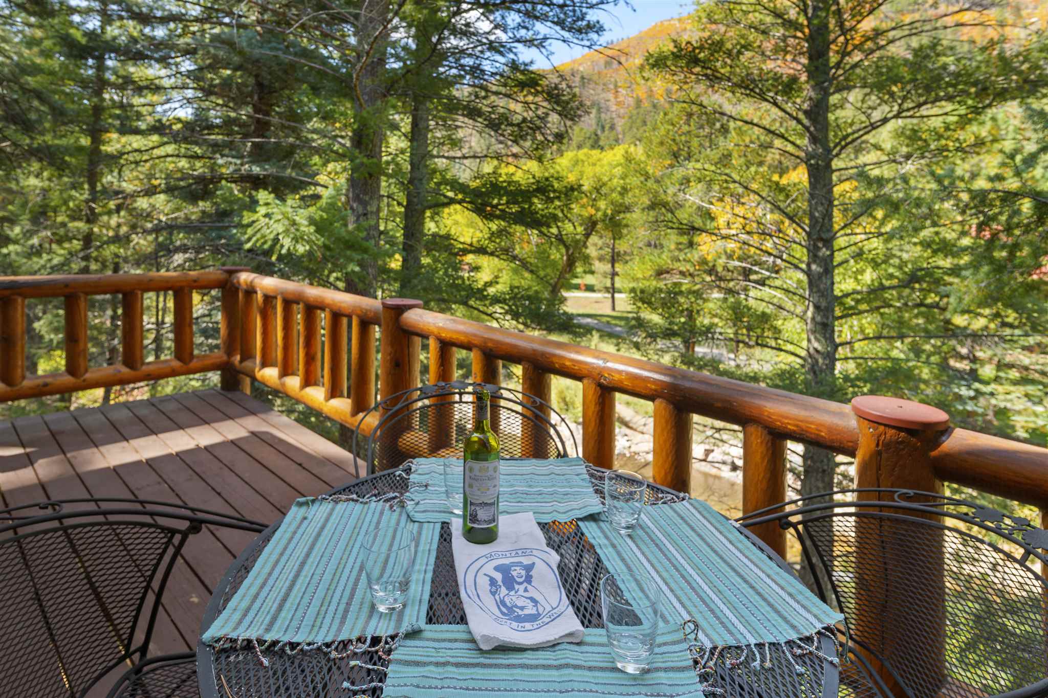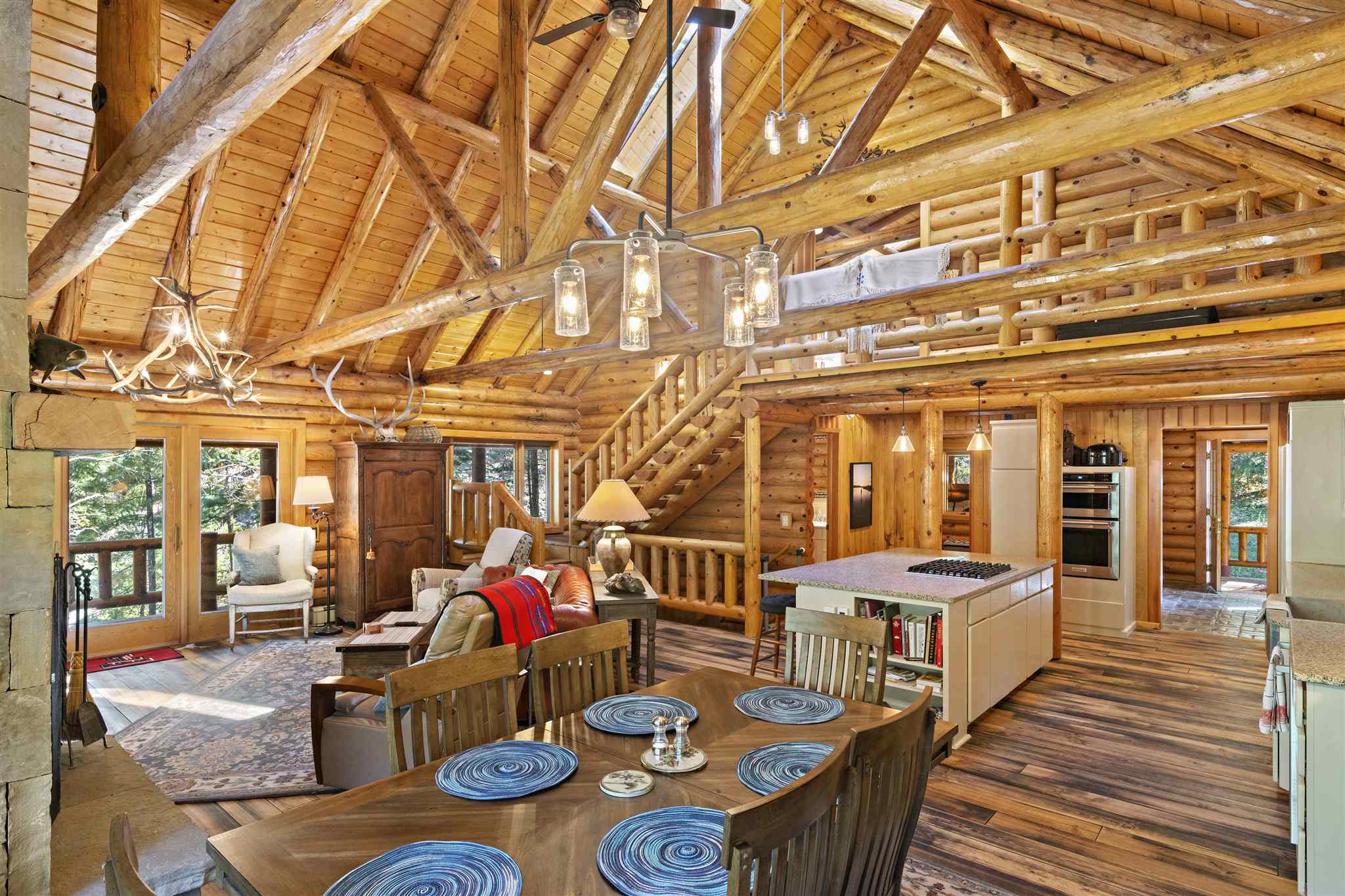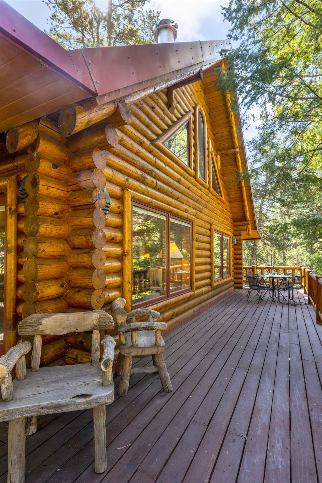 Rare offering of one of the most privately sited cabins in Tres and close proximity to the Santa Fe National Forest. This beautiful log cabin is perched above the river and tucked into the towering pines. Enjoy the sounds and sights of the mountains from within or from the covered and open wraparound deck. The main level features open concept dining, living and kitchen with a stone faced, wood-burning fireplace, spacious guest bedroom and three quarter bathroom. Upstairs is reserved for the master suite with a luxurious master bathroom and two small balconies to enjoy the crisp mountain air. The lower level, walk out basement features a bunk bedroom with a full bathroom, plus a fly fishing staging area, perfect for putting on waders and heading out to fish! Tres Lagunas offers excellent fly fishing access to owners and their guests, over one third of a mile of the Pecos River, 3 stocked ponds, on-site caretakers, all make for a wonderful retreat less than an hour from Santa Fe.