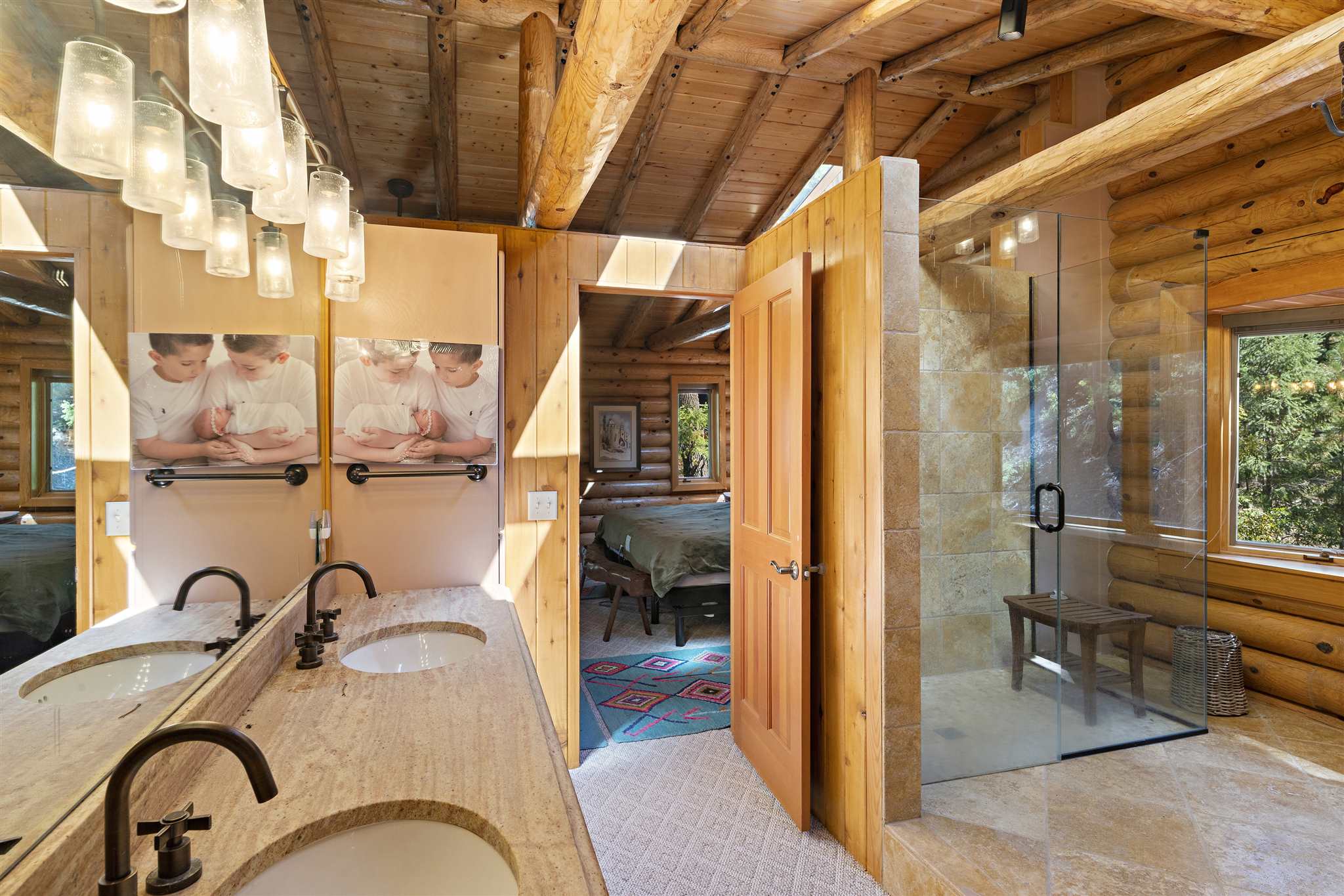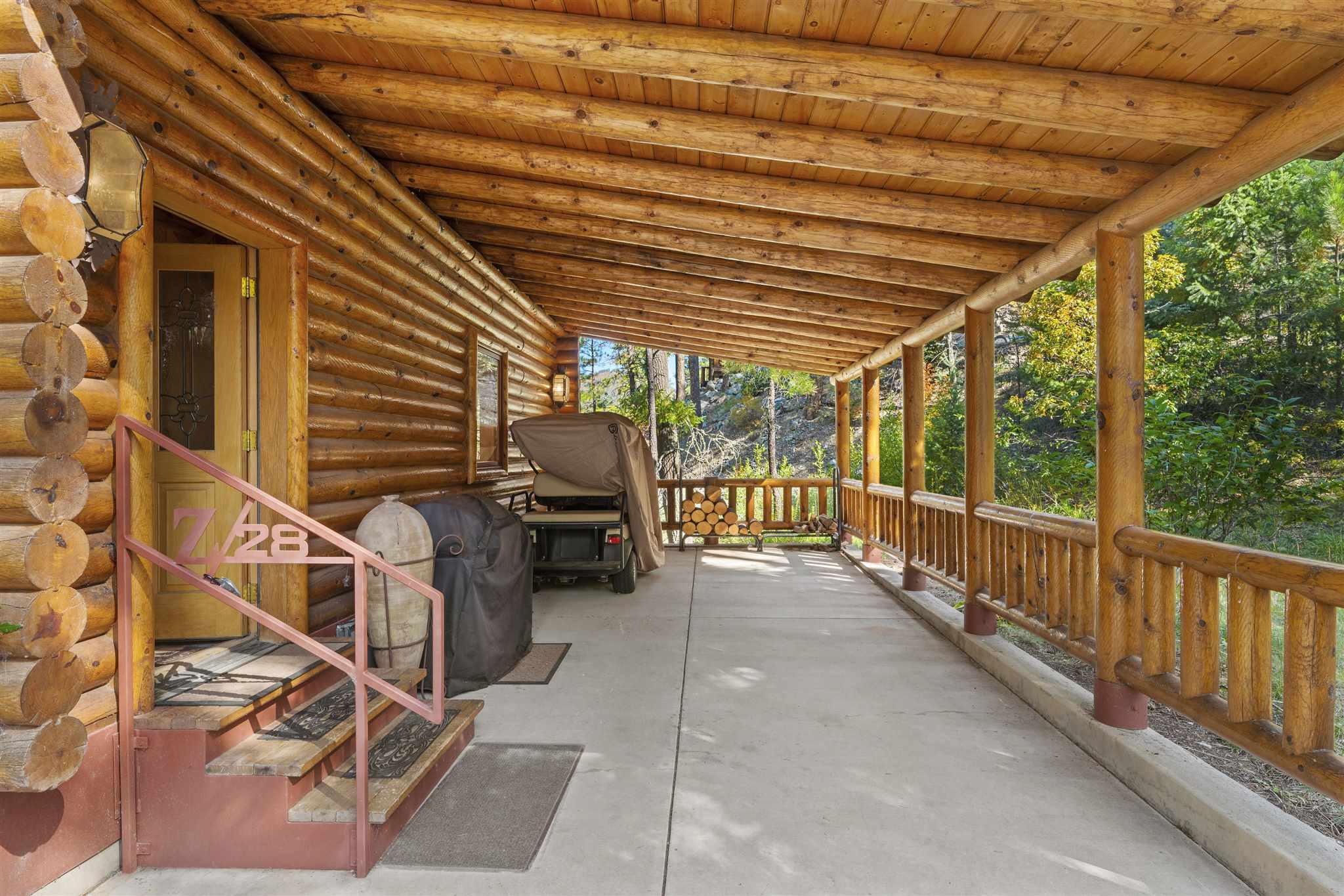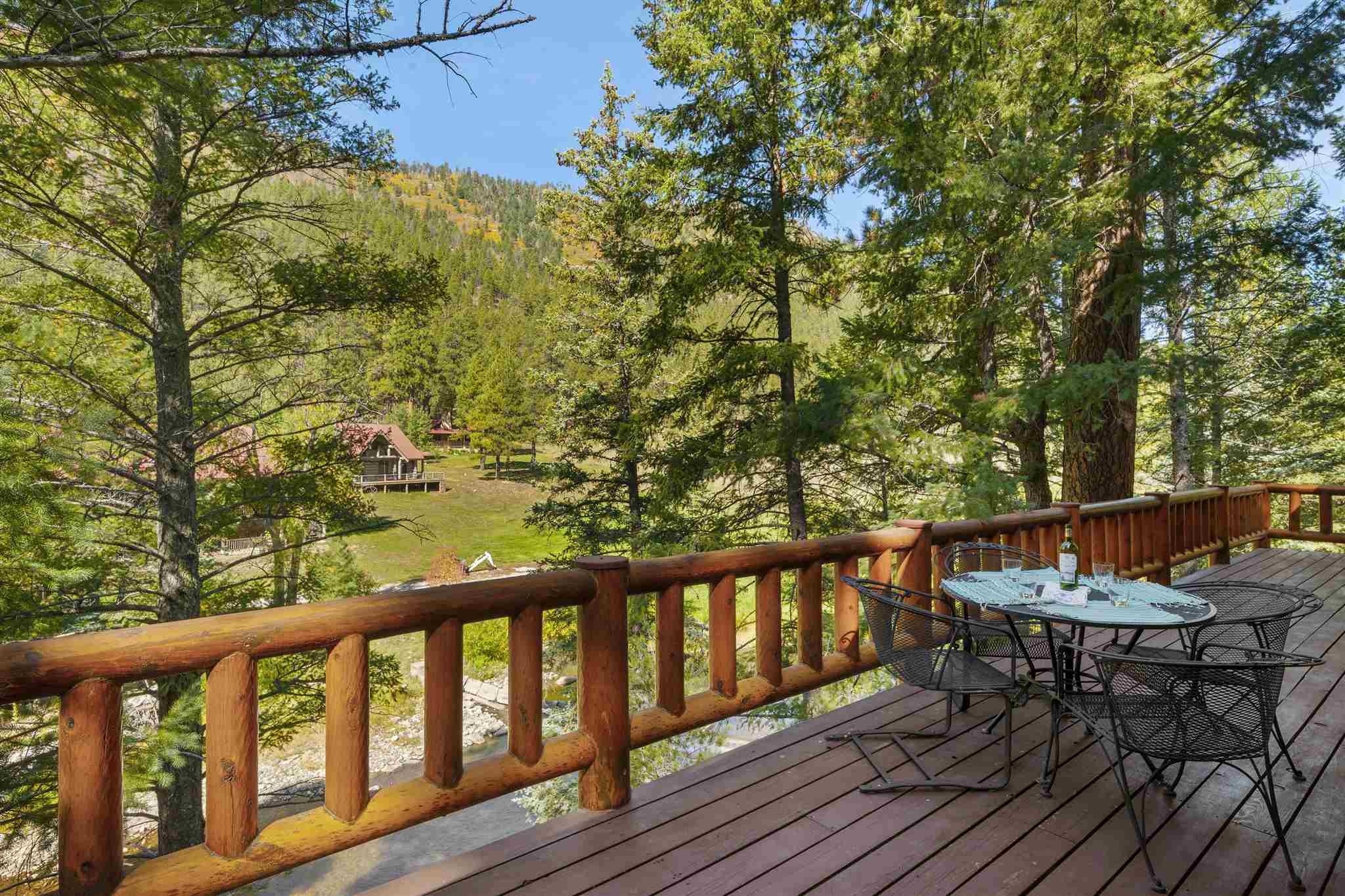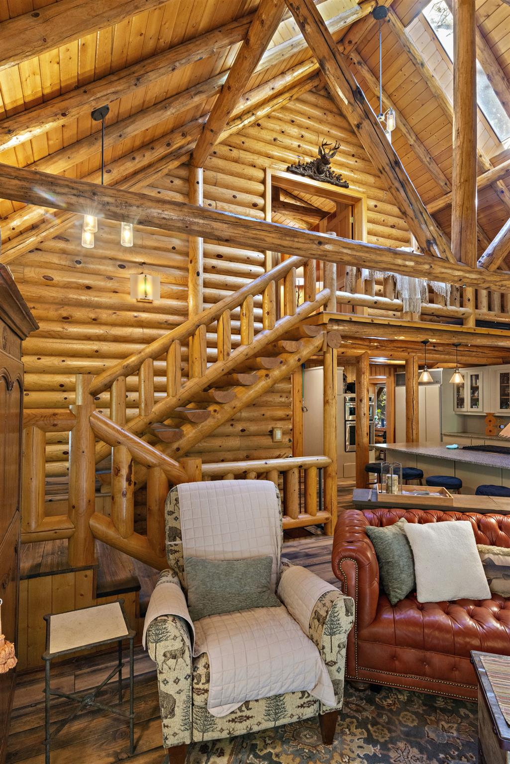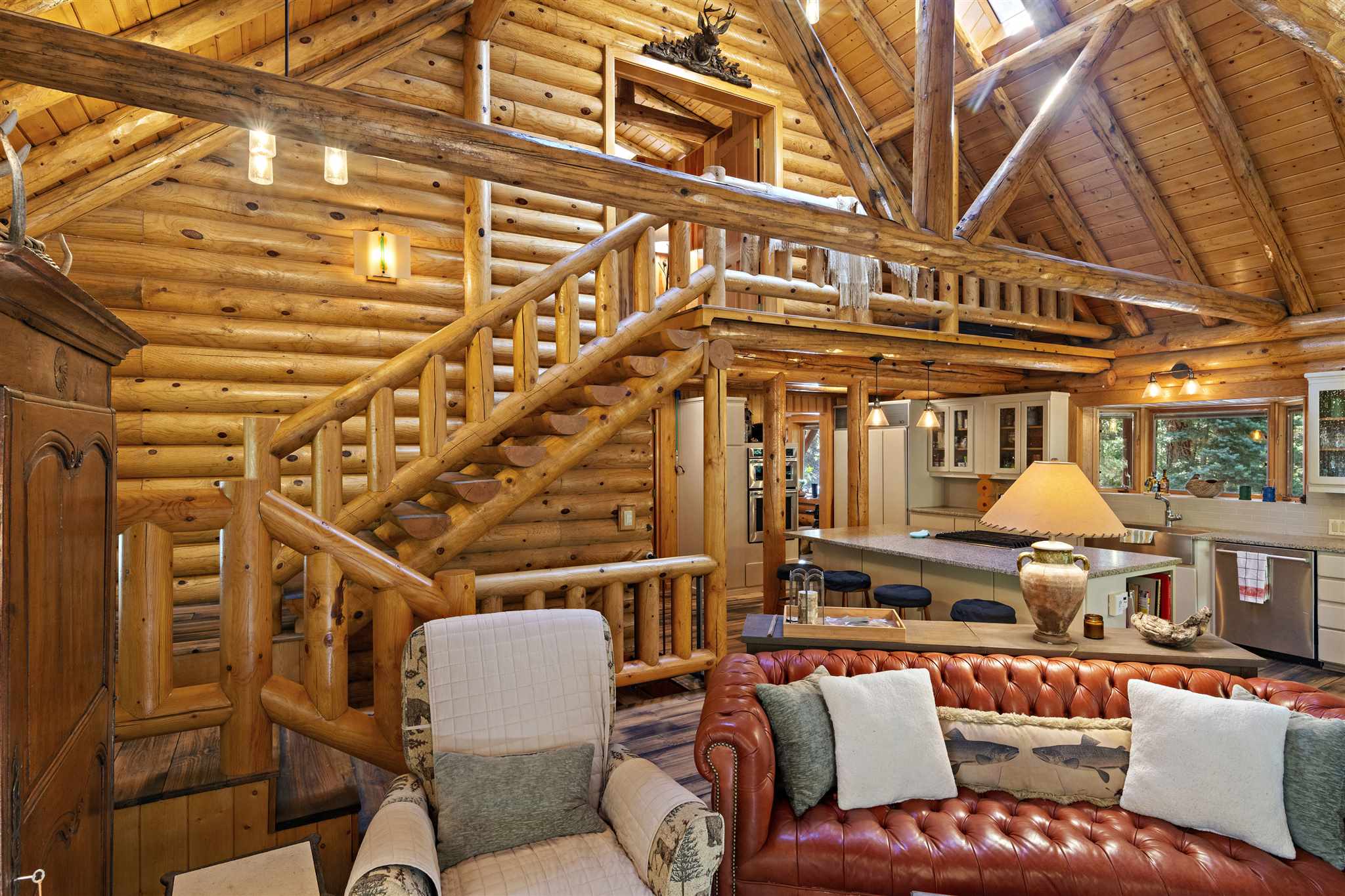Rare offering of one of the most privately sited cabins in Tres and close proximity to the Santa Fe National Forest. This beautiful log cabin is perched above the river and tucked into the towering pines. Enjoy the sounds and sights of the mountains from within or from the covered and open wraparound deck. The main level features open concept dining, living and kitchen with a stone faced, wood-burning fireplace, spacious guest bedroom and three quarter bathroom. Upstairs is reserved for the master suite with a luxurious master bathroom and two small balconies to enjoy the crisp mountain air. The lower level, walk out basement features a bunk bedroom with a full bathroom, plus a fly fishing staging area, perfect for putting on waders and heading out to fish! Tres Lagunas offers excellent fly fishing access to owners and their guests, over one third of a mile of the Pecos River, 3 stocked ponds, on-site caretakers, all make for a wonderful retreat less than an hour from Santa Fe.