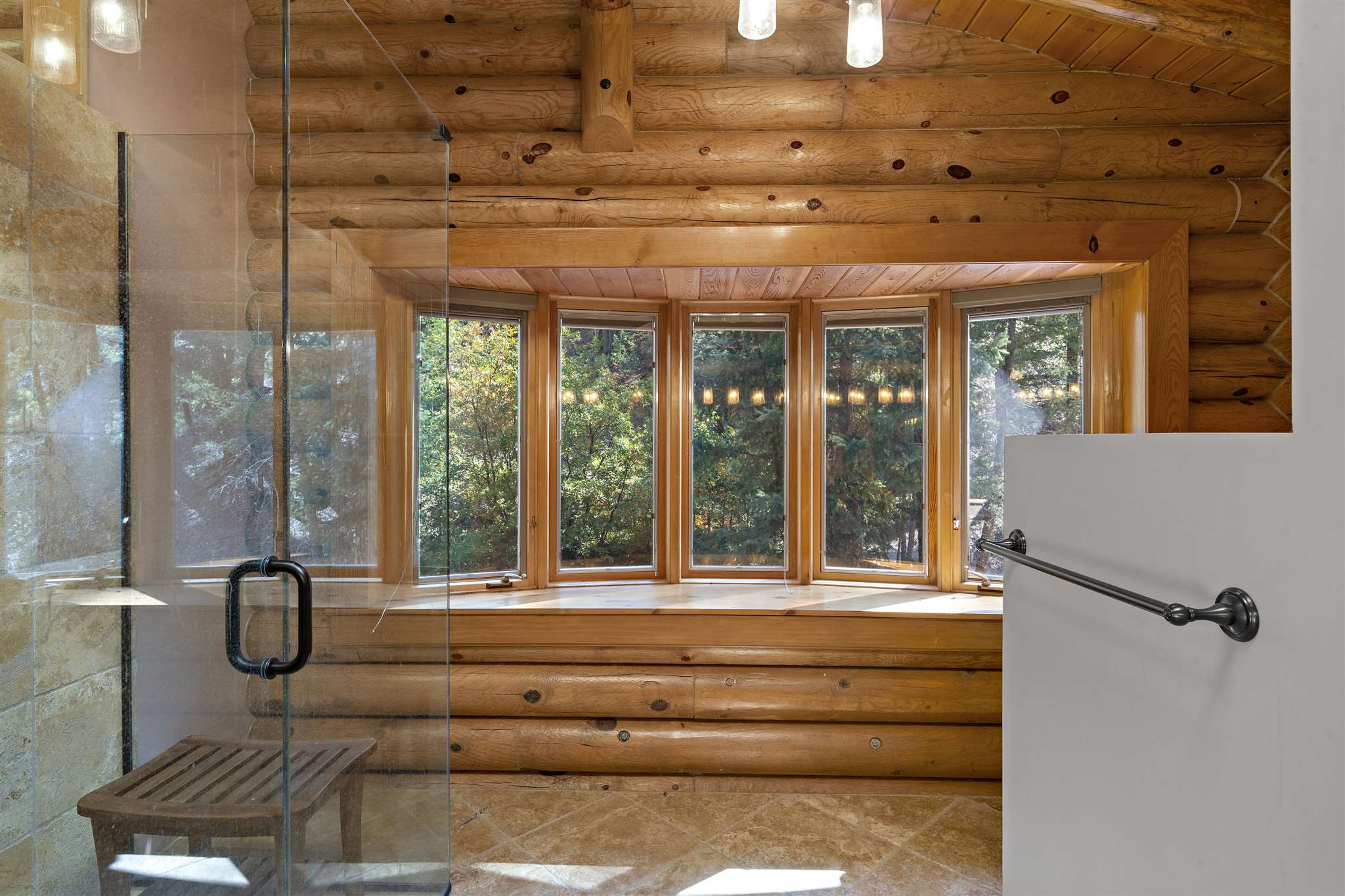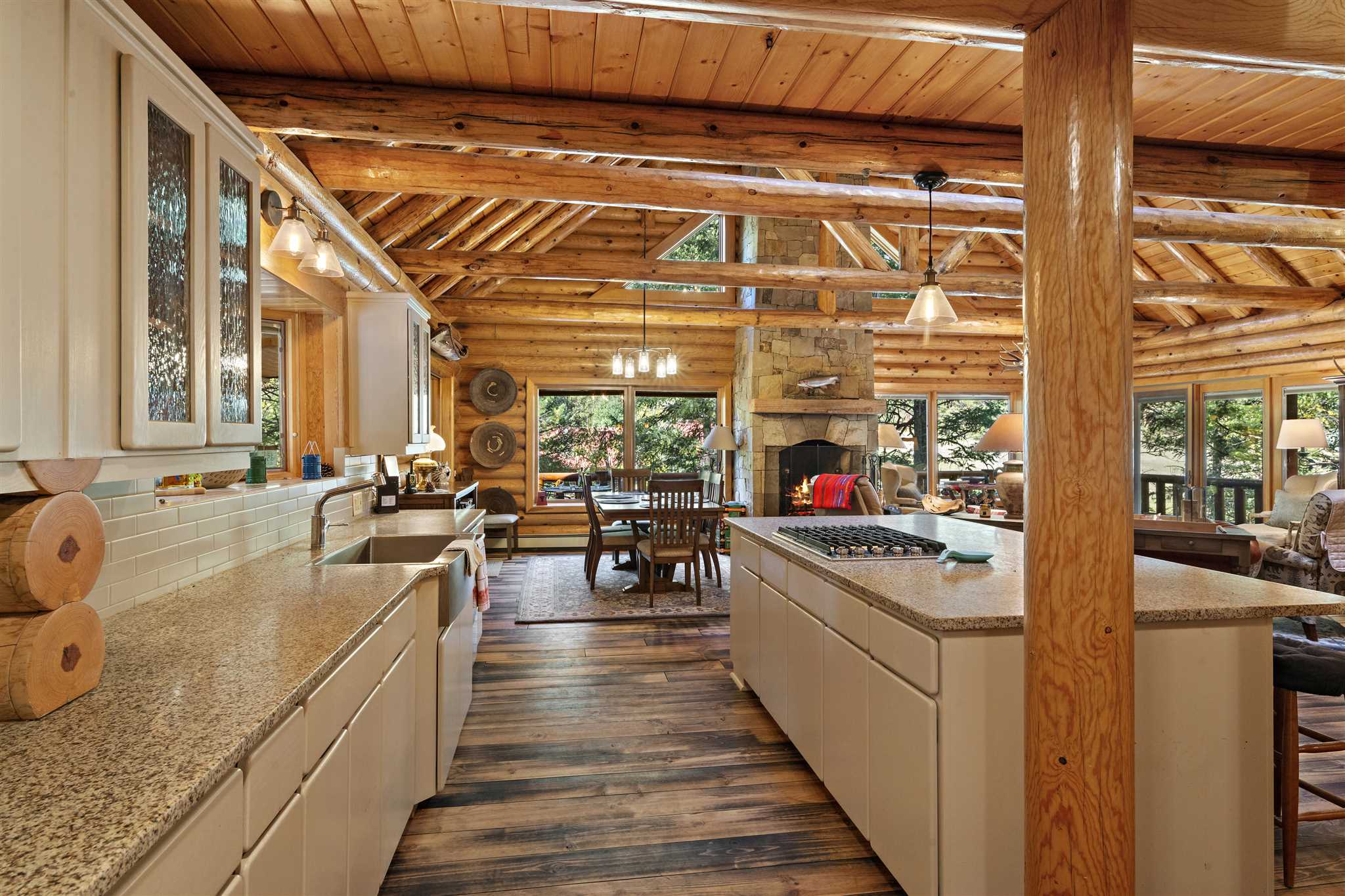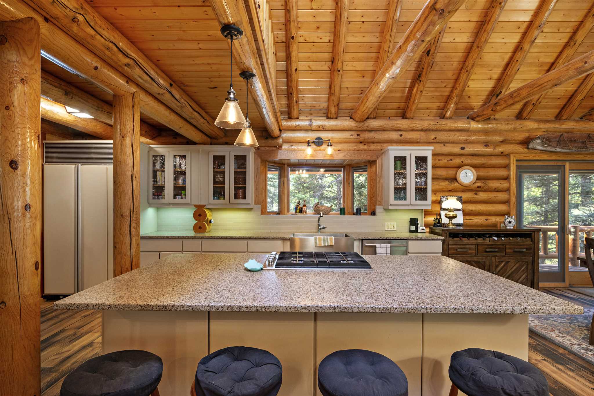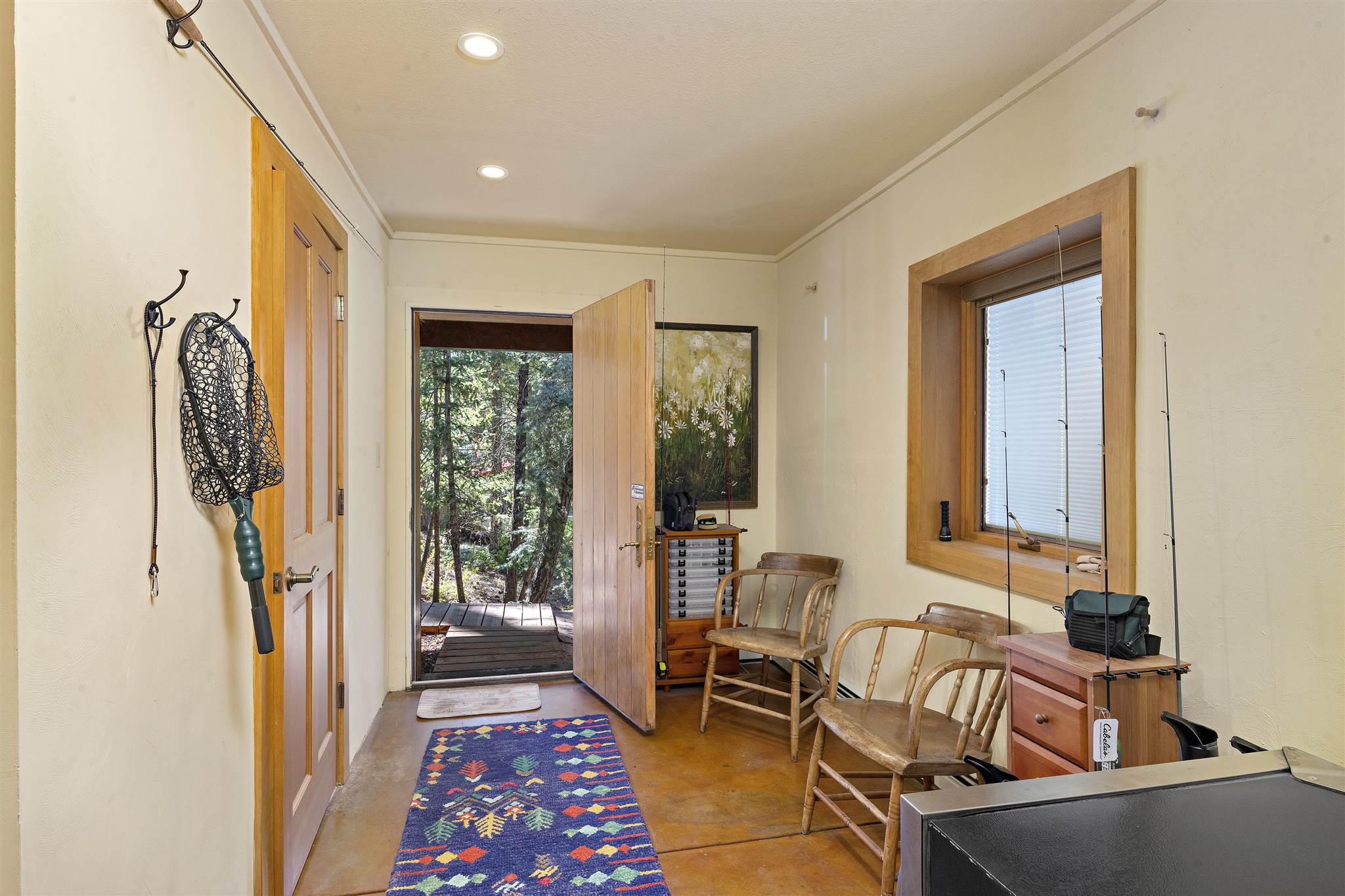 Rare offering of one of the most privately sited cabins in Tres and close proximity to the Santa Fe National Forest. This beautiful log cabin is perched above the river and tucked into the towering pines. Enjoy the sounds and sights of the mountains from within or from the covered and open wraparound deck. The main level features open concept dining, living and kitchen with a stone faced, wood-burning fireplace, spacious guest bedroom and three quarter bathroom. Upstairs is reserved for the master suite with a luxurious master bathroom and two small balconies to enjoy the crisp mountain air. The lower level, walk out basement features a bunk bedroom with a full bathroom, plus a fly fishing staging area, perfect for putting on waders and heading out to fish! Tres Lagunas offers excellent fly fishing access to owners and their guests, over one third of a mile of the Pecos River, 3 stocked ponds, on-site caretakers, all make for a wonderful retreat less than an hour from Santa Fe.