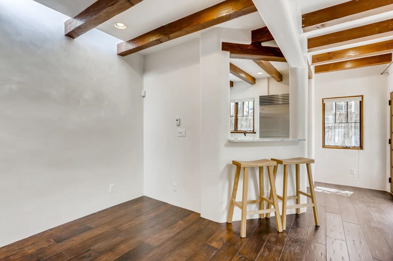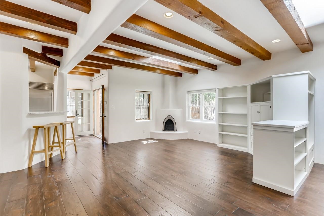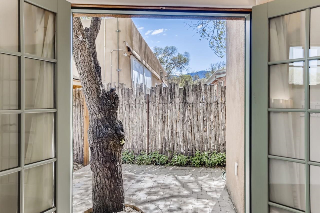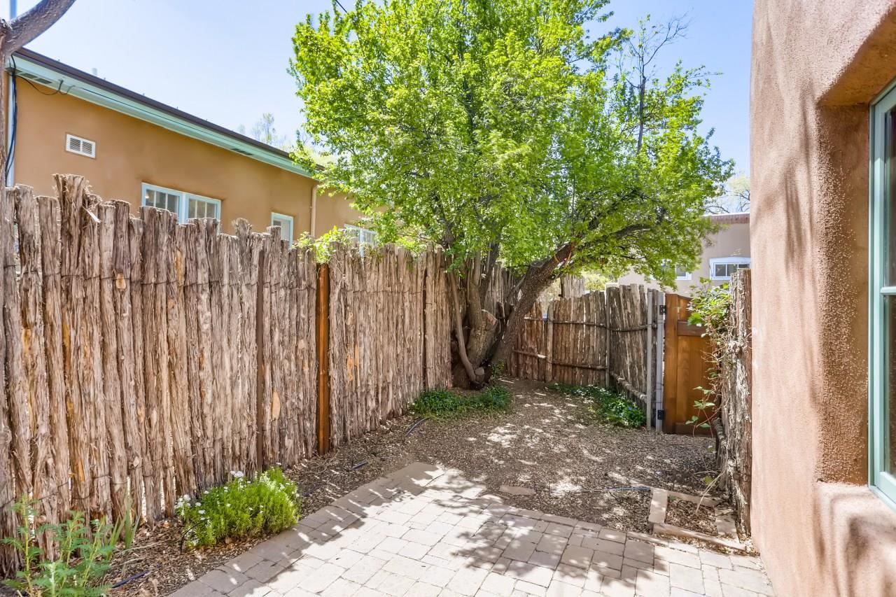 Rare find in the heart of the old east-side. This quintessential adobe (and frame) home is quietly tucked off the historic Acequia Madre stream and was gutted and restored 13 years ago to the elegant home it is today. The interior of the property is Santa Fe charming yet contemporary, light and functional. Generous and gorgeous kitchen space with top of the line appliances. Counter surfaces throughout are a tasteful marble and the floors are a warm wood plank and tile flooring. Lovely and private master suite opens up to a patio. Numerous upgrades include in-floor radiant heat, kiva fireplace, numerous skylights, custom cabinetry, beamed ceilings, central vac system and tasteful storage tucked behind the home. Intimate and private outdoor patios for warm weather dining or a quiet space to read a book with a glass of wine. After a long day, its only a few short steps to some of Santa Fe's most popular galleries and restaurants or walk to the plaza for evening entertainment, shopping or one of the many on-going annual activities.