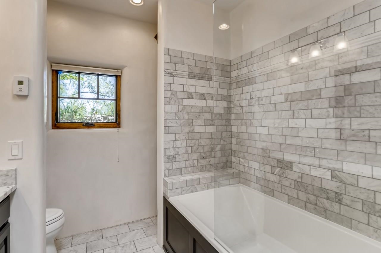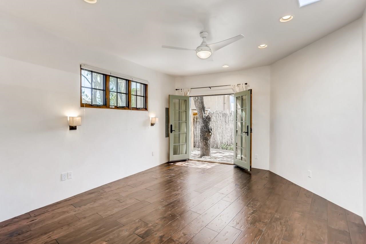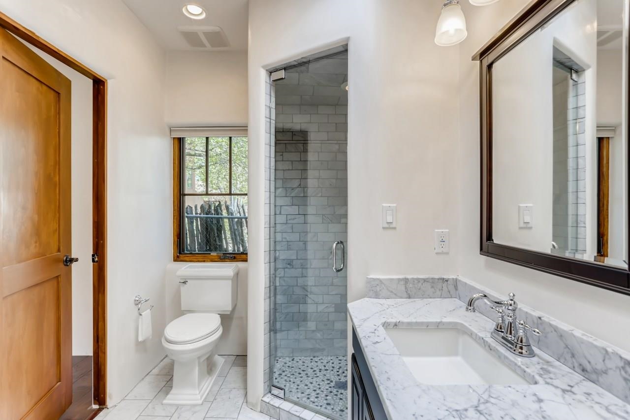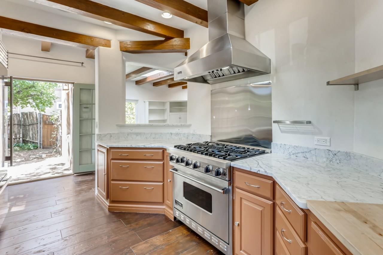 Rare find in the heart of the old east-side. This quintessential adobe (and frame) home is quietly tucked off the historic Acequia Madre stream and was gutted and restored 13 years ago to the elegant home it is today. The interior of the property is Santa Fe charming yet contemporary, light and functional. Generous and gorgeous kitchen space with top of the line appliances. Counter surfaces throughout are a tasteful marble and the floors are a warm wood plank and tile flooring. Lovely and private master suite opens up to a patio. Numerous upgrades include in-floor radiant heat, kiva fireplace, numerous skylights, custom cabinetry, beamed ceilings, central vac system and tasteful storage tucked behind the home. Intimate and private outdoor patios for warm weather dining or a quiet space to read a book with a glass of wine. After a long day, its only a few short steps to some of Santa Fe's most popular galleries and restaurants or walk to the plaza for evening entertainment, shopping or one of the many on-going annual activities.