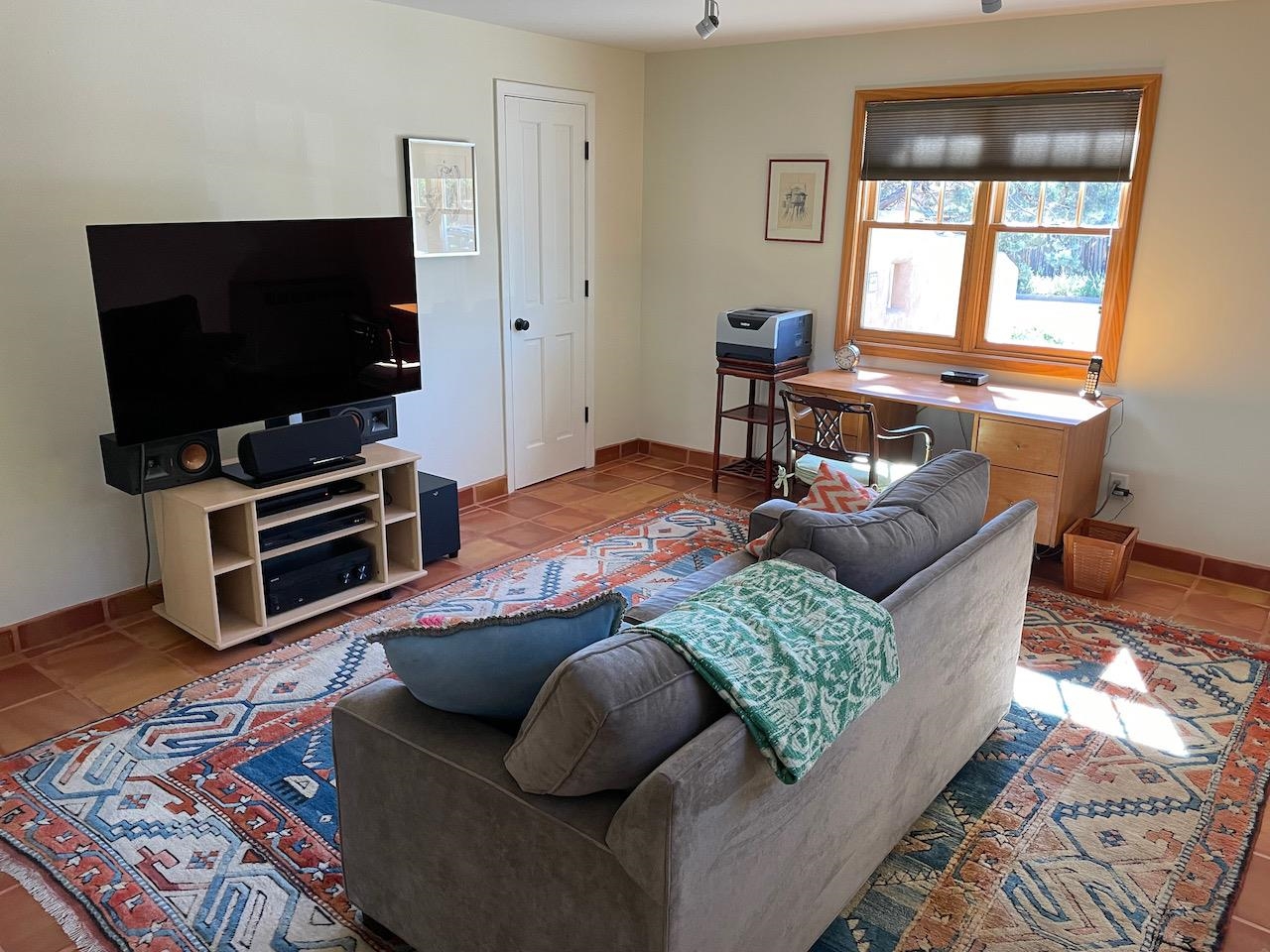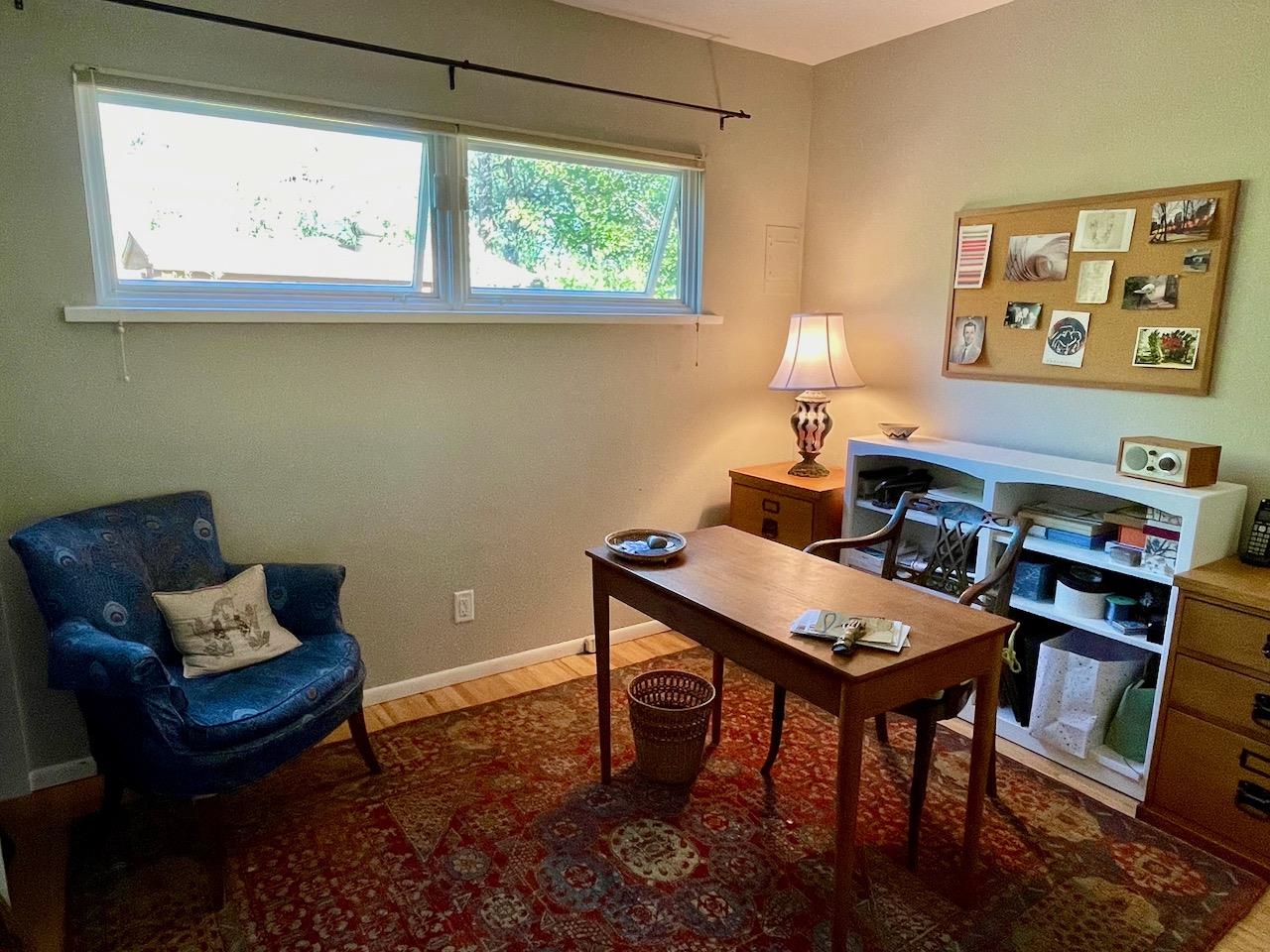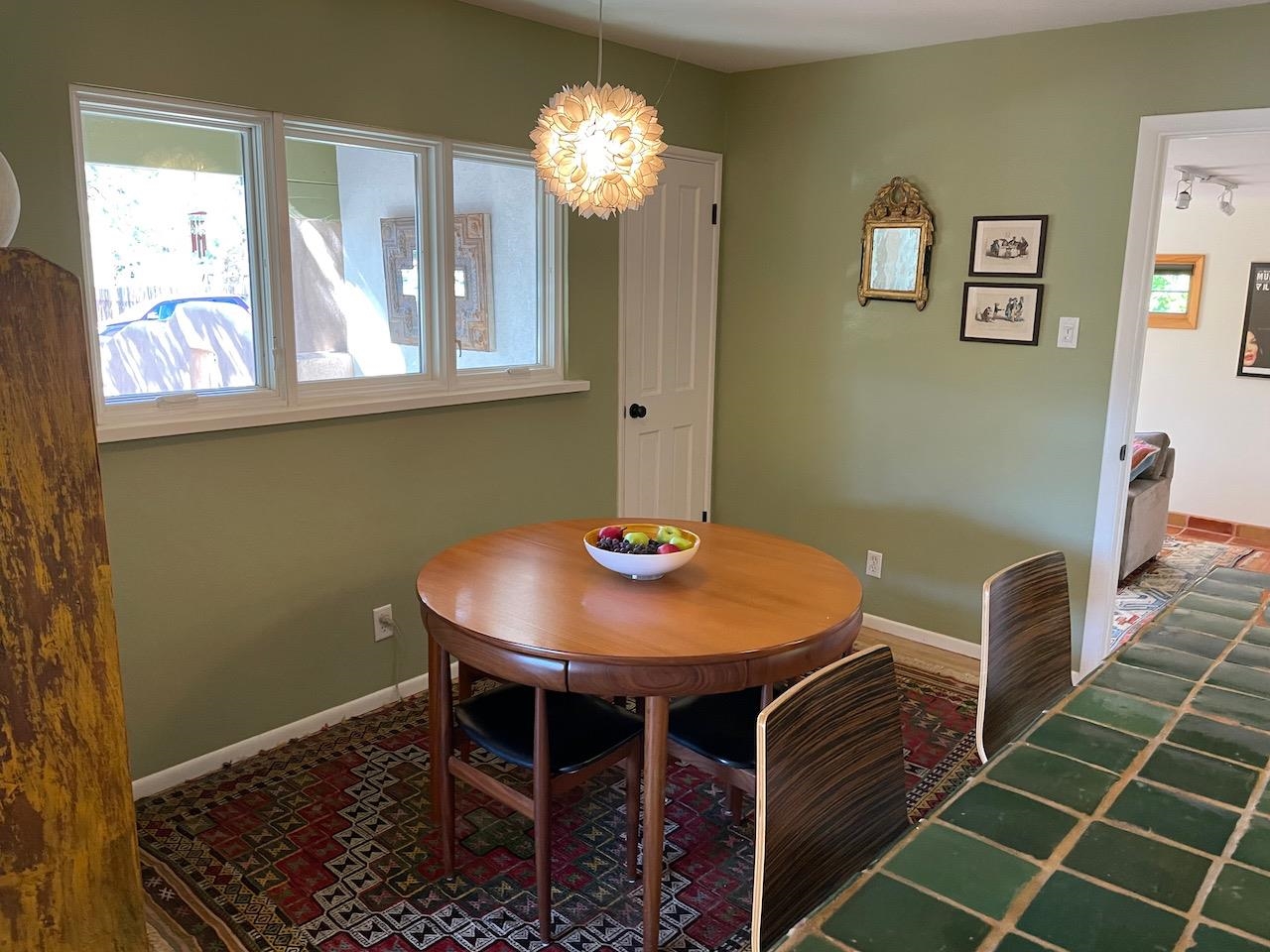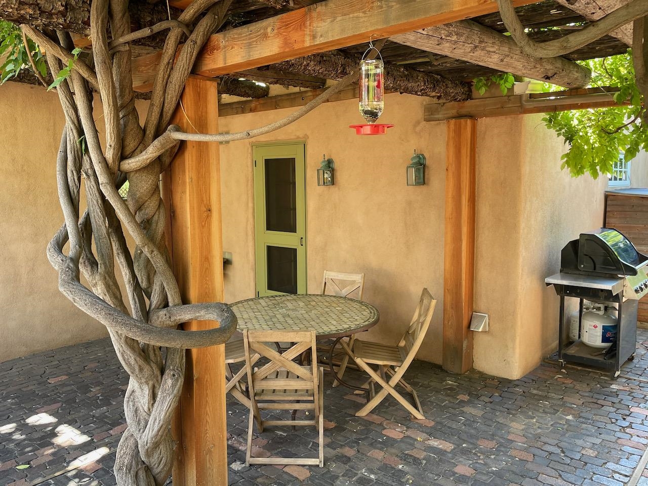 Five minutes to downtown, a few blocks from the dog park, and a short walk to the amenities of the Solana Center, this charming Stamm house has been lovingly cared for and updated. Enter the walled property through a side gate into a shaded enclave with two enormous Arizona cypress trees. The front porch is a cool and inviting spot for coffee. Within the open floor plan house are classic Stamm features, including gleaming wood floors, a corner kiva fireplace, and easy, practical flow from room to room. Enjoy the leafy view from the living room's bay window. Upgrades include Pella windows throughout, a 2018 silicon roof (with warranty), a newer furnace, stucco within ten years, and built-in bookcases. The large, light-filled den includes a half-bath and a laundry/utility closet; it opens to the rear brick patio, shaded by a wisteria arbor. The entire property has been fully landscaped by the current owner, a Master Gardener, with a sensitive blend of plantings, including many native to our region, for four seasons of texture and beauty. The ventilated storage unit is well-camouflaged by trees. Spacious off-street parking for two vehicles.