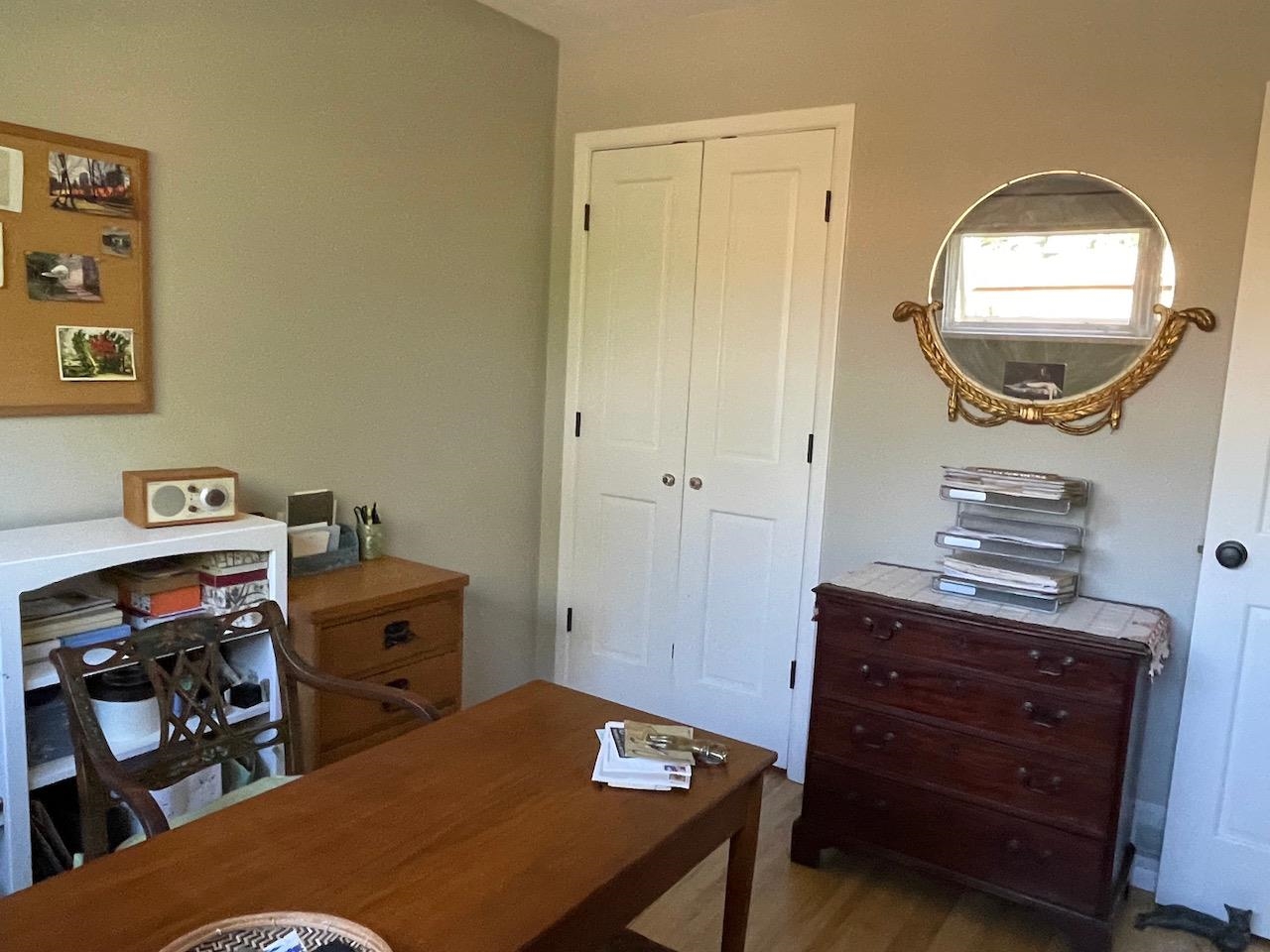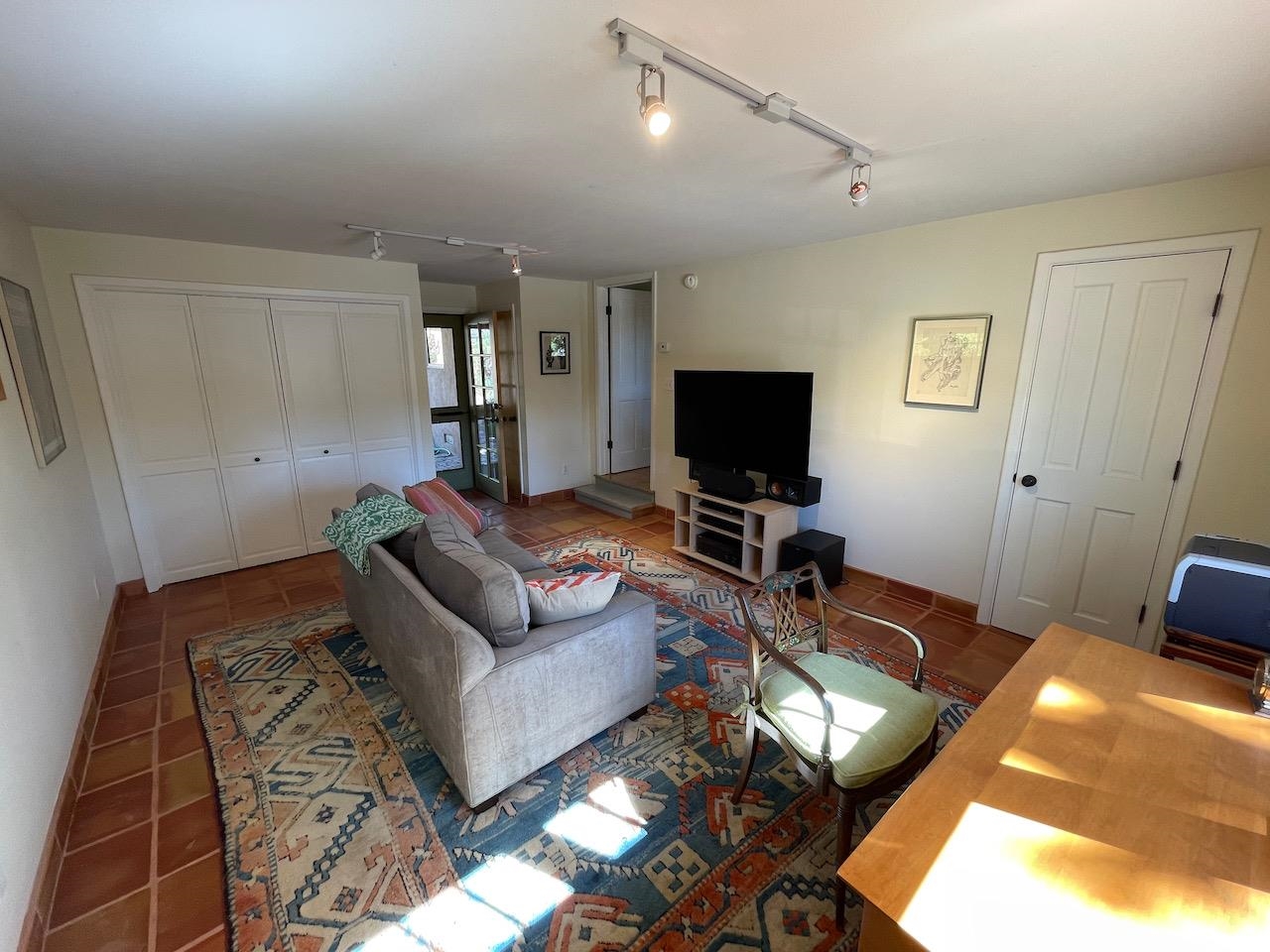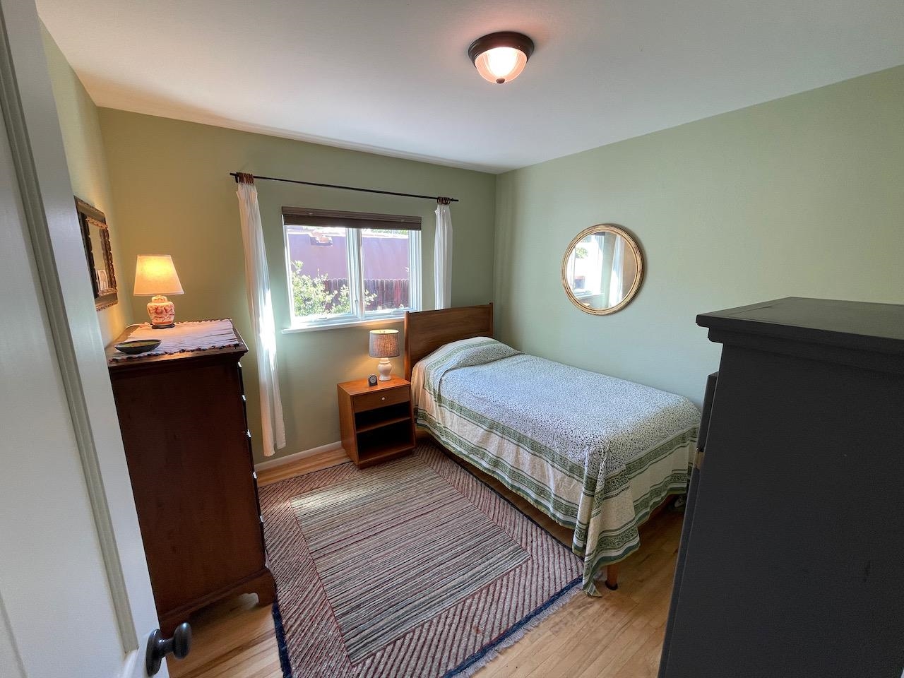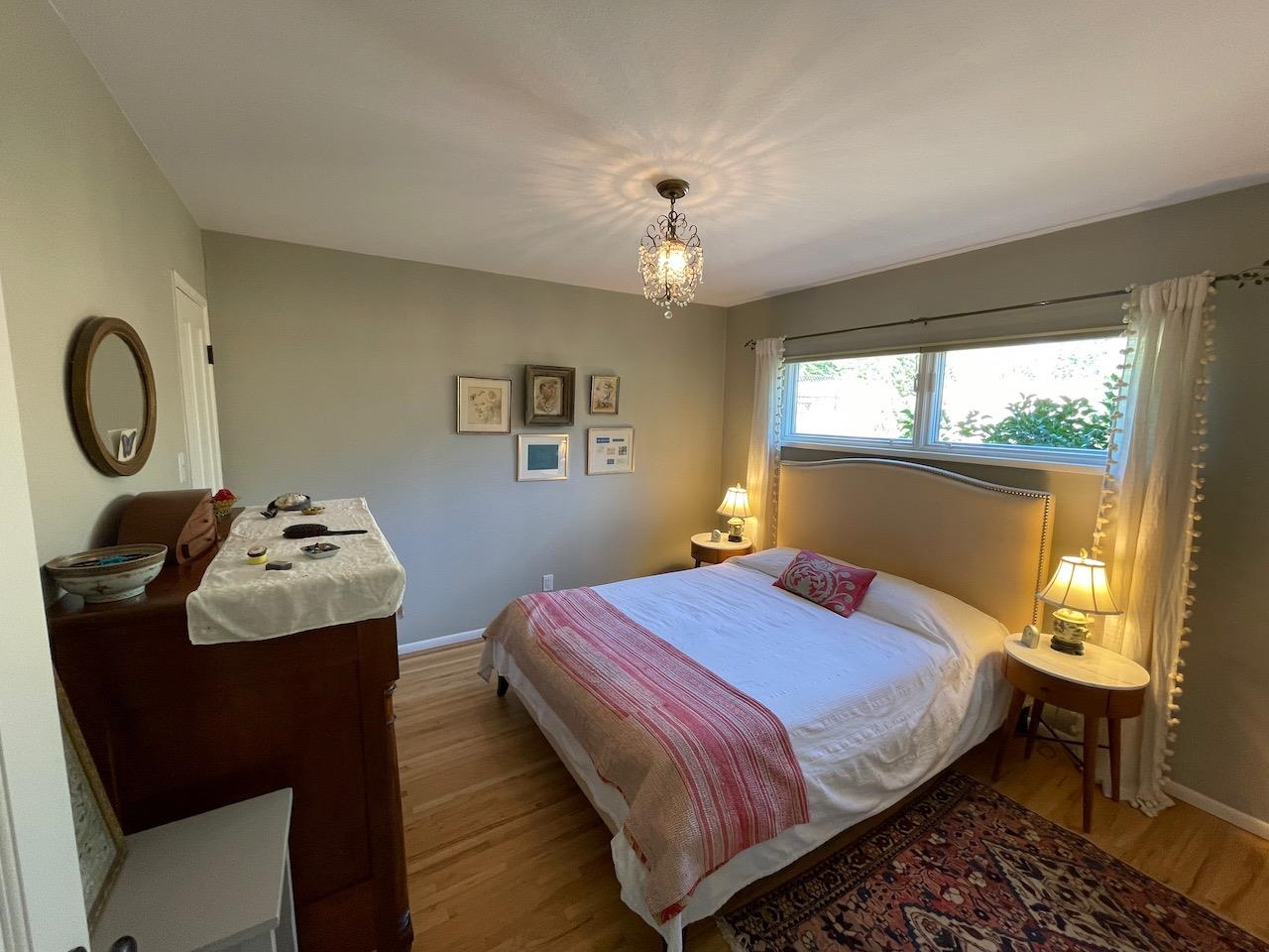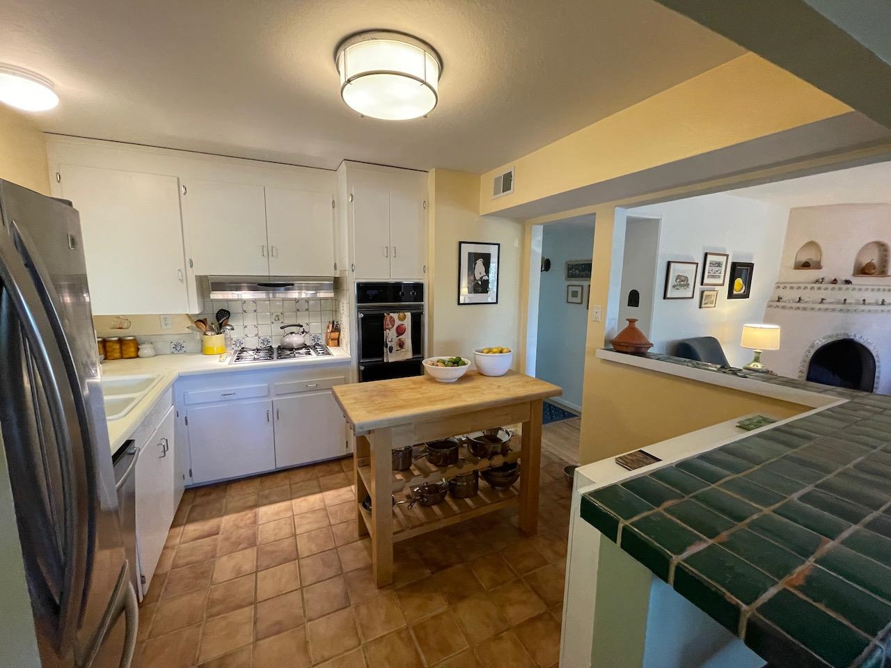 Five minutes to downtown, a few blocks from the dog park, and a short walk to the amenities of the Solana Center, this charming Stamm house has been lovingly cared for and updated. Enter the walled property through a side gate into a shaded enclave with two enormous Arizona cypress trees. The front porch is a cool and inviting spot for coffee. Within the open floor plan house are classic Stamm features, including gleaming wood floors, a corner kiva fireplace, and easy, practical flow from room to room. Enjoy the leafy view from the living room's bay window. Upgrades include Pella windows throughout, a 2018 silicon roof (with warranty), a newer furnace, stucco within ten years, and built-in bookcases. The large, light-filled den includes a half-bath and a laundry/utility closet; it opens to the rear brick patio, shaded by a wisteria arbor. The entire property has been fully landscaped by the current owner, a Master Gardener, with a sensitive blend of plantings, including many native to our region, for four seasons of texture and beauty. The ventilated storage unit is well-camouflaged by trees. Spacious off-street parking for two vehicles.