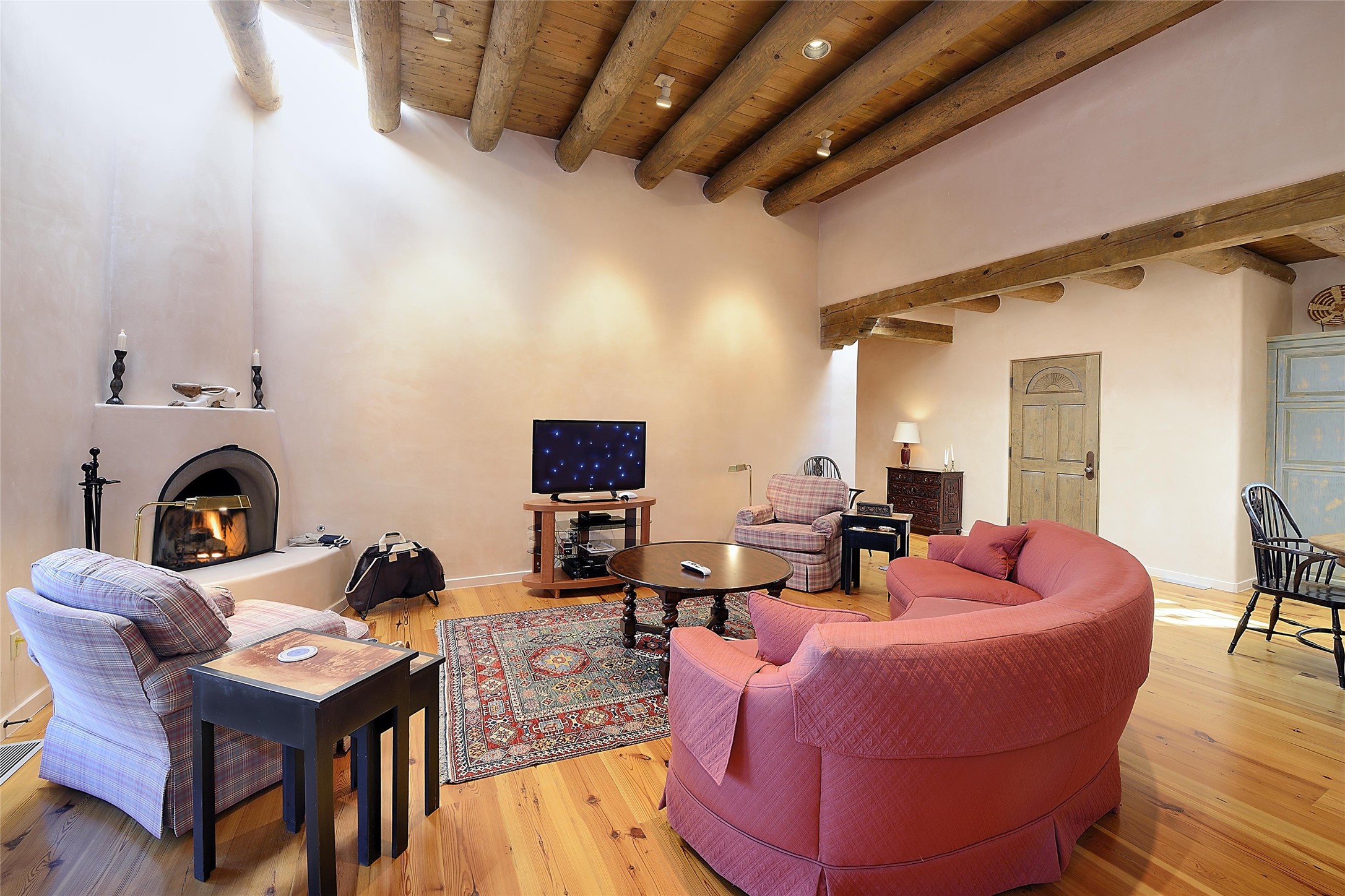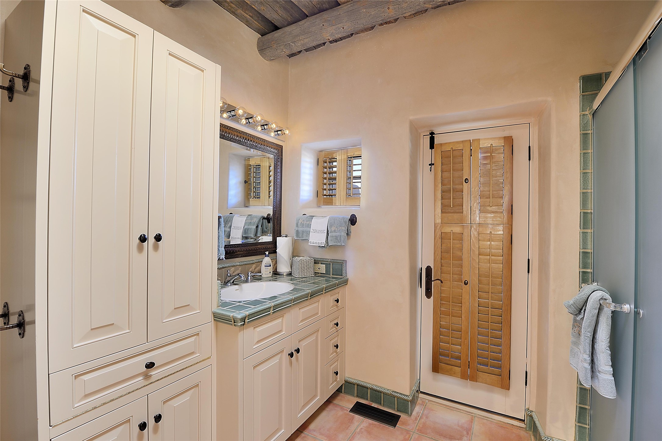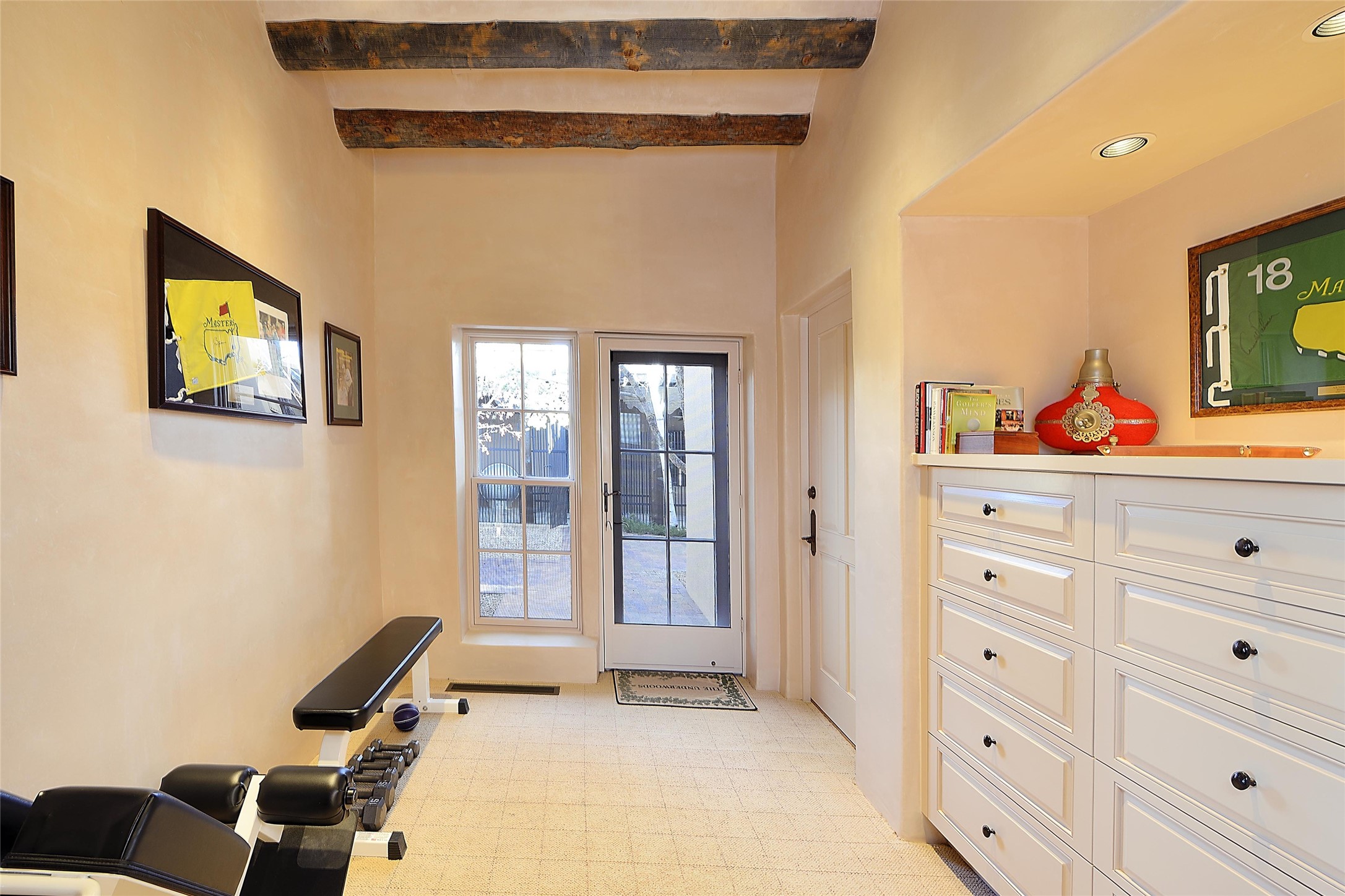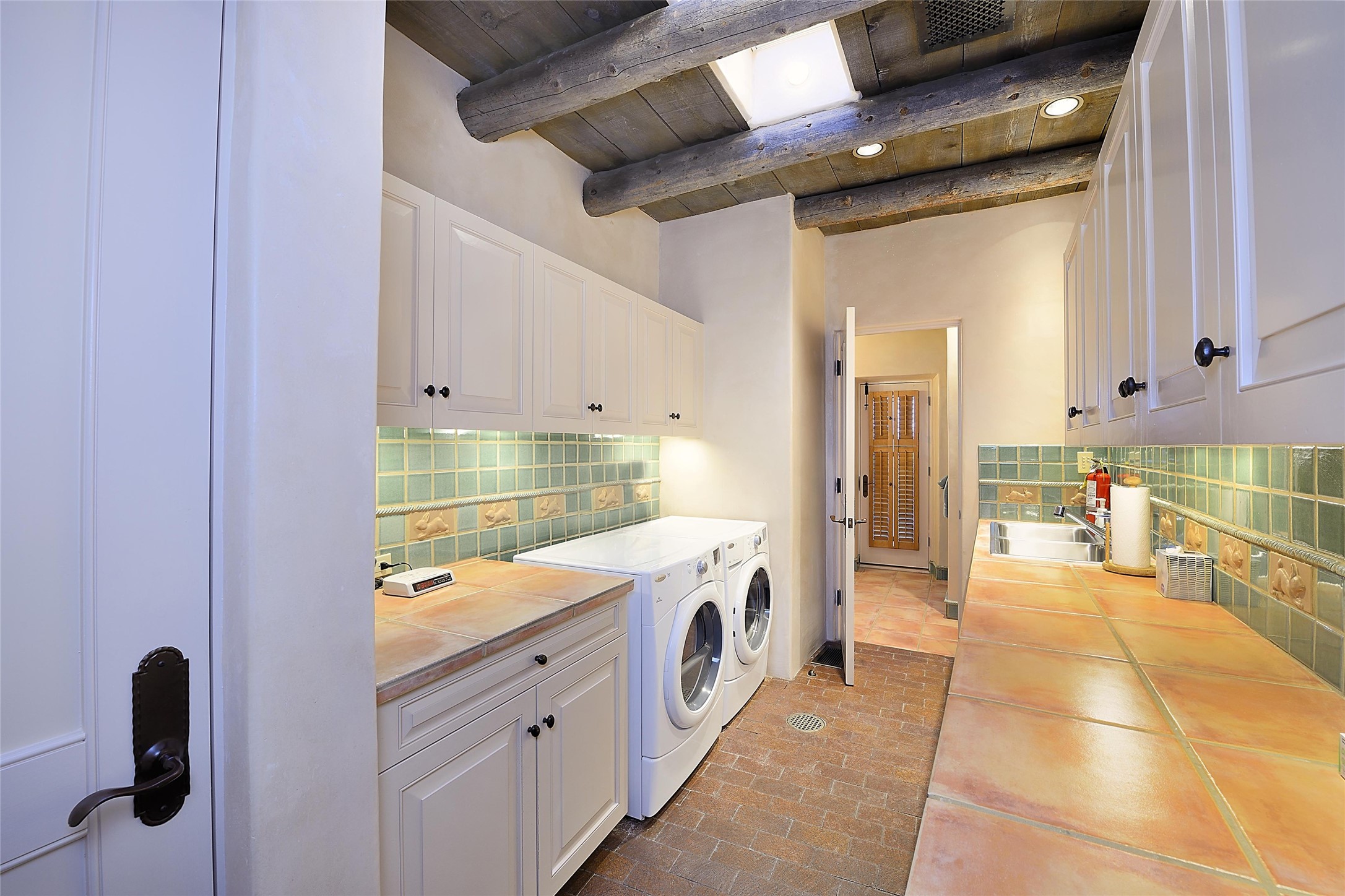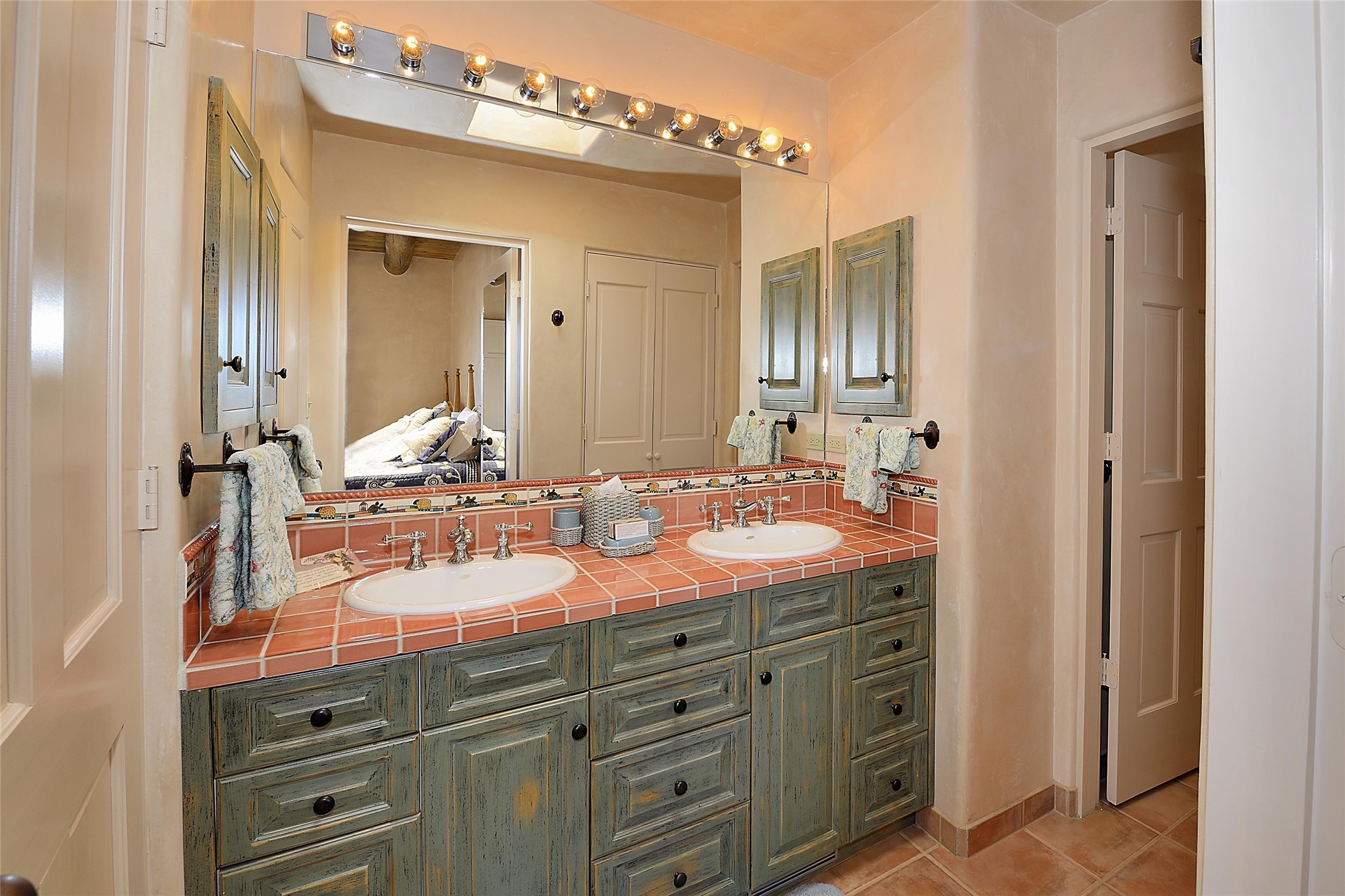 A majestic private getaway in the exclusive community of Las Campanas, the 5.05-acre estate known as Feliciana encompasses an impressive main residence of some 9,588 square feet and an inviting guesthouse of 1,800 square feet with two bedrooms, a great room and kitchen, and its own portal and garage. Equally ideal for grand entertaining and peaceful Santa Fe living, the residence is replete with timeless Southwestern details, including hardwood and brick floors; ceilings with dramatic vigas, beams, and latillas; skylights; bancos; lighted art nichos; and fireplaces in classical and traditional kiva styles. Highlights include a grand living room, formal and casual dining space, a wet bar, a charming kitchen with a butler's pantry and an outdoor grilling area, a secluded owner's suite, a guest wing with its own living area, a pet courtyard and bathing area, and two garages. Ideally sited on the 15th fairway of the Sunrise course, the property offers sweeping golf course, mountain, and sunset views. An array of patios and portales--along with an enviable roof deck--allow for outdoor celebration and relaxation. Mature pines, juniper, aspens, and rolling Southwestern terrain envelop the home, as do numerous outdoor living spaces--both covered and open-air. Mature pines, juniper, aspens, and rolling Southwestern terrain envelop the home, as do numerous outdoor living spaces--both covered and open-air.