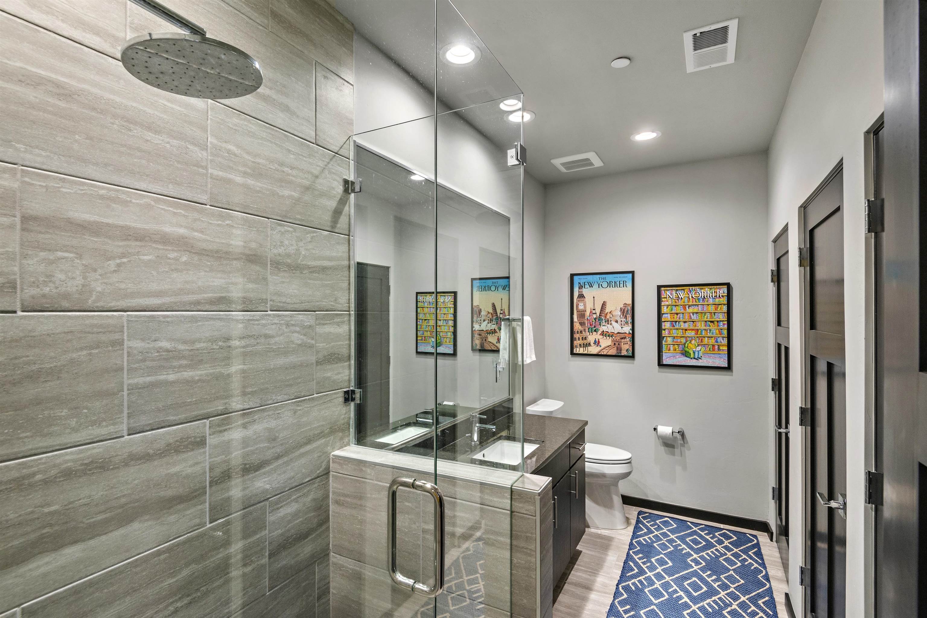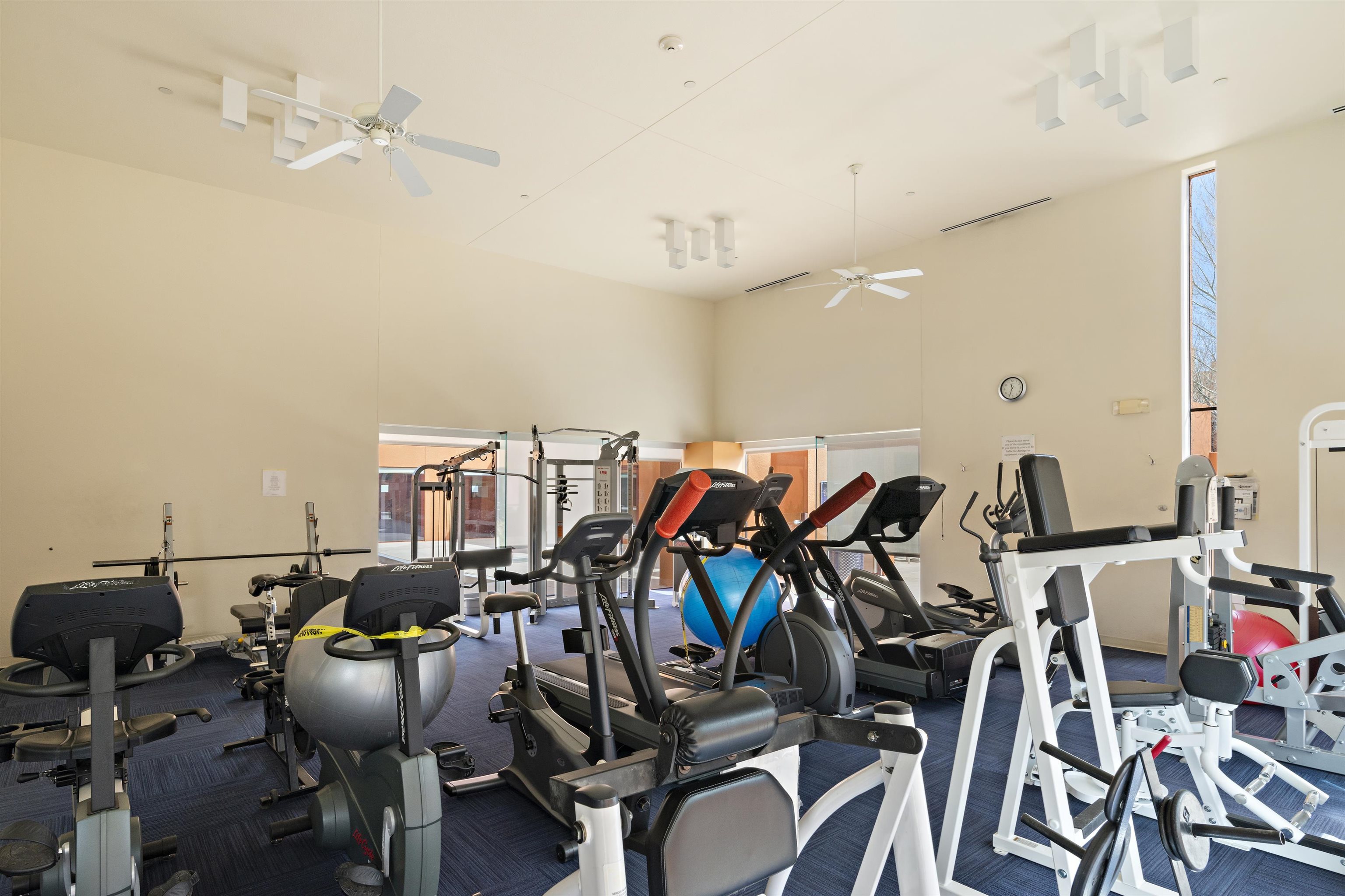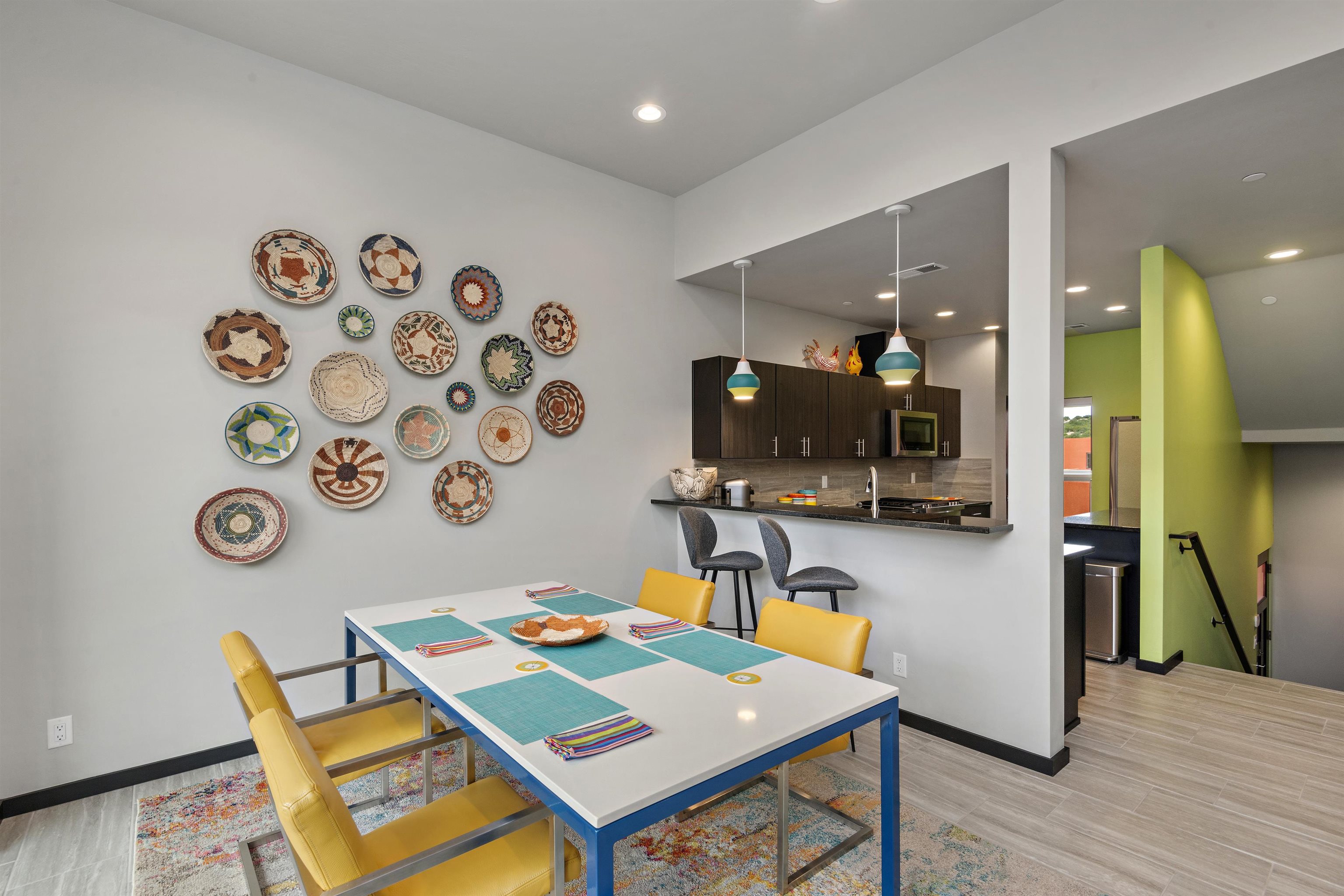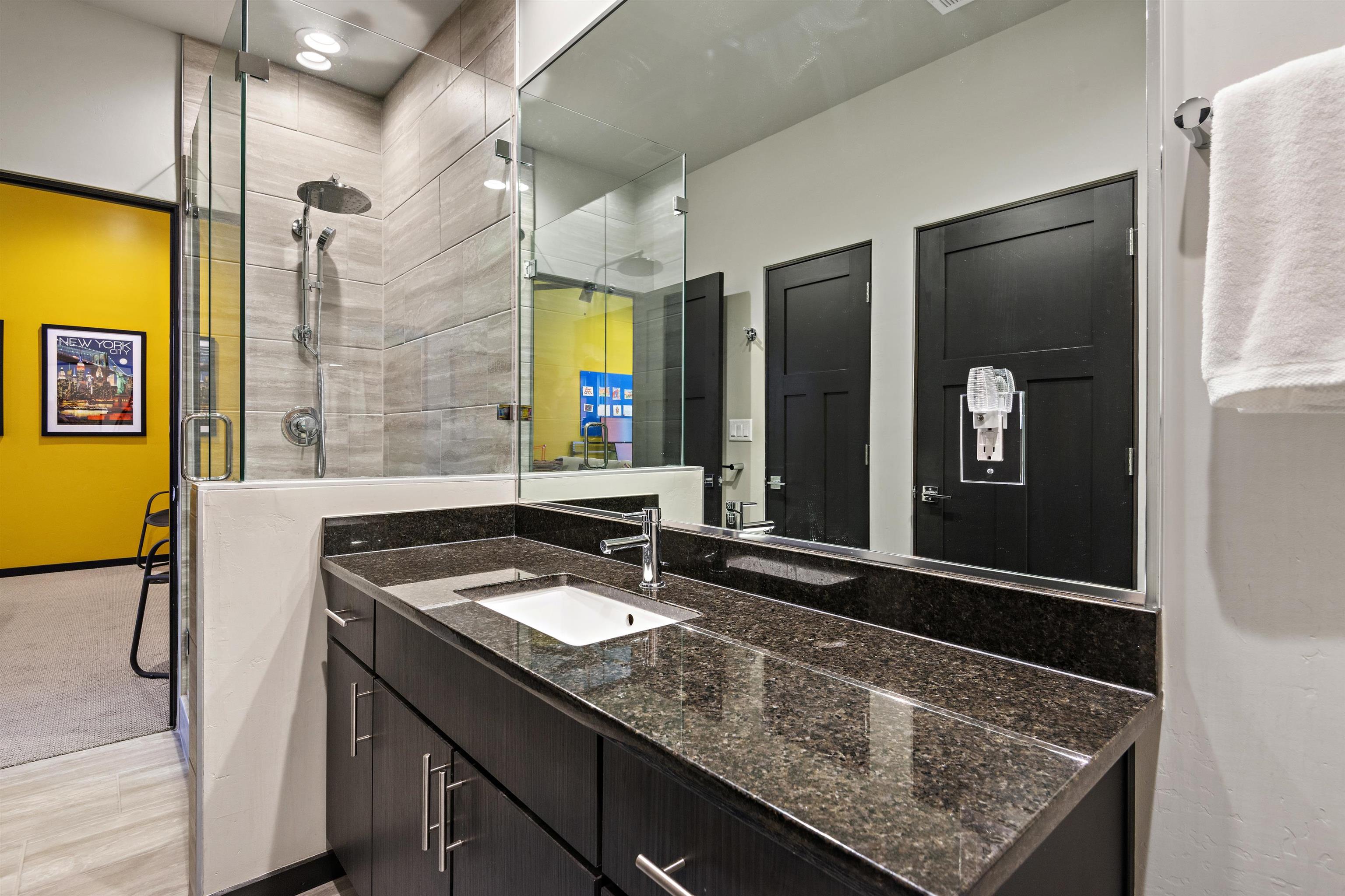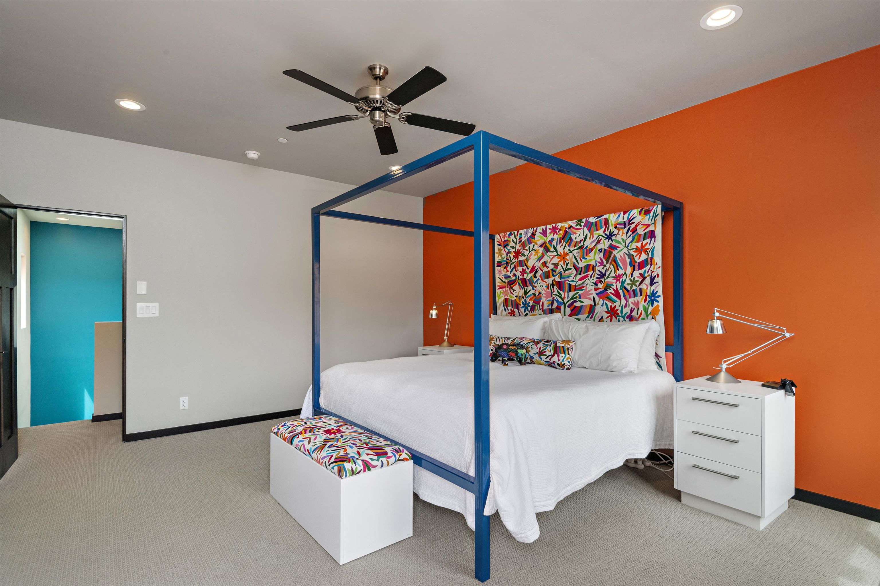Smashing contemporary residence in the latest completed phase of desirable Zocalo condominium community. The dramatic living/dining area has soaring ceilings, a gas log fireplace, and accesses a lovely portal & landscaped walled garden. A handsome, well-appointed & equipped kitchen completes the main level. The upper level 2 bedrooms & 2 baths have excellent separation, including a gracious owner's suite with private deck & 2-sided gas log fireplace. Its sleek bathroom has a double vanity, deep soaking tub & separate shower. A generous, high-ceilinged lower level third bedroom with en suite bath is currently enjoyed as a media room/office. Owners significantly elevated their home with important improvements & luxury upgrades, including a Carrier 240,000 btu condenser, 2 LG ductless split systems for 3-zone temperature control, patio tilework, drip irrigation, Hunter Douglas window treatments throughout, a remote shade at the sliding patio door, 3 Araknis Indoor Wireless Access units on each level, 11 standard light & 2 fan switches replaced with Lutron dimmers & fan controls, 4 recessed lights installed in a guestroom, carpet replaced with superior grade & acoustical padding. List, that includes additional improvements is provided in MLS "Documents" section. Zocalo amenities include two gyms, an outdoor seasonal pool, community party room, and evening security patrol. Less than10 minutes to markets, restaurants, museums, shops, & Santa Fe's abundant cultural activities.