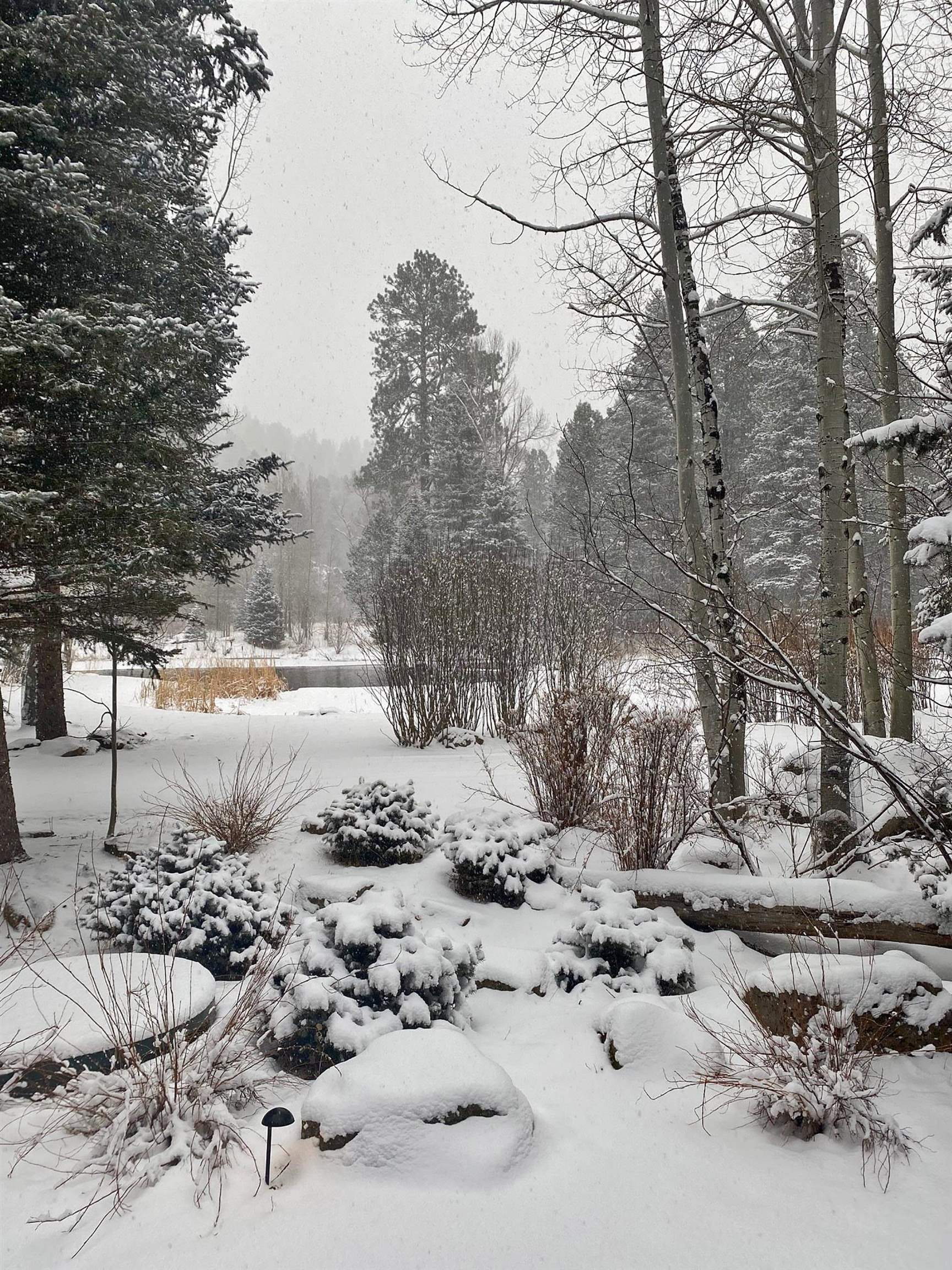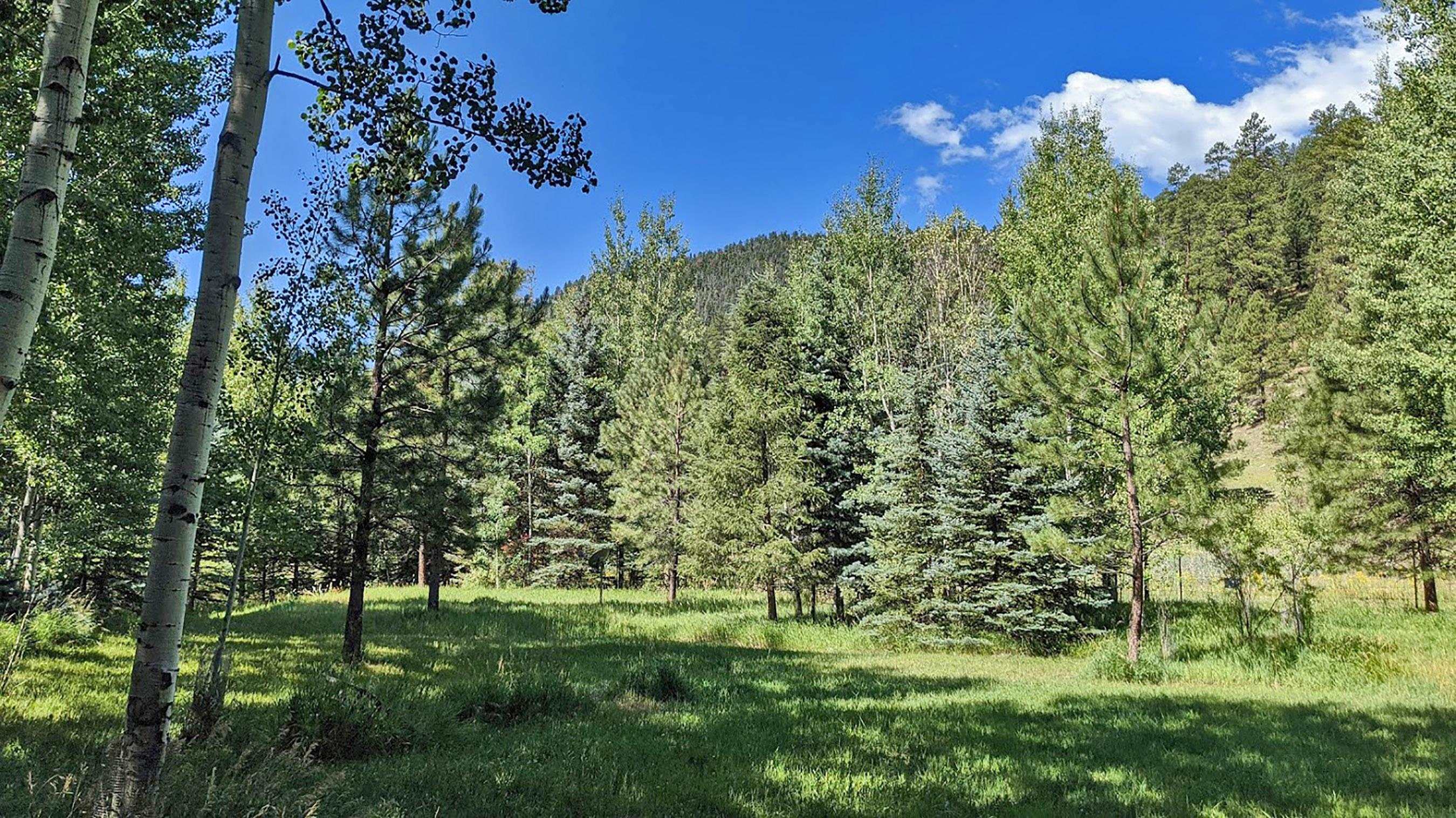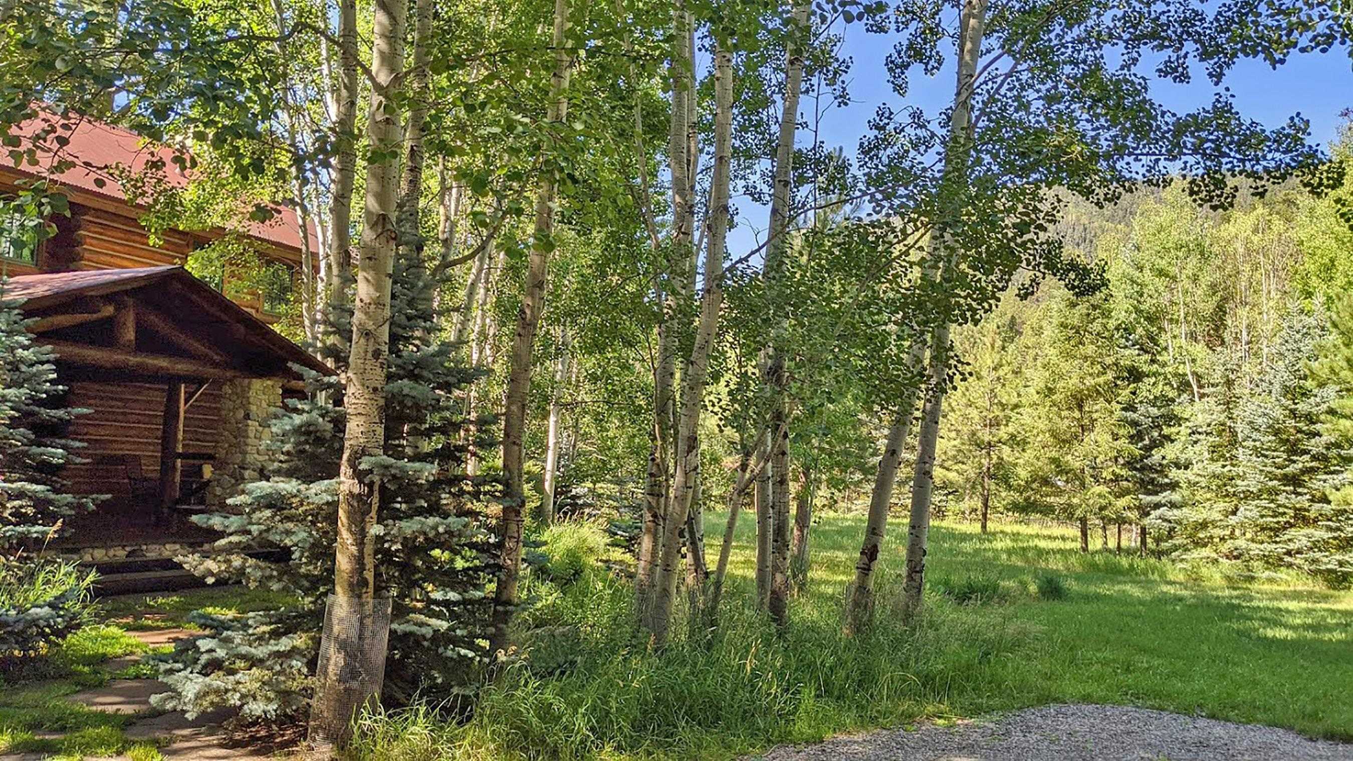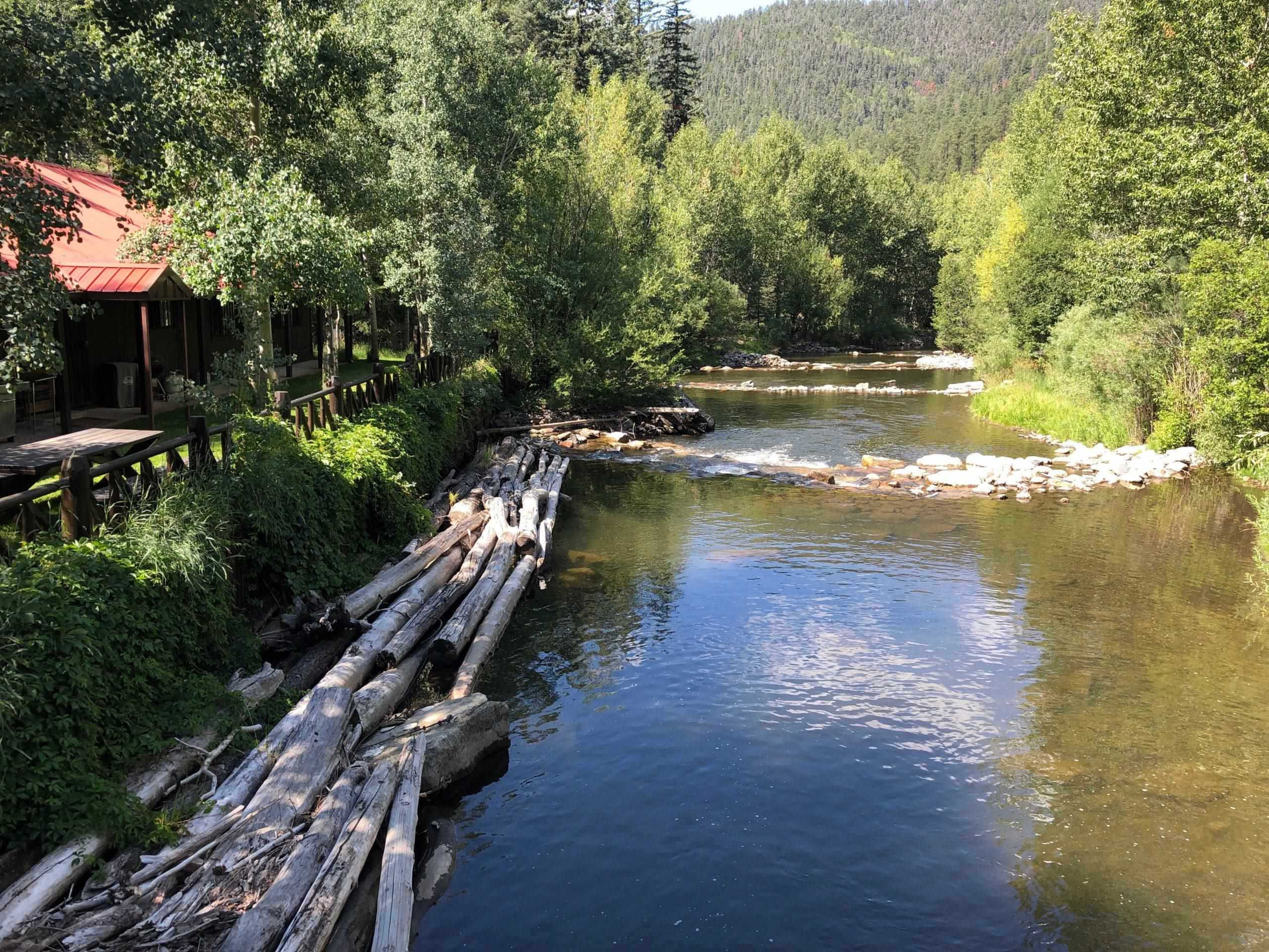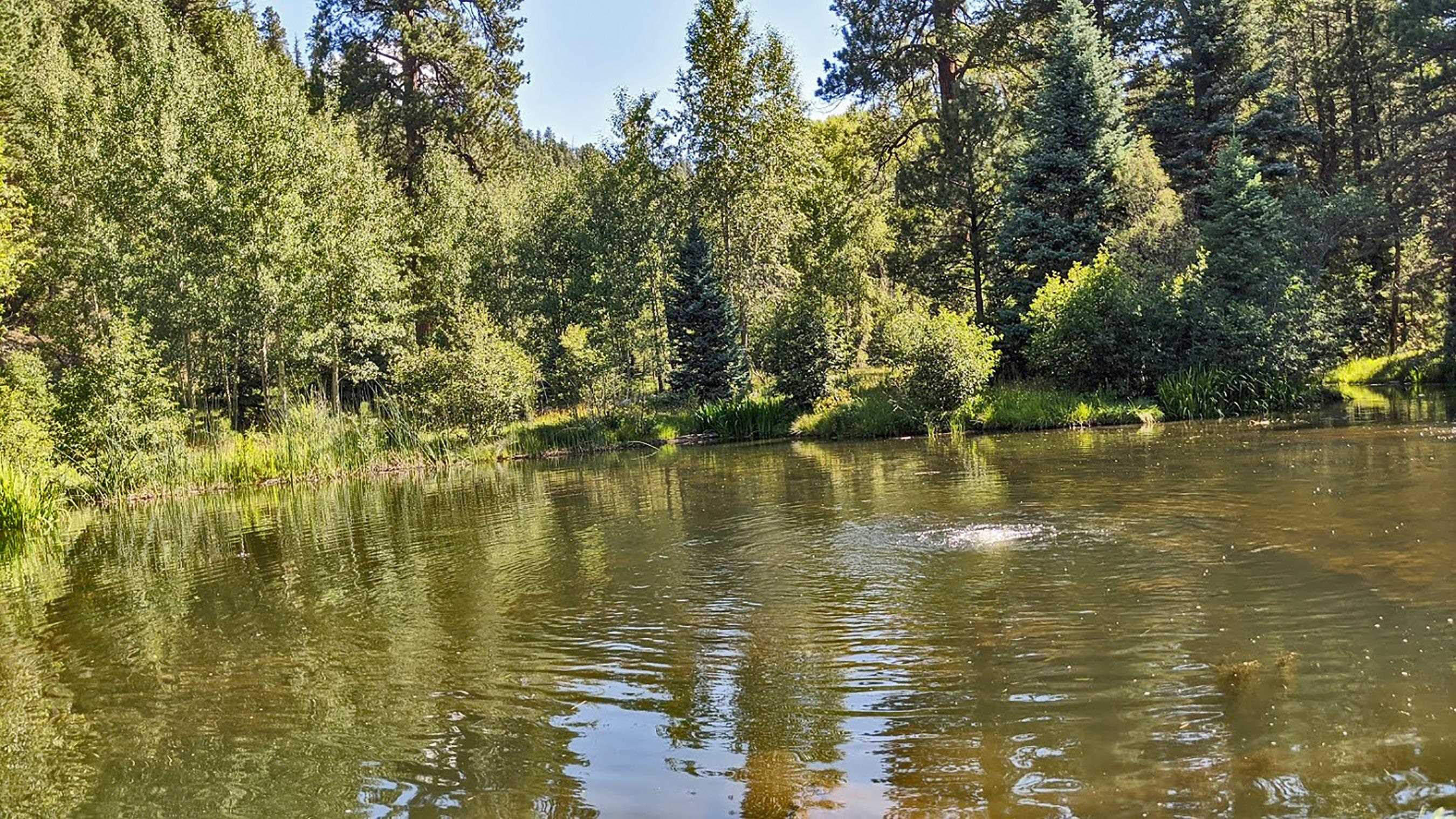 Amid the greenery and tall trees surrounding the legendary Pecos River, this trout lodge is a stylishly rustic getaway. A quintessential mountain cabin, it offers four bedrooms and baths, living and dining rooms, a game room, a breezy wraparound porch, and an upper-level screened porch. The carefully designed aesthetic brings to mind the stylings of Ralph Lauren and features soaring ceilings with sturdy beams and vigas, hardwood floors, and river rock fireplaces. Picturesque views of the iconic setting delight from nearly every vantage point year-round. The property-more than 27 private, fully fenced acres-borders national forest and includes a fishing center with a guest apartment, a caretaker's cabin, and a 2-car garage plus carport. The magnificent live water trout habitat, representing an investment of over $1MM, includes an acequia that feeds a pond that drains into spawning beds. Colorful flowers spring up in the warmer months, while deer and a wide variety of birds visit the land.