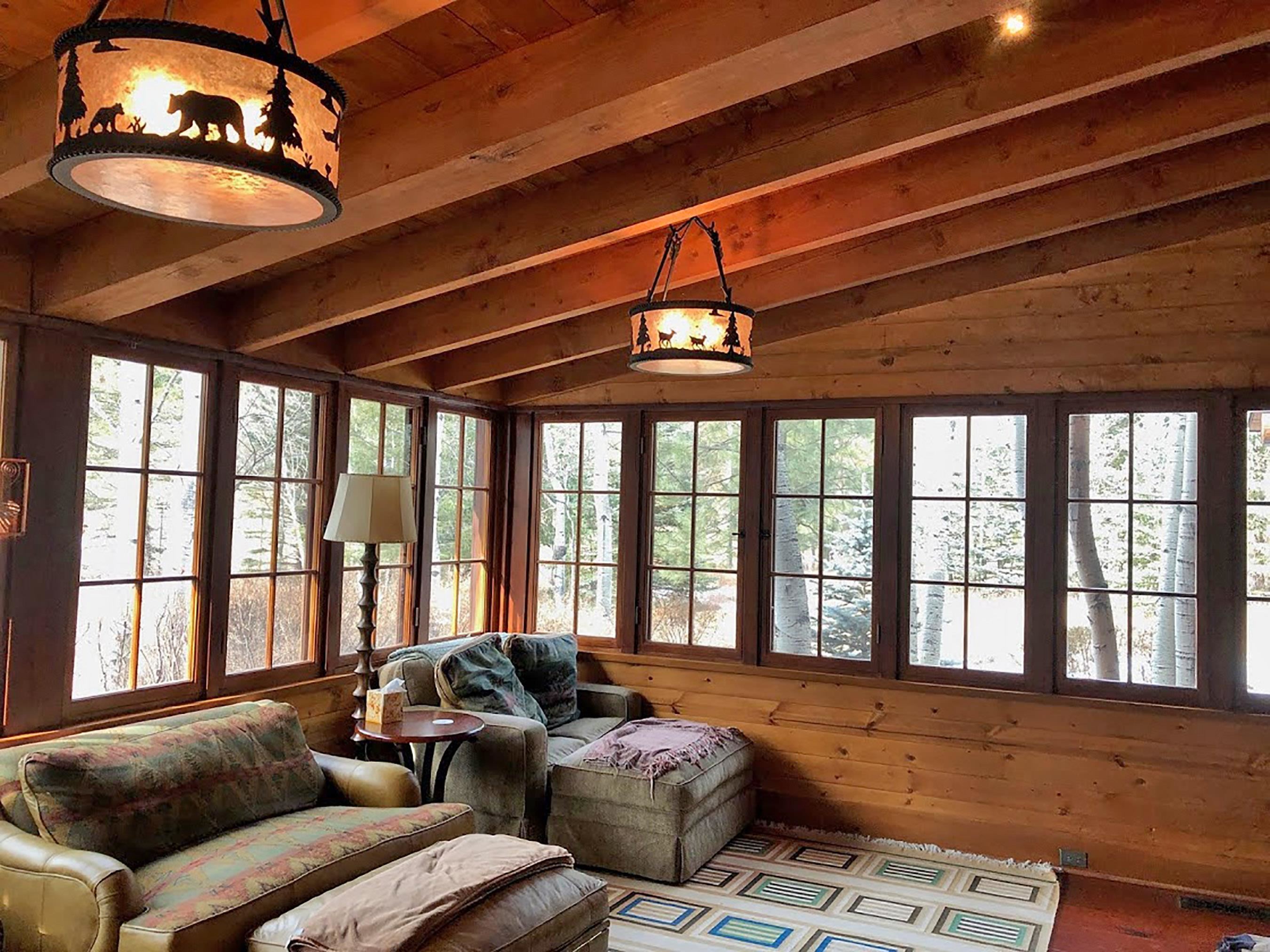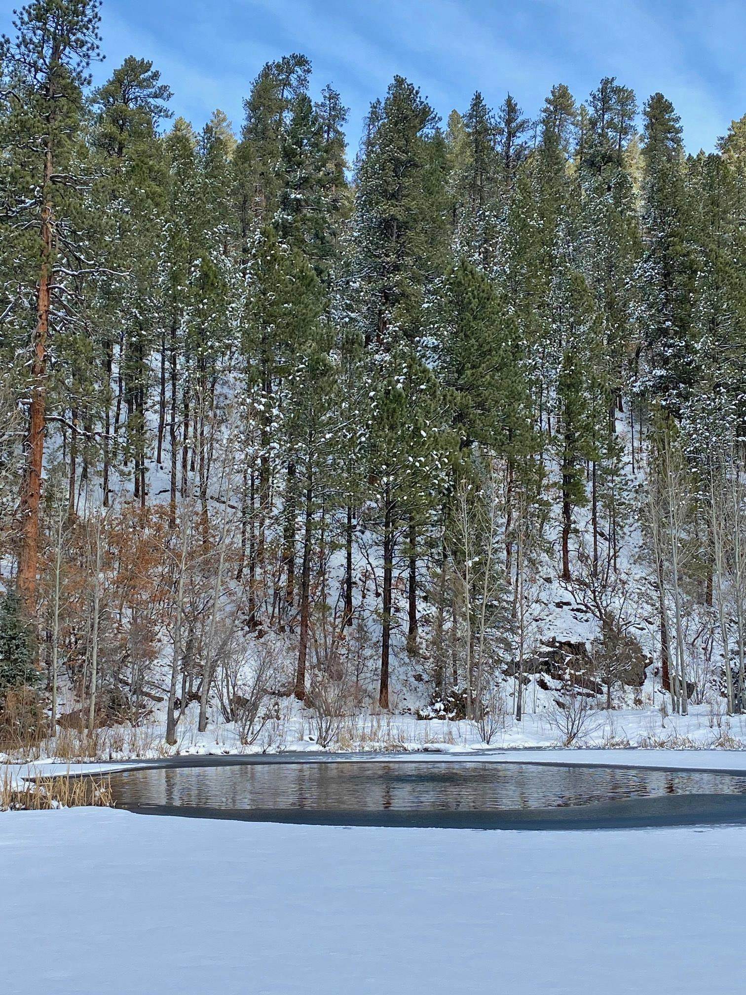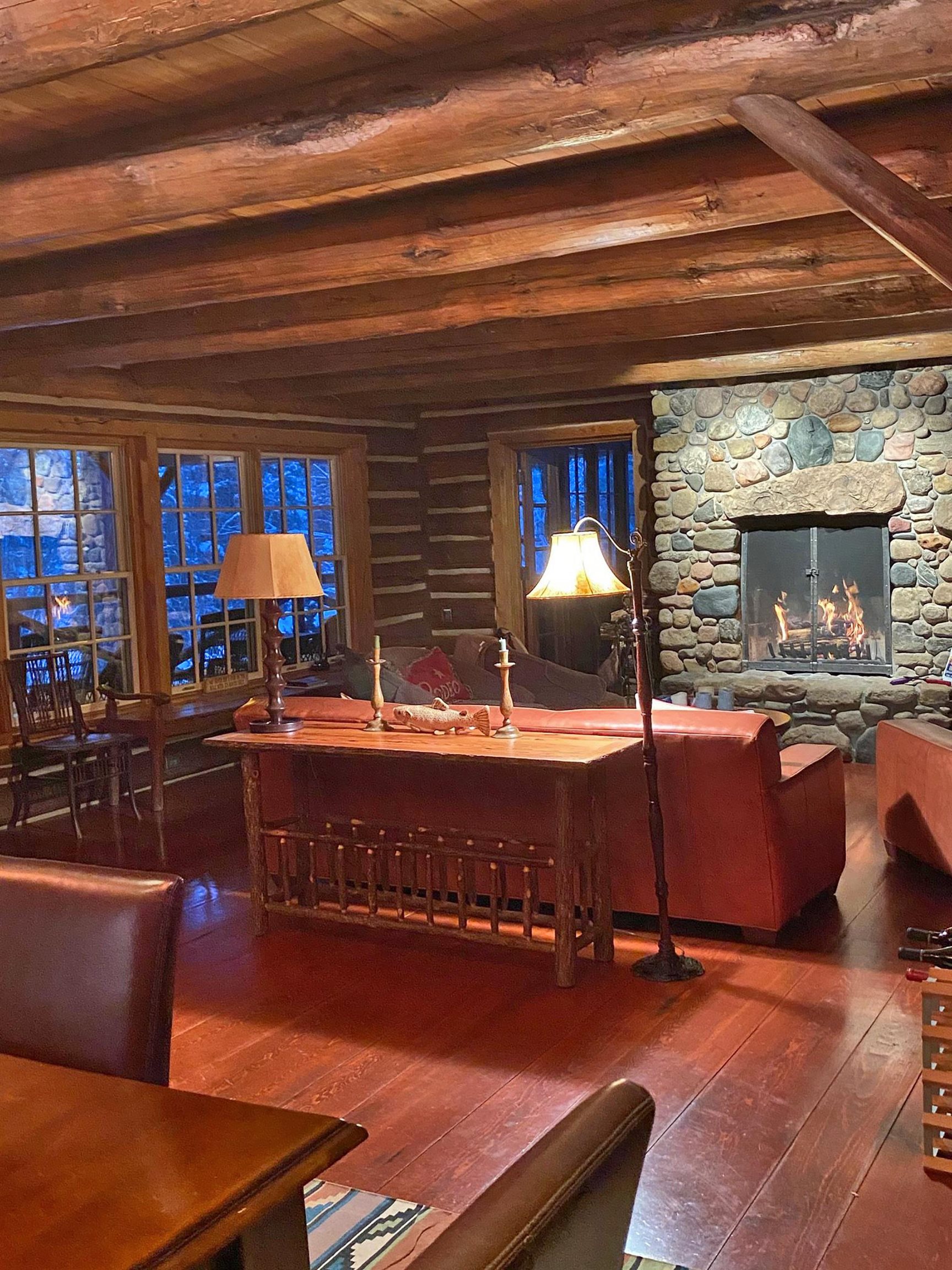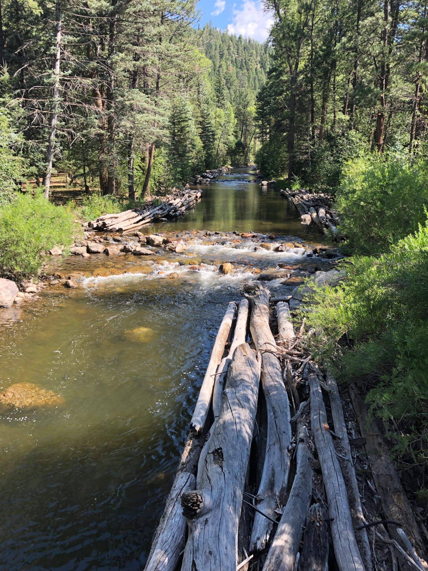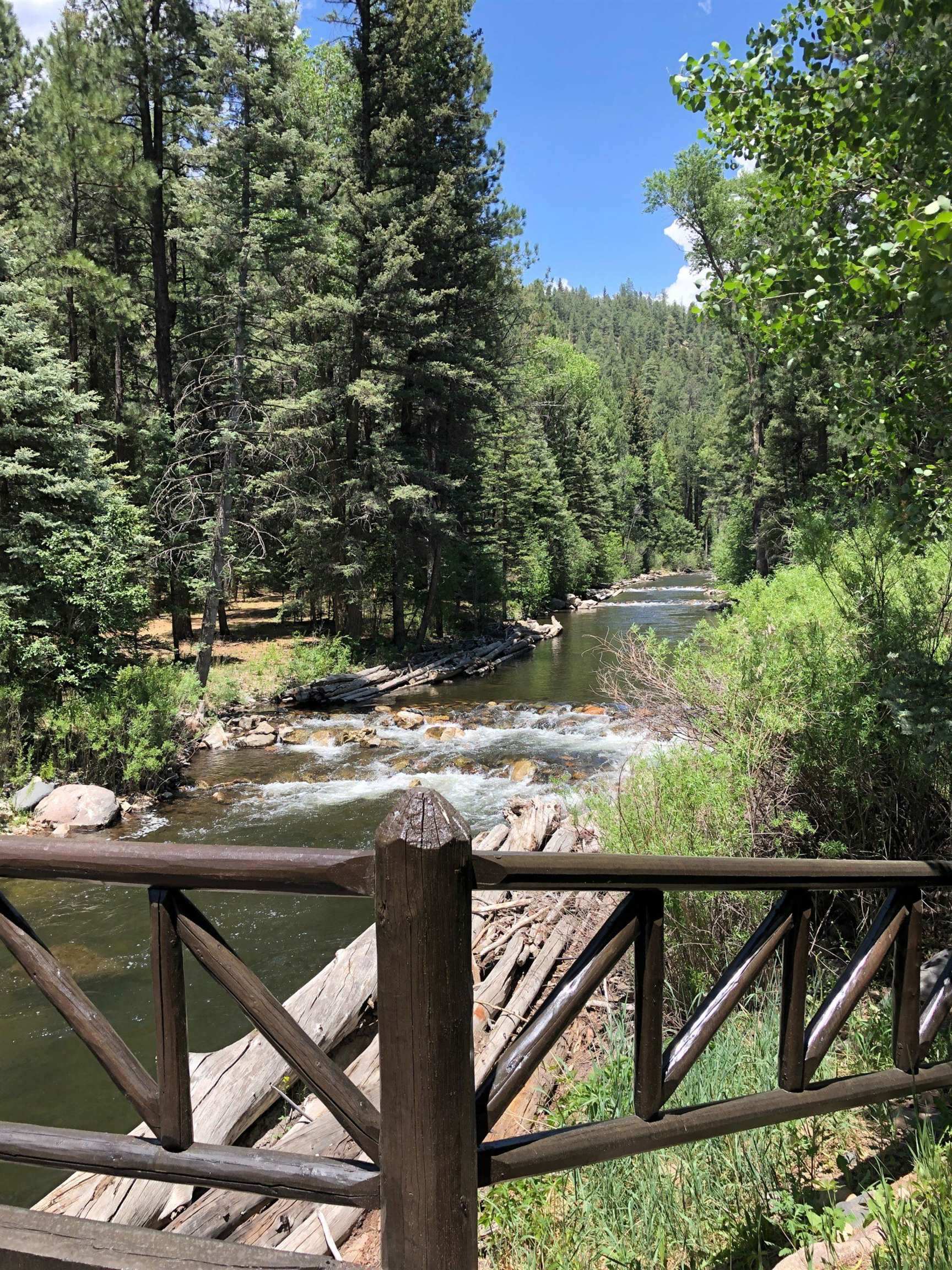 Amid the greenery and tall trees surrounding the legendary Pecos River, this trout lodge is a stylishly rustic getaway. A quintessential mountain cabin, it offers four bedrooms and baths, living and dining rooms, a game room, a breezy wraparound porch, and an upper-level screened porch. The carefully designed aesthetic brings to mind the stylings of Ralph Lauren and features soaring ceilings with sturdy beams and vigas, hardwood floors, and river rock fireplaces. Picturesque views of the iconic setting delight from nearly every vantage point year-round. The property-more than 27 private, fully fenced acres-borders national forest and includes a fishing center with a guest apartment, a caretaker's cabin, and a 2-car garage plus carport. The magnificent live water trout habitat, representing an investment of over $1MM, includes an acequia that feeds a pond that drains into spawning beds. Colorful flowers spring up in the warmer months, while deer and a wide variety of birds visit the land.
