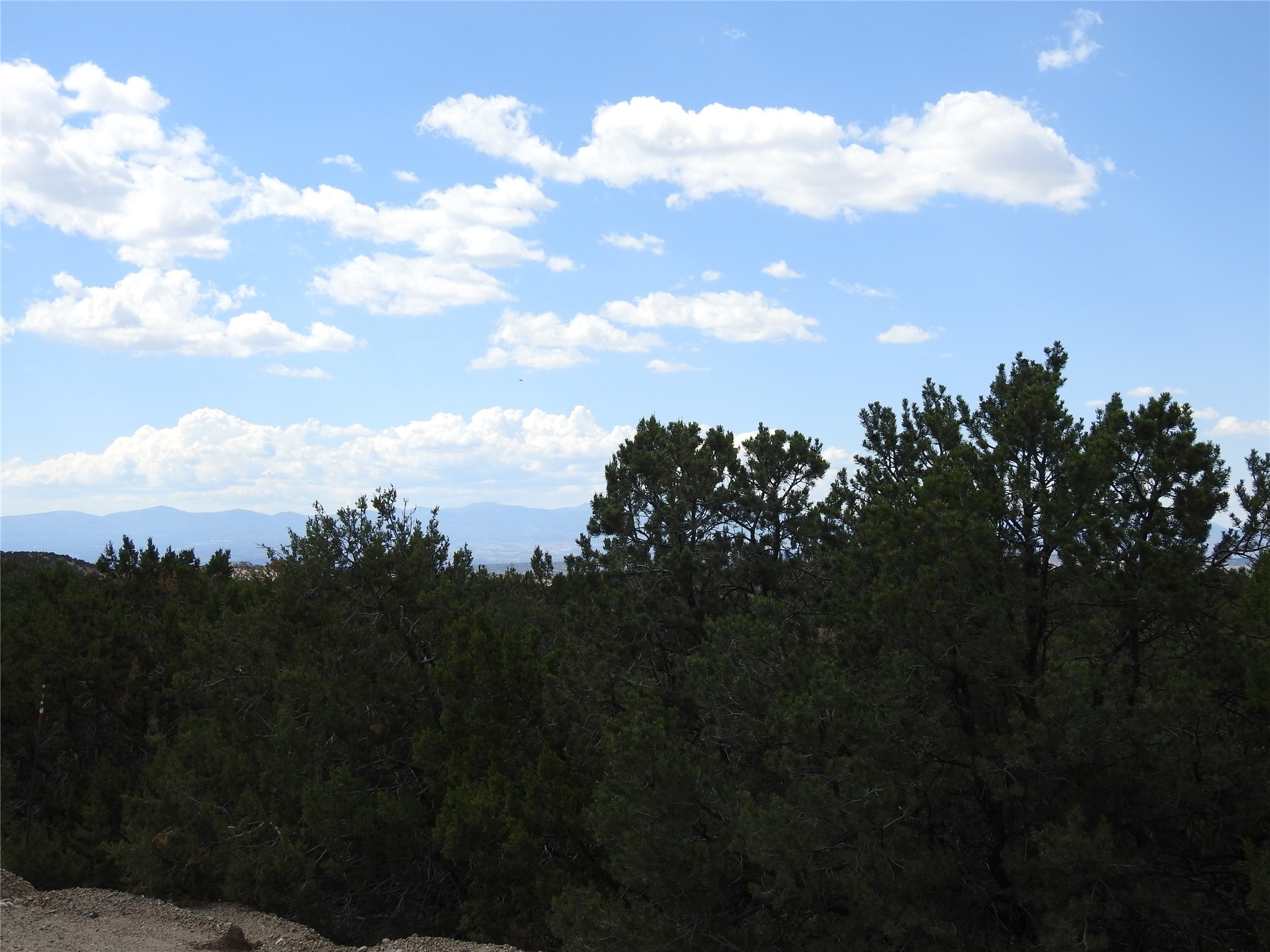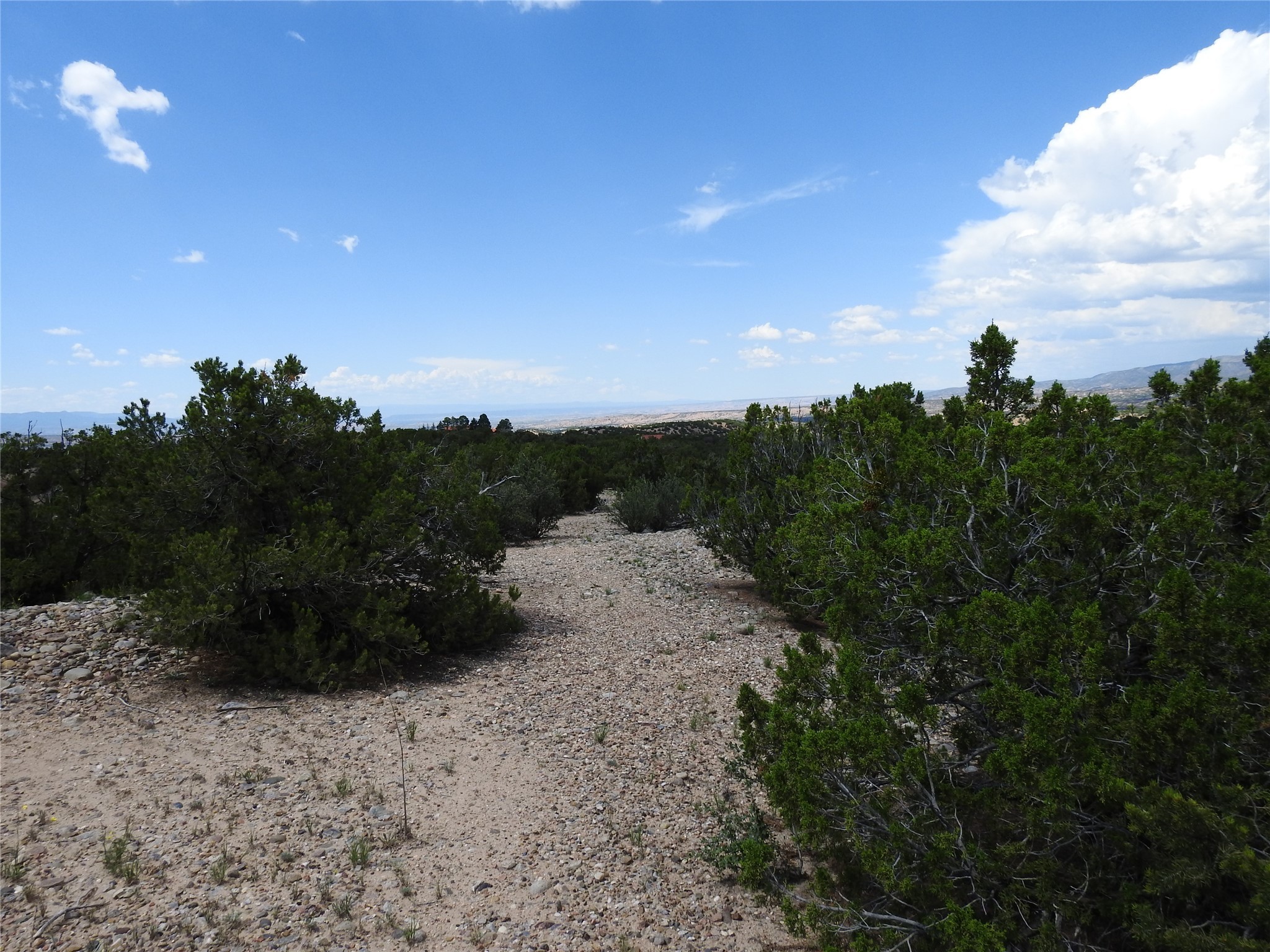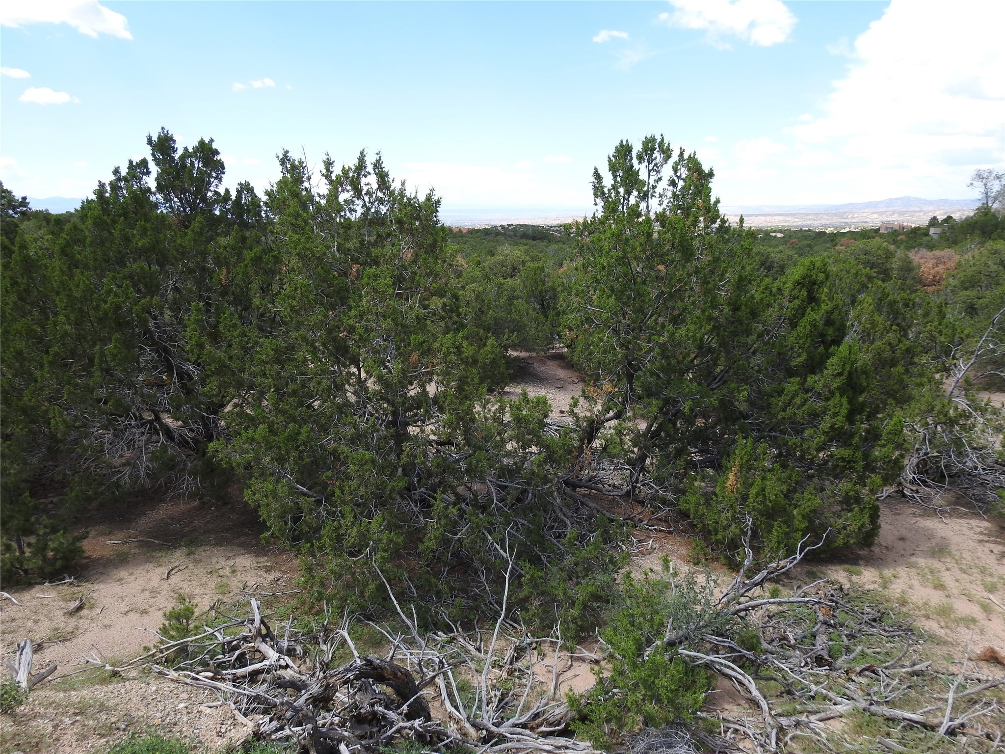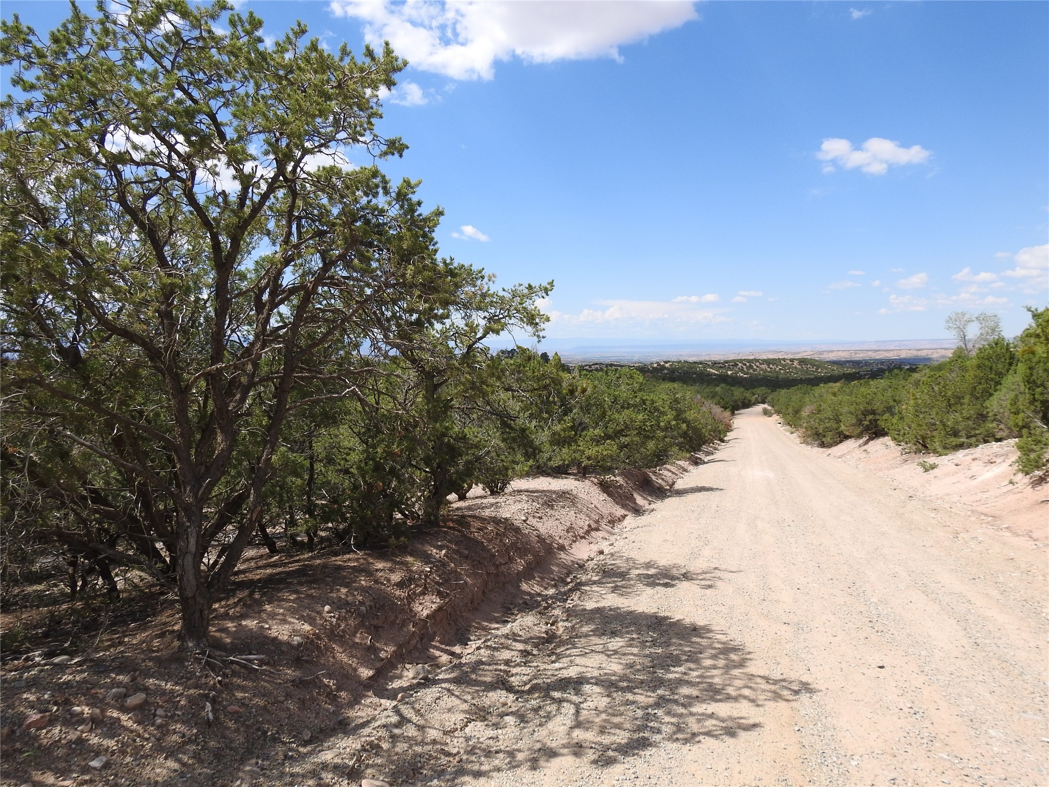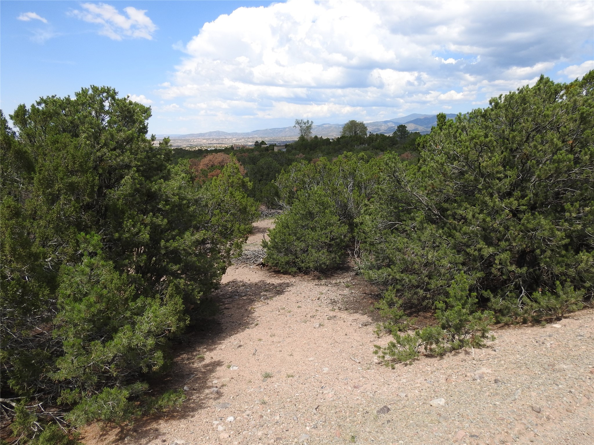 Beautiful, Pristine acreage off San Rafael. This triangular piece is covered with Pinon, Cedar, and different bushes. Ridges are hidden throughout and with existing roads going down two sides of this triangular lot, there are many points of entry sites. Over 700 feet down San Rafael and over 580 feet along Tano Trail.