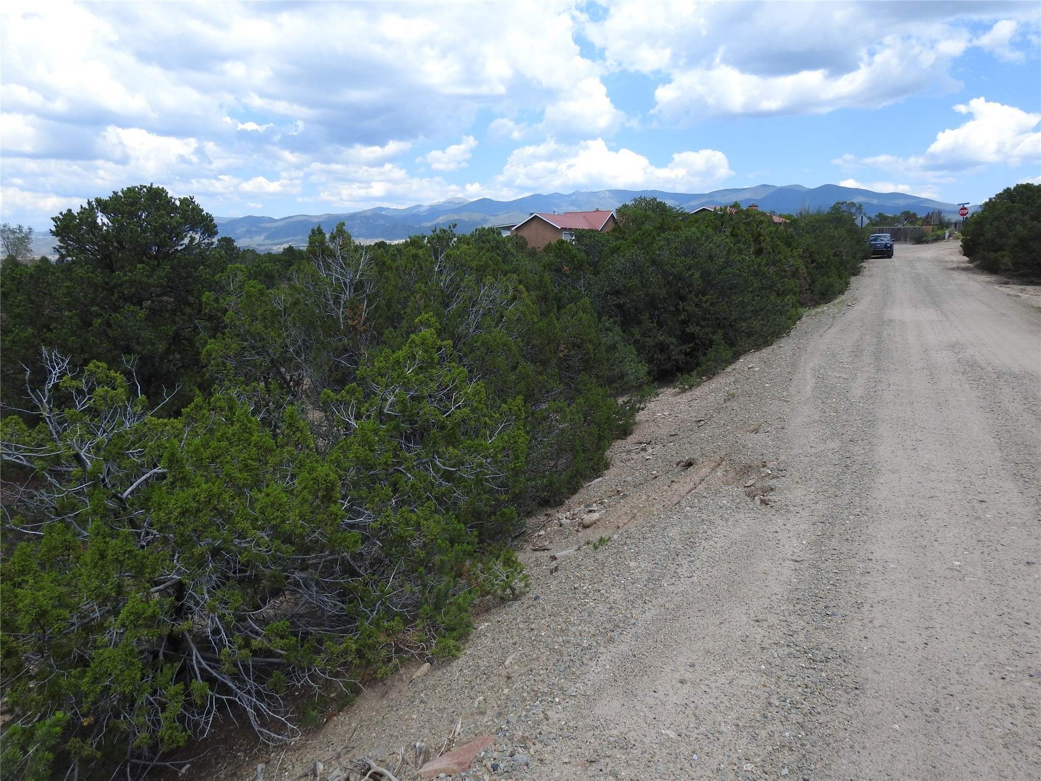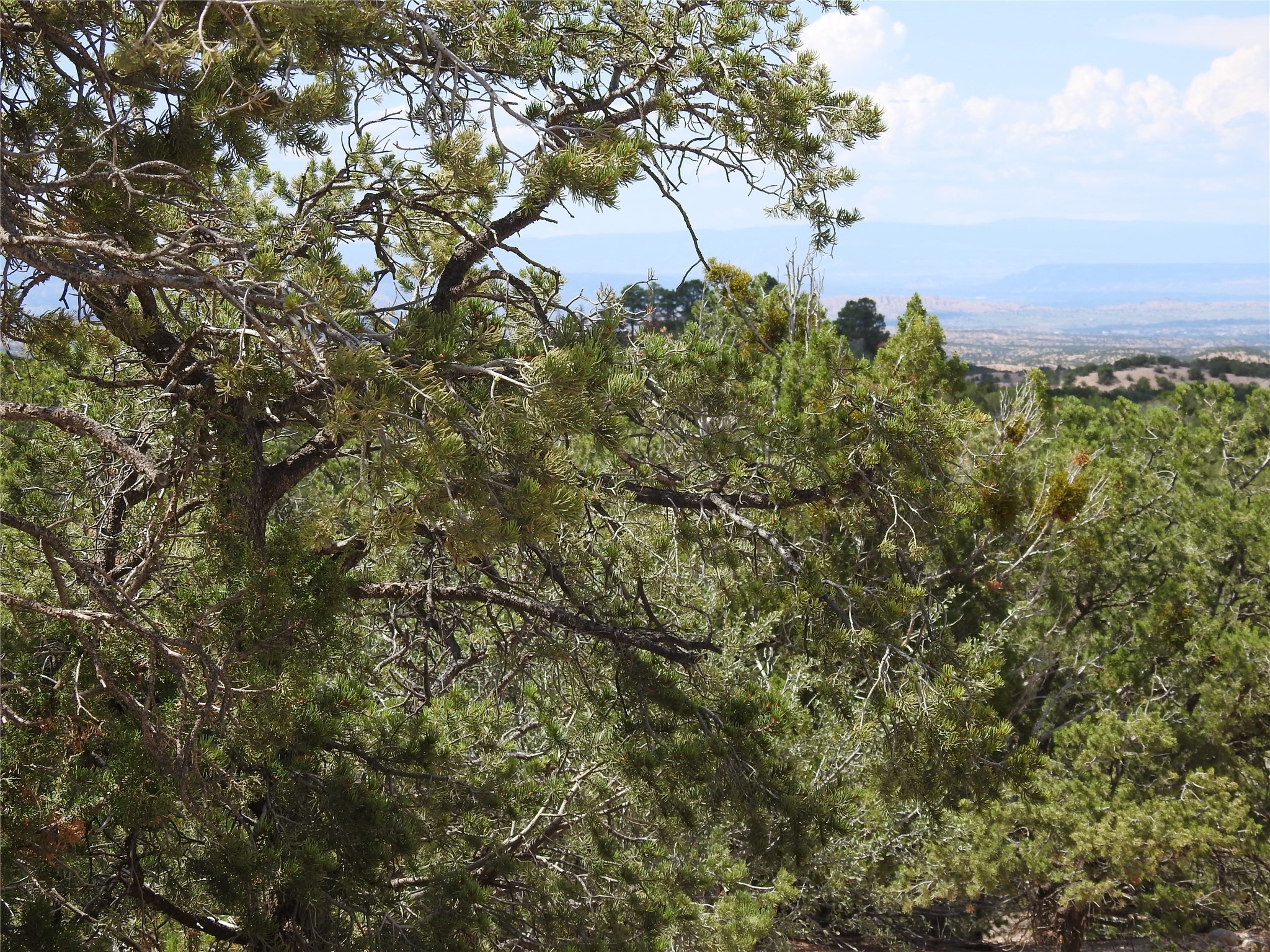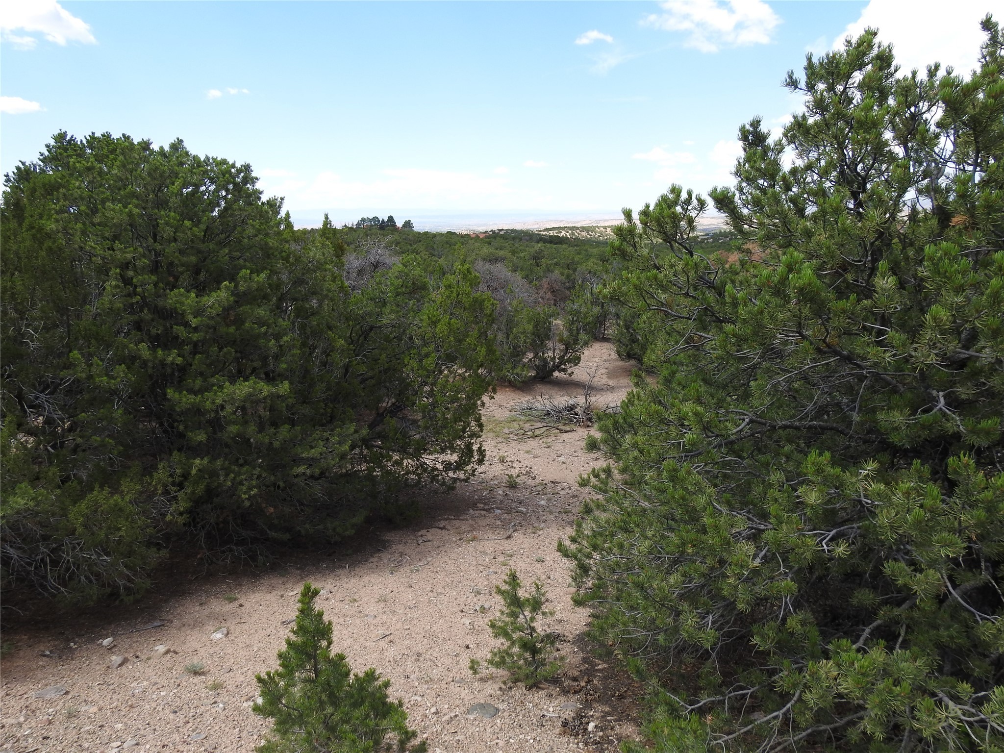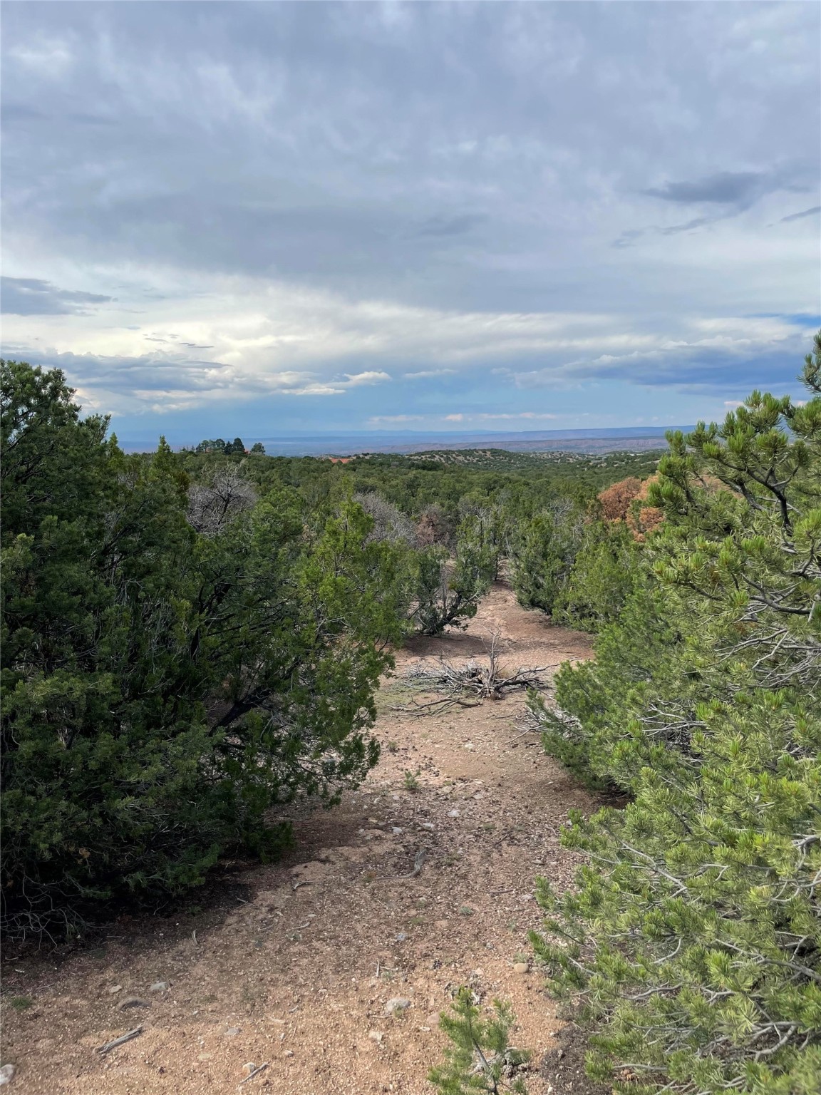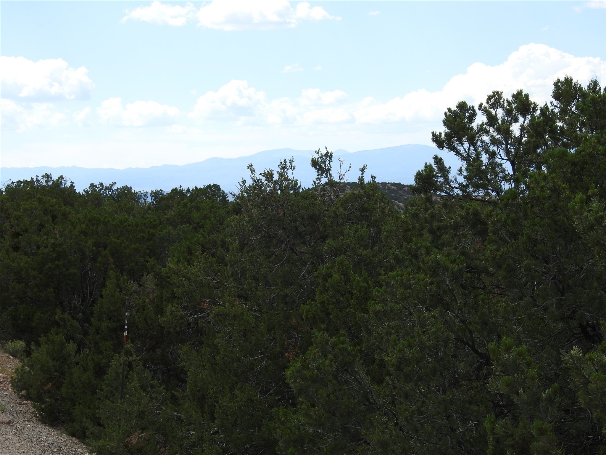 Beautiful, Pristine acreage off San Rafael. This triangular piece is covered with Pinon, Cedar, and different bushes. Ridges are hidden throughout and with existing roads going down two sides of this triangular lot, there are many points of entry sites. Over 700 feet down San Rafael and over 580 feet along Tano Trail.