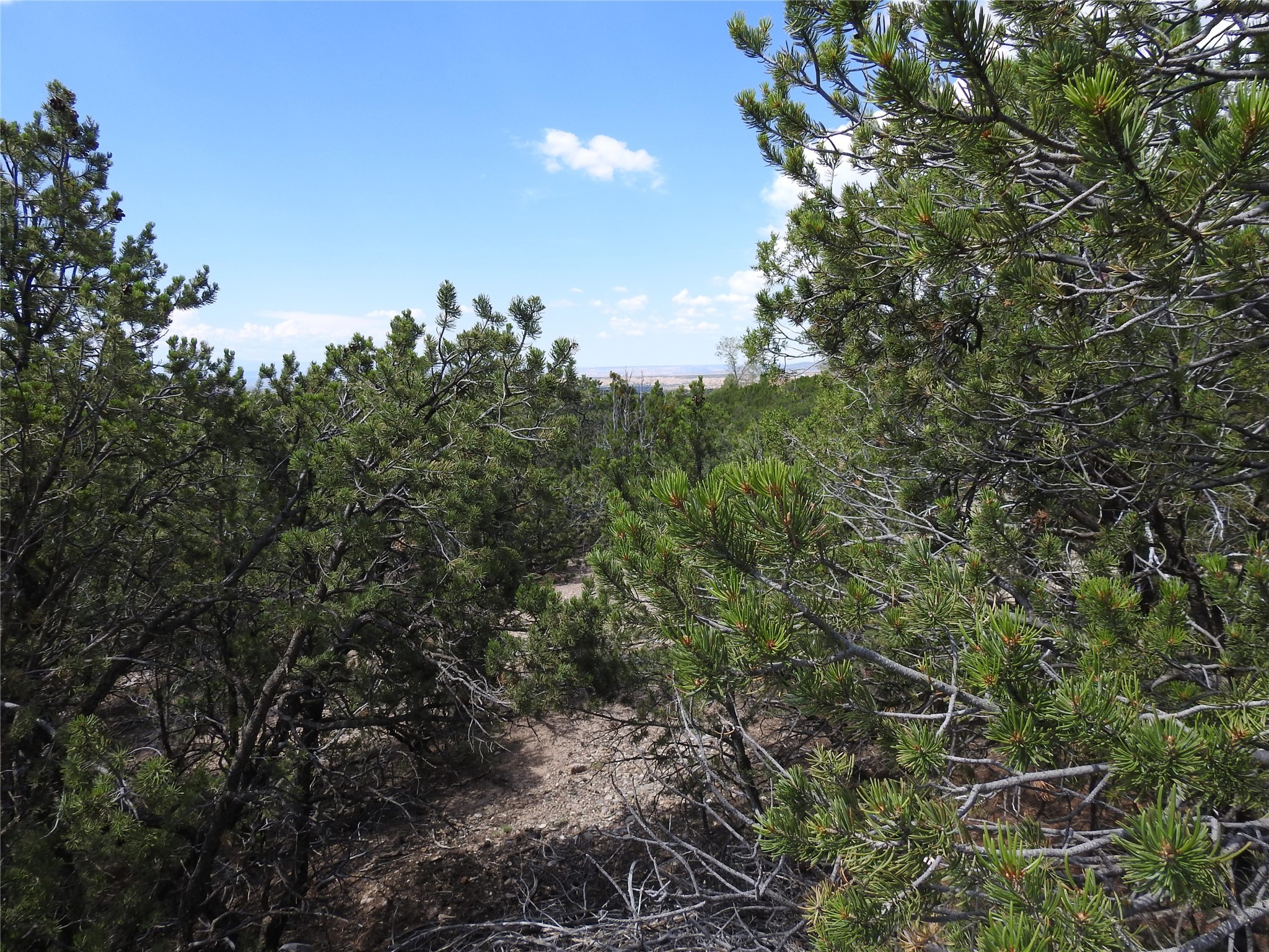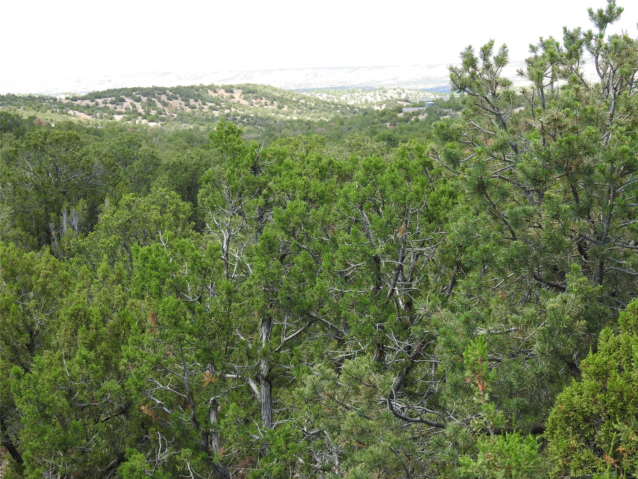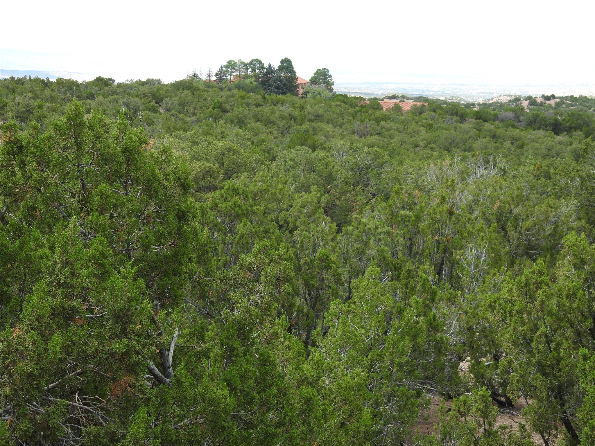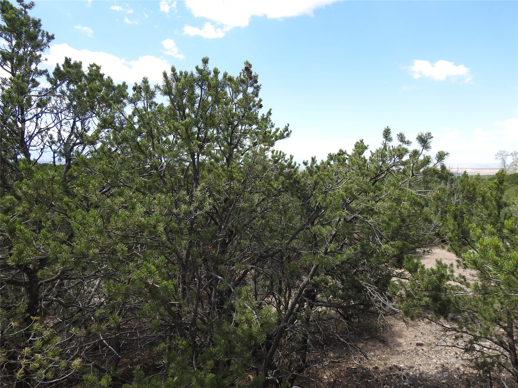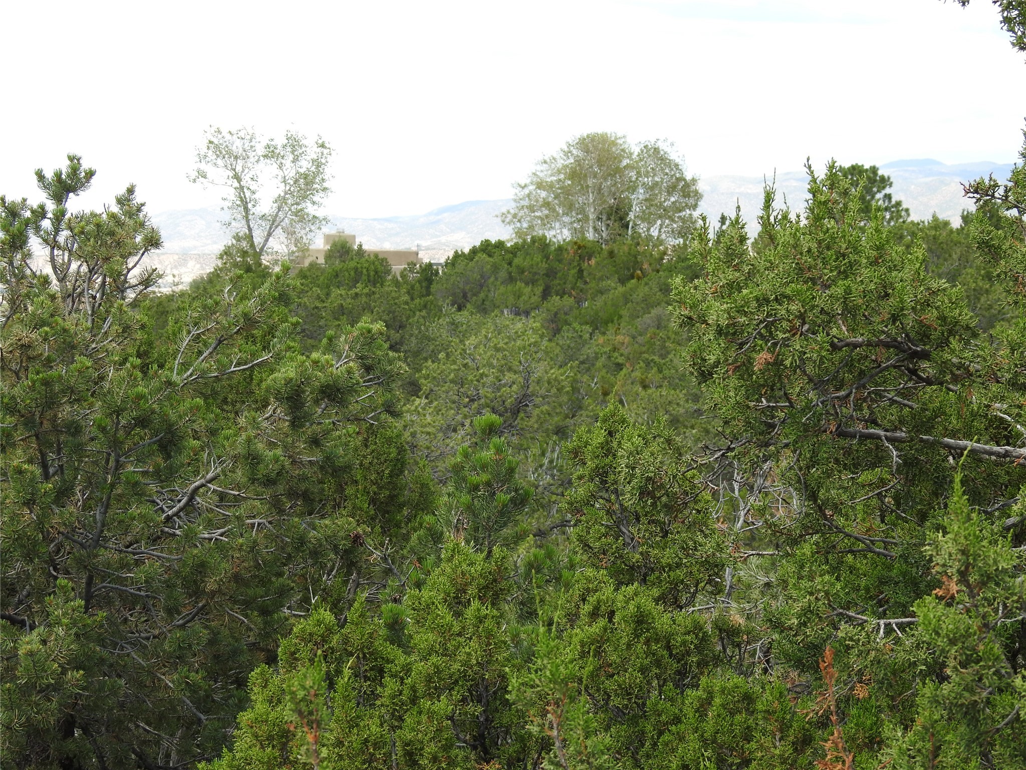 Beautiful, Pristine acreage off San Rafael. This triangular piece is covered with Pinon, Cedar, and different bushes. Ridges are hidden throughout and with existing roads going down two sides of this triangular lot, there are many points of entry sites. Over 700 feet down San Rafael and over 580 feet along Tano Trail.