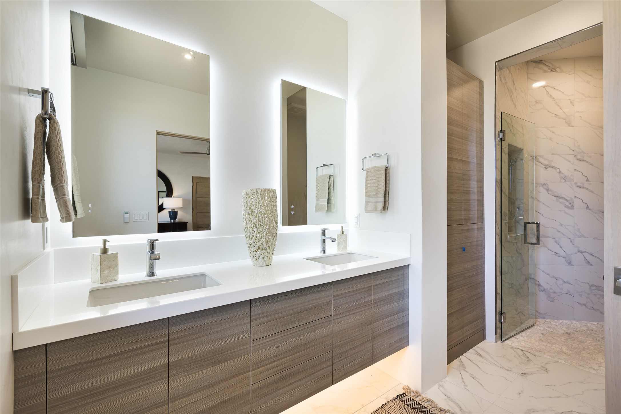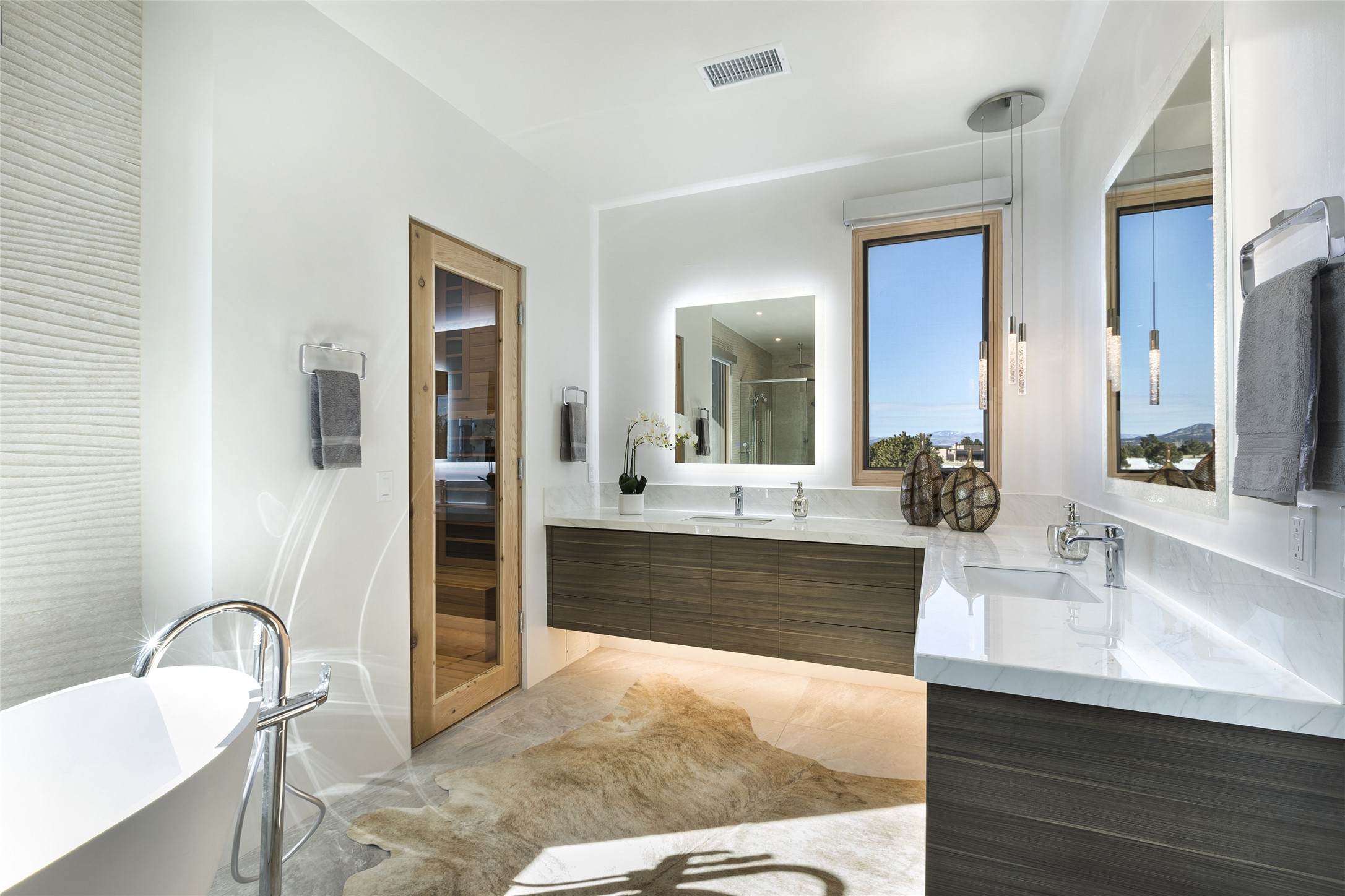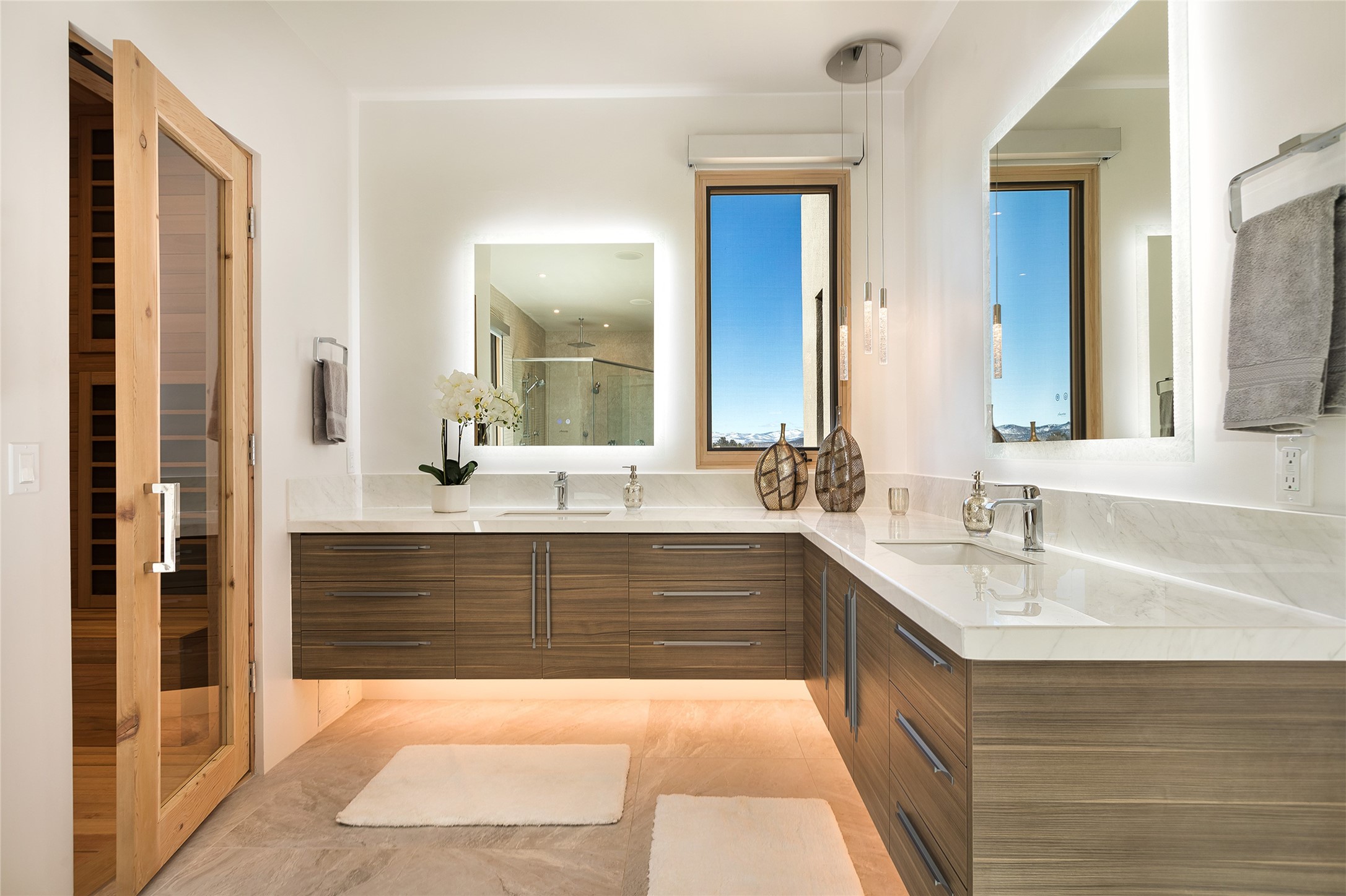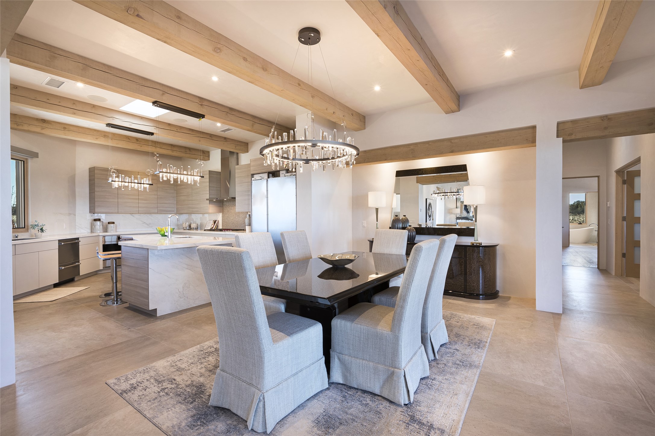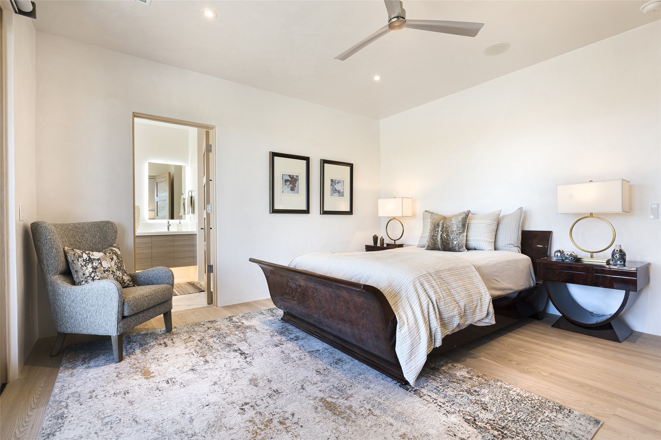 Las Campanas luxury at its finest. This rare, triumphant 2022-built Tour de Force residence excites with the ultimate blend of sophisticated design and spectacular Sunset Golf Course, Jemez Mountain, sunset, and Sangre de Cristo Mountain views. Thoughtfully designed, this exceptional residence offers an ideal entertainment experience with expansive interior and exterior entertainment areas. Privately accessed through a front entrance courtyard with a tranquil water feature, this exquisite home offers a professional designer chef's island kitchen with Wolf and Subzero appliances, a walk-in pantry, breakfast bar, and custom cabinetry. The open concept living areas include a spacious living and dining room with dramatic Jemez Mountain and golf course views, fireplace with stacked stone accents, and back portal access. The owner's suite offers golf course views, fireplace, portal access, and a spacious spa-like bath with a sauna, soaking tub, custom shower, dual vanities, and dual closets. Adjacent to the owner's suite is a private office or ideal exercise room. Guests enjoy true independence with a separate guest wing which offers two spacious ensuite bedrooms with private entrances, separated by a secondary office or living room. Luxury finishes include a roof top deck, white oak hardwood and porcelain flooring throughout, plaster walls, a Sonos sound system, built-in BBQ, designer landscape, and a 3 car garage with a heated 3rd bay.