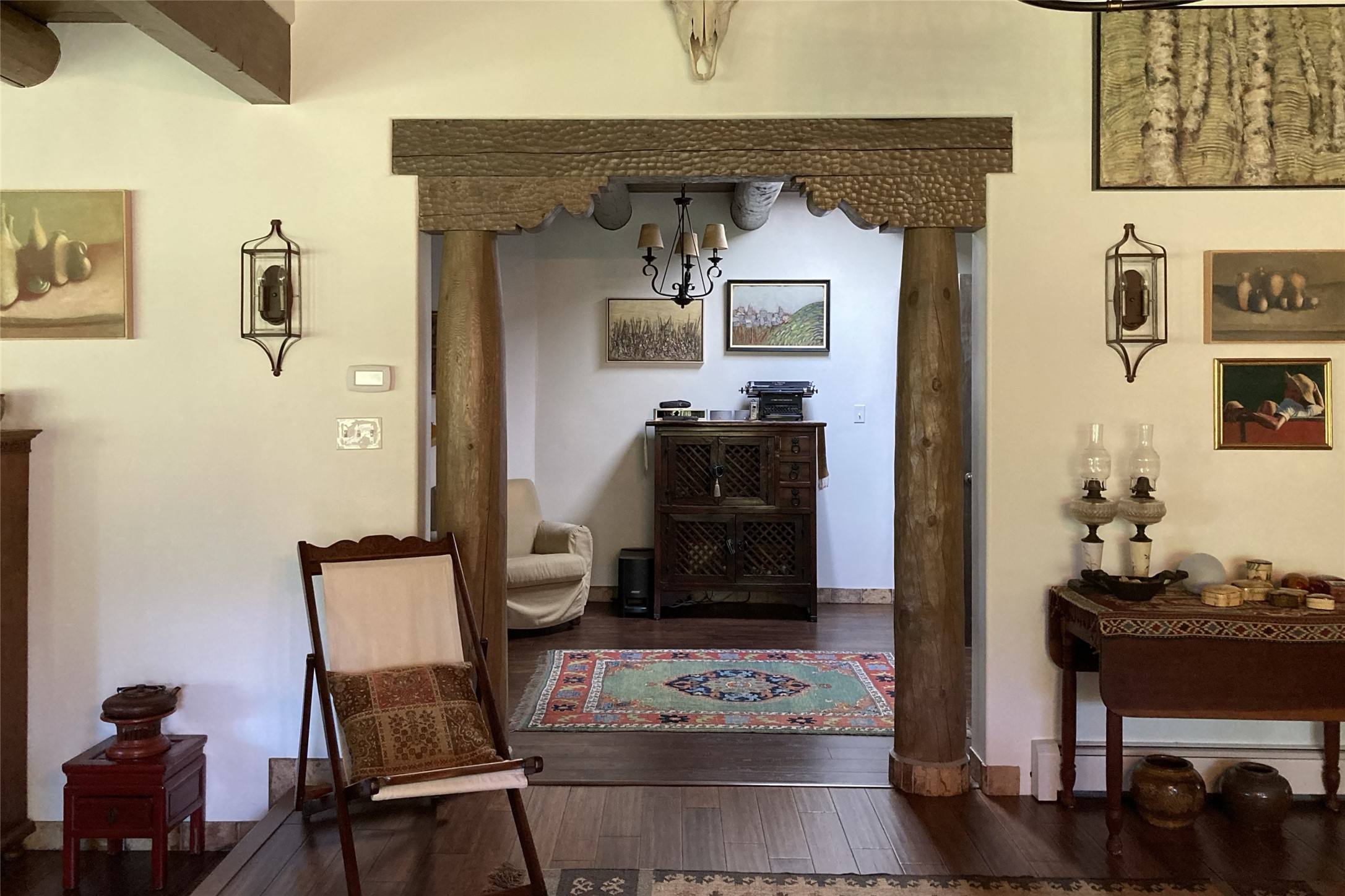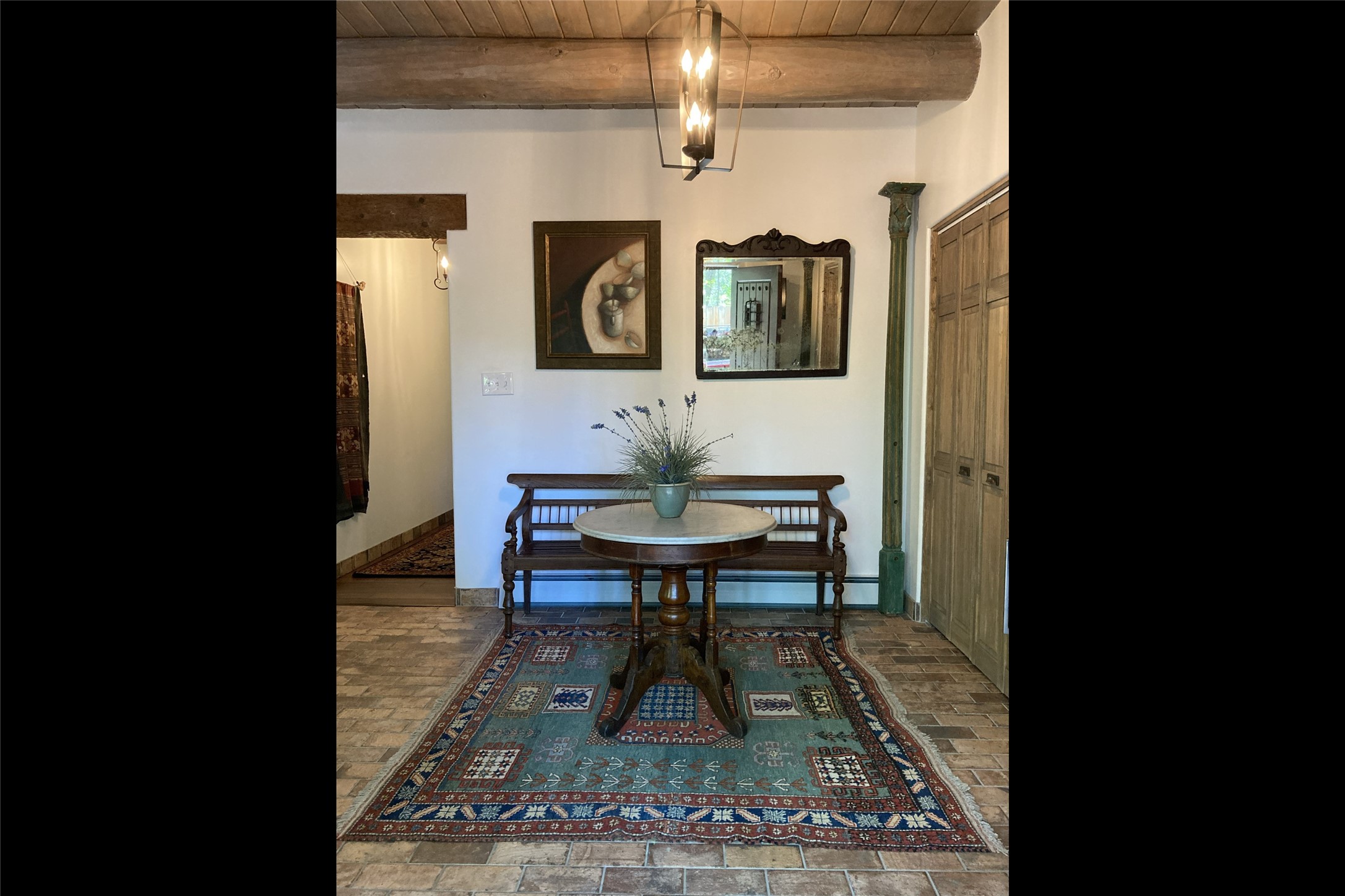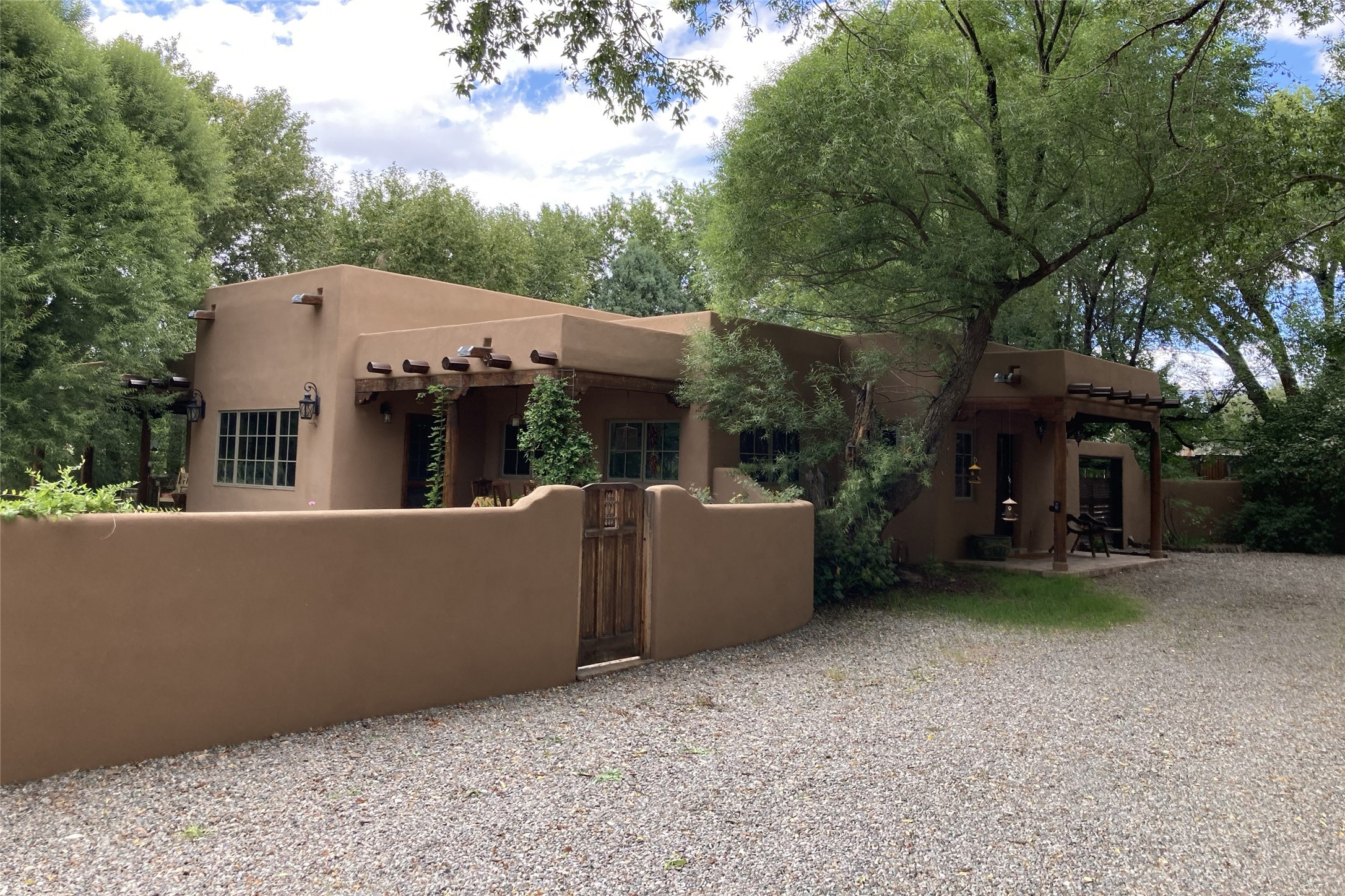 ESTANCIA SERENA - prepare to be WOWED! This stunning property is completely fenced and gated for privacy and sits in the lush Santa Cruz Valley with the Rio Santa Cruz live water running through it year-round. You get it all here: The main house contains vigas and beams, three surrounding portals with skylights, and has been completely restored to immaculate and extraordinary condition, hand-plastered thick adobe walls, gleaming wood floors, all new windows and doors, new roof, an open concept kitchen with state-of-the-art appliances, and modern baths. In addition, the 1 bedroom, 1 bath casita is located across the garden and is private and cozy with a kiva fireplace. The grounds will take your breath away with producing fruit trees, towering cottonwoods, raspberries, grapes, and a lush meadow of clover that attracts birds and butterflies galore, and provide a barn, well house, tack room, and an oversized 3-car garage. This property is for the discriminating buyer, earth lover, who enjoys being surrounded by beauty and serenity. As an added benefit, the Sombrillo Badlands Preserve is a private sanctuary consisting of thousands of acres of red sandstone cliffs for hiking or horseback riding and supreme enjoyment across the lane. Please see a detailed narrative in Associated Documents.