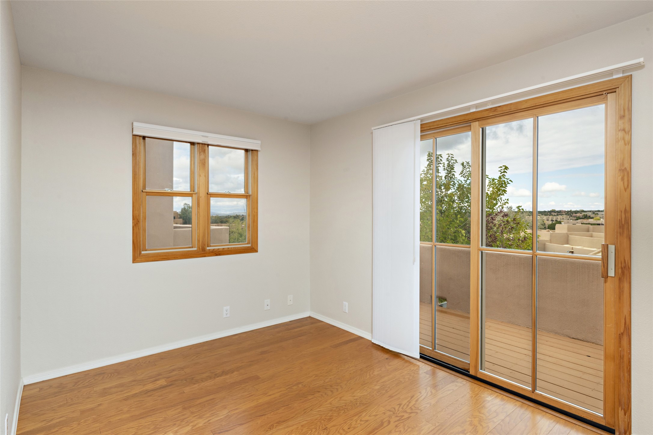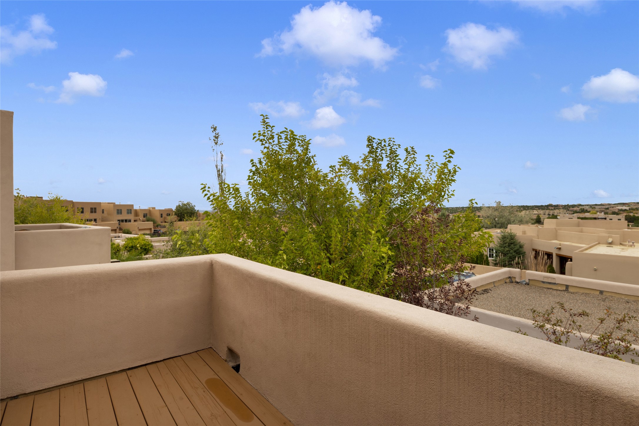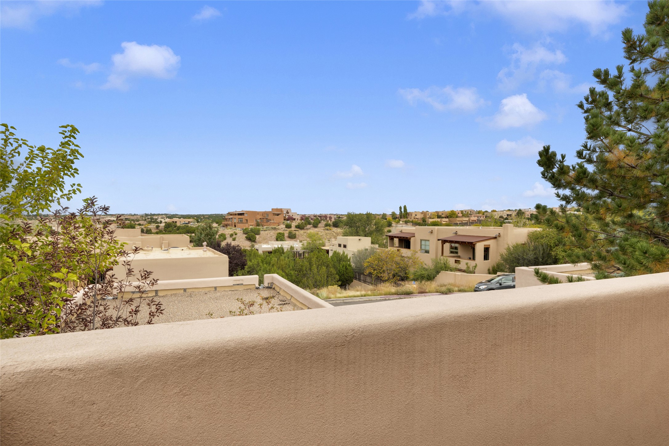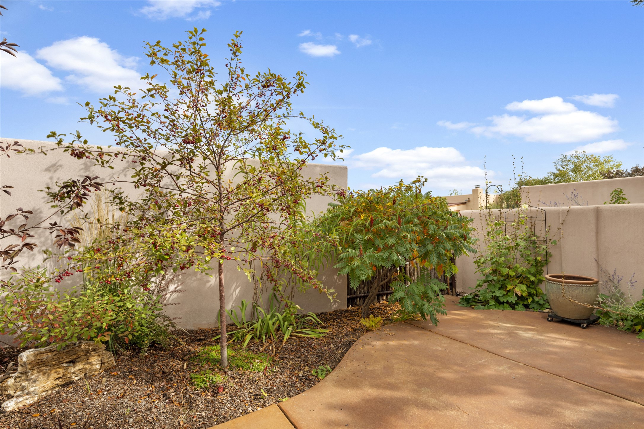 Lovely 2 story Aldea townhome located near the main entrance available.Downstairs main living area contains a living room with gas fireplace, dining room, and kitchen with niceupgrades. Downstairs bedroom and 1/2 bath complete the lower level floor plan. Upstairs are 2 bedrooms, eachwith their own bathroom. Off the primary bedroom is a deck with fantastic views to the north and west.Lovely back courtyard/garden area for sitting and relaxing has views and a water feature. Also access to thedetached 2 car garage in the rear of the property. Aldea has over 200 acres of open space,tennis/pickleball, & basketball courts, playground, community center and plaza. 15 minutes to the Santa FePlaza, 10 minutes to the north end of town/shopping.
