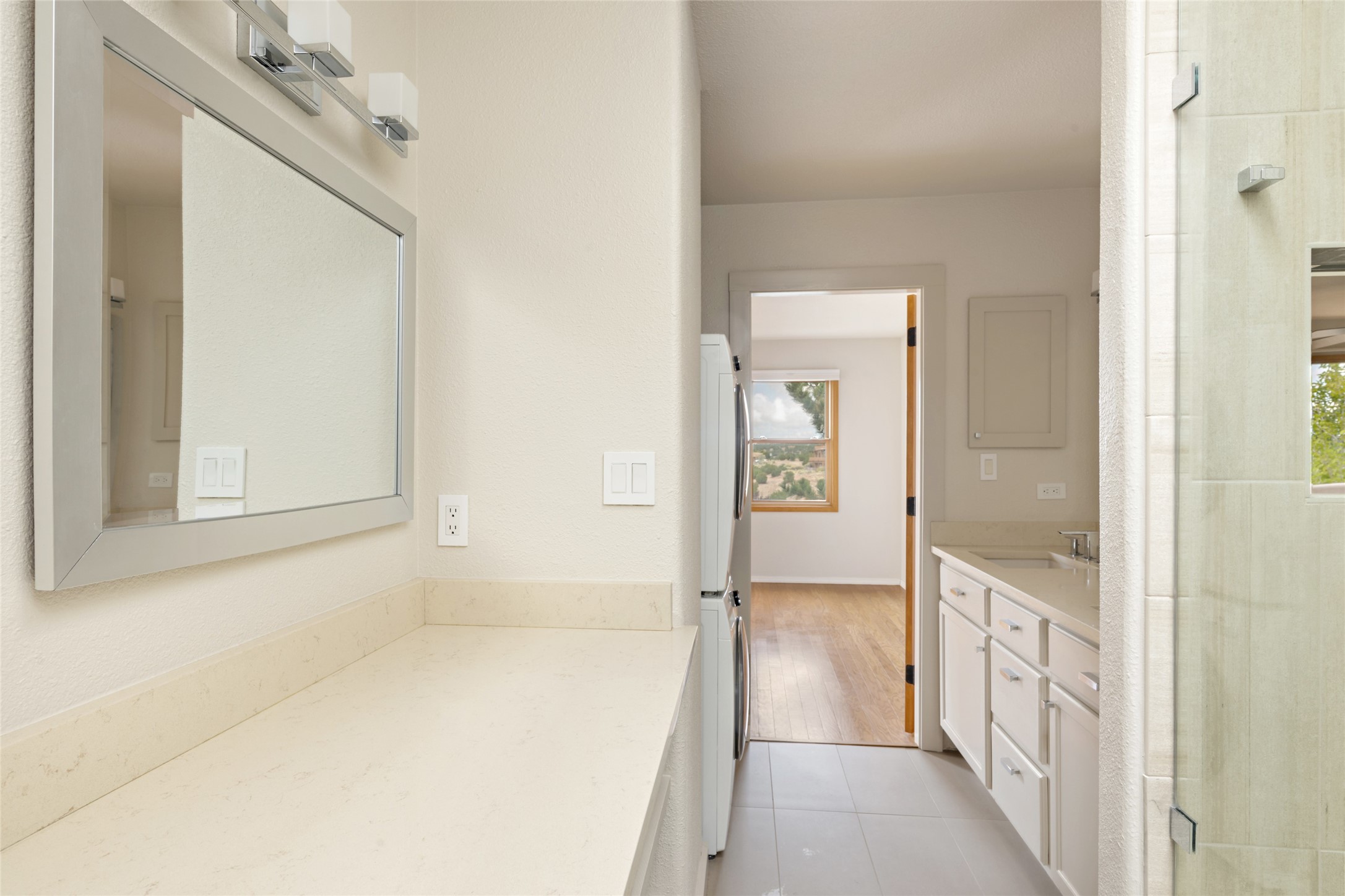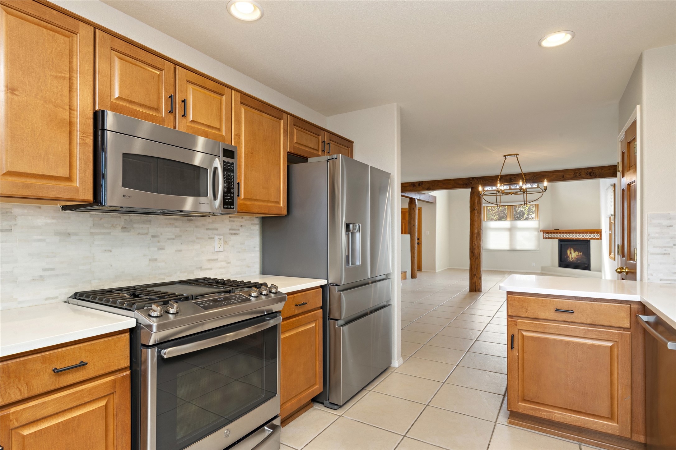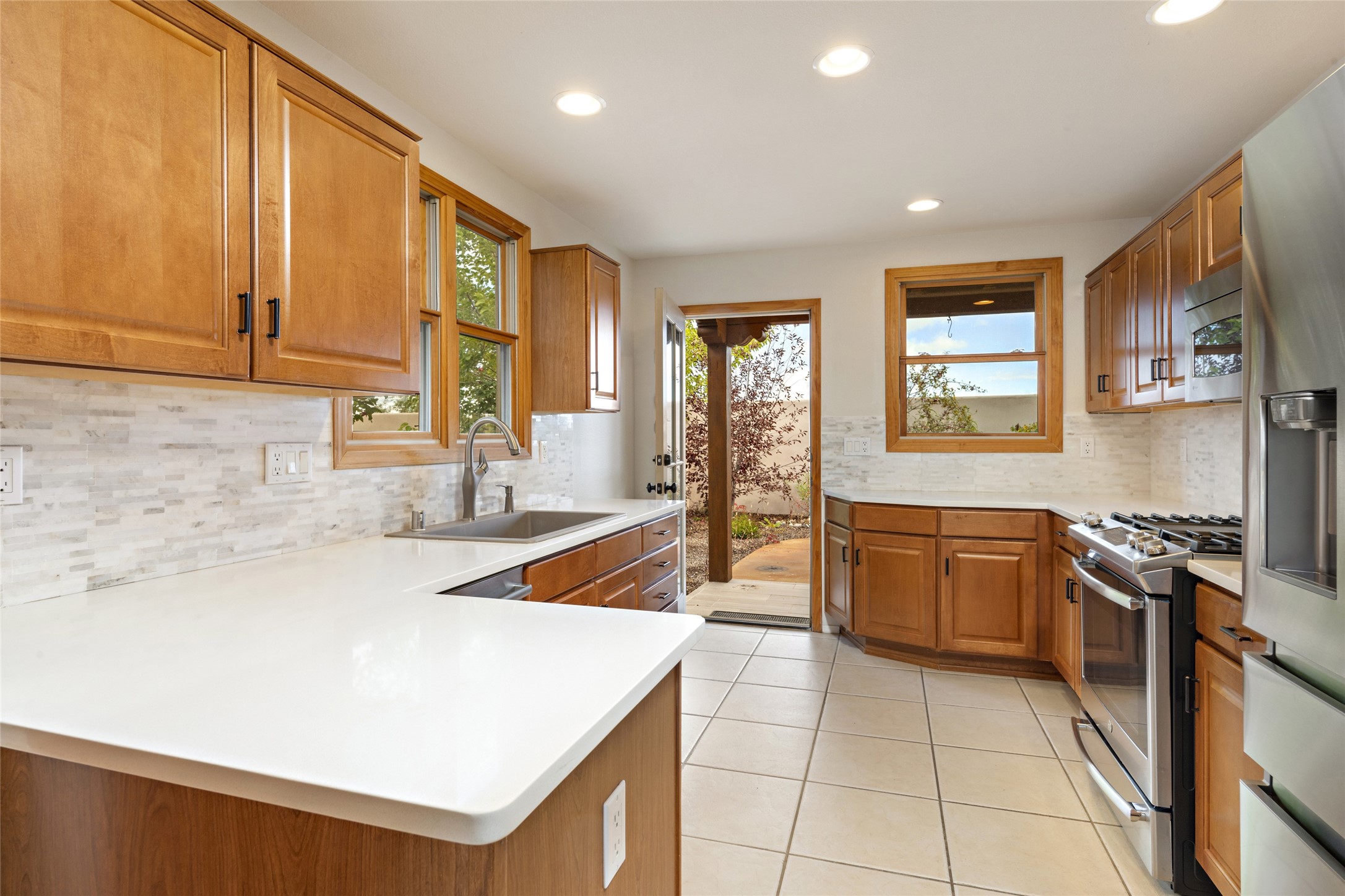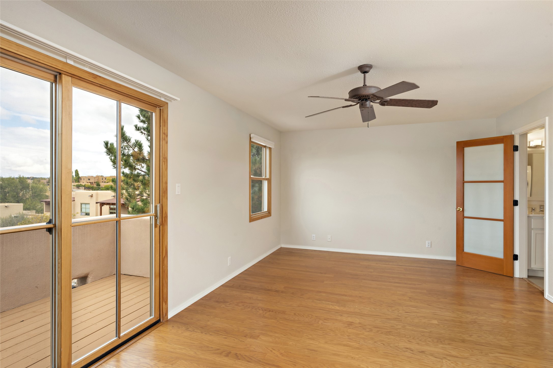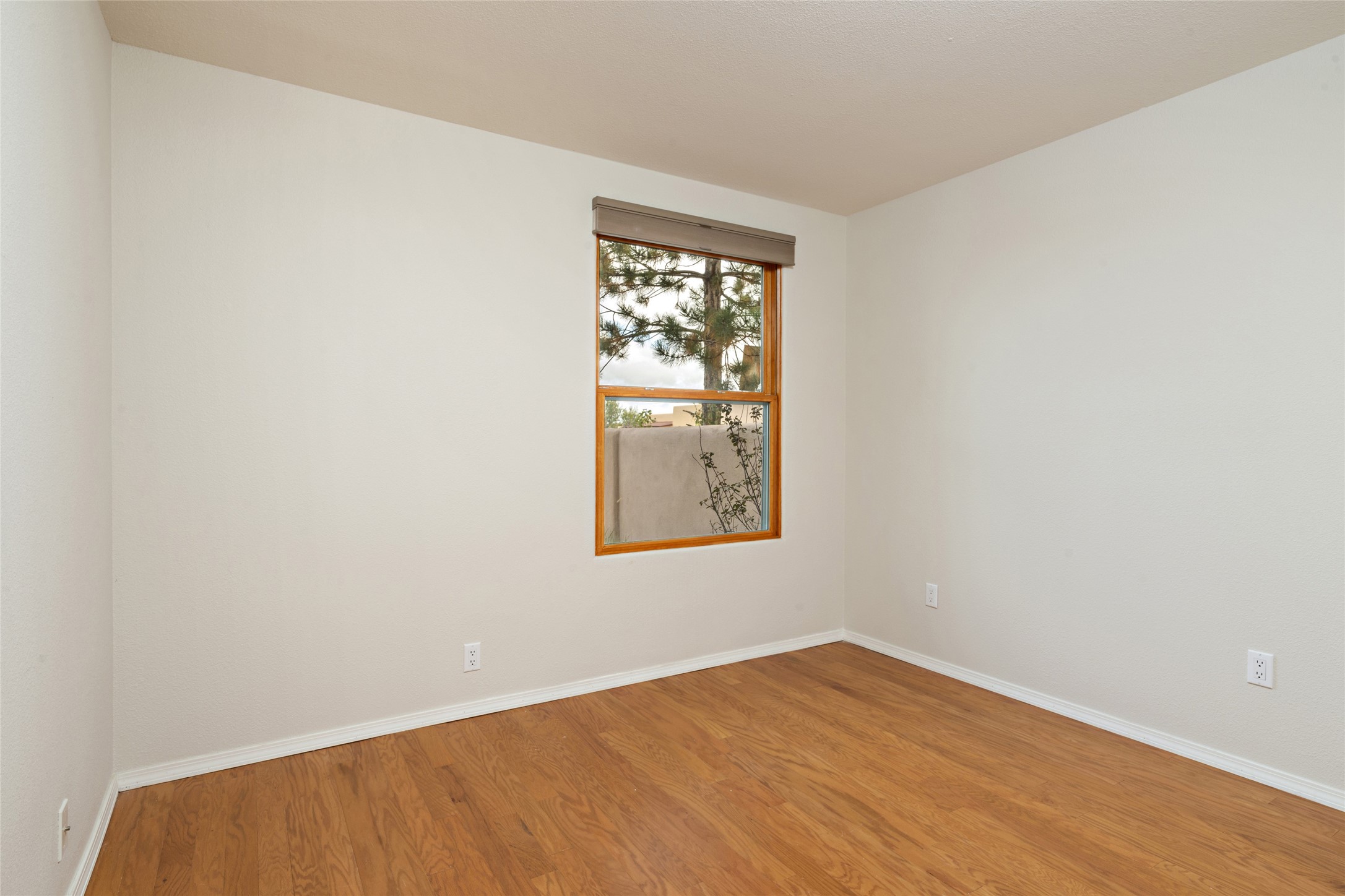 Lovely 2 story Aldea townhome located near the main entrance available.Downstairs main living area contains a living room with gas fireplace, dining room, and kitchen with niceupgrades. Downstairs bedroom and 1/2 bath complete the lower level floor plan. Upstairs are 2 bedrooms, eachwith their own bathroom. Off the primary bedroom is a deck with fantastic views to the north and west.Lovely back courtyard/garden area for sitting and relaxing has views and a water feature. Also access to thedetached 2 car garage in the rear of the property. Aldea has over 200 acres of open space,tennis/pickleball, & basketball courts, playground, community center and plaza. 15 minutes to the Santa FePlaza, 10 minutes to the north end of town/shopping.