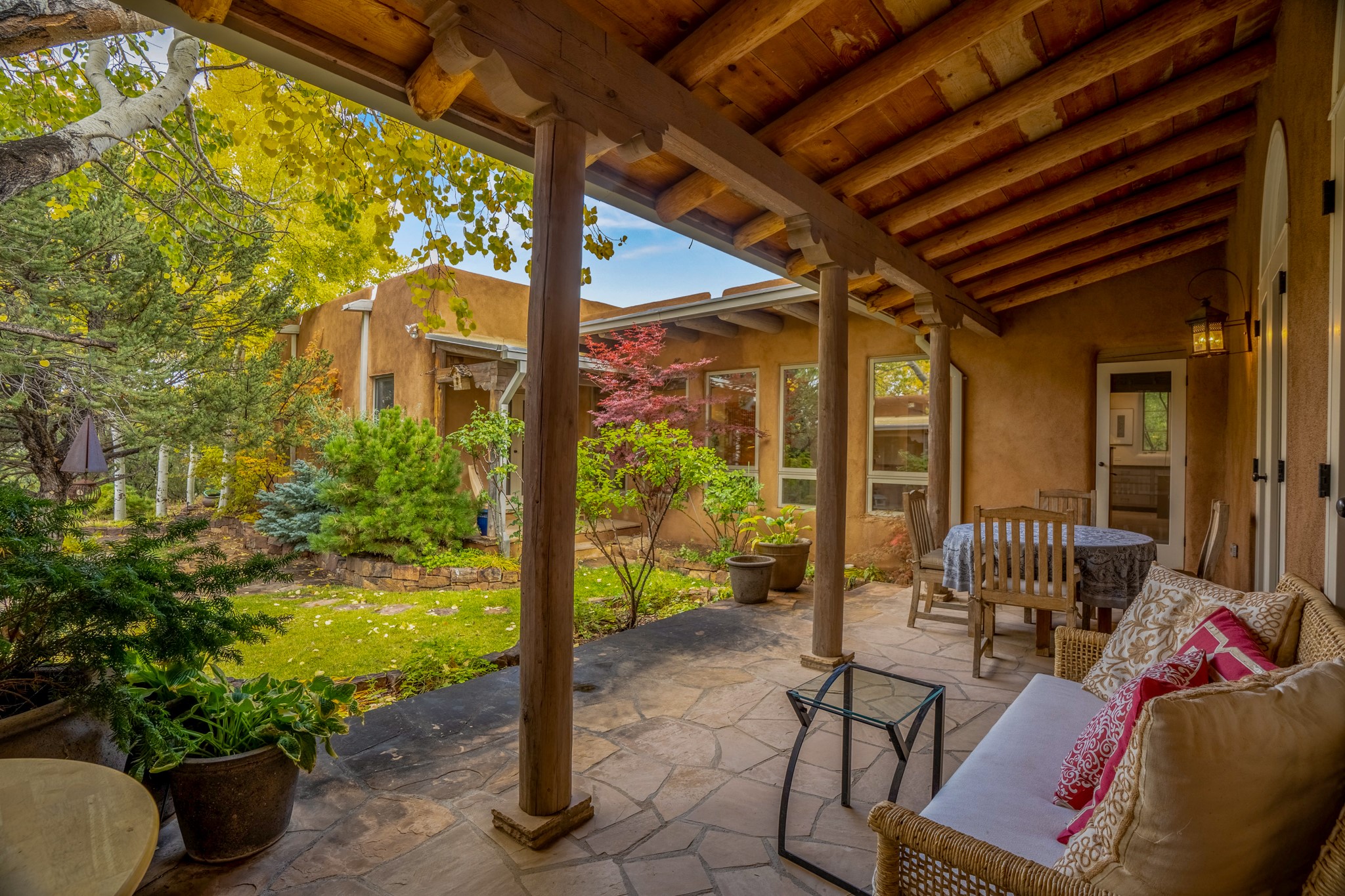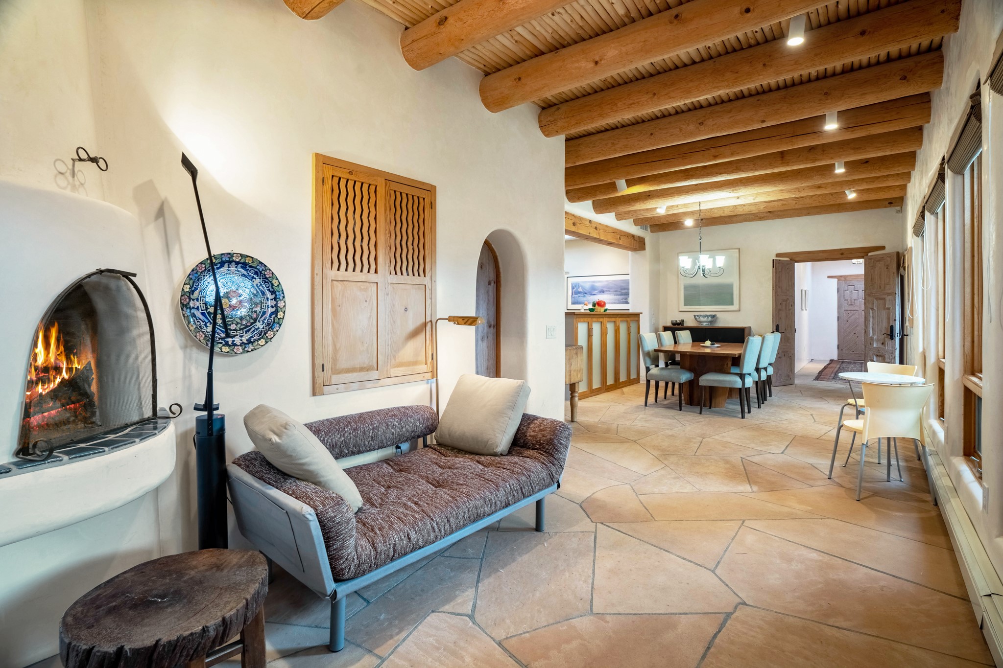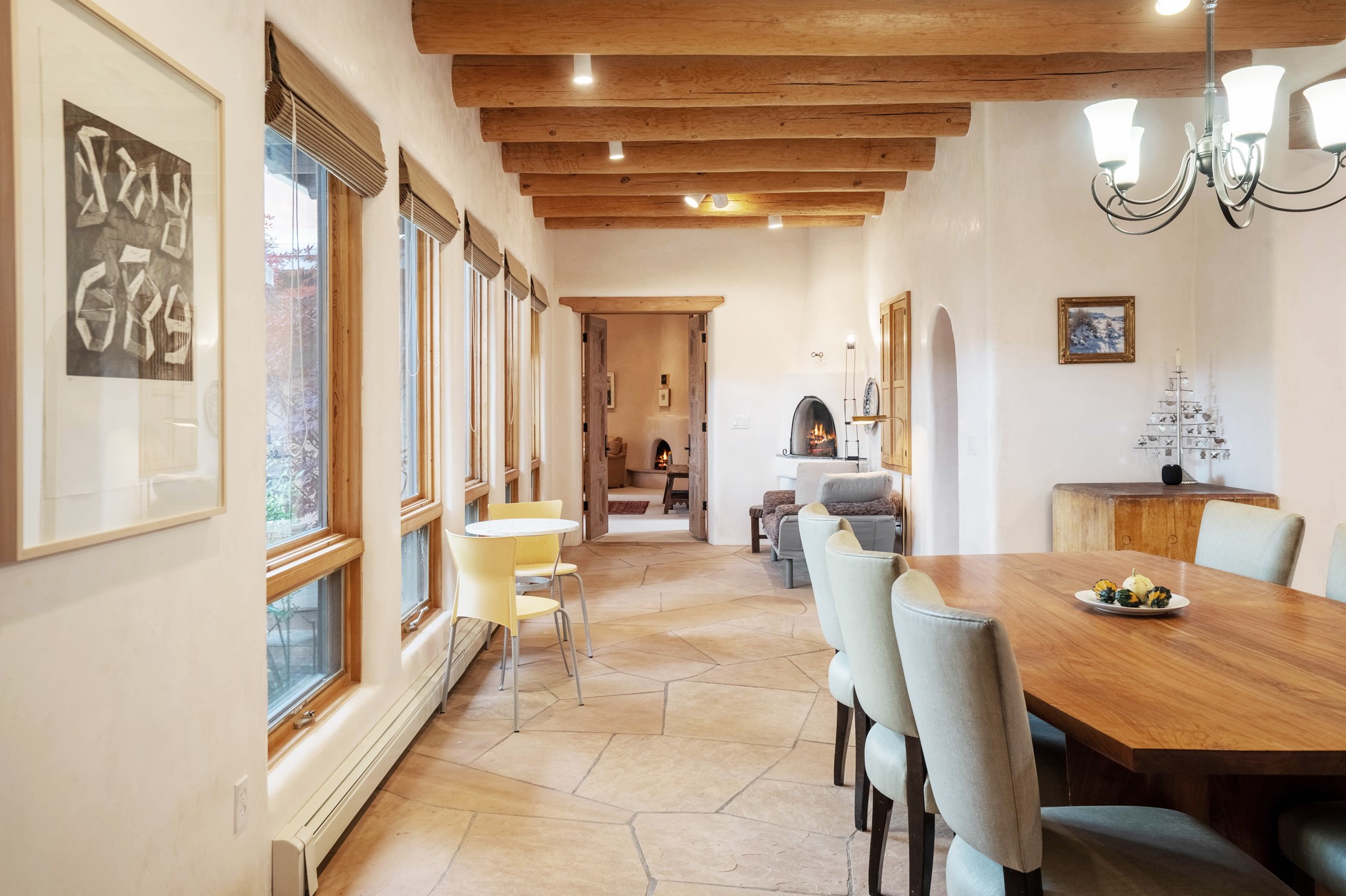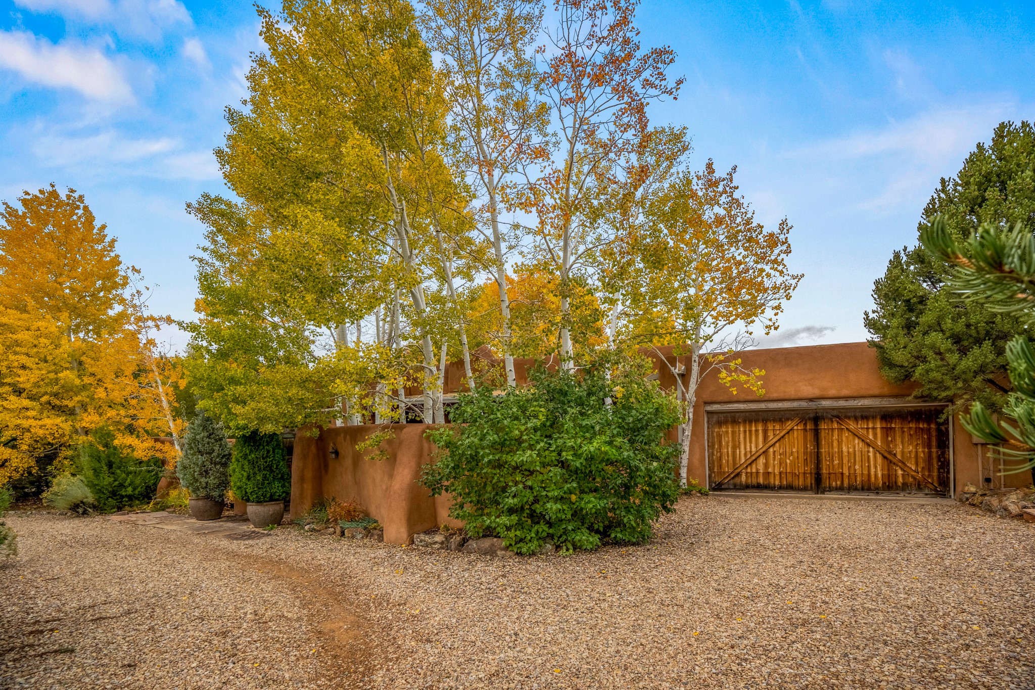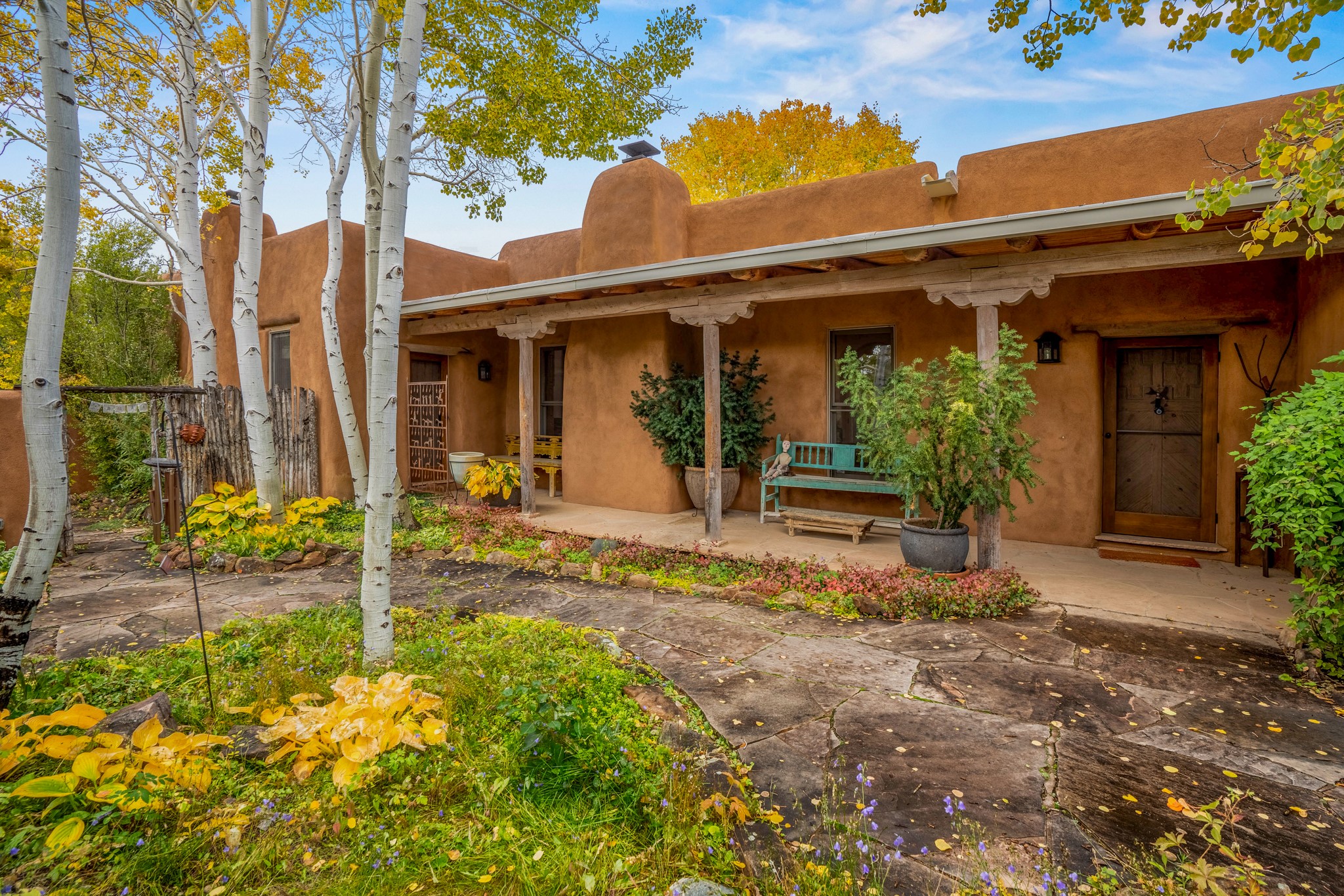A peaceful, mostly adobe home and oasis with gorgeous living spaces both inside and out! 4 bedrooms and 3 full baths and 2 half baths with 3880sf create the foundation for a warm, inviting home with a great entertaining layout; living room and kitchen have french doors to the lush backyard and there is a fantastic butler's pantry, Sub Zero and DCS appliances and large island. The floorplan is nicely separated with two guest bedrooms (one with ensuite bath and its own exterior entry) on the opposite side of the house from the owner's suite. The backyard is its own secret garden - lush plants on a drip system, an arbor, hot tub and an outdoor fireplace - and backs onto several acres of common space behind the Museums. Other great features are a library with built-in shelves, diamond plaster finish throughout, a mud room between the 2-car garage and kitchen, a total of 5 fireplaces, fenced dog enclosure with large dog house, and an inviting front garden/patio. This home is a must see!