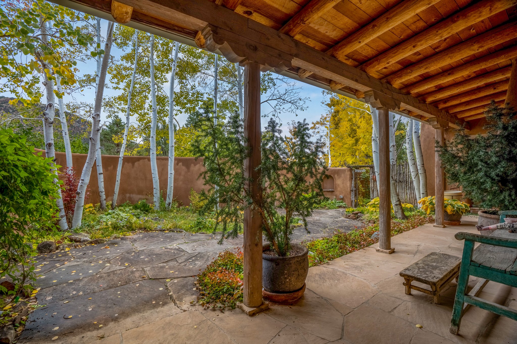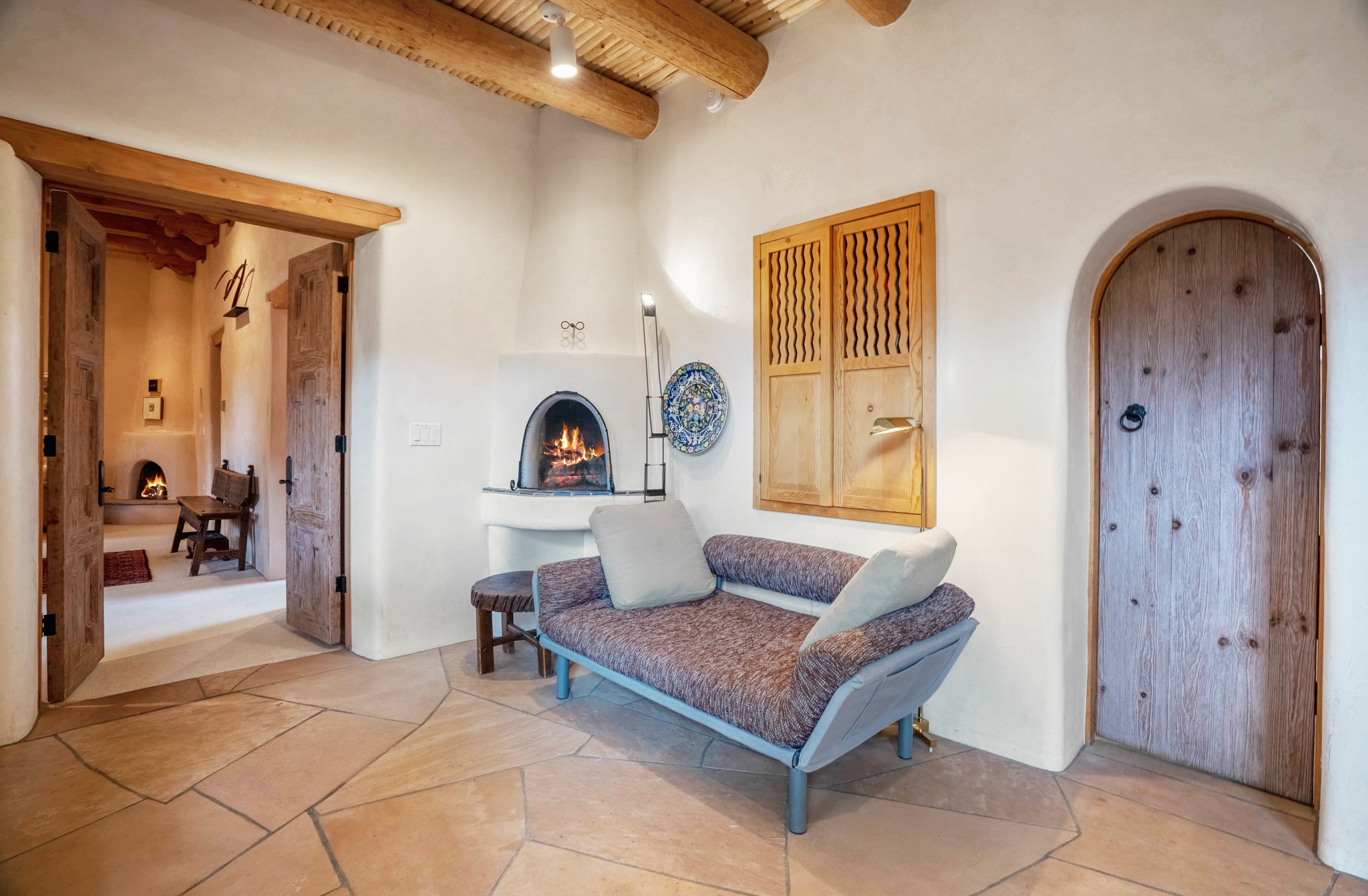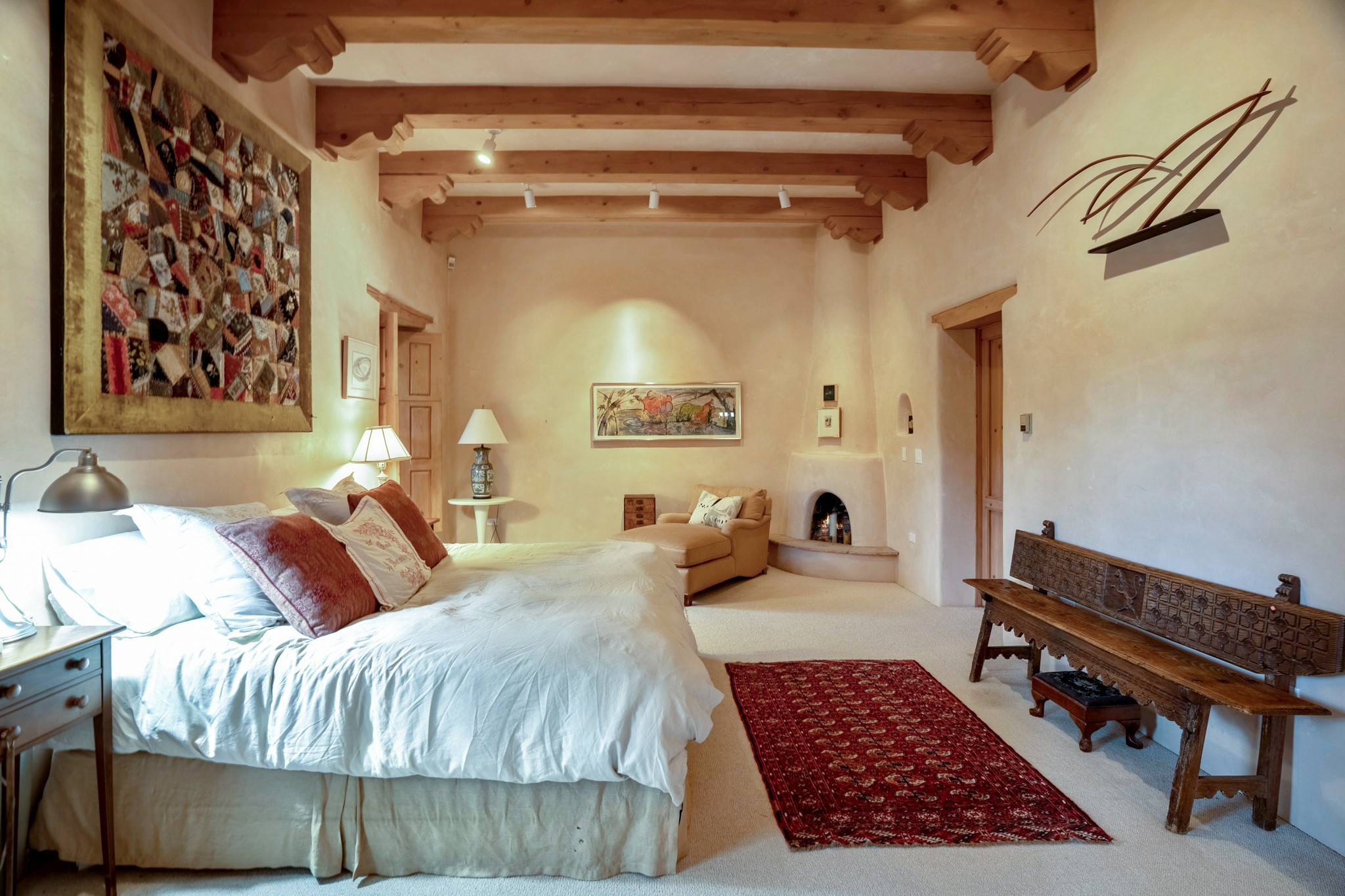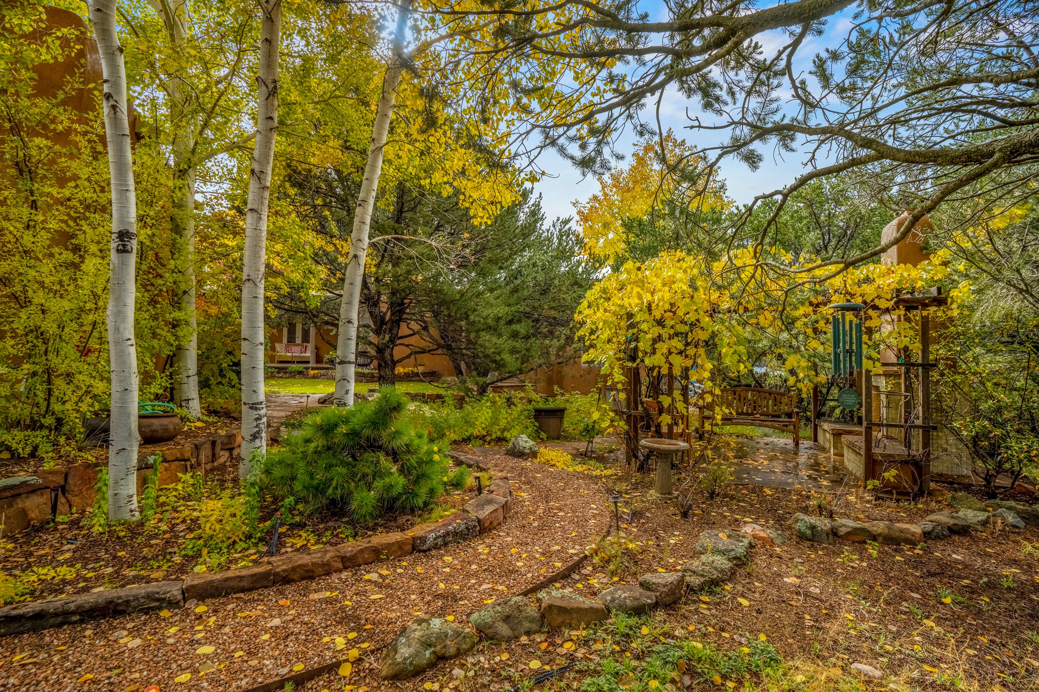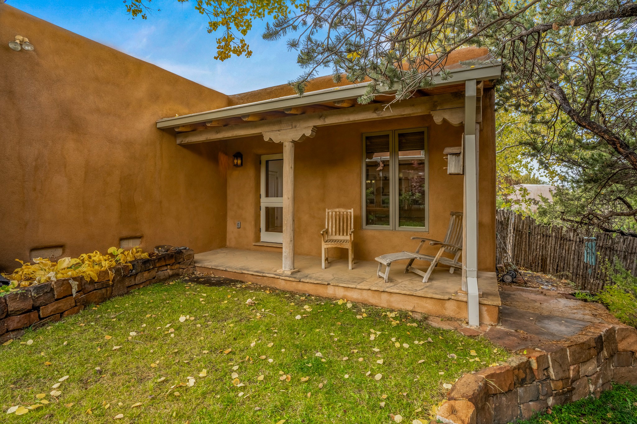 A peaceful, mostly adobe home and oasis with gorgeous living spaces both inside and out! 4 bedrooms and 3 full baths and 2 half baths with 3880sf create the foundation for a warm, inviting home with a great entertaining layout; living room and kitchen have french doors to the lush backyard and there is a fantastic butler's pantry, Sub Zero and DCS appliances and large island. The floorplan is nicely separated with two guest bedrooms (one with ensuite bath and its own exterior entry) on the opposite side of the house from the owner's suite. The backyard is its own secret garden - lush plants on a drip system, an arbor, hot tub and an outdoor fireplace - and backs onto several acres of common space behind the Museums. Other great features are a library with built-in shelves, diamond plaster finish throughout, a mud room between the 2-car garage and kitchen, a total of 5 fireplaces, fenced dog enclosure with large dog house, and an inviting front garden/patio. This home is a must see!