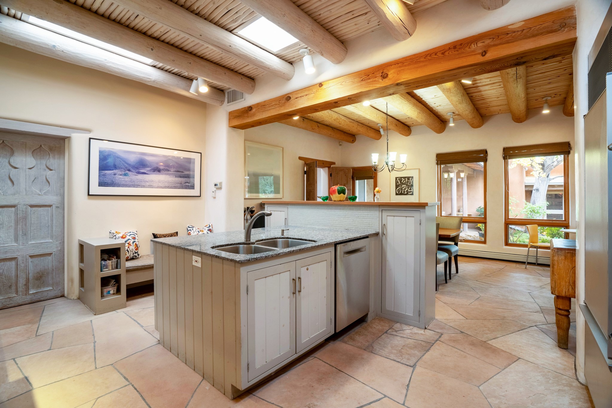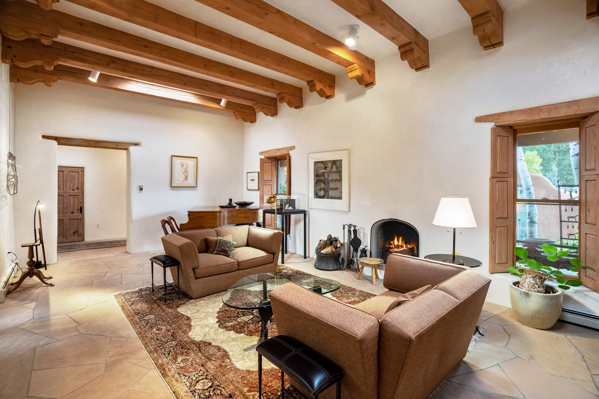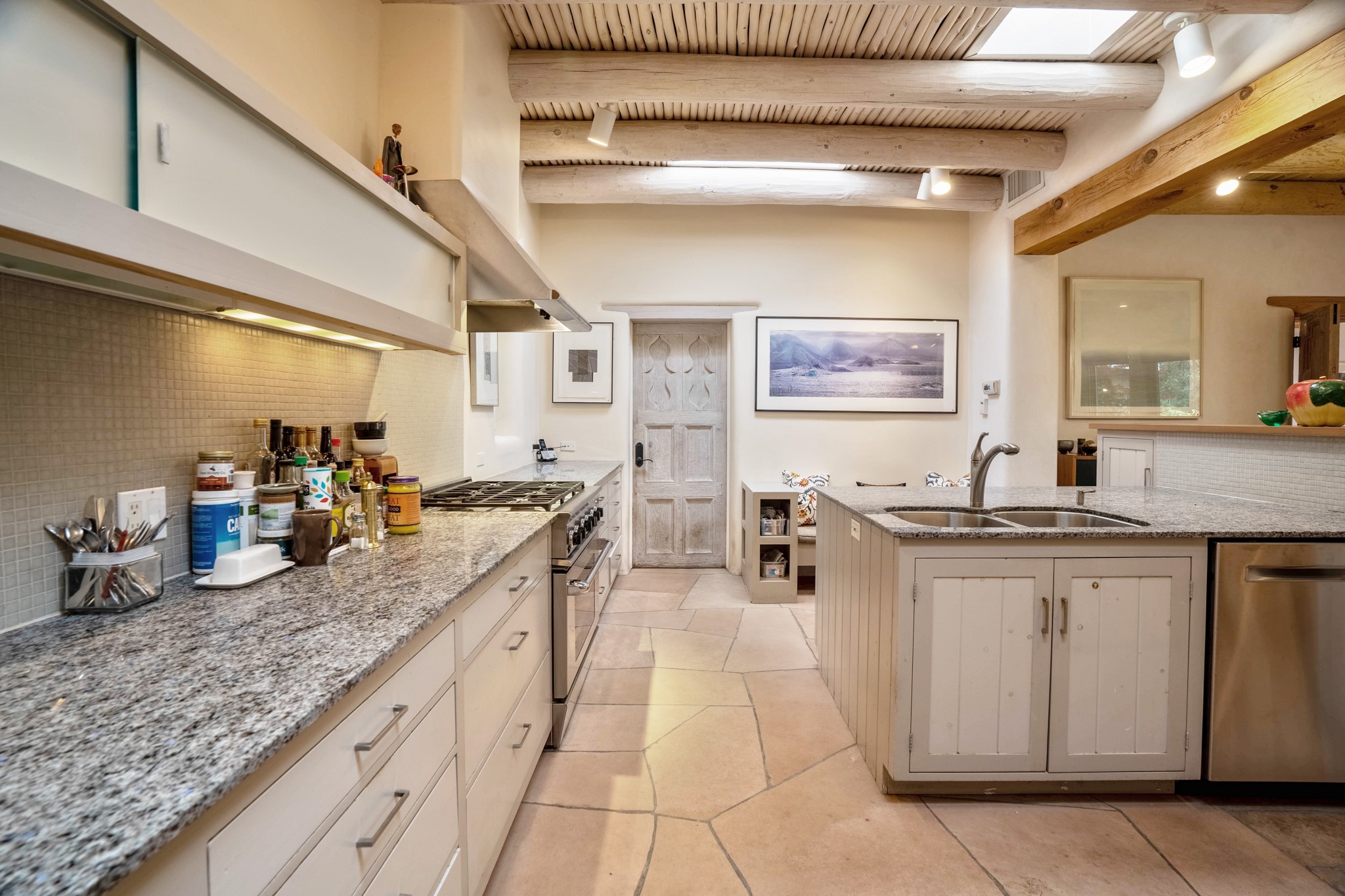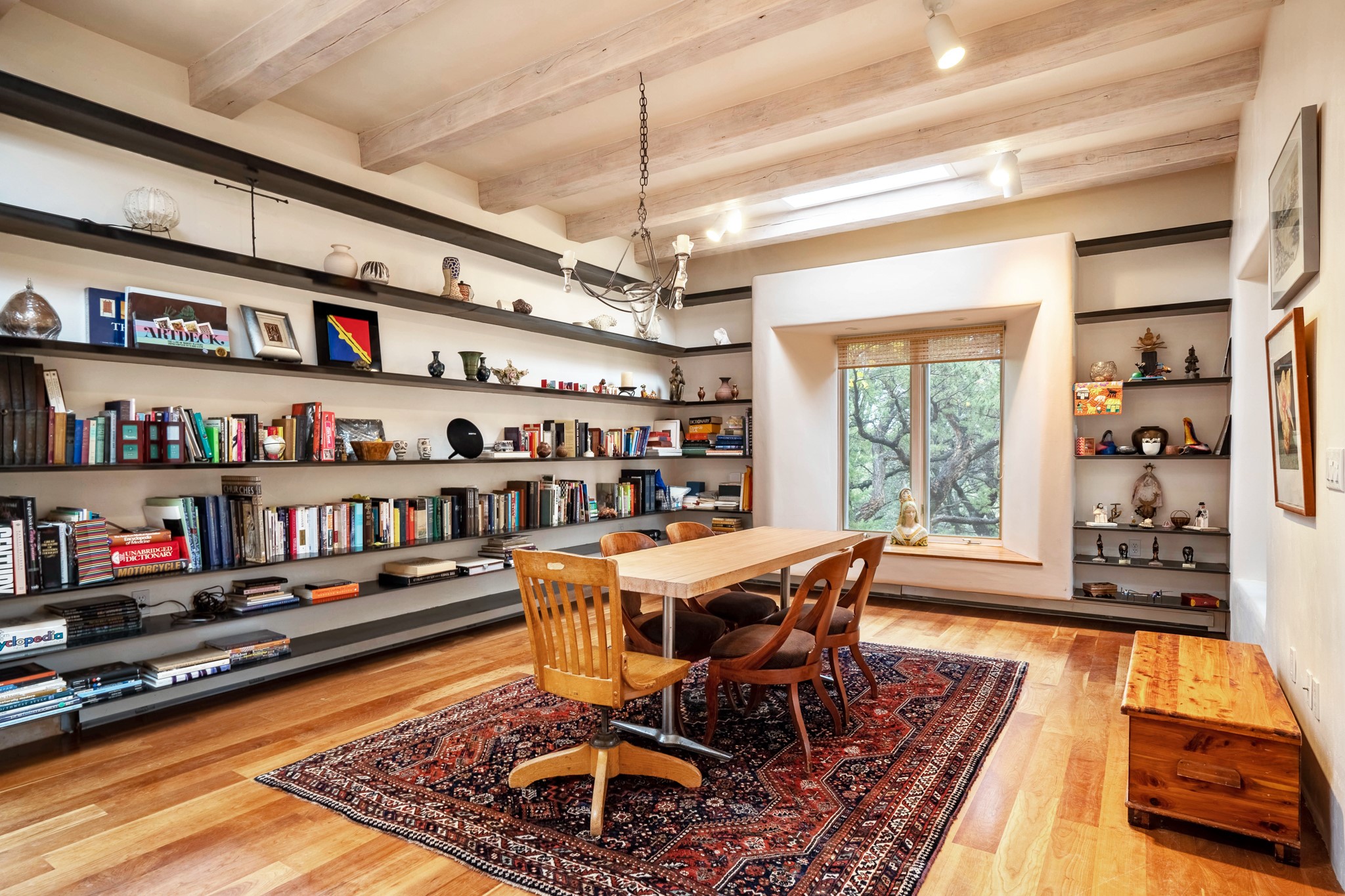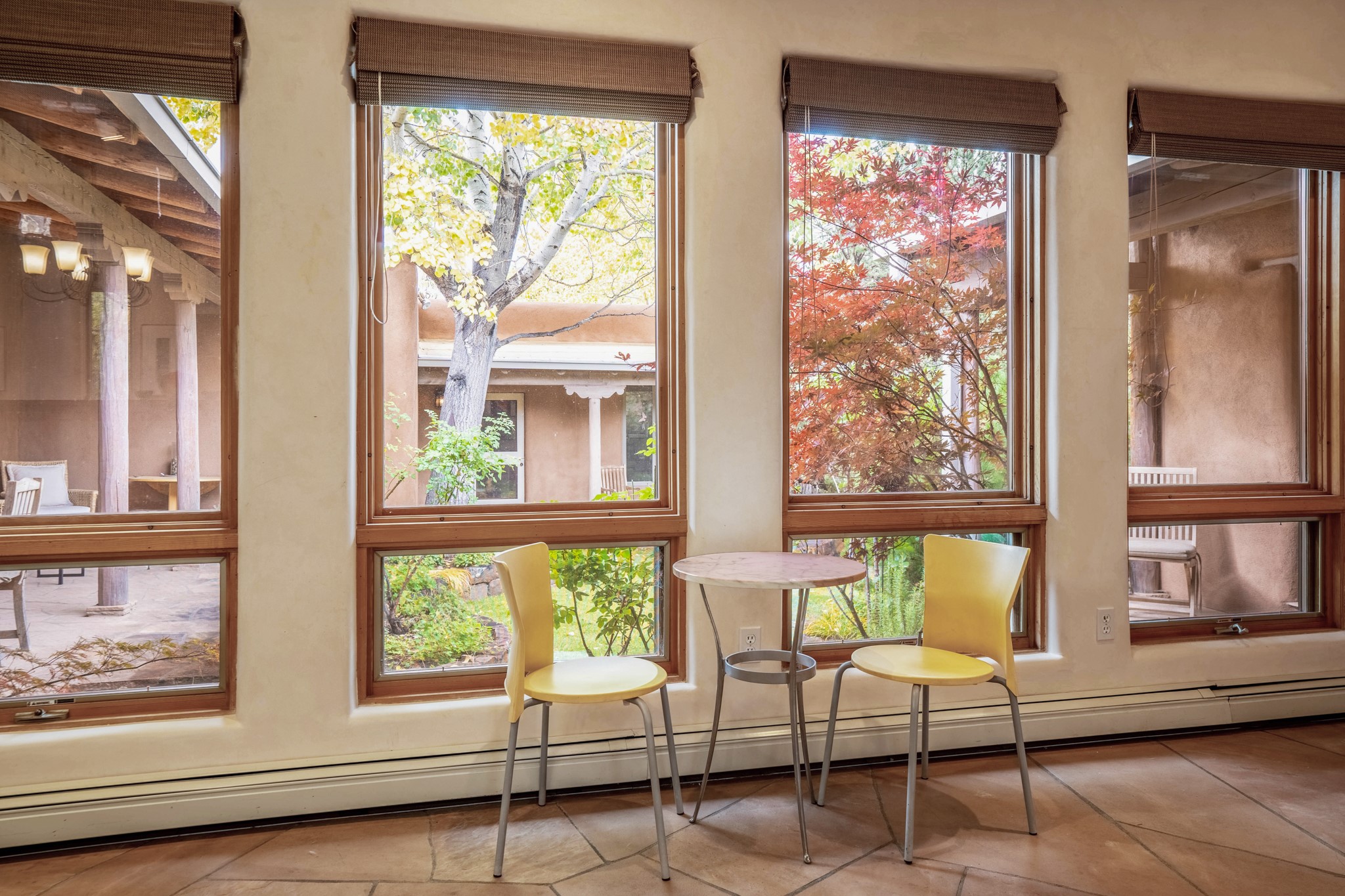 A peaceful, mostly adobe home and oasis with gorgeous living spaces both inside and out! 4 bedrooms and 3 full baths and 2 half baths with 3880sf create the foundation for a warm, inviting home with a great entertaining layout; living room and kitchen have french doors to the lush backyard and there is a fantastic butler's pantry, Sub Zero and DCS appliances and large island. The floorplan is nicely separated with two guest bedrooms (one with ensuite bath and its own exterior entry) on the opposite side of the house from the owner's suite. The backyard is its own secret garden - lush plants on a drip system, an arbor, hot tub and an outdoor fireplace - and backs onto several acres of common space behind the Museums. Other great features are a library with built-in shelves, diamond plaster finish throughout, a mud room between the 2-car garage and kitchen, a total of 5 fireplaces, fenced dog enclosure with large dog house, and an inviting front garden/patio. This home is a must see!