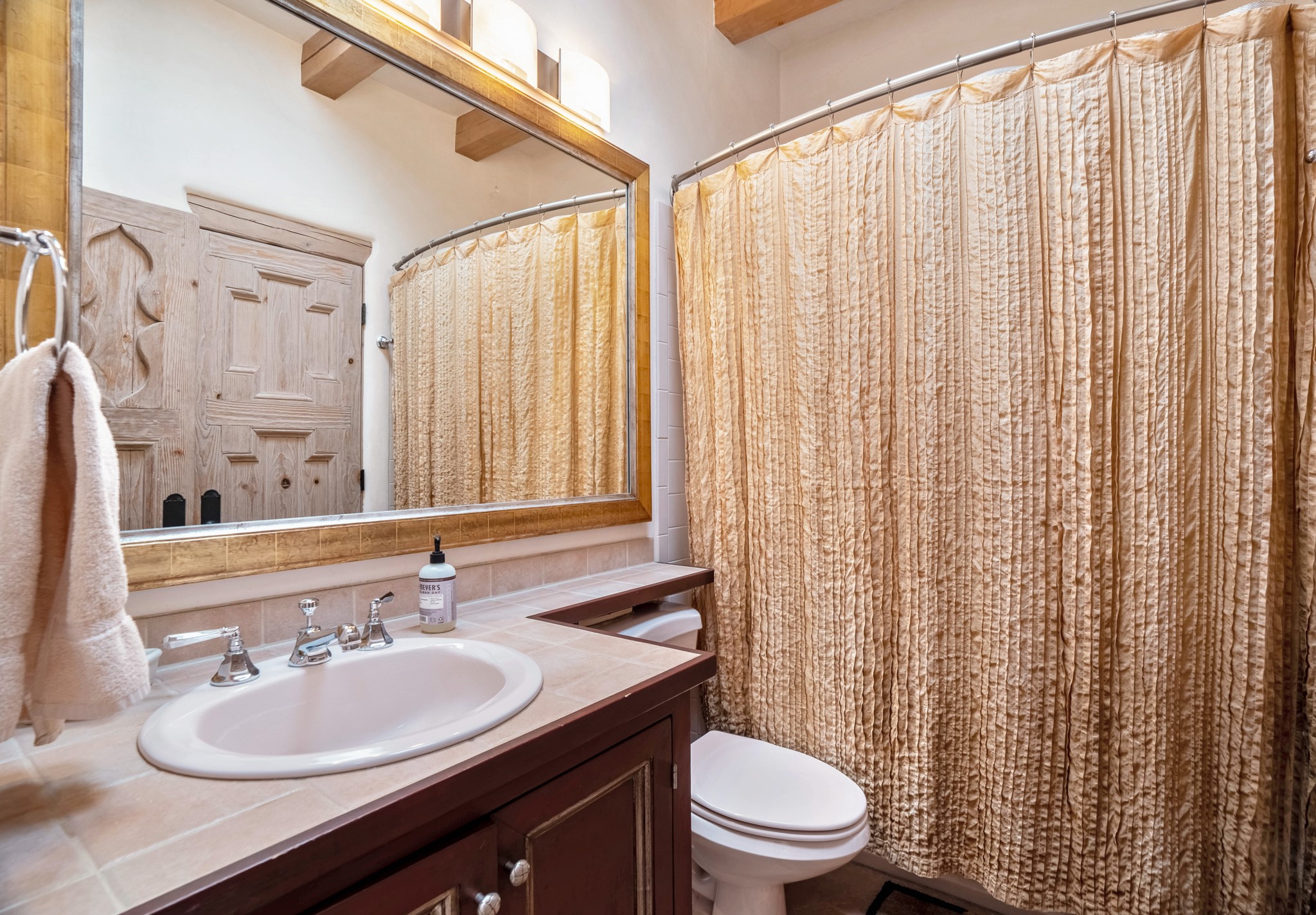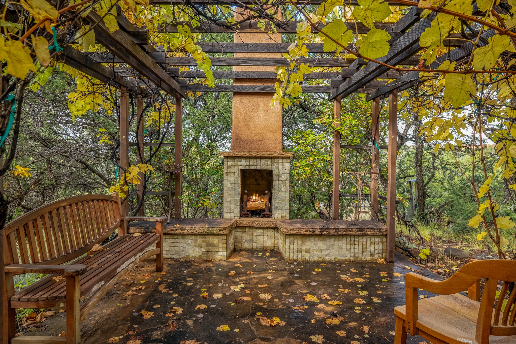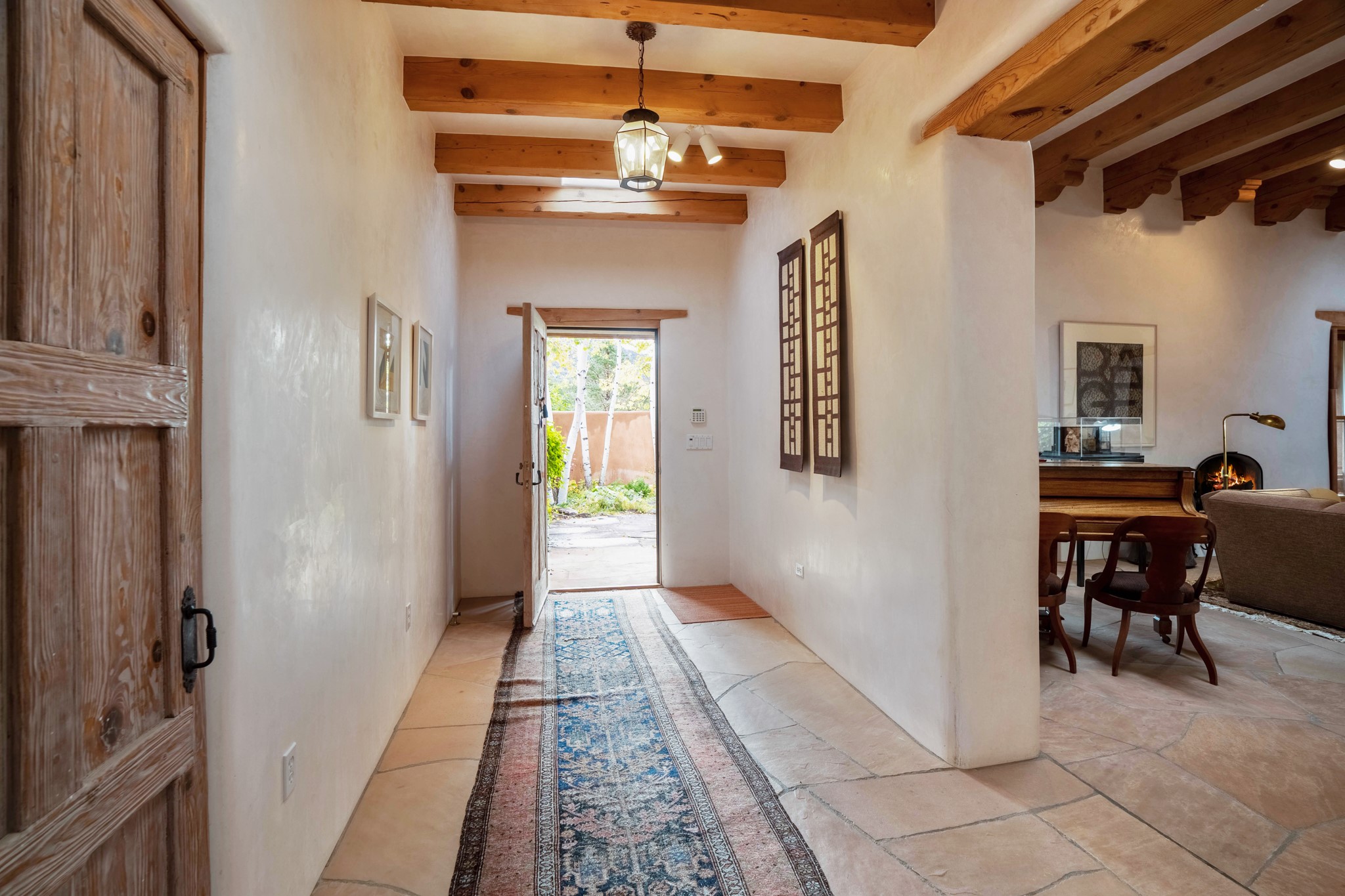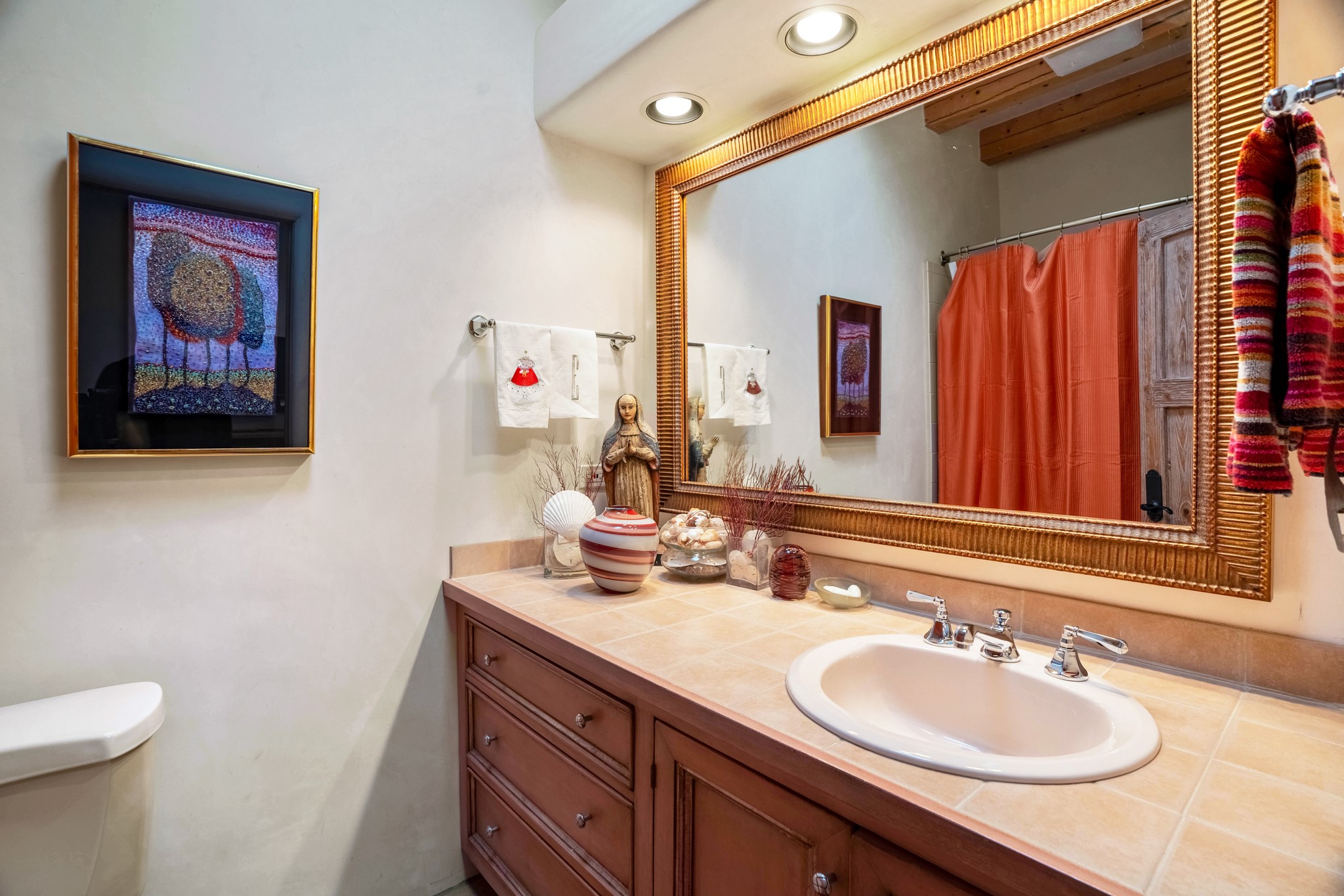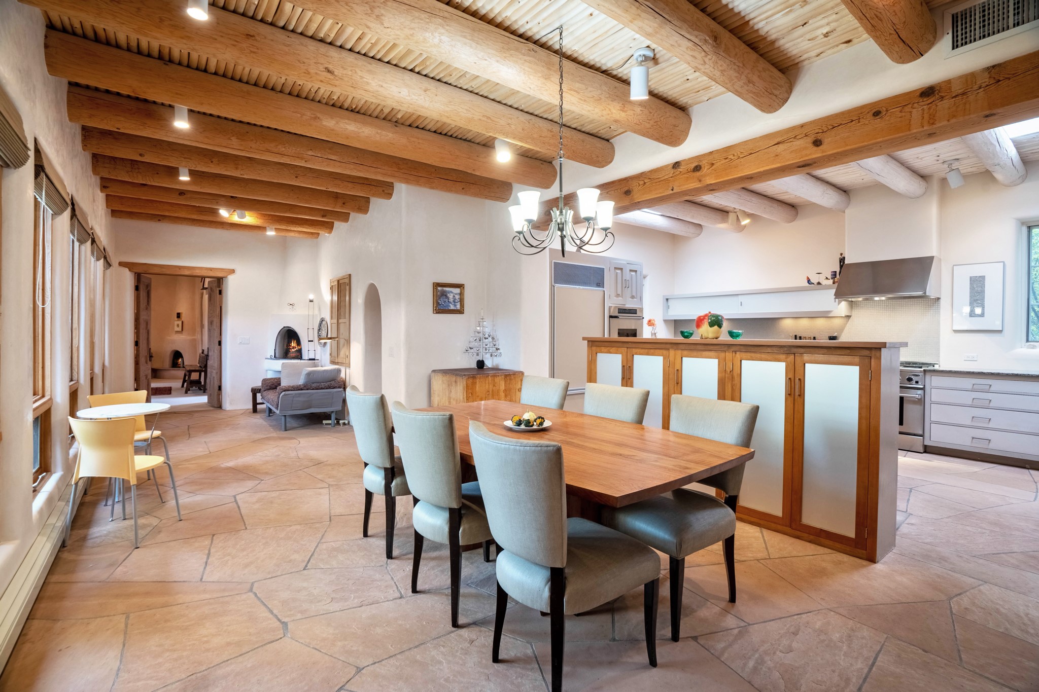 A peaceful, mostly adobe home and oasis with gorgeous living spaces both inside and out! 4 bedrooms and 3 full baths and 2 half baths with 3880sf create the foundation for a warm, inviting home with a great entertaining layout; living room and kitchen have french doors to the lush backyard and there is a fantastic butler's pantry, Sub Zero and DCS appliances and large island. The floorplan is nicely separated with two guest bedrooms (one with ensuite bath and its own exterior entry) on the opposite side of the house from the owner's suite. The backyard is its own secret garden - lush plants on a drip system, an arbor, hot tub and an outdoor fireplace - and backs onto several acres of common space behind the Museums. Other great features are a library with built-in shelves, diamond plaster finish throughout, a mud room between the 2-car garage and kitchen, a total of 5 fireplaces, fenced dog enclosure with large dog house, and an inviting front garden/patio. This home is a must see!