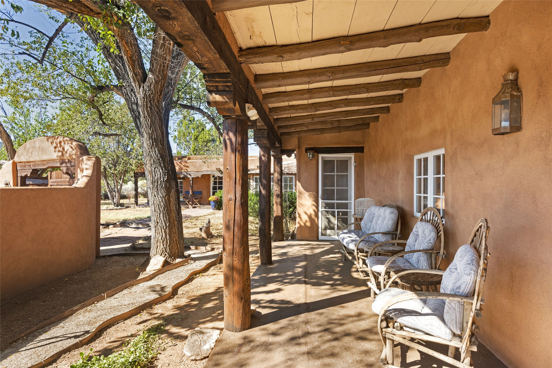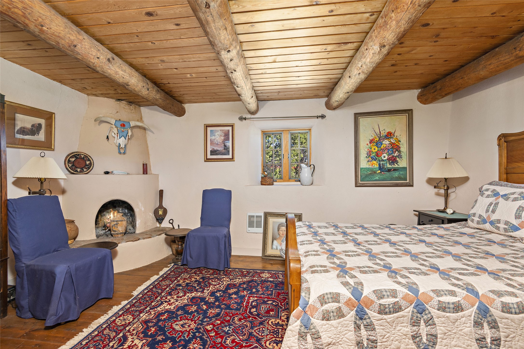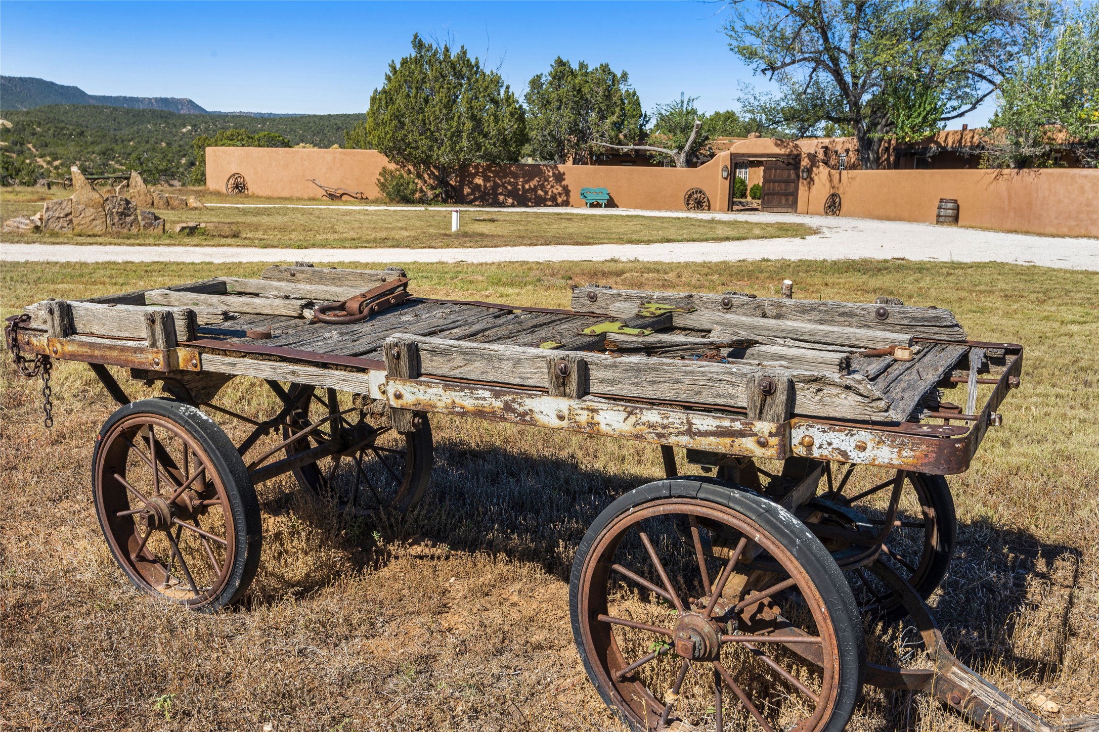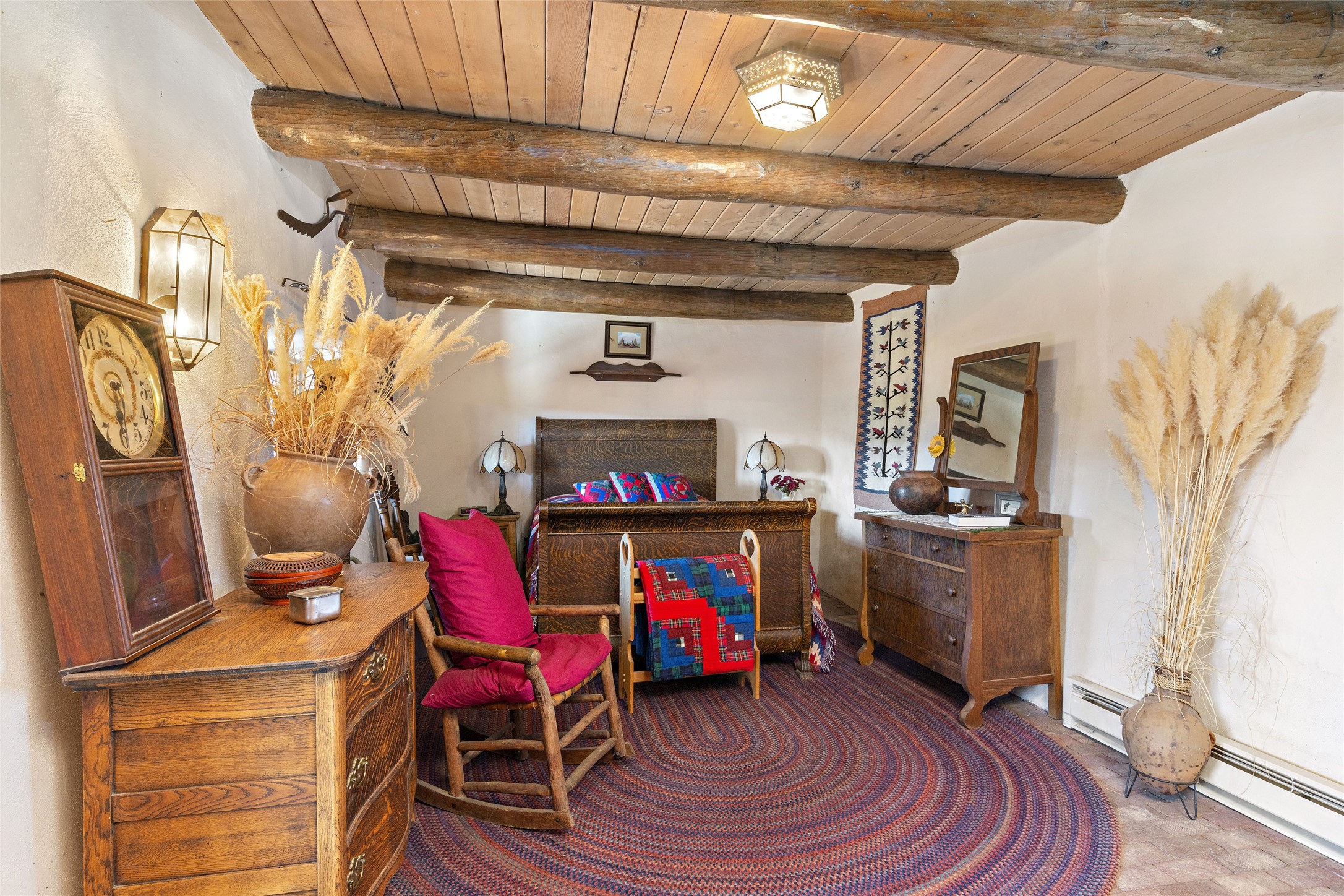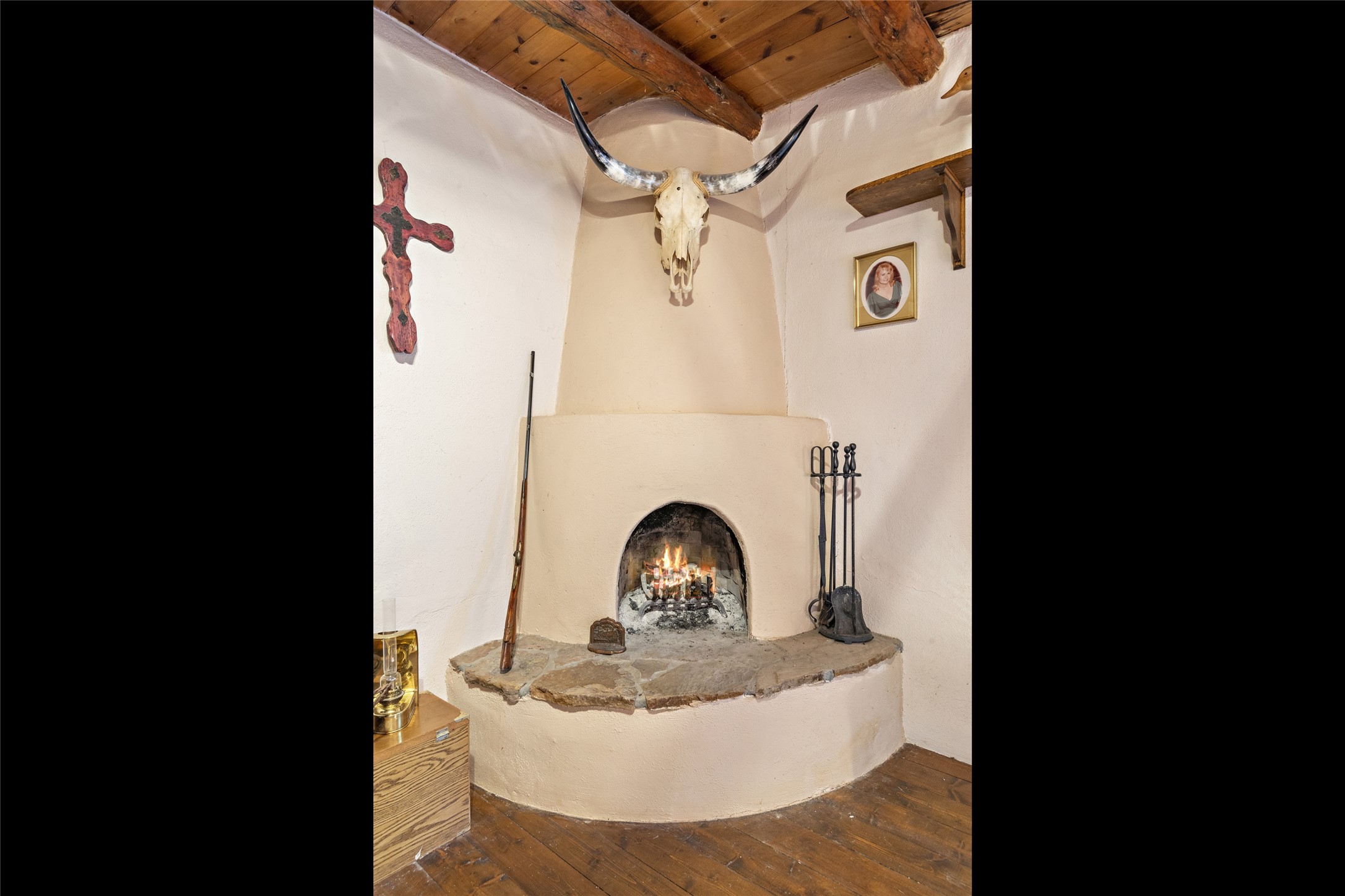 This is The Real. Authentic and charming adobe on 4 acres of Heaven, New Mexico, yet only 40 minutes to Santa Fe and 30 minutes to Las Vegas. The home is thought to be over 200 years old and comes with all the charm and authentic pueblo style you would expect. Brick and flagstone floors, hand hewn vigas with cedar latillas, plaster walls, and multiple fireplaces. The home sits on a bluff over the Pecos River, and it's rumored to at certain points have been a Stage stop on the Old Santa Fe Trail, and a monks retreat center. If these walls could talk! Next to the home is a large 1,456sf barn/garage which has a full rollup door, concrete flooring and electricity. Fully fenced with 4 wire barbwire and gated at driveway entrance.