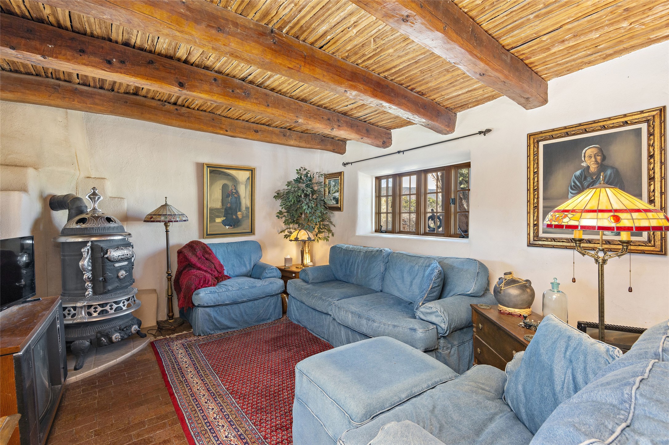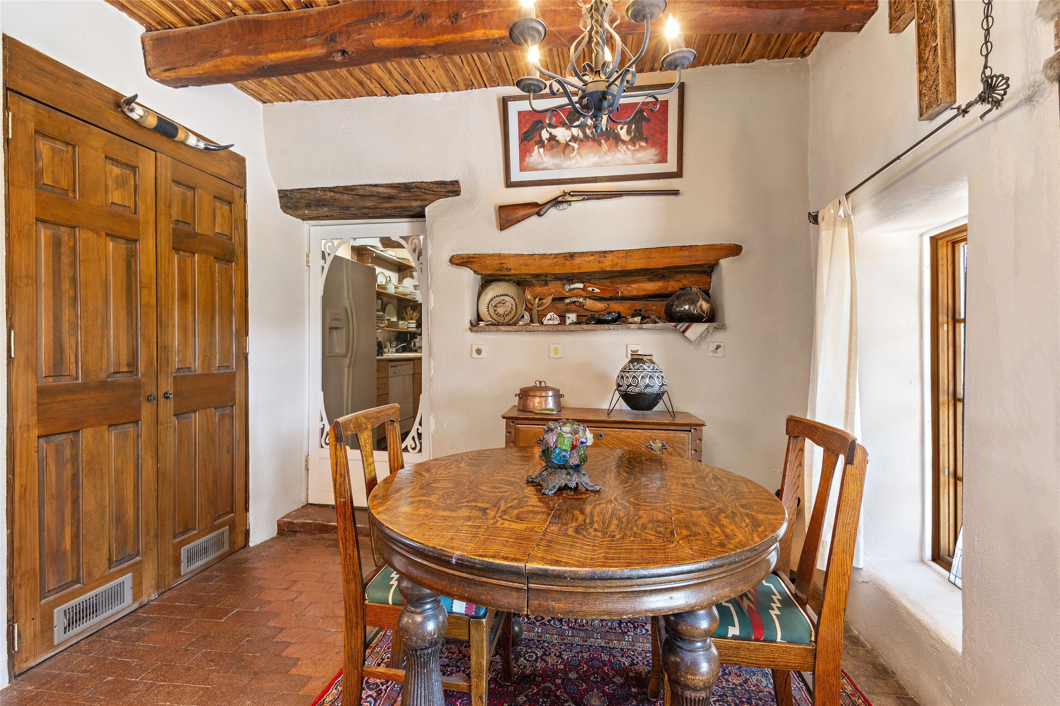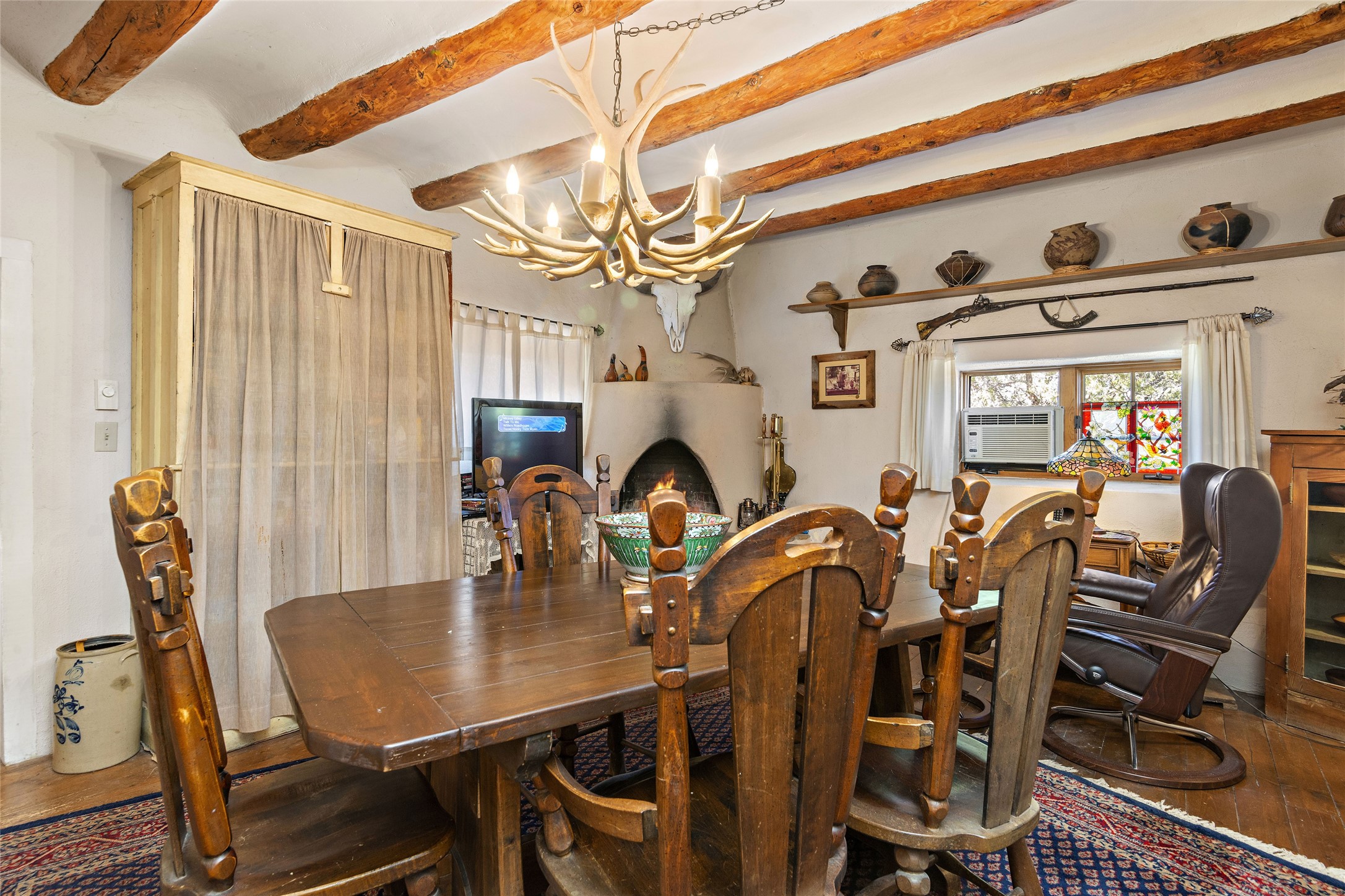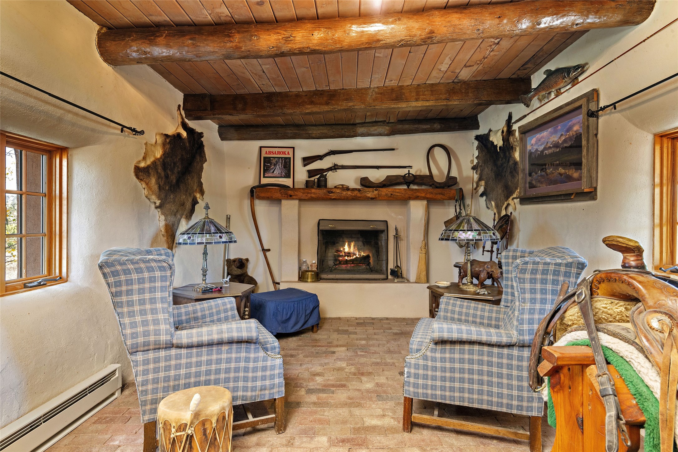 This is The Real. Authentic and charming adobe on 4 acres of Heaven, New Mexico, yet only 40 minutes to Santa Fe and 30 minutes to Las Vegas. The home is thought to be over 200 years old and comes with all the charm and authentic pueblo style you would expect. Brick and flagstone floors, hand hewn vigas with cedar latillas, plaster walls, and multiple fireplaces. The home sits on a bluff over the Pecos River, and it's rumored to at certain points have been a Stage stop on the Old Santa Fe Trail, and a monks retreat center. If these walls could talk! Next to the home is a large 1,456sf barn/garage which has a full rollup door, concrete flooring and electricity. Fully fenced with 4 wire barbwire and gated at driveway entrance.