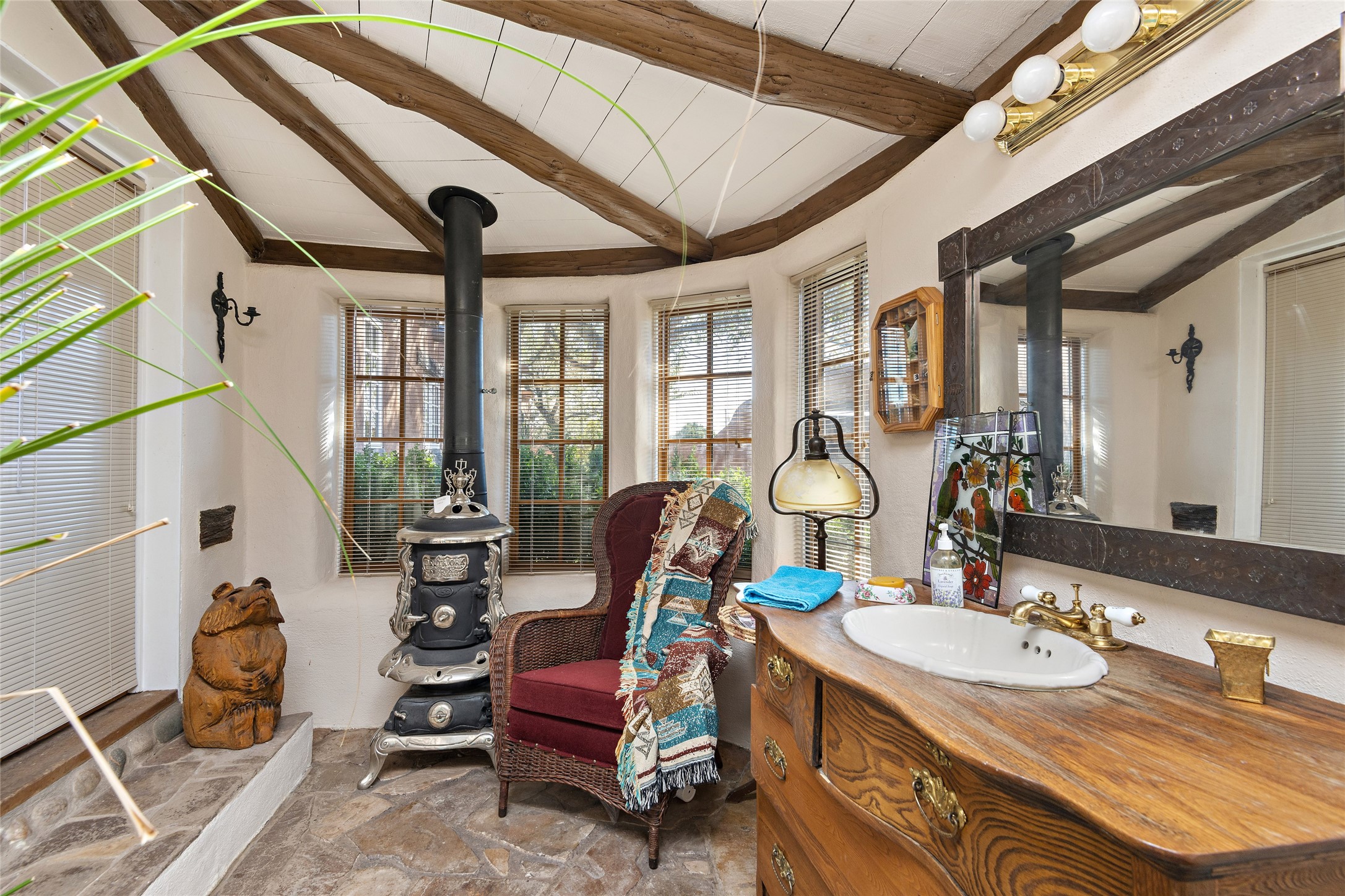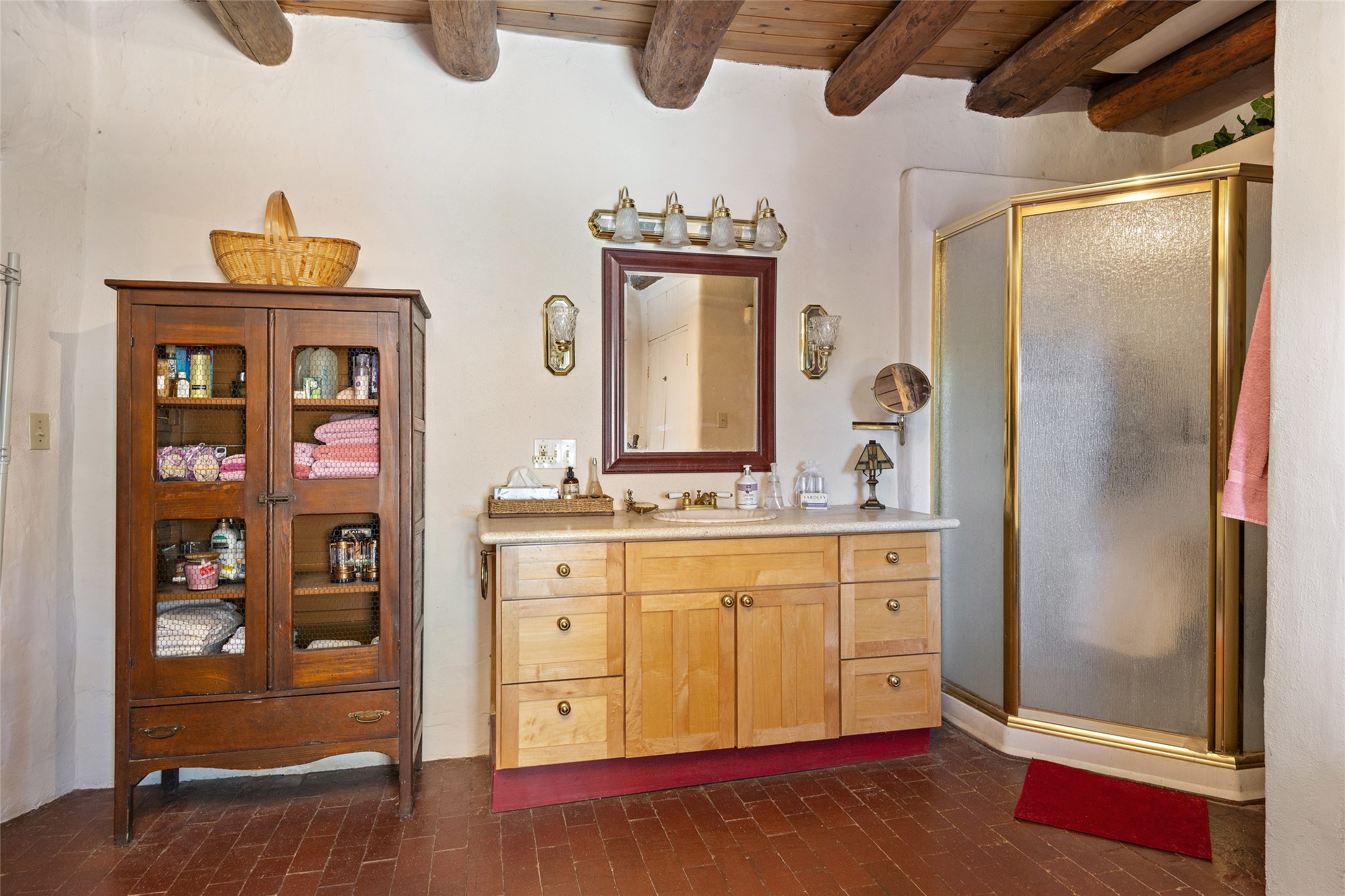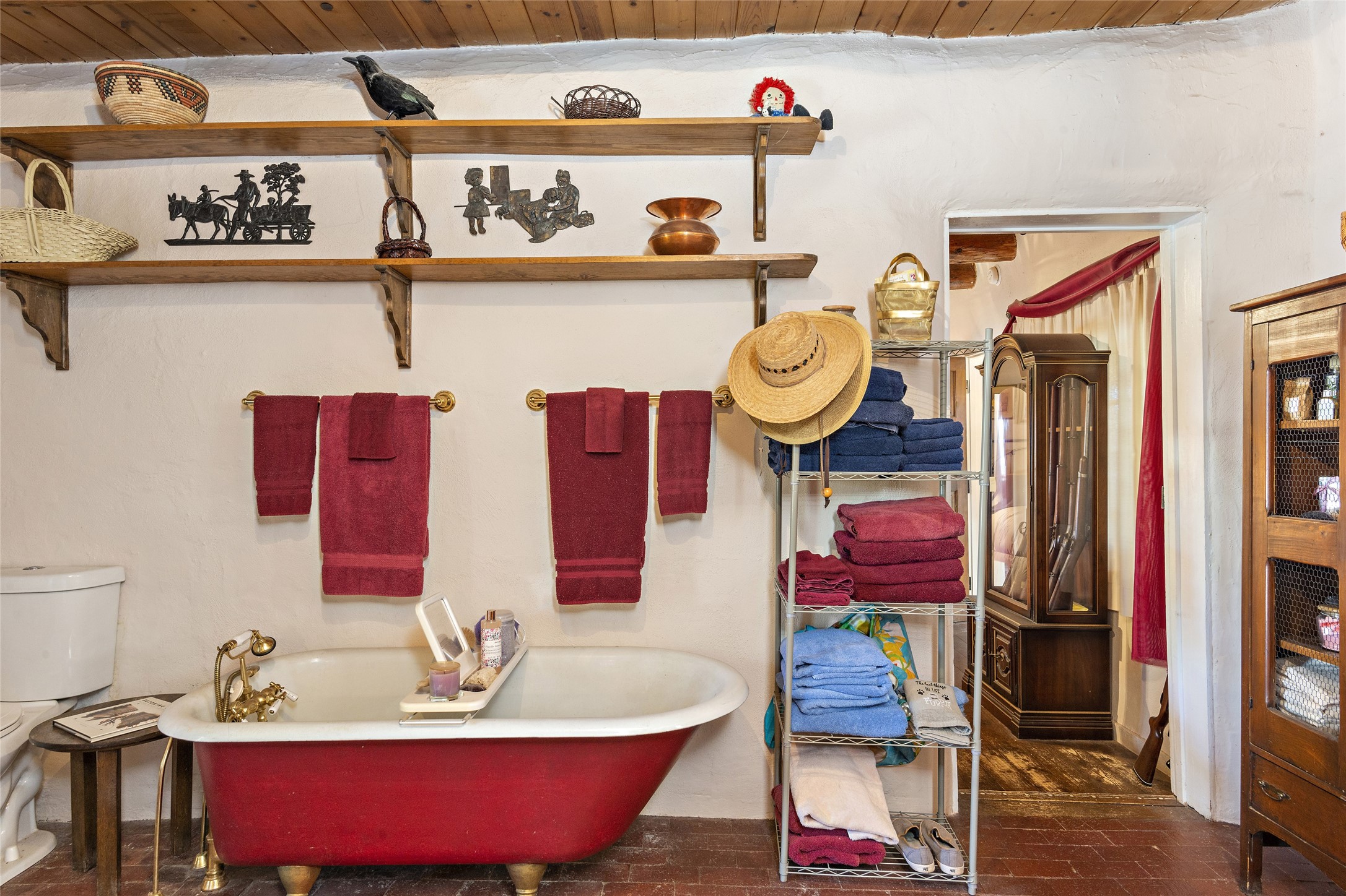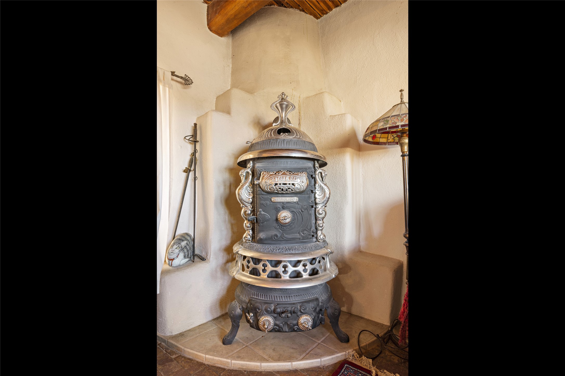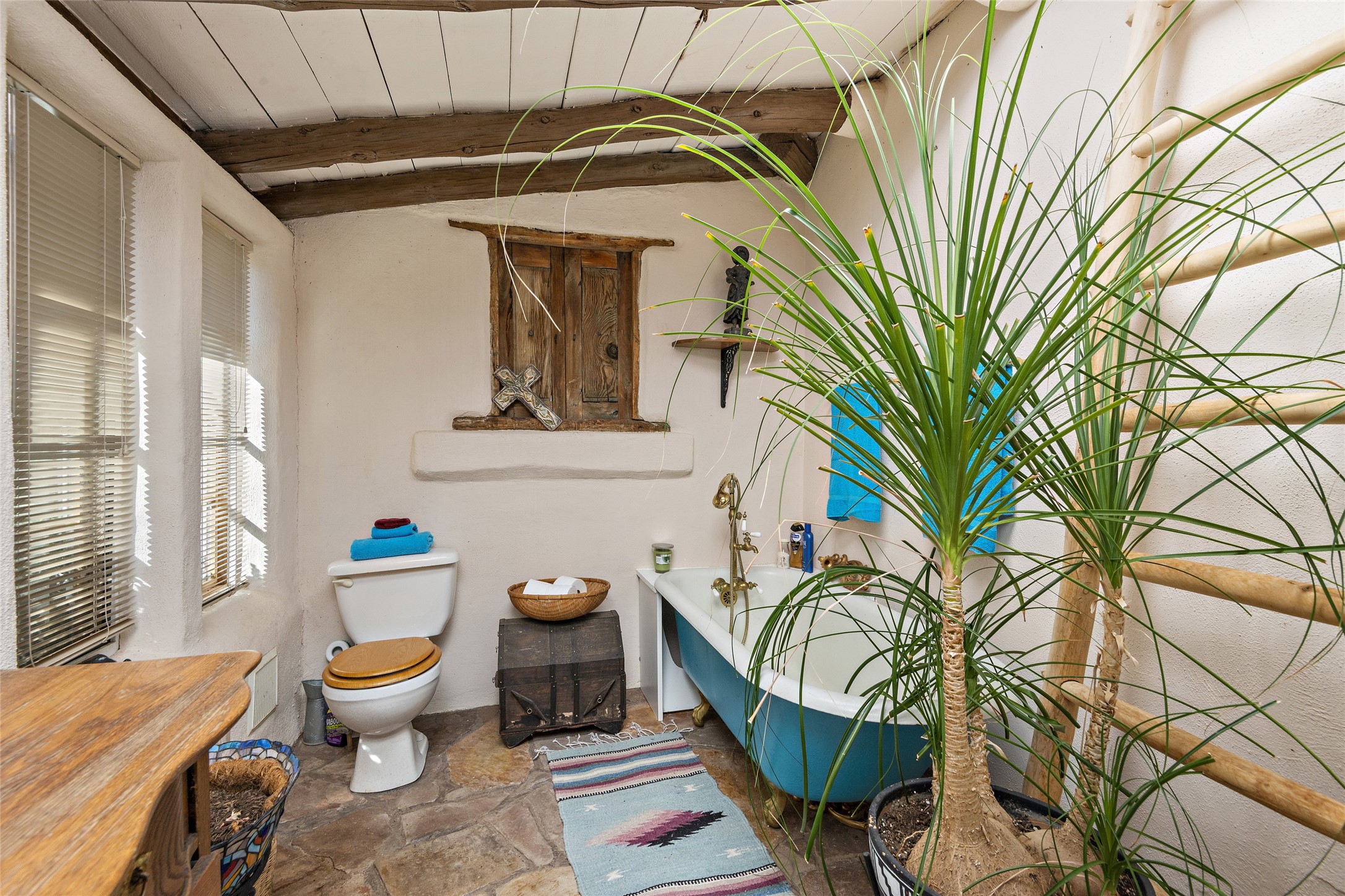 This is The Real. Authentic and charming adobe on 4 acres of Heaven, New Mexico, yet only 40 minutes to Santa Fe and 30 minutes to Las Vegas. The home is thought to be over 200 years old and comes with all the charm and authentic pueblo style you would expect. Brick and flagstone floors, hand hewn vigas with cedar latillas, plaster walls, and multiple fireplaces. The home sits on a bluff over the Pecos River, and it's rumored to at certain points have been a Stage stop on the Old Santa Fe Trail, and a monks retreat center. If these walls could talk! Next to the home is a large 1,456sf barn/garage which has a full rollup door, concrete flooring and electricity. Fully fenced with 4 wire barbwire and gated at driveway entrance.
