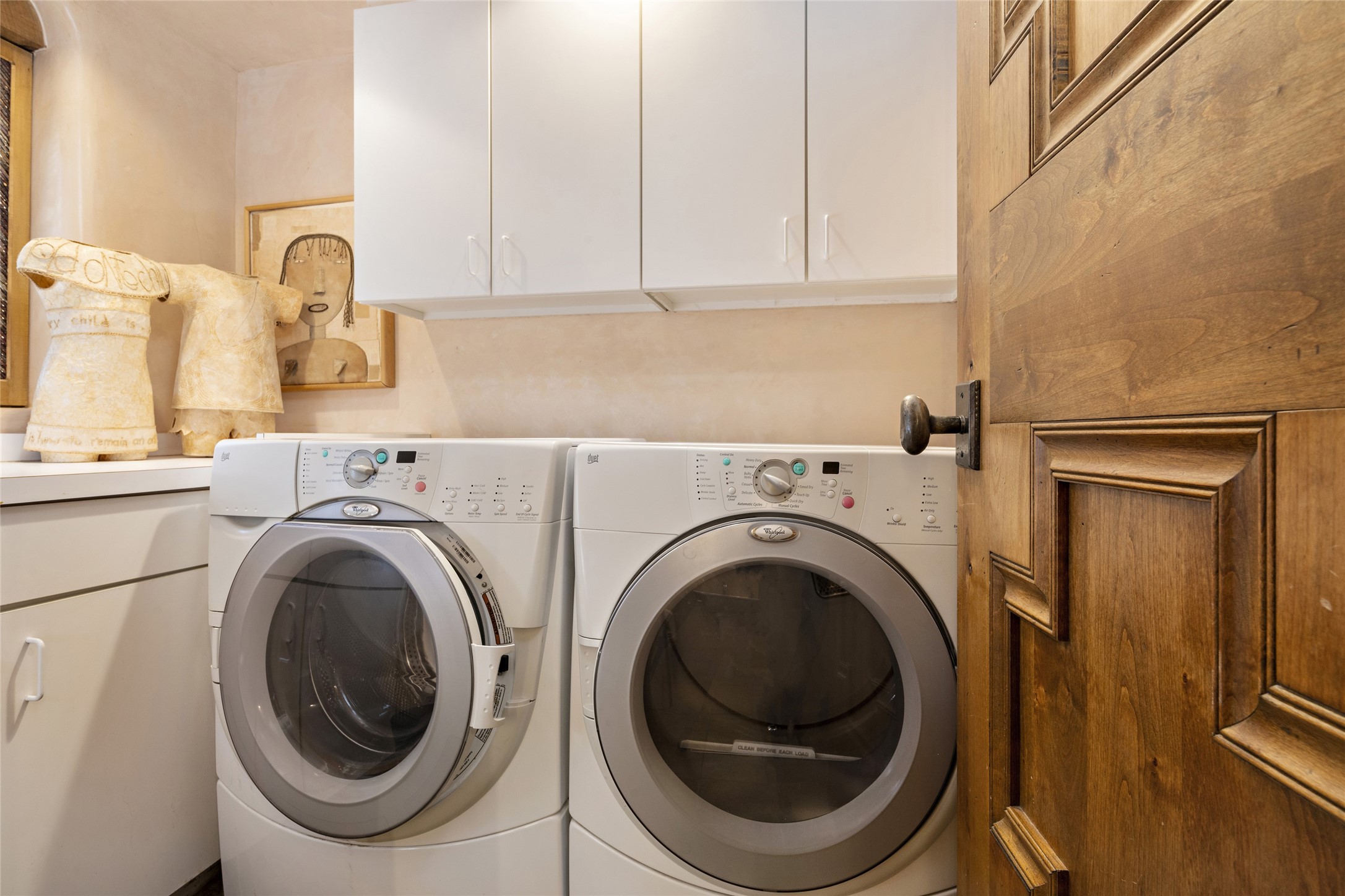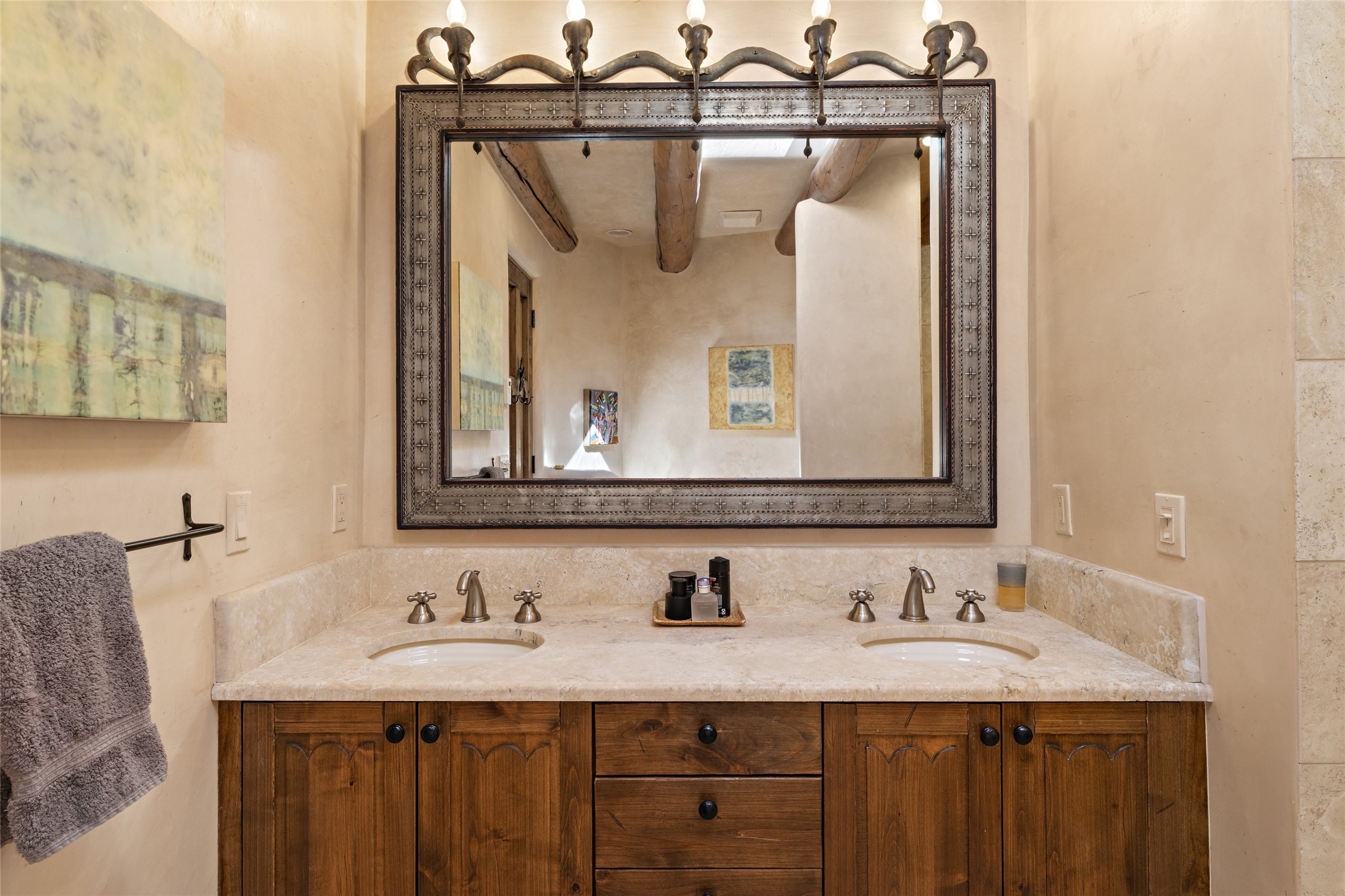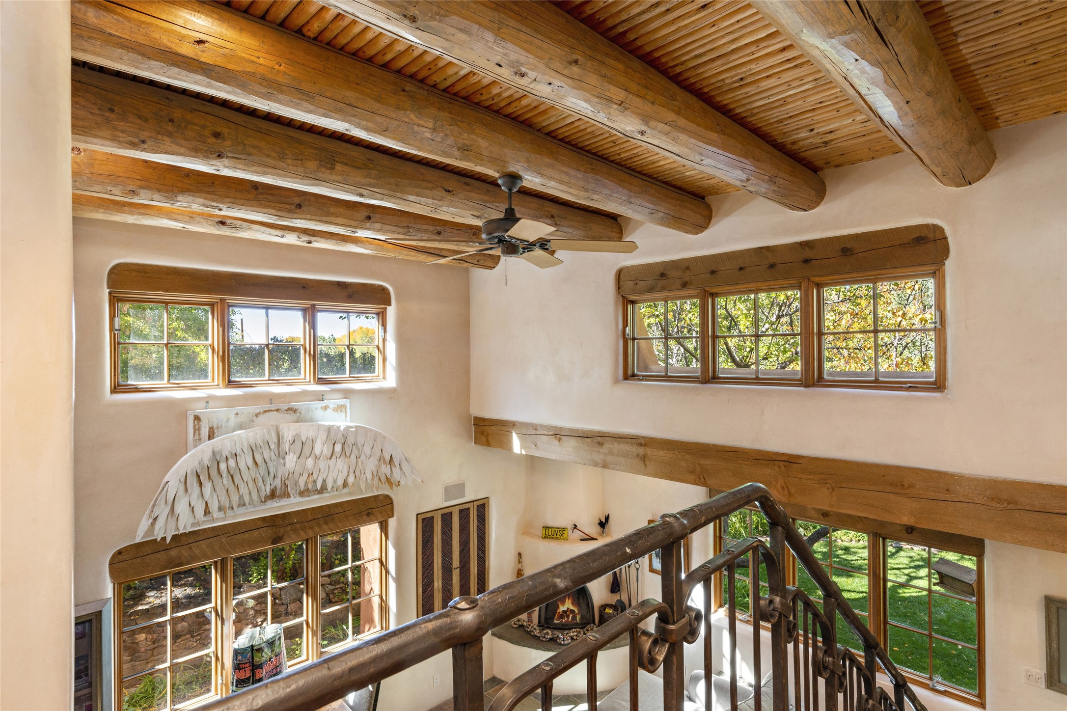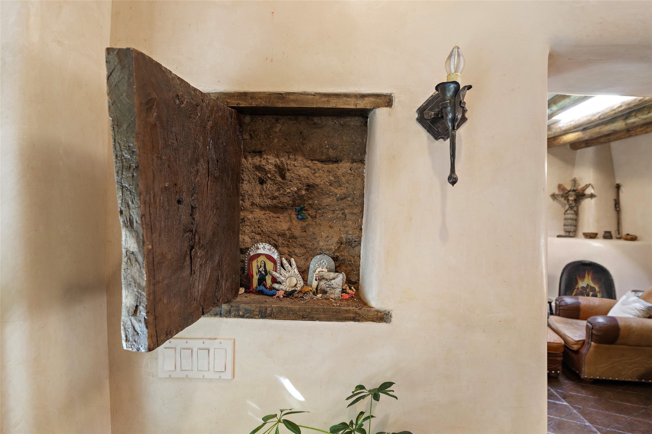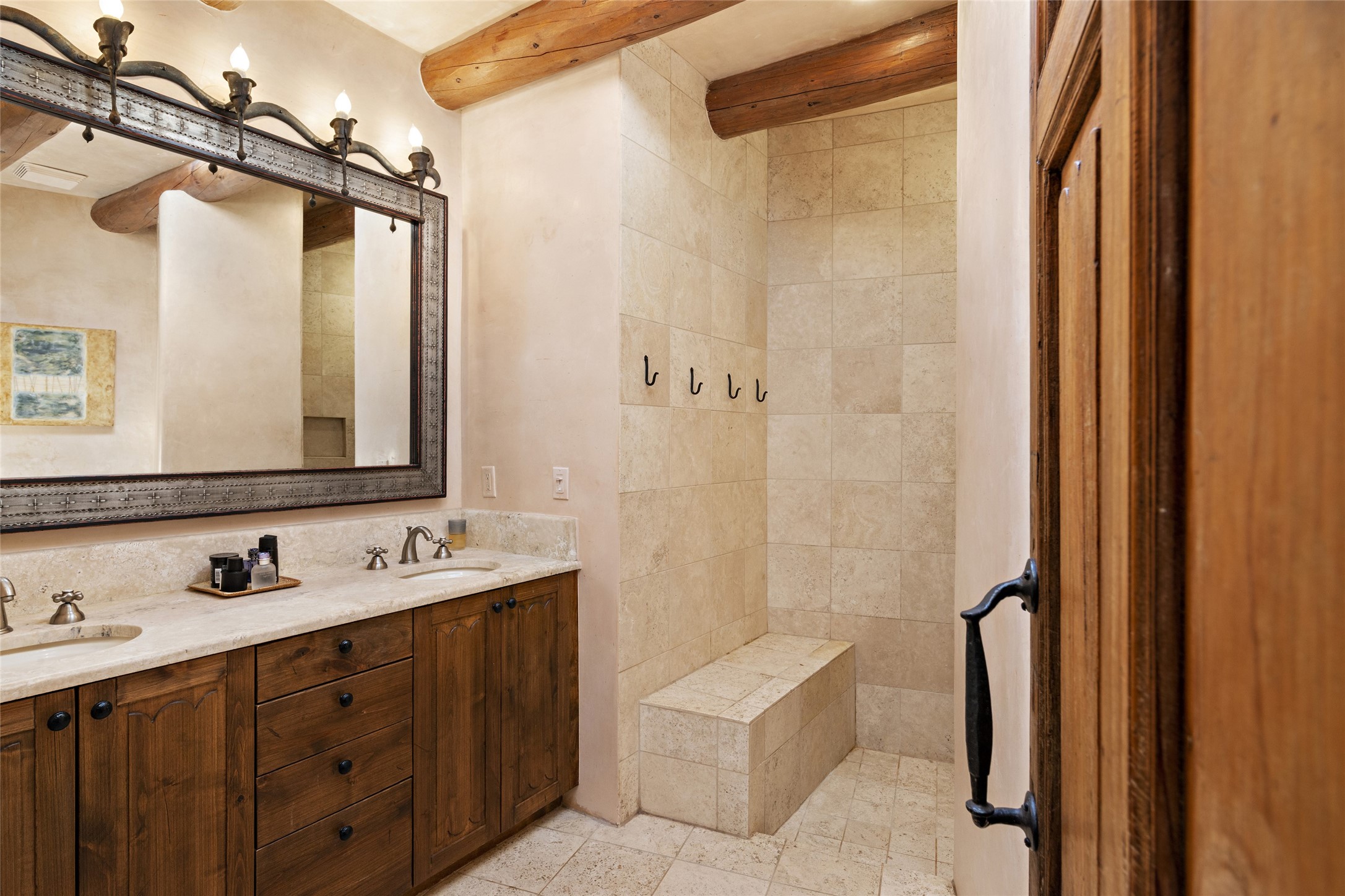 This authentic historic Eastside compound, completely remodeled by the well-respected builder Sharon Woods, is situated in an area close to world-class dining, art galleries, and shopping along one of the best-known addresses in downtown Santa Fe. The property consists of s single level 2 bedroom, 1,968 sq.ft. main house and two-story, 4 bedroom, 1,528 sq.ft. guest house, both adobe and frame construction. Classically Santa Fe styled, the compound is surrounded by 0.208 acres of completely lush and mature landscaping behind private, walled, and gated spaces. Ideal for entertaining, the formal living areas create an open and airy place for guests and family to mingle and enjoy the mature gardens, bubbling fountain, and hot tub. The legendary and timeless Acequia Madre still runs through the back of the compound. Smooth plaster walls, vigas, brick, flagstone, and wood floors, as well as detailed ironwork throughout the homes, help to exude a refined and sophisticated lifestyle. Both homes have their own full kitchens, perfect for guests and families. Zoned RAC in the Historic Eastside, acequia water rights also convey with the property. This ideal location property is just down the street from The Teahouse, Geronimos and El Farol making it a desirable Santa Fe destination. Come open one of the two "truth doors" to step back in time to when the homes were first imagined.