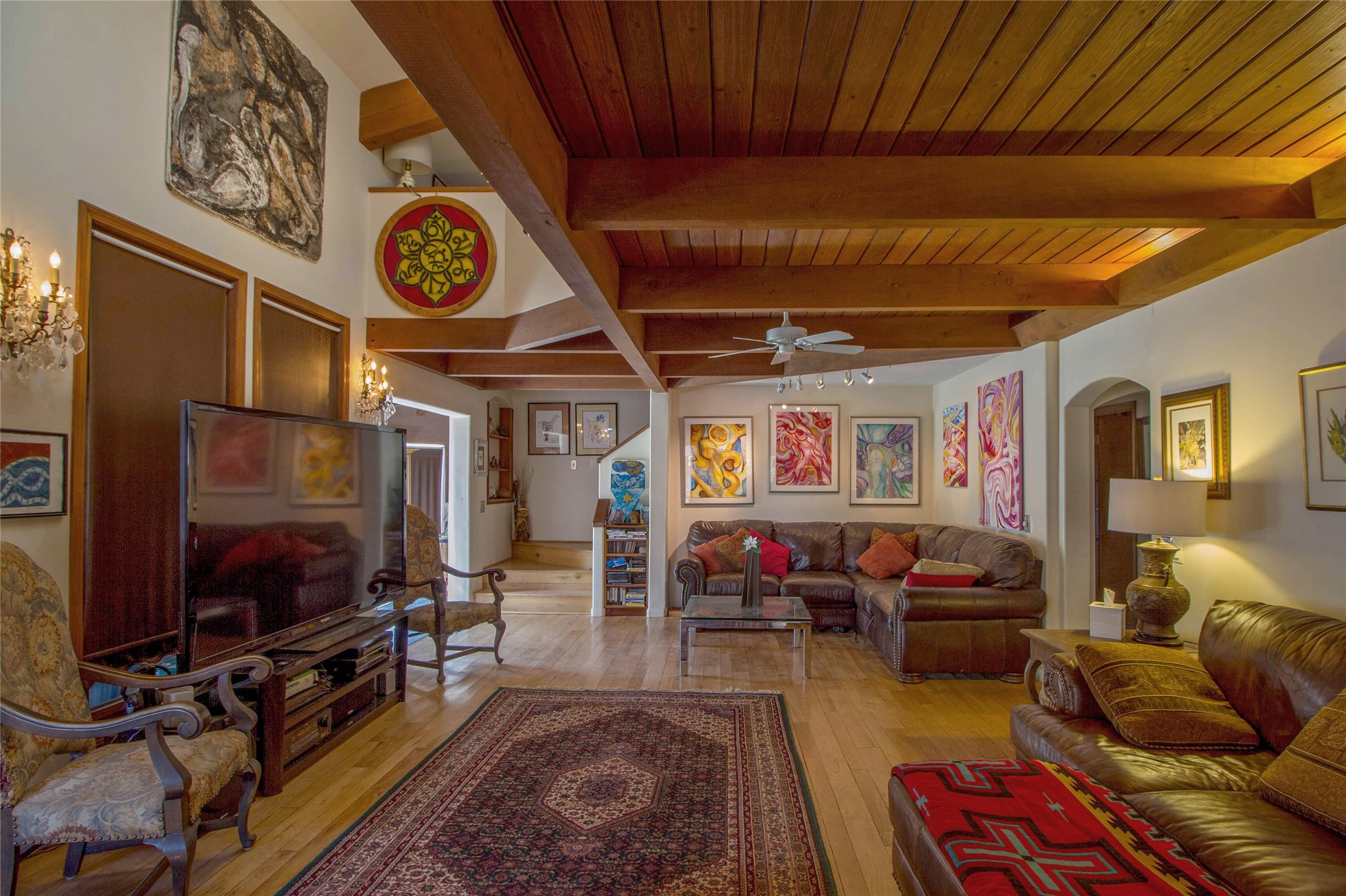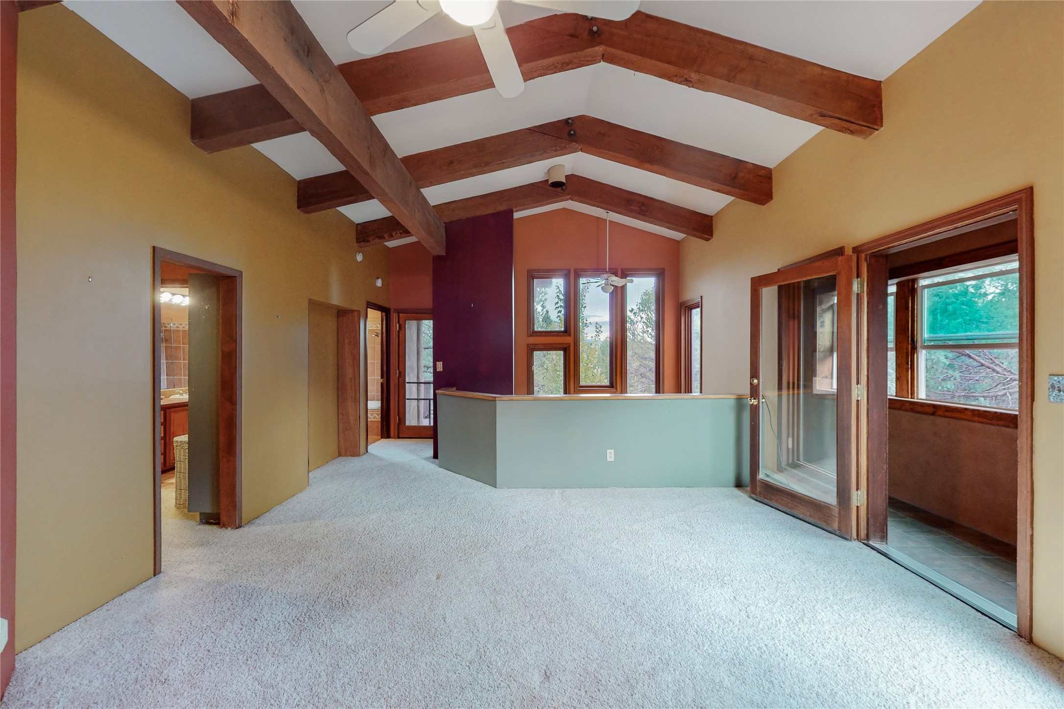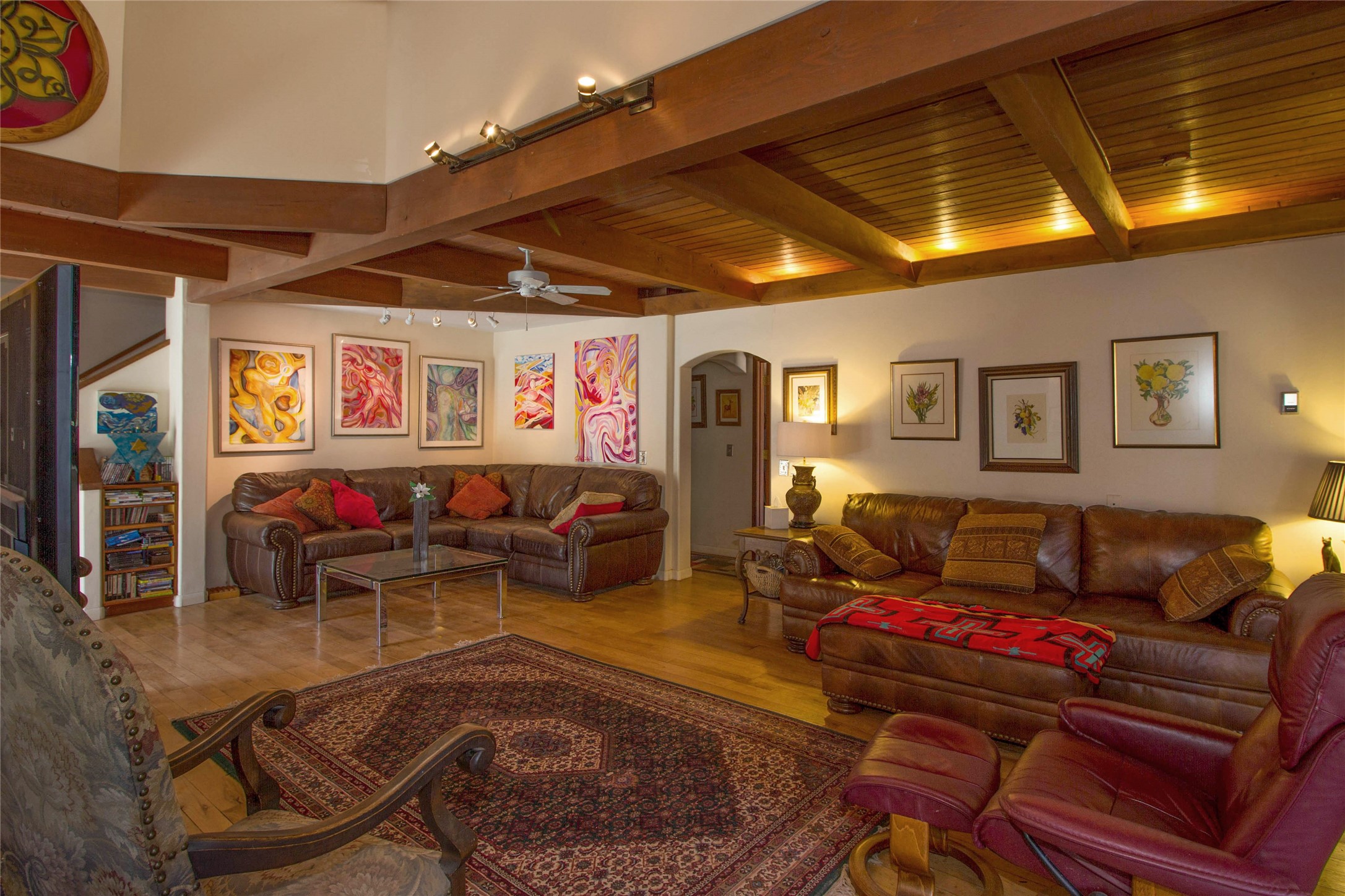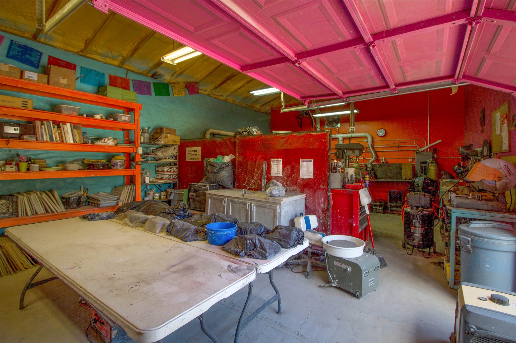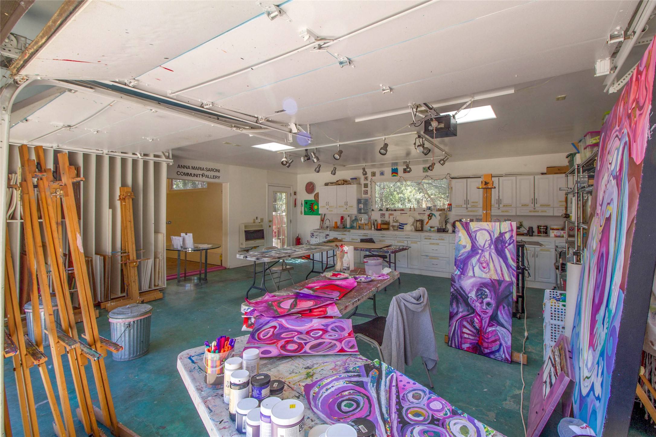 Situated just below the magical Rowe Mesa, this property was Originally set up as a horse ranch with 10 fully fenced in acres and was later converted to fully functioning art center. This now art destination oasis is ready for you to make it your own! The property is perfectly placed among the high desert pines (Pinon, Juniper and Ponderosa). The home features 3 bedrooms and 3 bathrooms, ample space and flexibility, new stainless-steel appliances in the kitchen, tons of storage space, and a bonus room that can be a bedroom/office/den. The central great room with amazing beams and wood accents, provides access to all parts of the house including the fantastic sunroom with access to the fully enclosed yard. When entering the property from Wildflower Ln on the circle driveway, you will first see a fully insulated free standing building that was historically used as a welding and ceramic studio. This building is equipped with its own independent power system, and has a 200-amp service panel capable of providing dedicated multiple 120v and 240v circuits ranging from 30 to 50 amps (which would support the use of many heavy power requiring pieces of equipment); perfect for any craftsman, tradesmen or artist. Lastly a drive to access the rest of the property to the south, will direct you to what was historically known and used as the Tarnoff Art Center. You can see what remains of this still fully functional facility created by this awesome art establishment. The heated Art Studio (garage) and connected gallery can still be used as such or can be converted to whatever your heart desires. The potential uses are endless! "Imagine the Possibilities" and schedule your showing today!