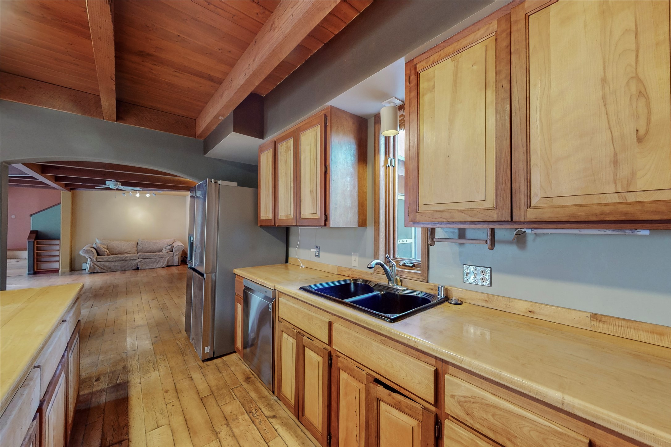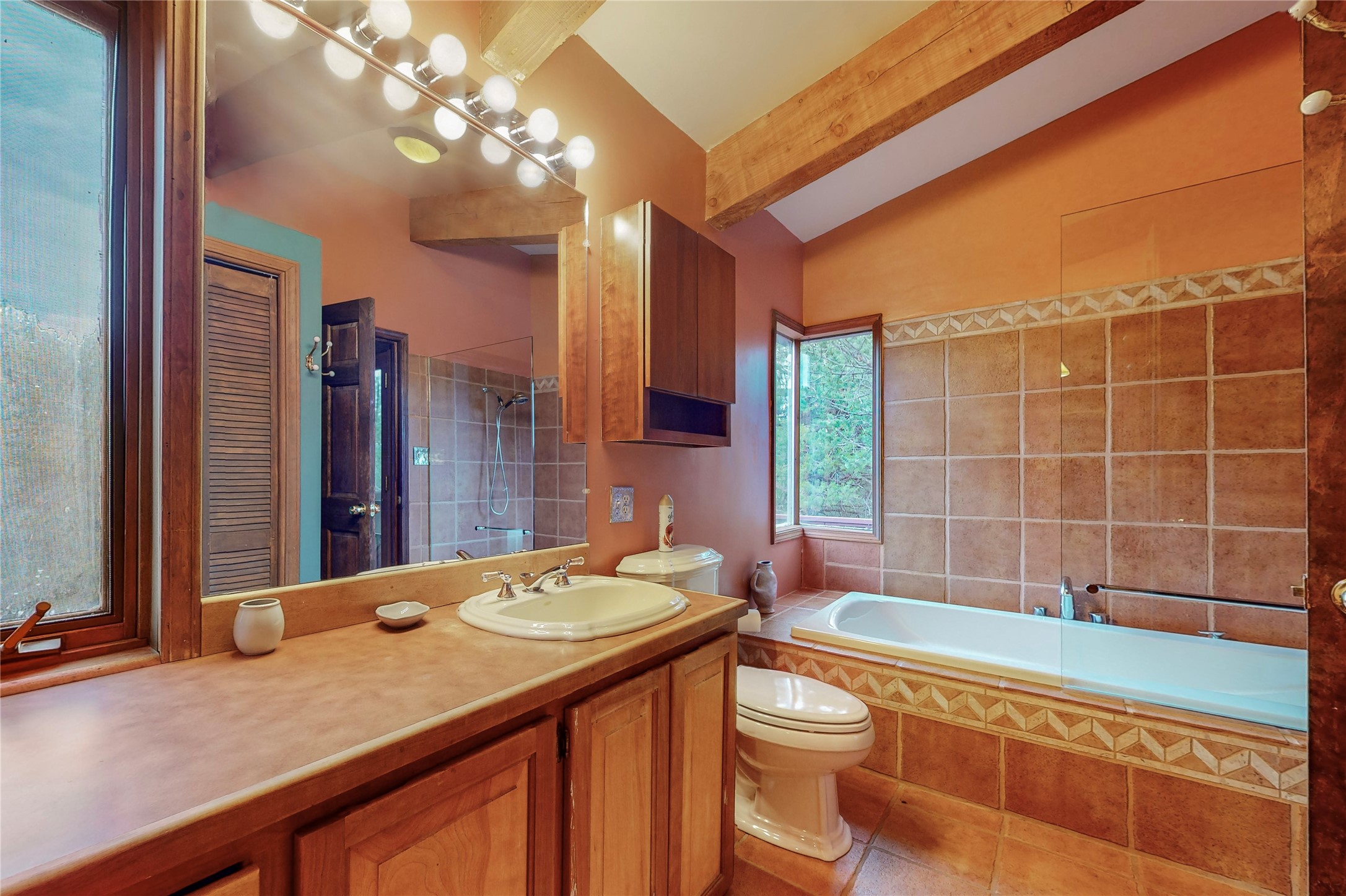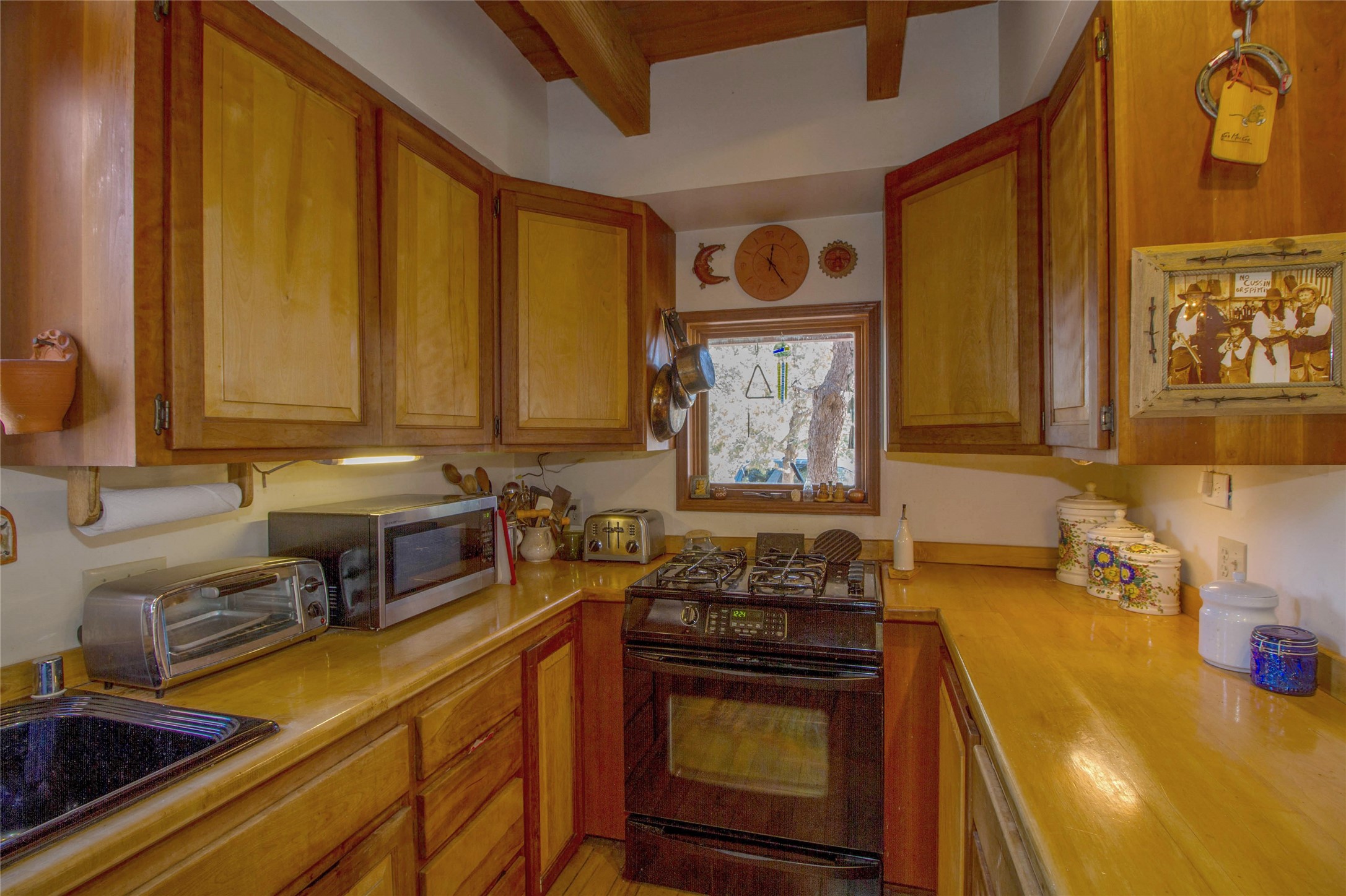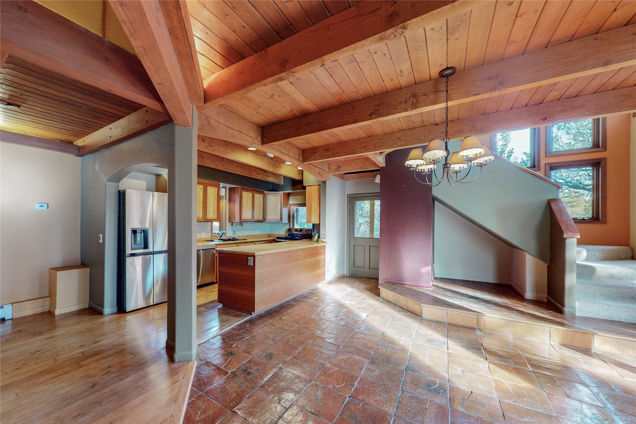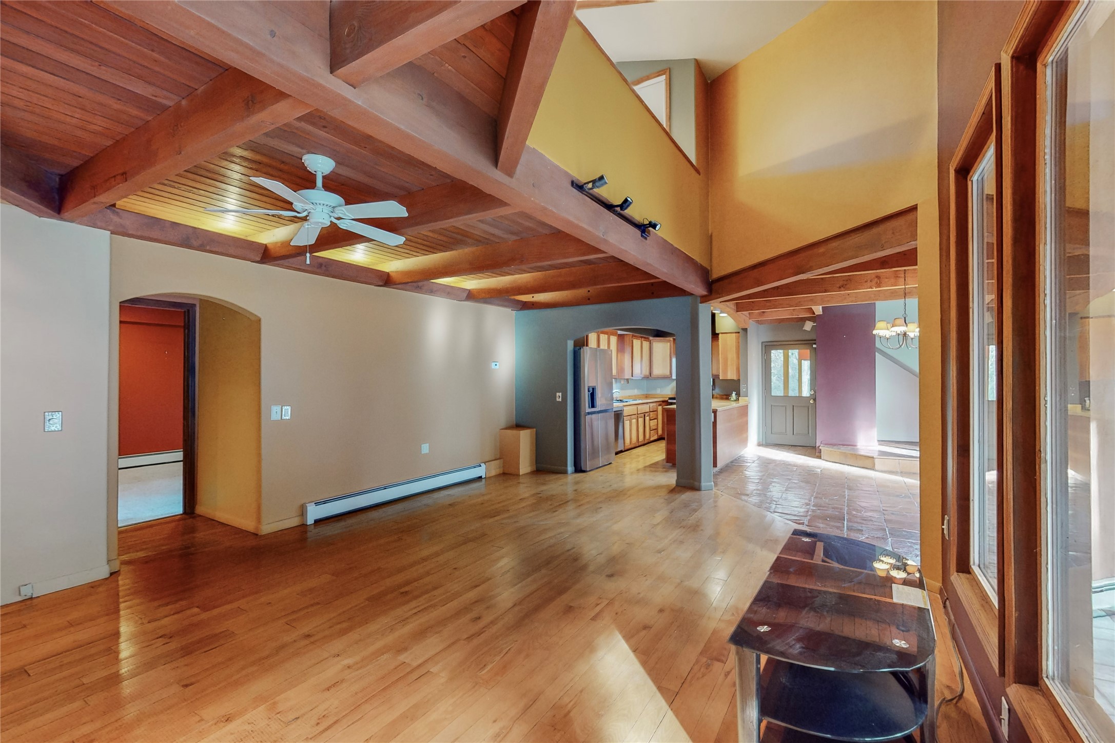 Situated just below the magical Rowe Mesa, this property was Originally set up as a horse ranch with 10 fully fenced in acres and was later converted to fully functioning art center. This now art destination oasis is ready for you to make it your own! The property is perfectly placed among the high desert pines (Pinon, Juniper and Ponderosa). The home features 3 bedrooms and 3 bathrooms, ample space and flexibility, new stainless-steel appliances in the kitchen, tons of storage space, and a bonus room that can be a bedroom/office/den. The central great room with amazing beams and wood accents, provides access to all parts of the house including the fantastic sunroom with access to the fully enclosed yard. When entering the property from Wildflower Ln on the circle driveway, you will first see a fully insulated free standing building that was historically used as a welding and ceramic studio. This building is equipped with its own independent power system, and has a 200-amp service panel capable of providing dedicated multiple 120v and 240v circuits ranging from 30 to 50 amps (which would support the use of many heavy power requiring pieces of equipment); perfect for any craftsman, tradesmen or artist. Lastly a drive to access the rest of the property to the south, will direct you to what was historically known and used as the Tarnoff Art Center. You can see what remains of this still fully functional facility created by this awesome art establishment. The heated Art Studio (garage) and connected gallery can still be used as such or can be converted to whatever your heart desires. The potential uses are endless! "Imagine the Possibilities" and schedule your showing today!