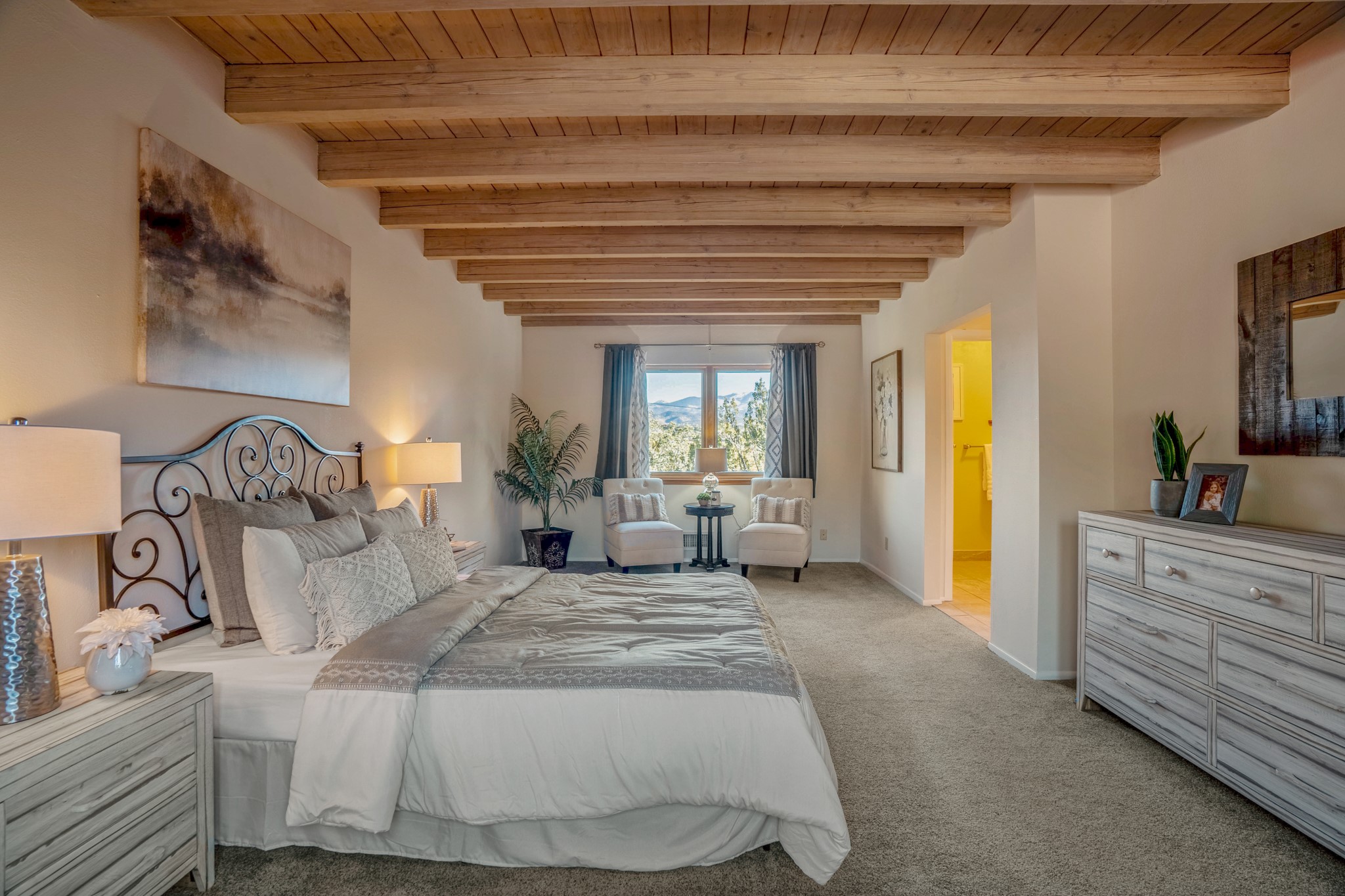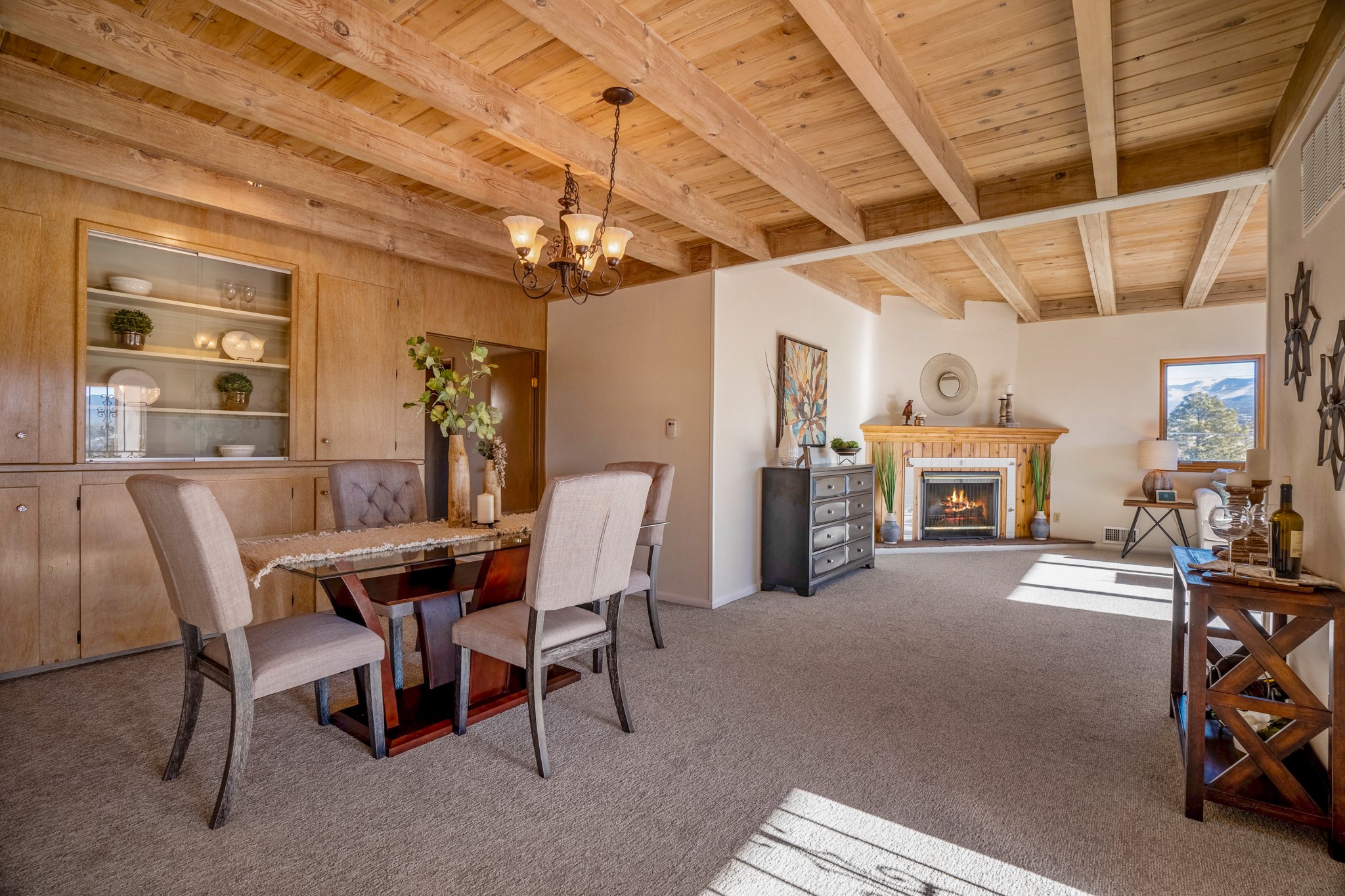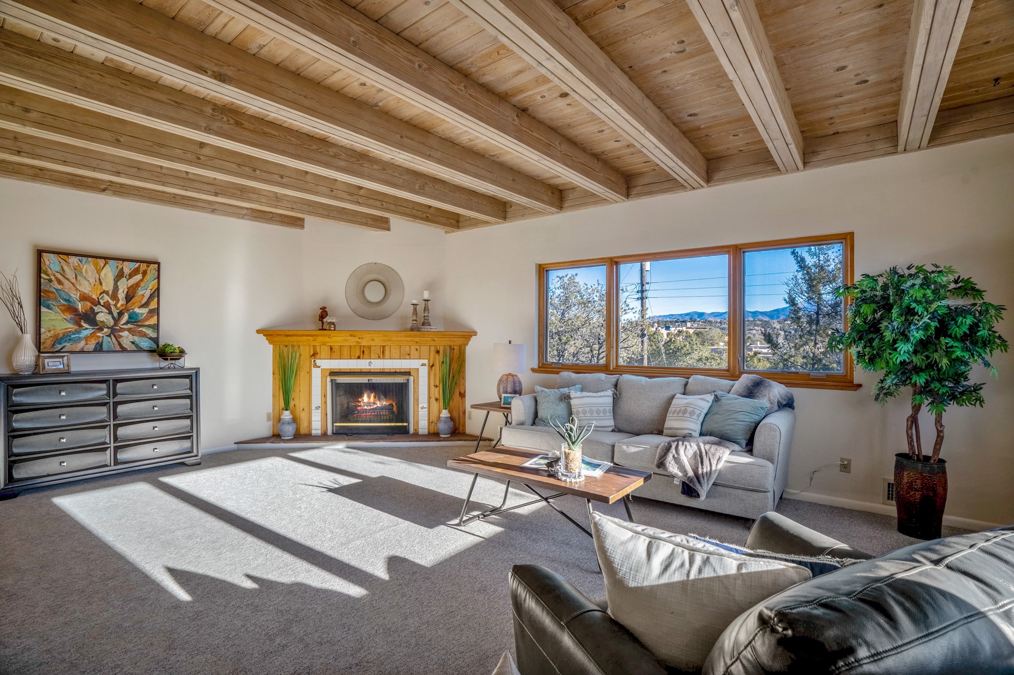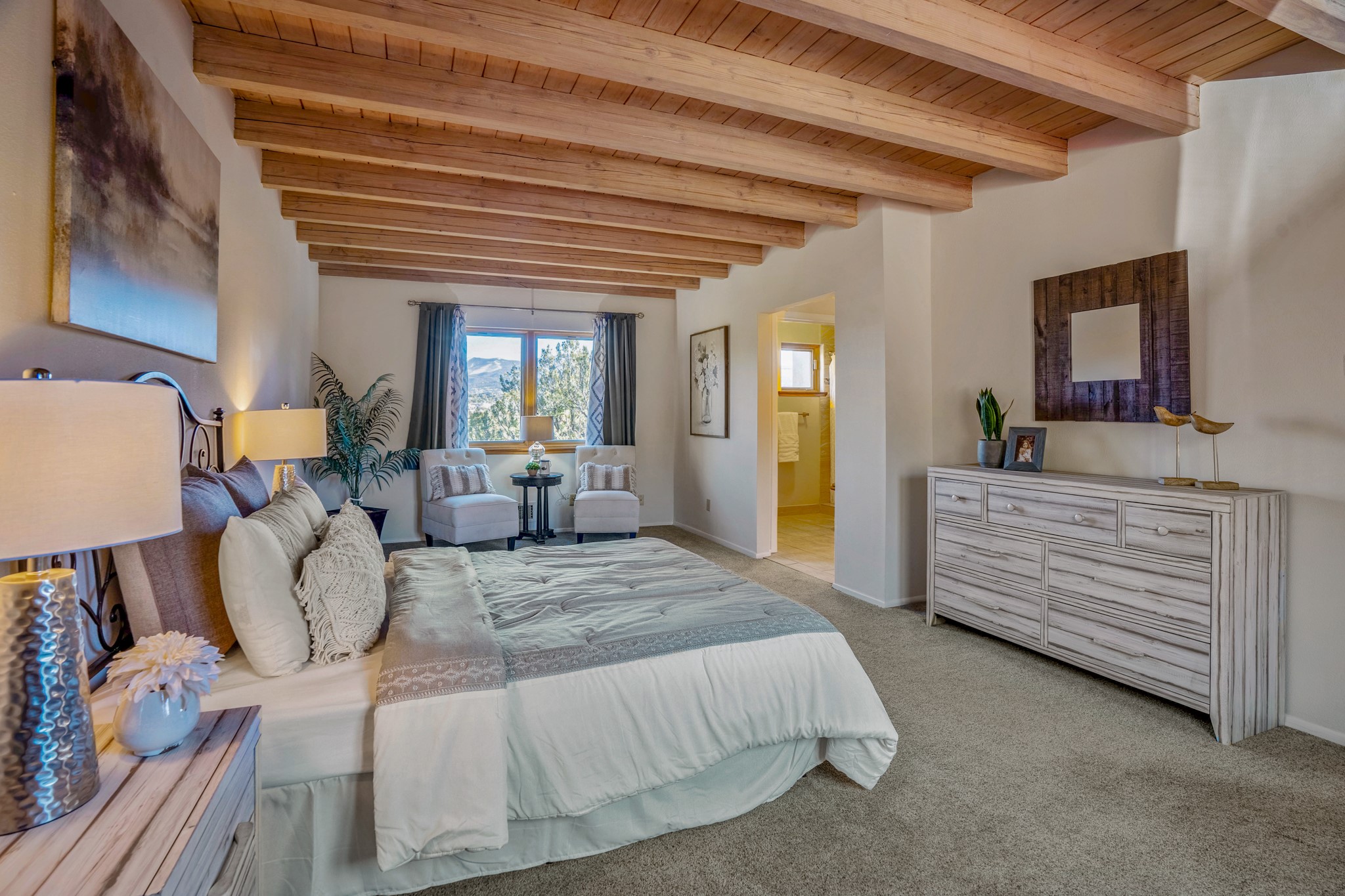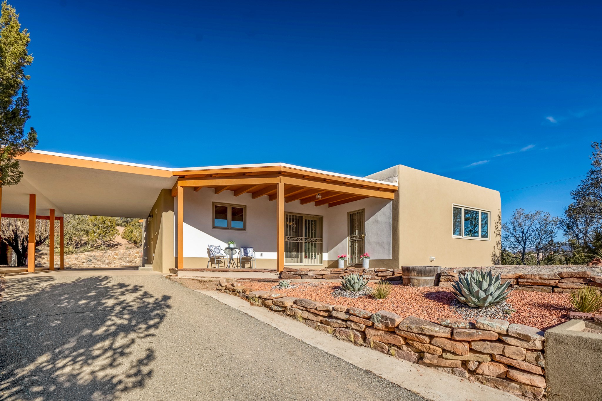 Nestled in the hills overlooking Fort Marcy Park, downtown Santa Fe, and with clear views of the Sangre de Cristo Mountain Range all the way to Atalaya Hill and Sun & Moon Mountain, this home sits on 3/4 acres of prime downtown Santa Fe real estate. A very short distance to Santa Fe Plaza, Canyon Rd, Artist Rd, and more, there is not a gallery or restaurant in Santa Fe more than a few minutes away. Wood beams and hardwood floors adorn this very well maintained house. A beautiful sitting area just outside the front door into the yard, and deck off of one of the carports offer some great outdoor living spaces. With updated bathrooms, new stucco, and a membrane roof replaced in 2020, this home is ready for you to make it your own. Pride of ownership is evident in this sweet, beautiful home. Imagine the possibilities and schedule your showing today!