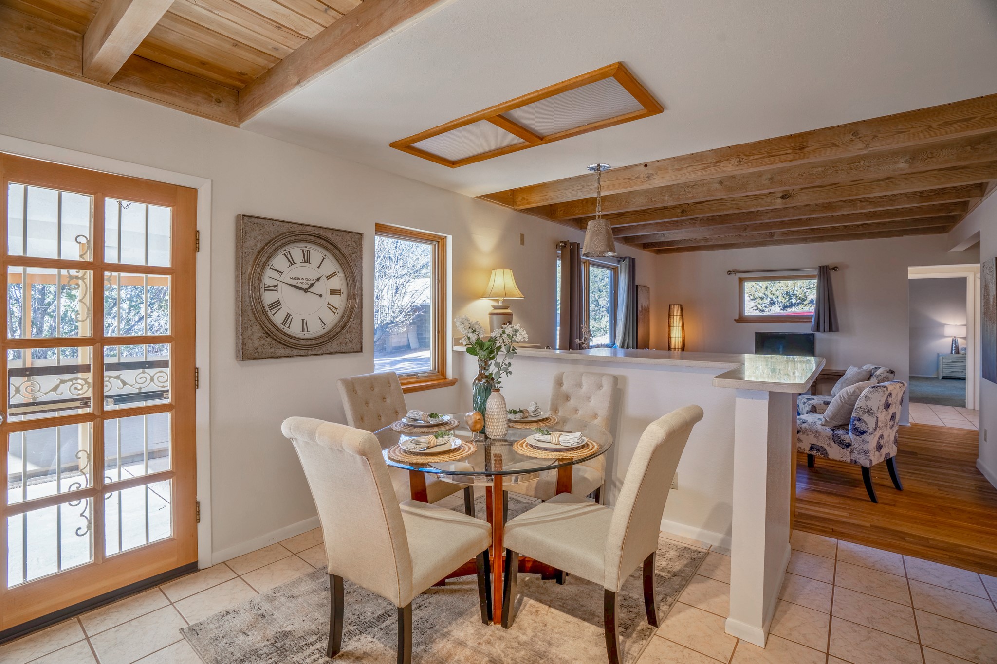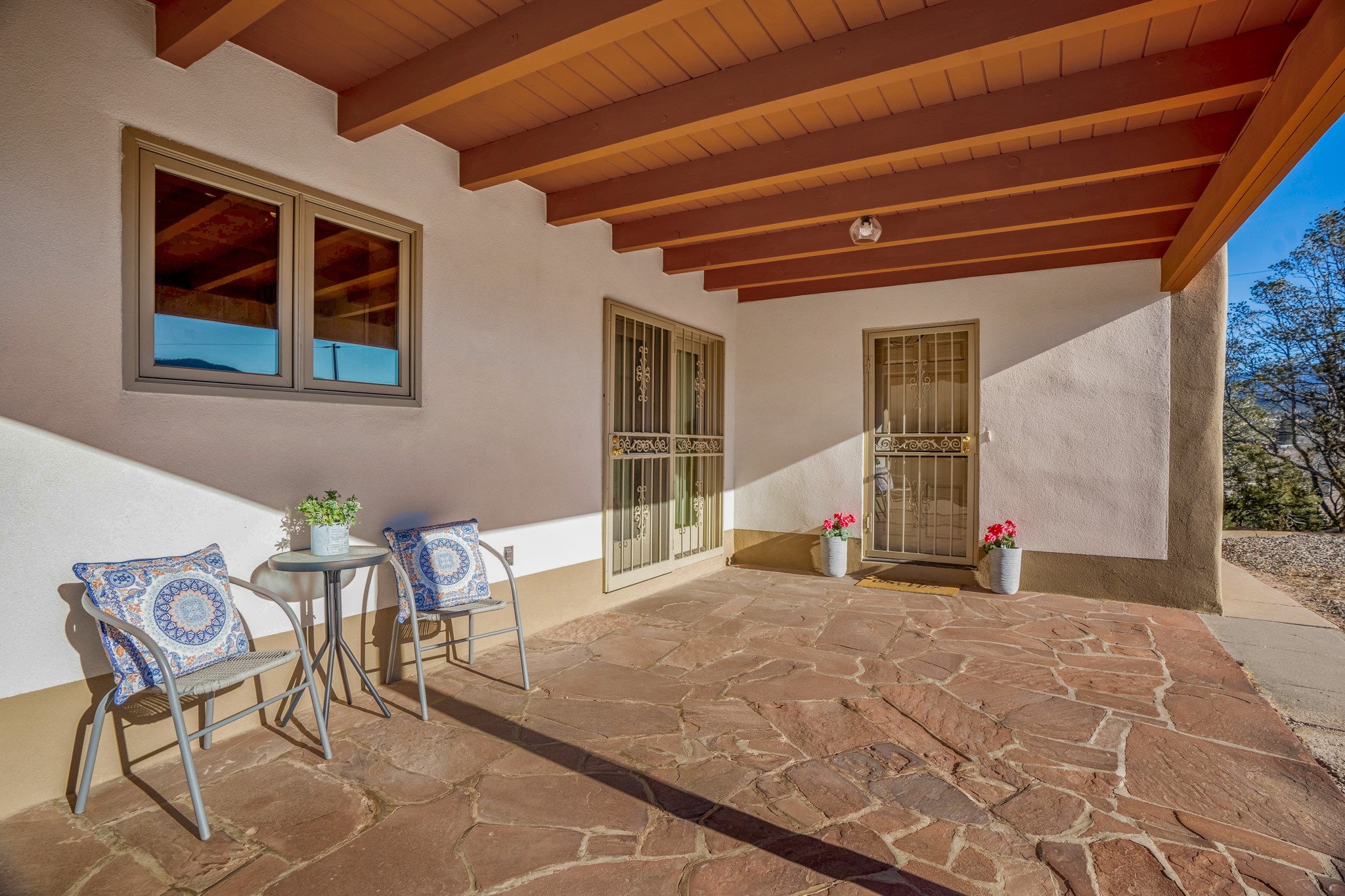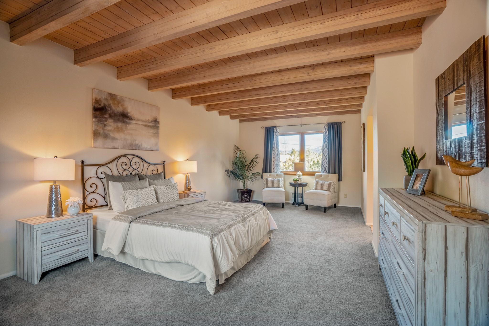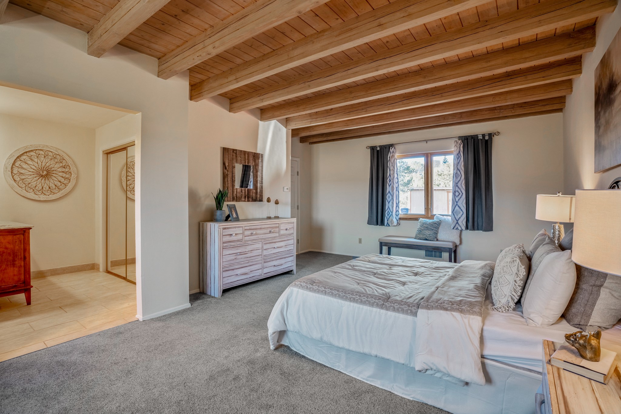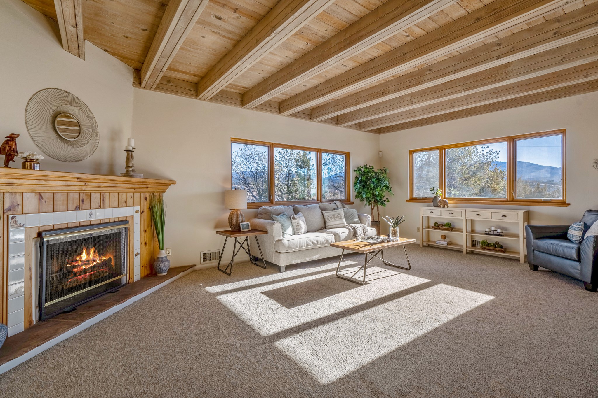 Nestled in the hills overlooking Fort Marcy Park, downtown Santa Fe, and with clear views of the Sangre de Cristo Mountain Range all the way to Atalaya Hill and Sun & Moon Mountain, this home sits on 3/4 acres of prime downtown Santa Fe real estate. A very short distance to Santa Fe Plaza, Canyon Rd, Artist Rd, and more, there is not a gallery or restaurant in Santa Fe more than a few minutes away. Wood beams and hardwood floors adorn this very well maintained house. A beautiful sitting area just outside the front door into the yard, and deck off of one of the carports offer some great outdoor living spaces. With updated bathrooms, new stucco, and a membrane roof replaced in 2020, this home is ready for you to make it your own. Pride of ownership is evident in this sweet, beautiful home. Imagine the possibilities and schedule your showing today!