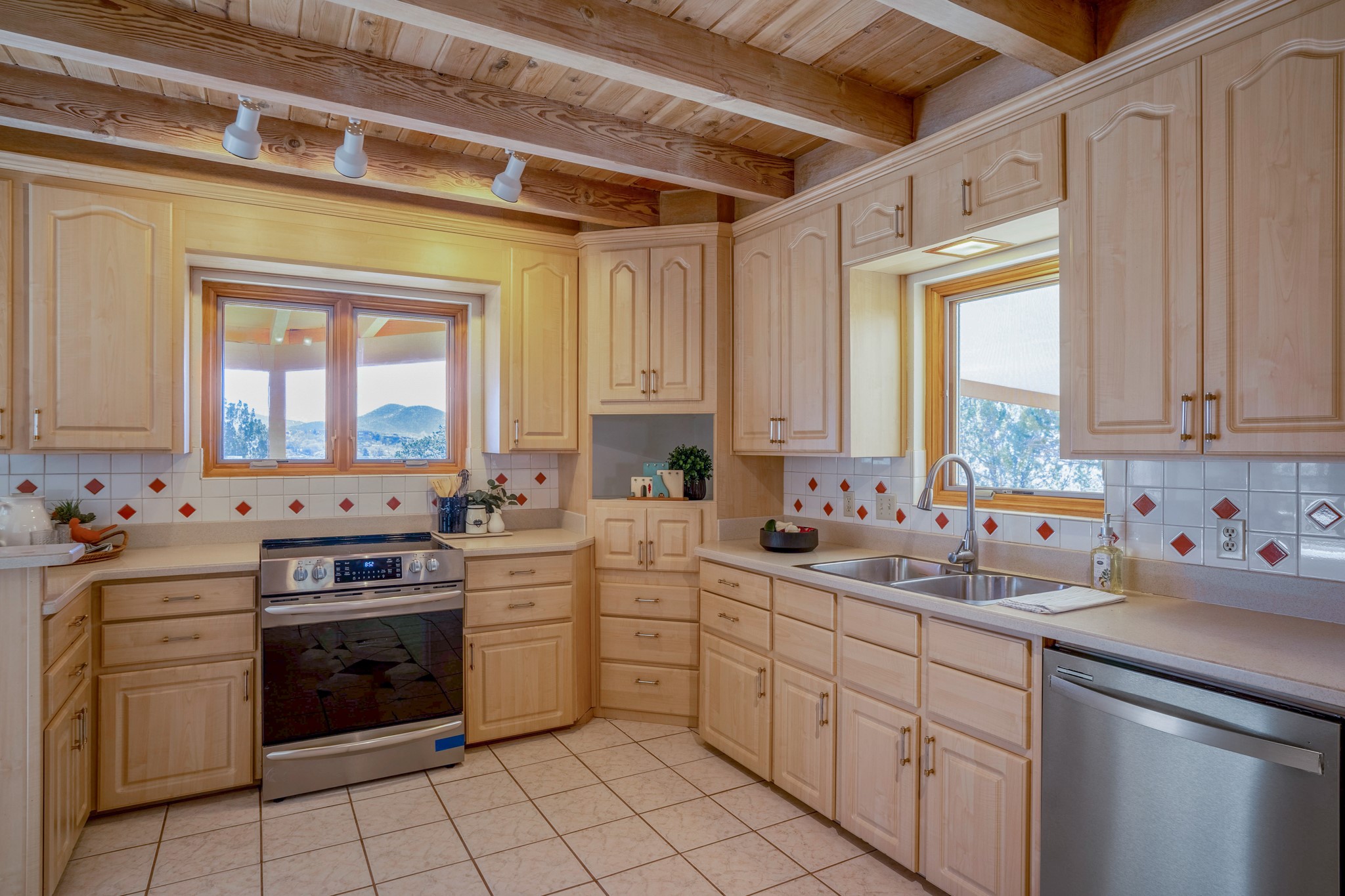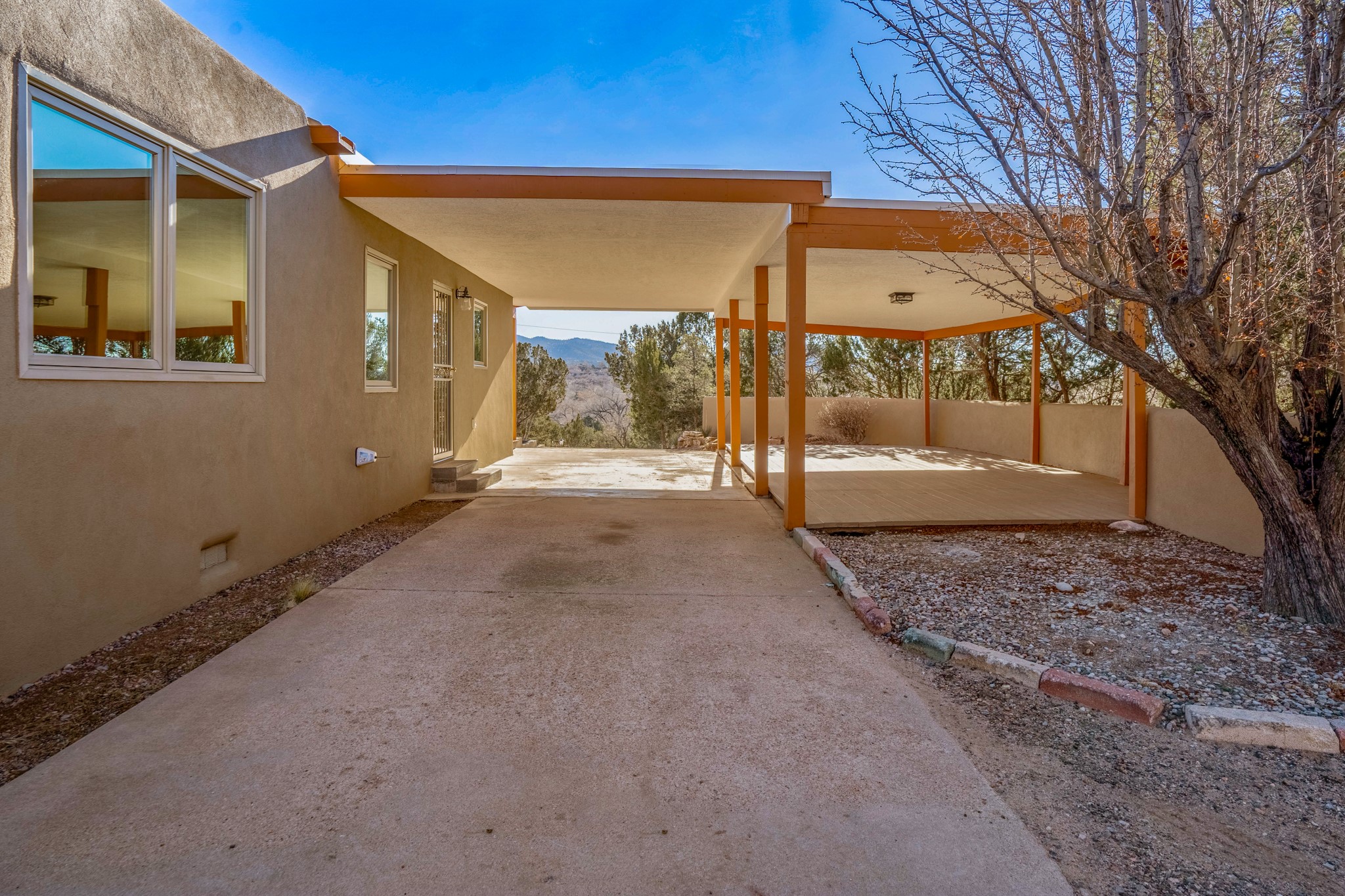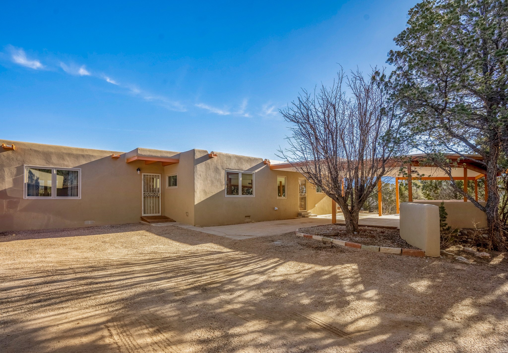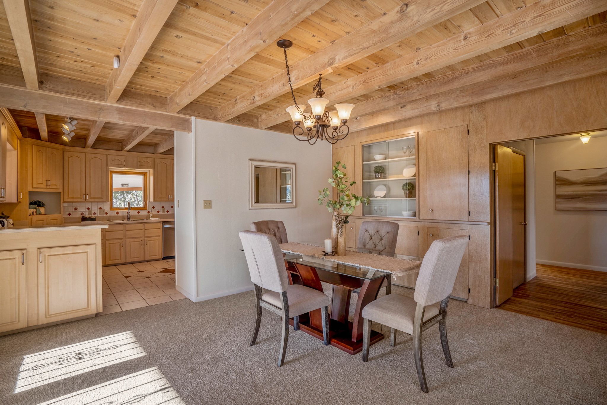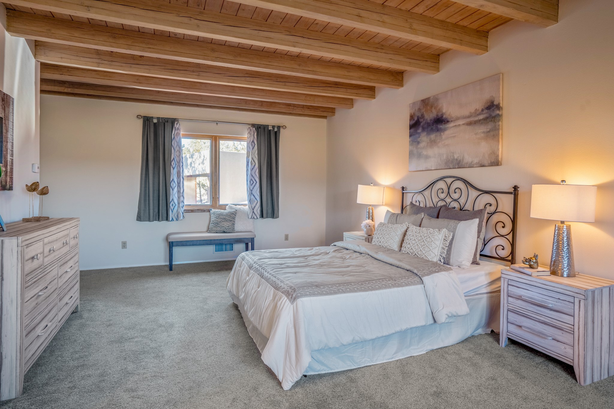 Nestled in the hills overlooking Fort Marcy Park, downtown Santa Fe, and with clear views of the Sangre de Cristo Mountain Range all the way to Atalaya Hill and Sun & Moon Mountain, this home sits on 3/4 acres of prime downtown Santa Fe real estate. A very short distance to Santa Fe Plaza, Canyon Rd, Artist Rd, and more, there is not a gallery or restaurant in Santa Fe more than a few minutes away. Wood beams and hardwood floors adorn this very well maintained house. A beautiful sitting area just outside the front door into the yard, and deck off of one of the carports offer some great outdoor living spaces. With updated bathrooms, new stucco, and a membrane roof replaced in 2020, this home is ready for you to make it your own. Pride of ownership is evident in this sweet, beautiful home. Imagine the possibilities and schedule your showing today!