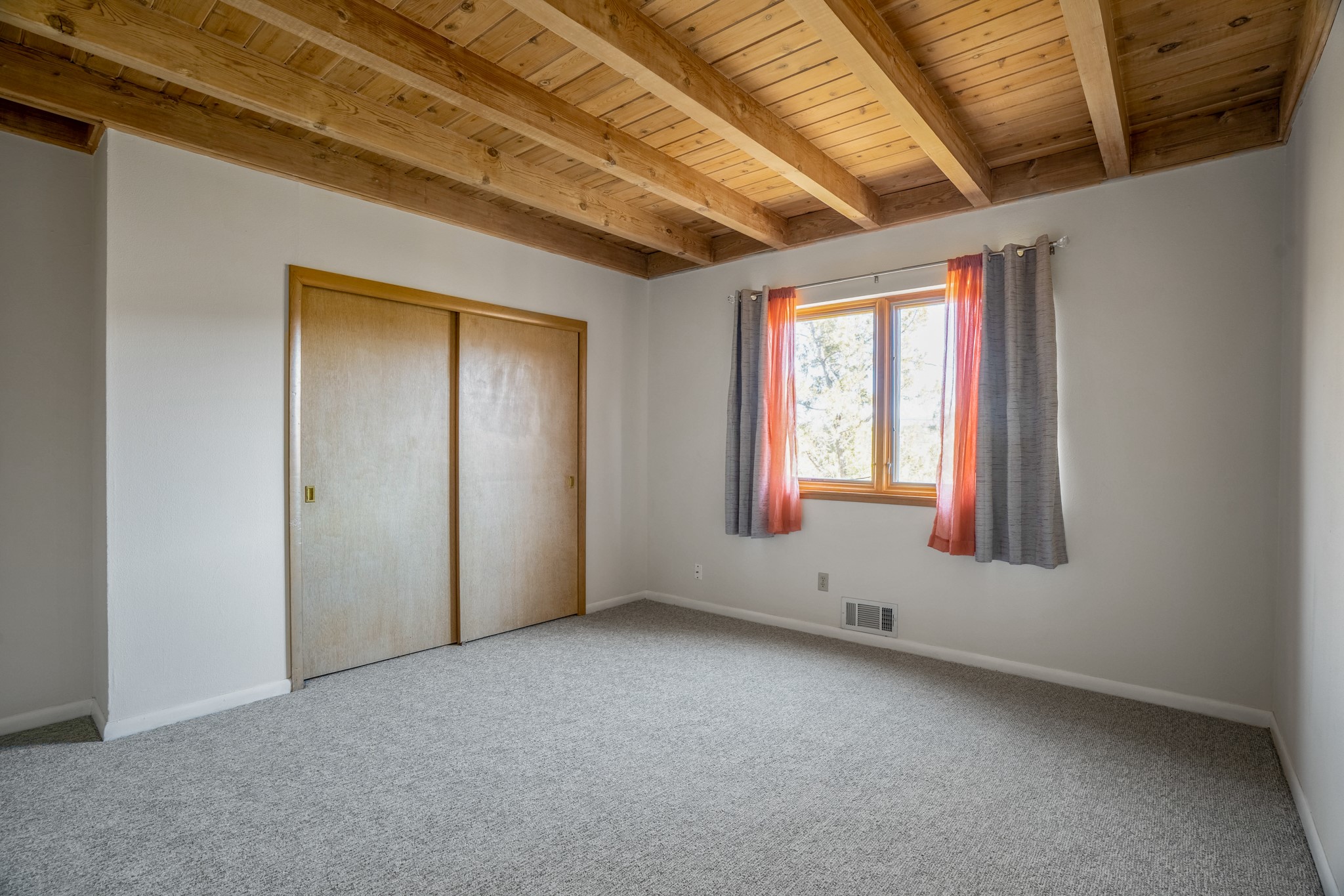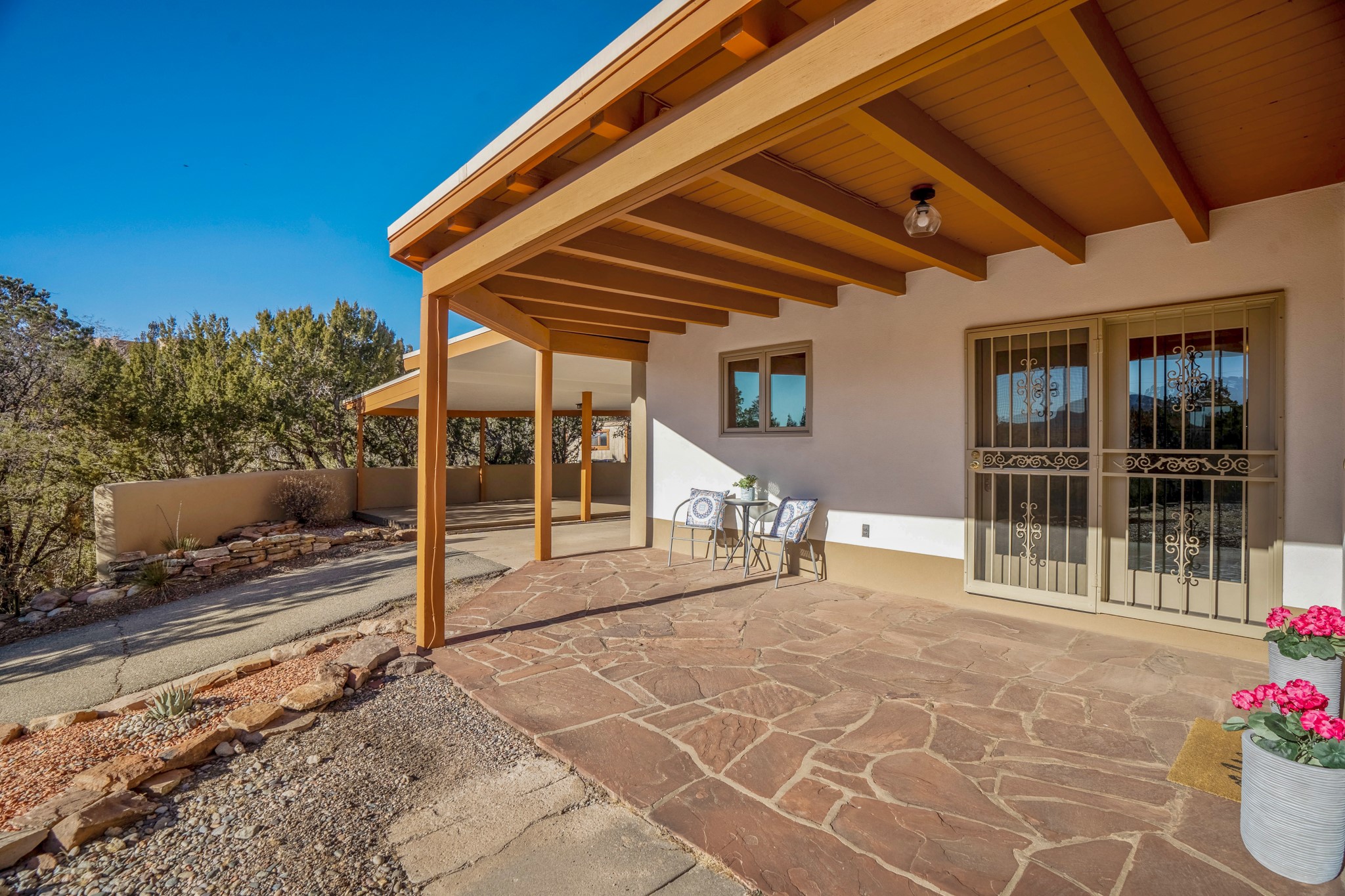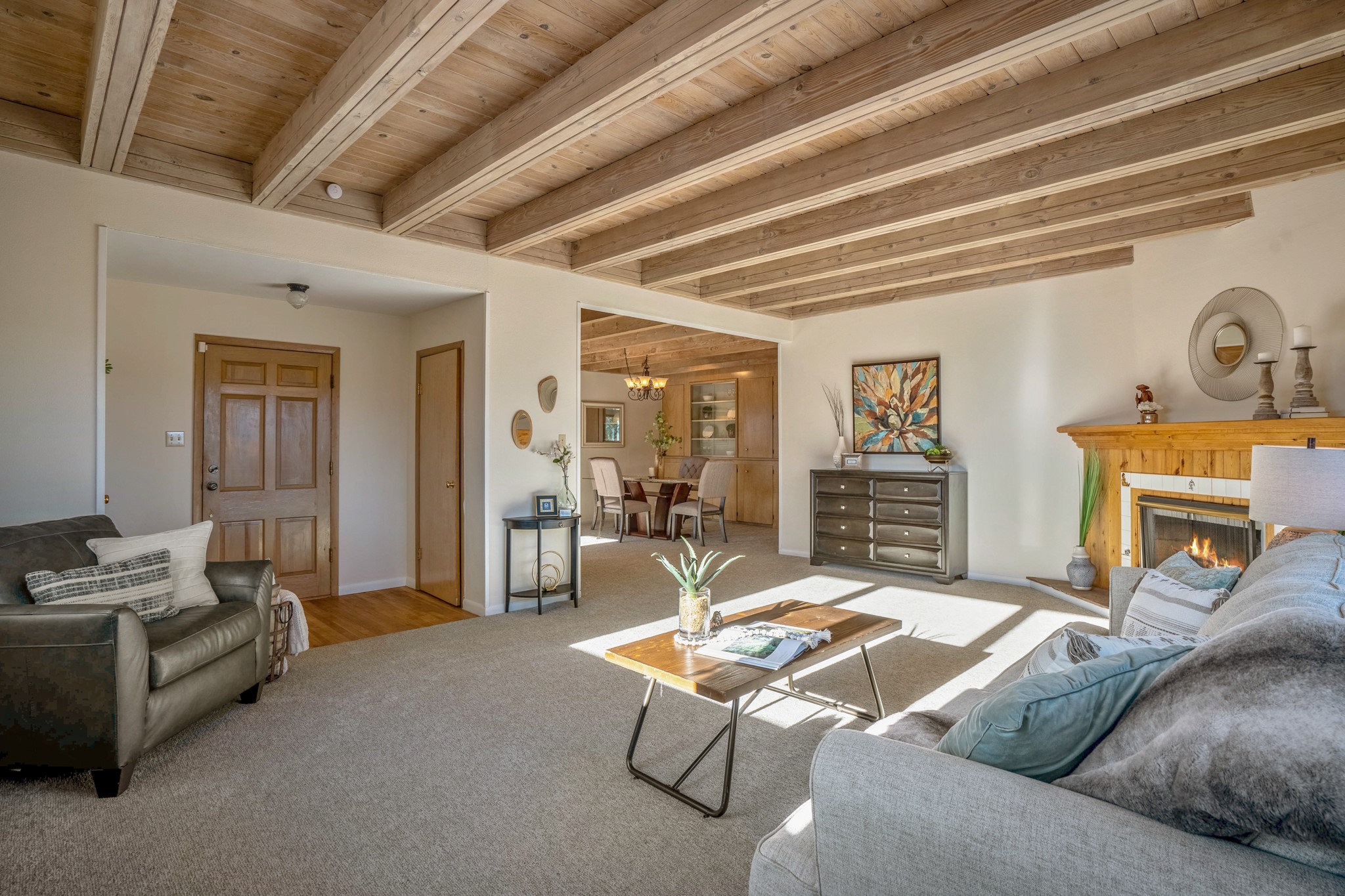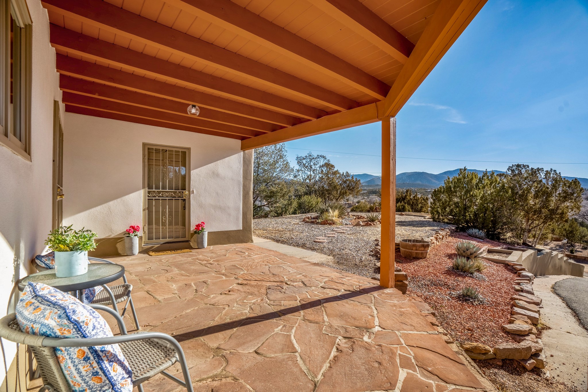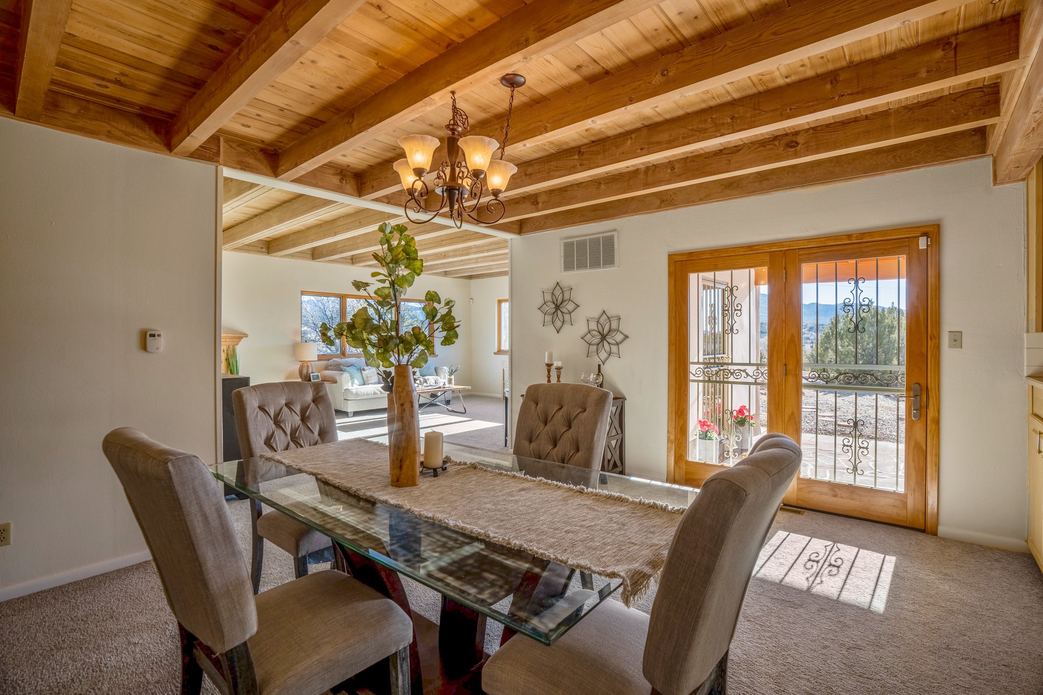 Nestled in the hills overlooking Fort Marcy Park, downtown Santa Fe, and with clear views of the Sangre de Cristo Mountain Range all the way to Atalaya Hill and Sun & Moon Mountain, this home sits on 3/4 acres of prime downtown Santa Fe real estate. A very short distance to Santa Fe Plaza, Canyon Rd, Artist Rd, and more, there is not a gallery or restaurant in Santa Fe more than a few minutes away. Wood beams and hardwood floors adorn this very well maintained house. A beautiful sitting area just outside the front door into the yard, and deck off of one of the carports offer some great outdoor living spaces. With updated bathrooms, new stucco, and a membrane roof replaced in 2020, this home is ready for you to make it your own. Pride of ownership is evident in this sweet, beautiful home. Imagine the possibilities and schedule your showing today!