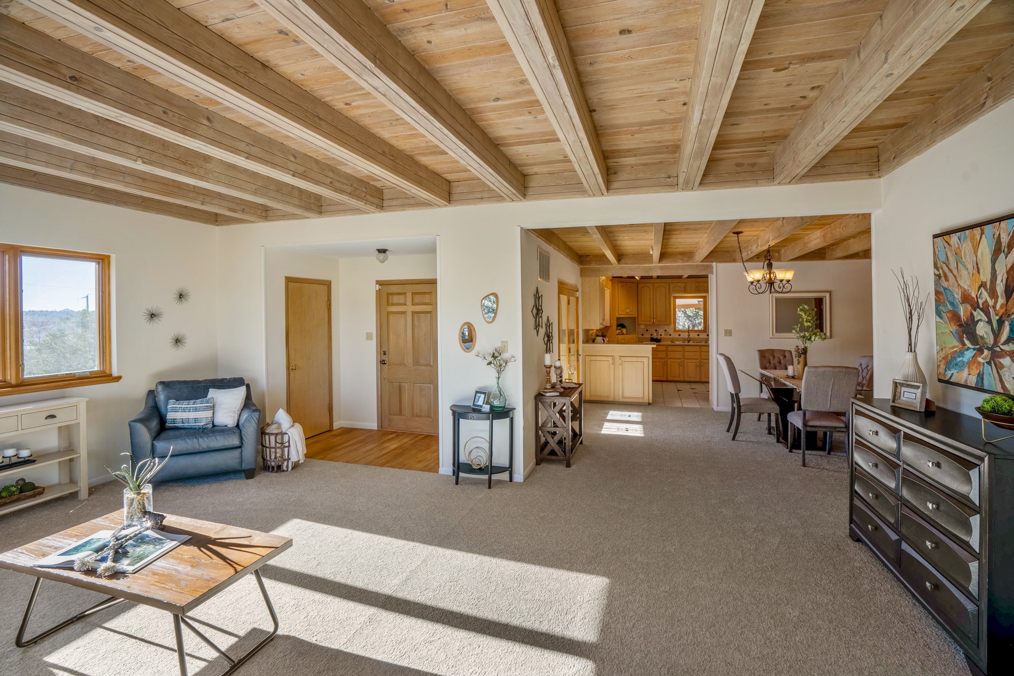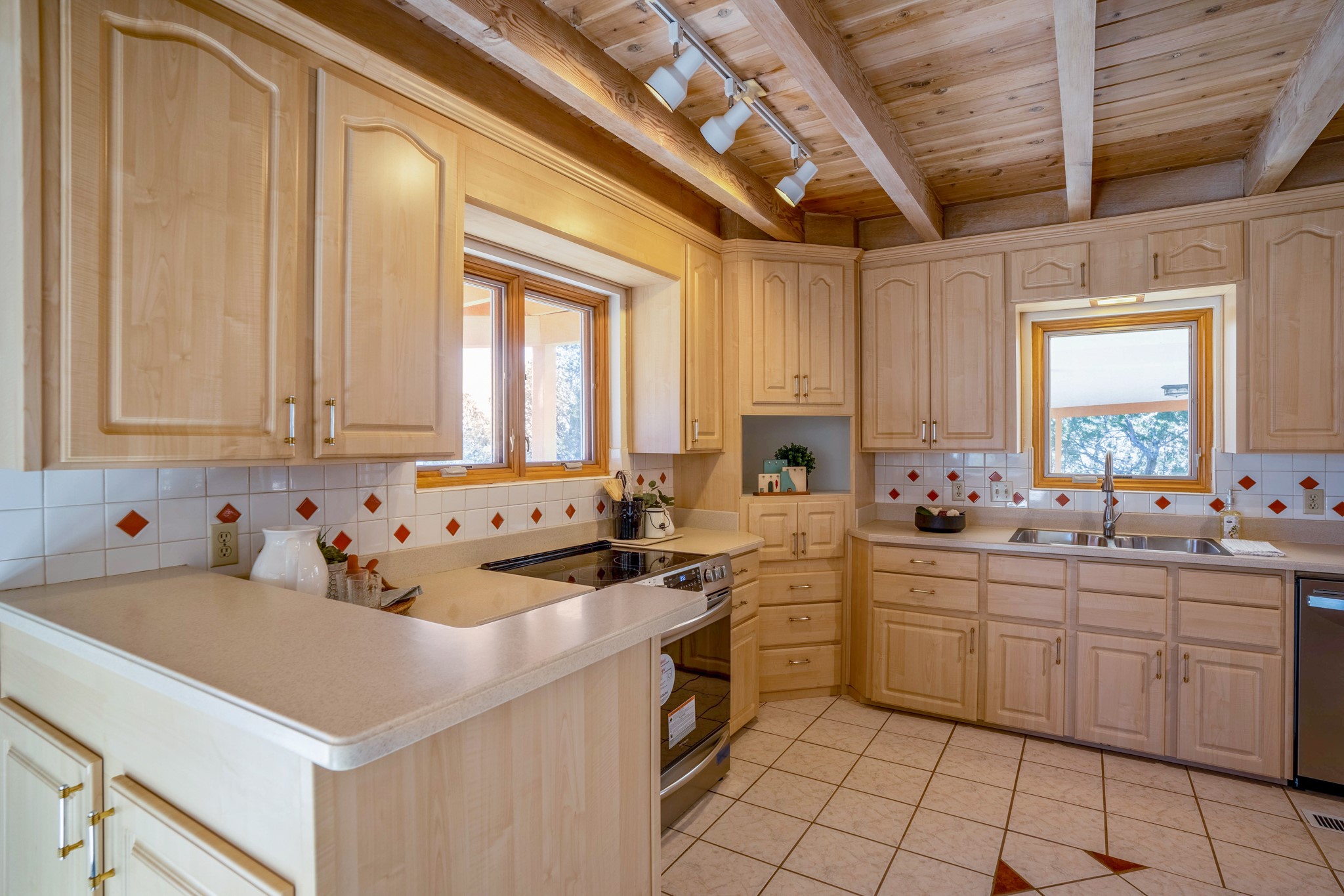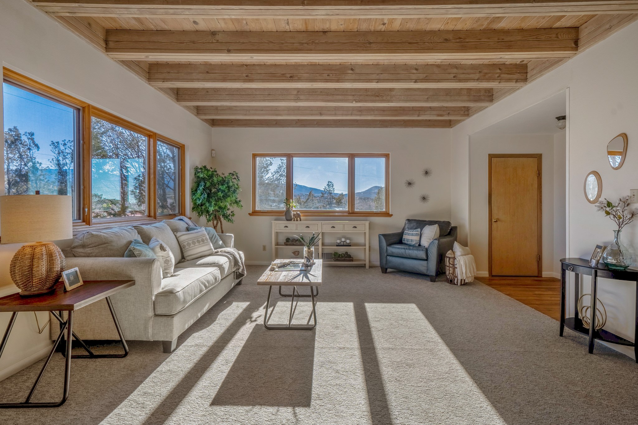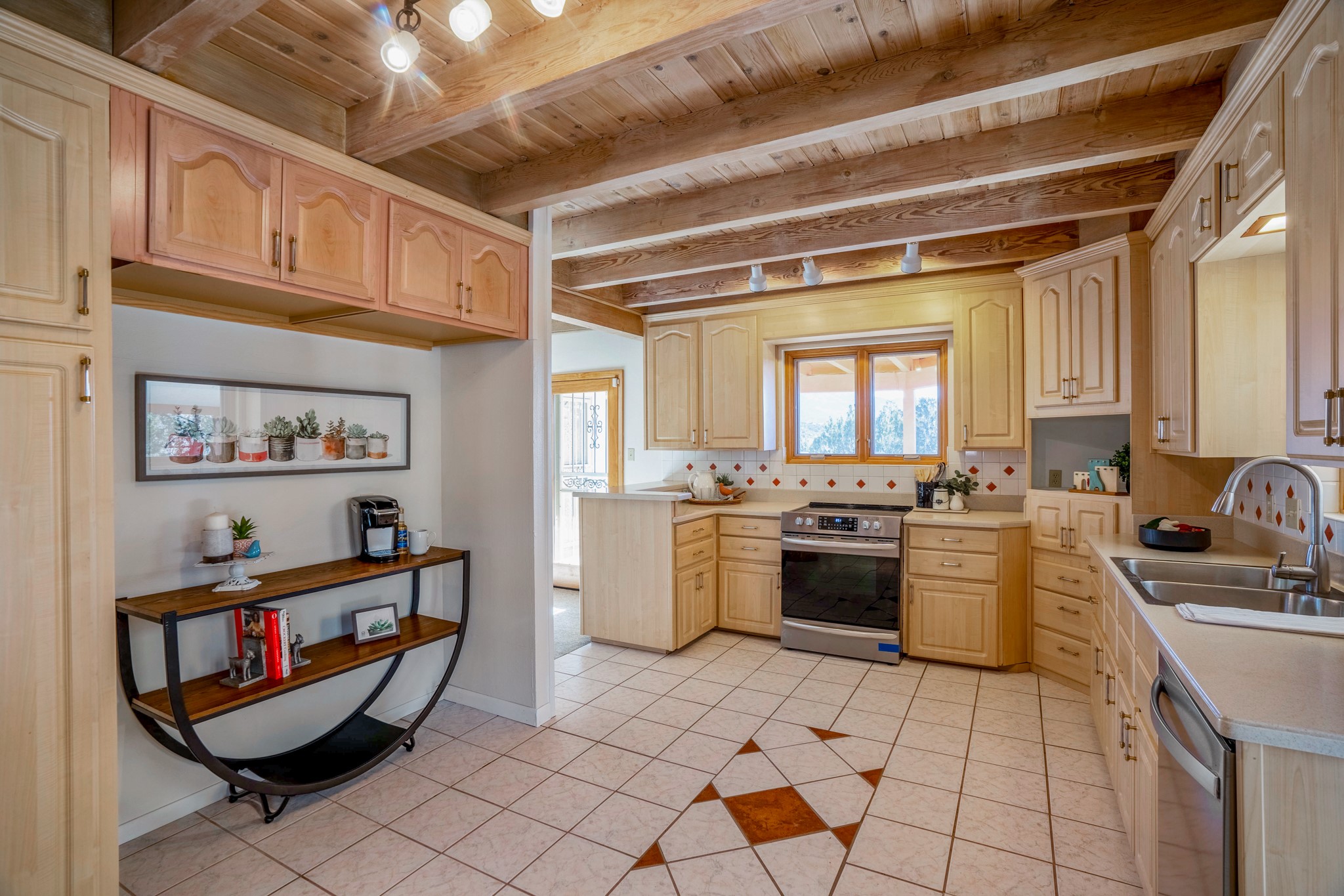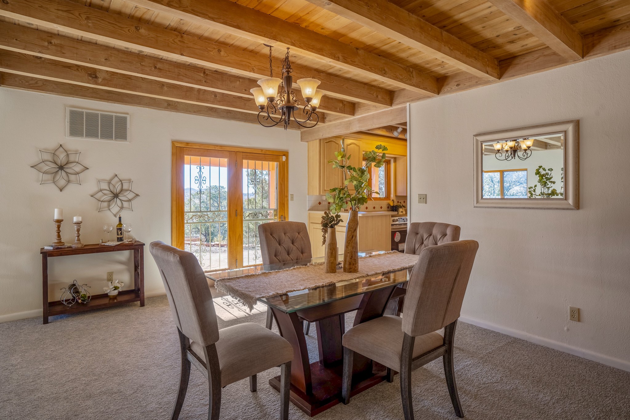 Nestled in the hills overlooking Fort Marcy Park, downtown Santa Fe, and with clear views of the Sangre de Cristo Mountain Range all the way to Atalaya Hill and Sun & Moon Mountain, this home sits on 3/4 acres of prime downtown Santa Fe real estate. A very short distance to Santa Fe Plaza, Canyon Rd, Artist Rd, and more, there is not a gallery or restaurant in Santa Fe more than a few minutes away. Wood beams and hardwood floors adorn this very well maintained house. A beautiful sitting area just outside the front door into the yard, and deck off of one of the carports offer some great outdoor living spaces. With updated bathrooms, new stucco, and a membrane roof replaced in 2020, this home is ready for you to make it your own. Pride of ownership is evident in this sweet, beautiful home. Imagine the possibilities and schedule your showing today!