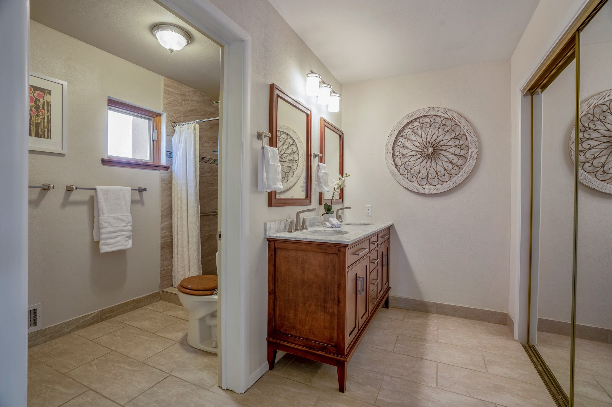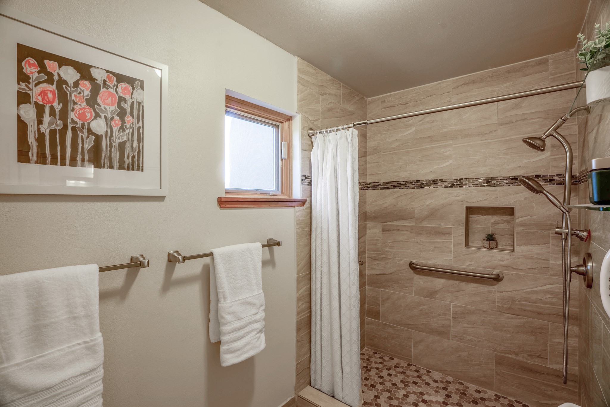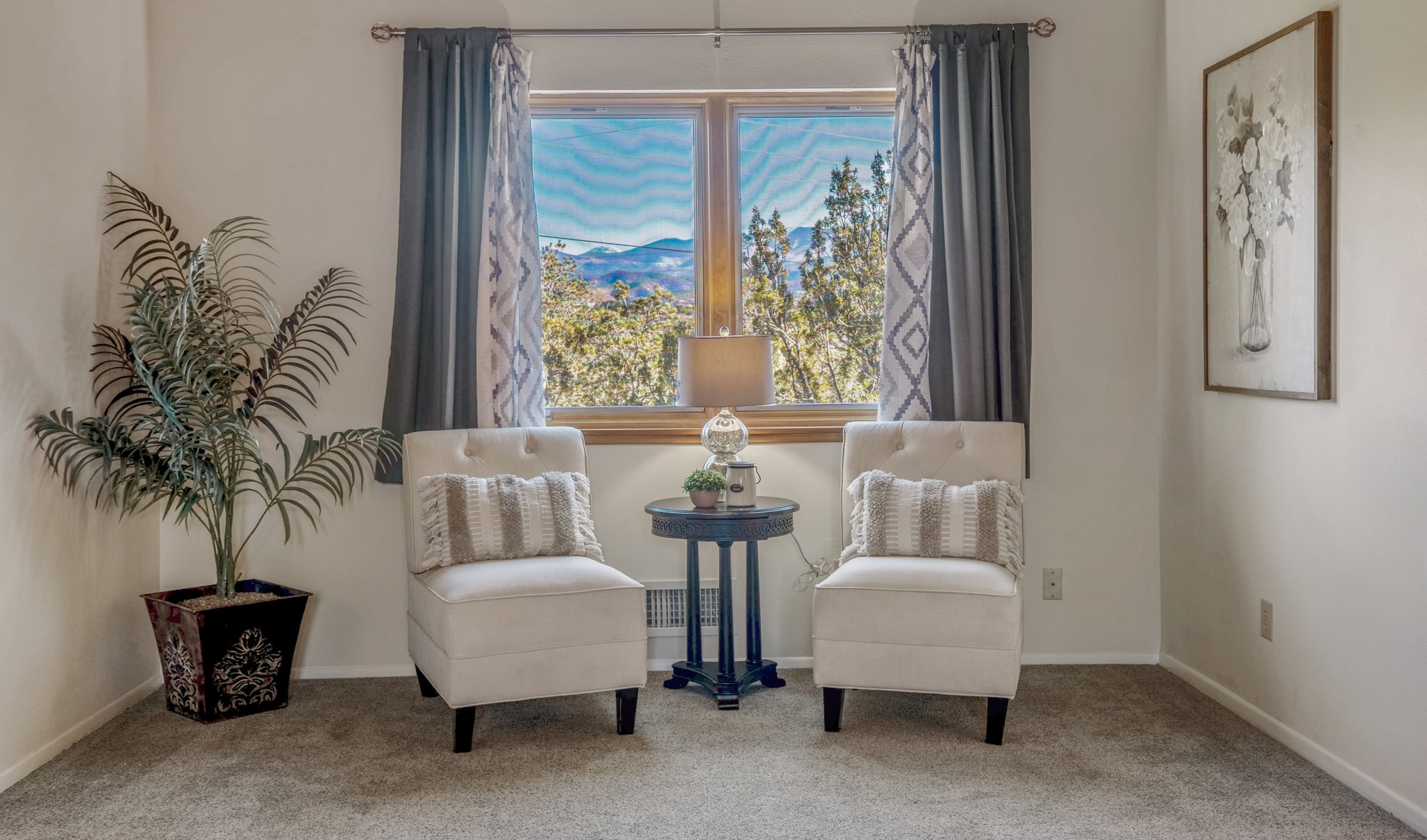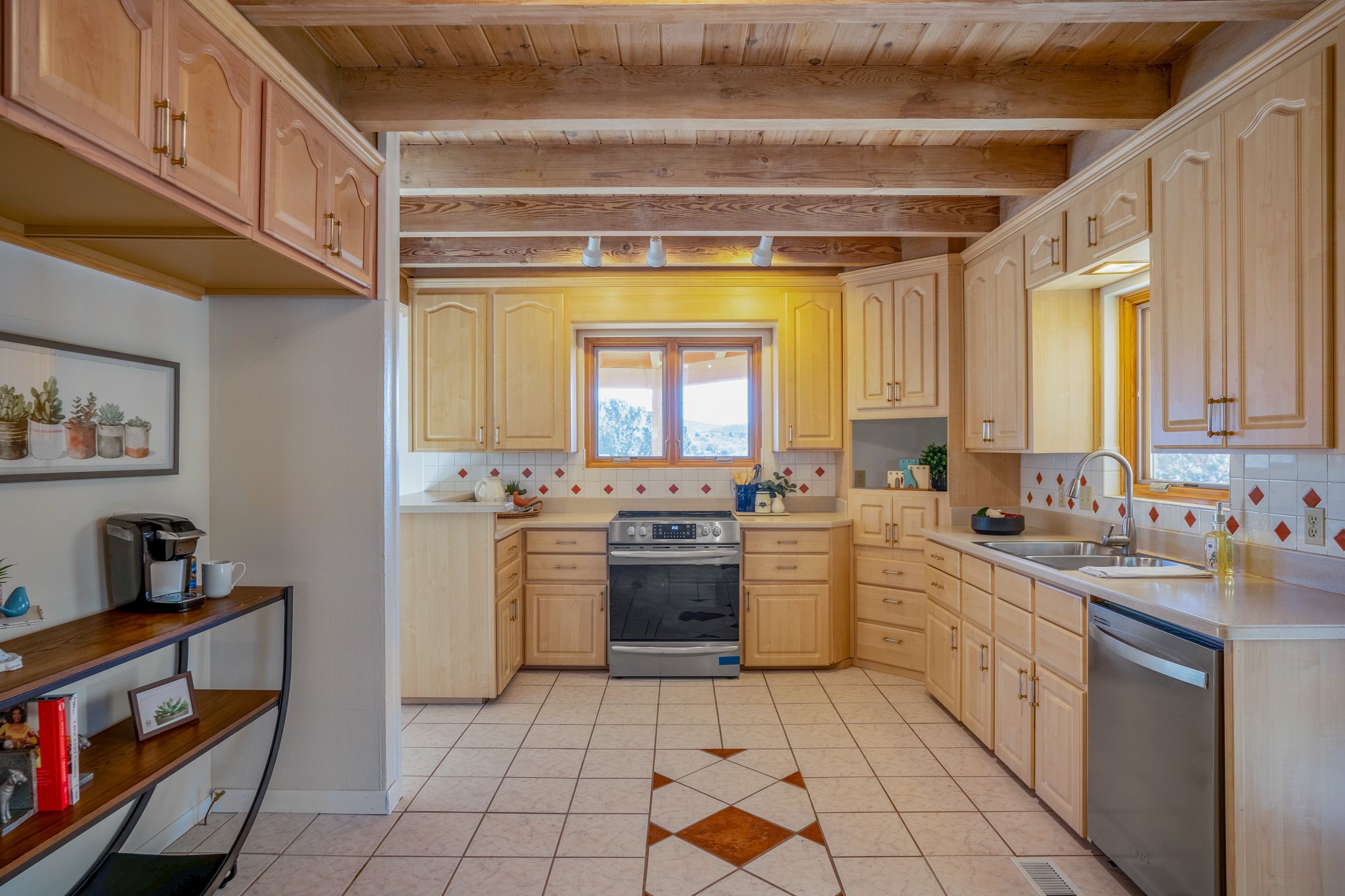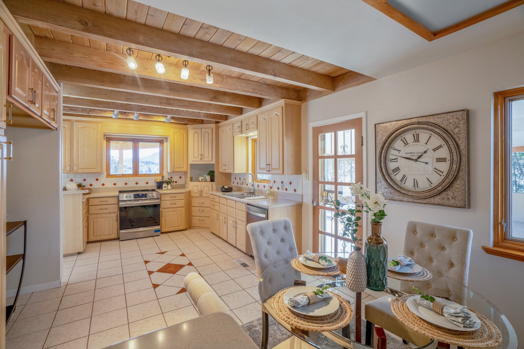 Nestled in the hills overlooking Fort Marcy Park, downtown Santa Fe, and with clear views of the Sangre de Cristo Mountain Range all the way to Atalaya Hill and Sun & Moon Mountain, this home sits on 3/4 acres of prime downtown Santa Fe real estate. A very short distance to Santa Fe Plaza, Canyon Rd, Artist Rd, and more, there is not a gallery or restaurant in Santa Fe more than a few minutes away. Wood beams and hardwood floors adorn this very well maintained house. A beautiful sitting area just outside the front door into the yard, and deck off of one of the carports offer some great outdoor living spaces. With updated bathrooms, new stucco, and a membrane roof replaced in 2020, this home is ready for you to make it your own. Pride of ownership is evident in this sweet, beautiful home. Imagine the possibilities and schedule your showing today!