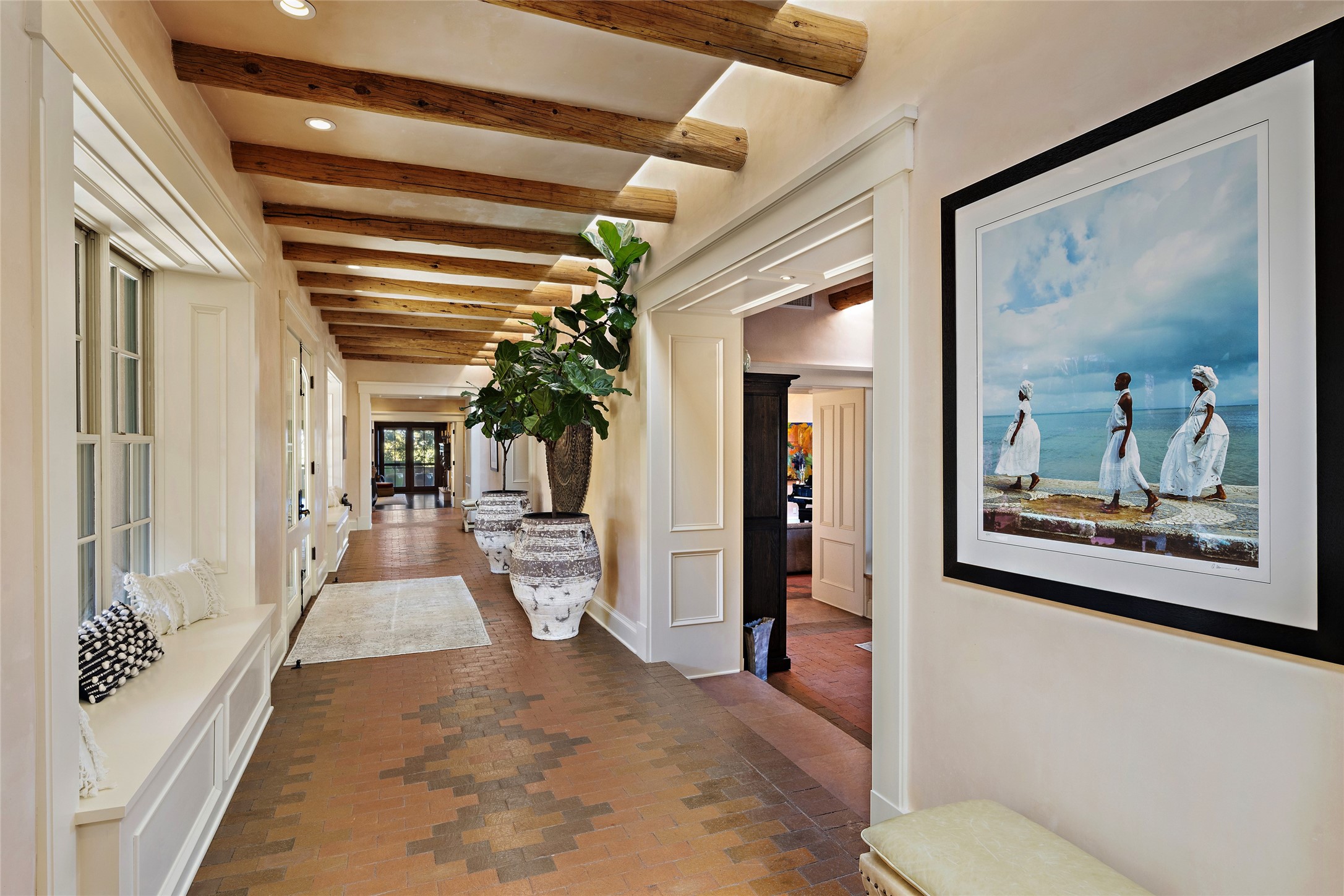 Sited on 1.57 gated park-like acres in Las Campanas with its own private gate, this elegant 7000 sq. ft., four-bedroom estate is surrounded by lush gardens, an extraordinary central courtyard with a cascading rock waterfall and mature landscaping, multiple outdoor entertaining areas and intimate portal/patio spaces.Winning three Hacienda Awards including the coveted "Judges Choice," this Territorial-style residence exudes the personality and taste of those accustomed to the finest quality, fit and finishes while preserving the quintessential Santa Fe elements to include clay plaster walls, coved ceilings, vigas, latillas and brick floors. The extensive use of glass and river rock bring the outside inside creating a comfortable, organic and serene environment. The main residence and casita have been thoughtfully remodeled for today's lifestyle. Nine of the ten fireplaces have natural gas for ease of use.The grand entryway draws your guests into a generous layout ideal for entertaining and the ample floor plan encompasses an impressive living room, beautiful dining room, a casual gathering room for family and friends, a stylish chef's kitchen/butler's pantry and handsomely fitted media room. There are three spacious bedrooms- each ensuite and each with private portals. The primary suite includes a luxurious spa-like bath area with a soaking tub and outdoor views, fireplace and wet room. **