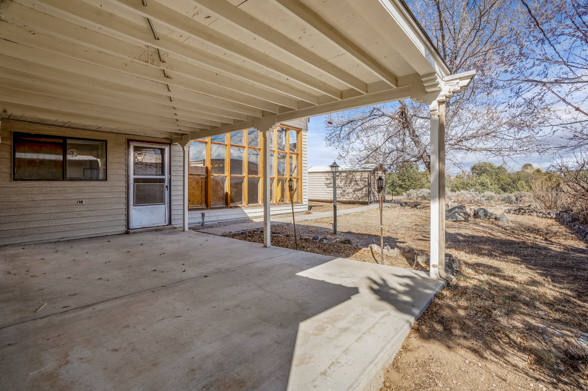 Attention House Flippers and Investors! This three-bedroom White Rock house backing to county land offers a great opportunity to renovate a property in Los Alamos County. The floor plan includes two large living areas, a primary bedroom with an en suite bathroom, a south-facing Solarium with tall ceilings, a covered patio, and a large storage shed. Cash offers only, please, as this will not likely qualify for financing in its current condition. The seller plans to review offers on Tuesday, March 21, so call to schedule your showing today!