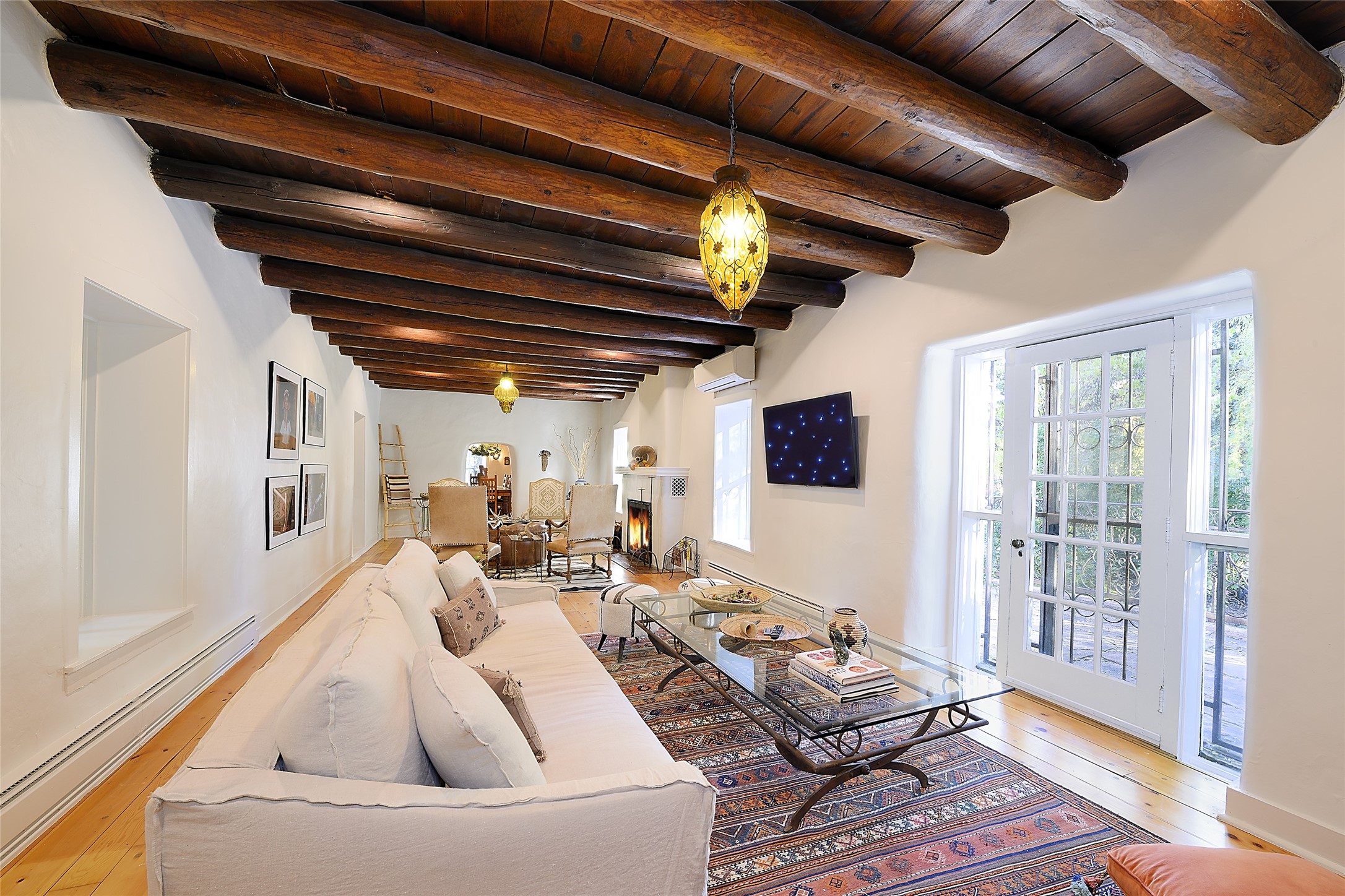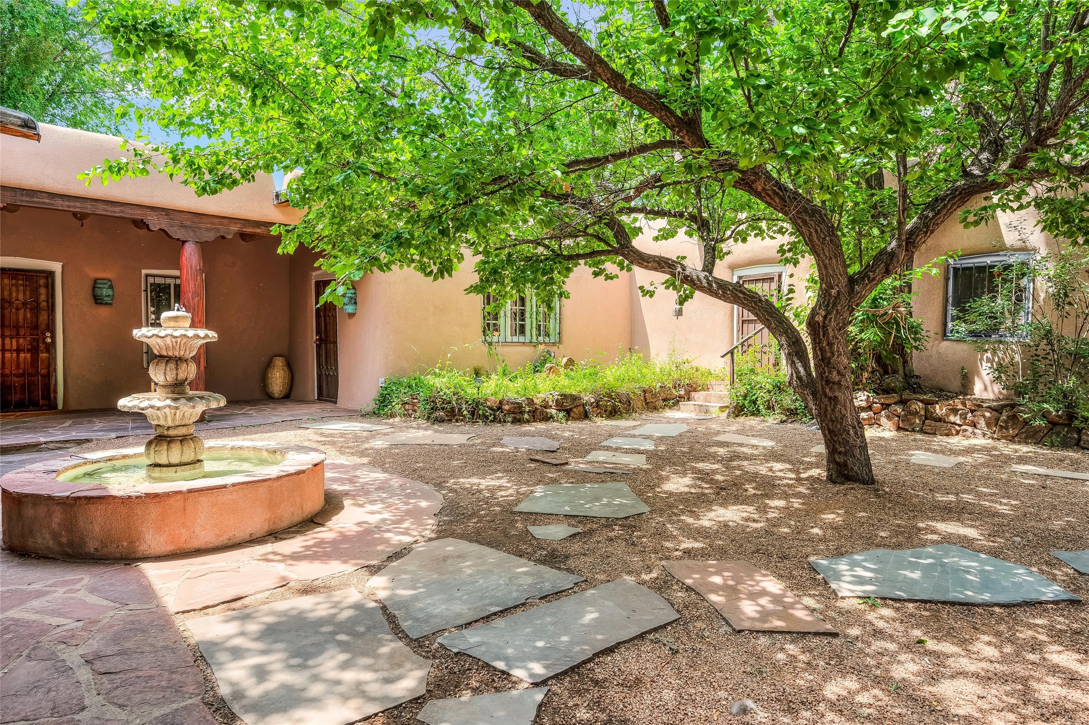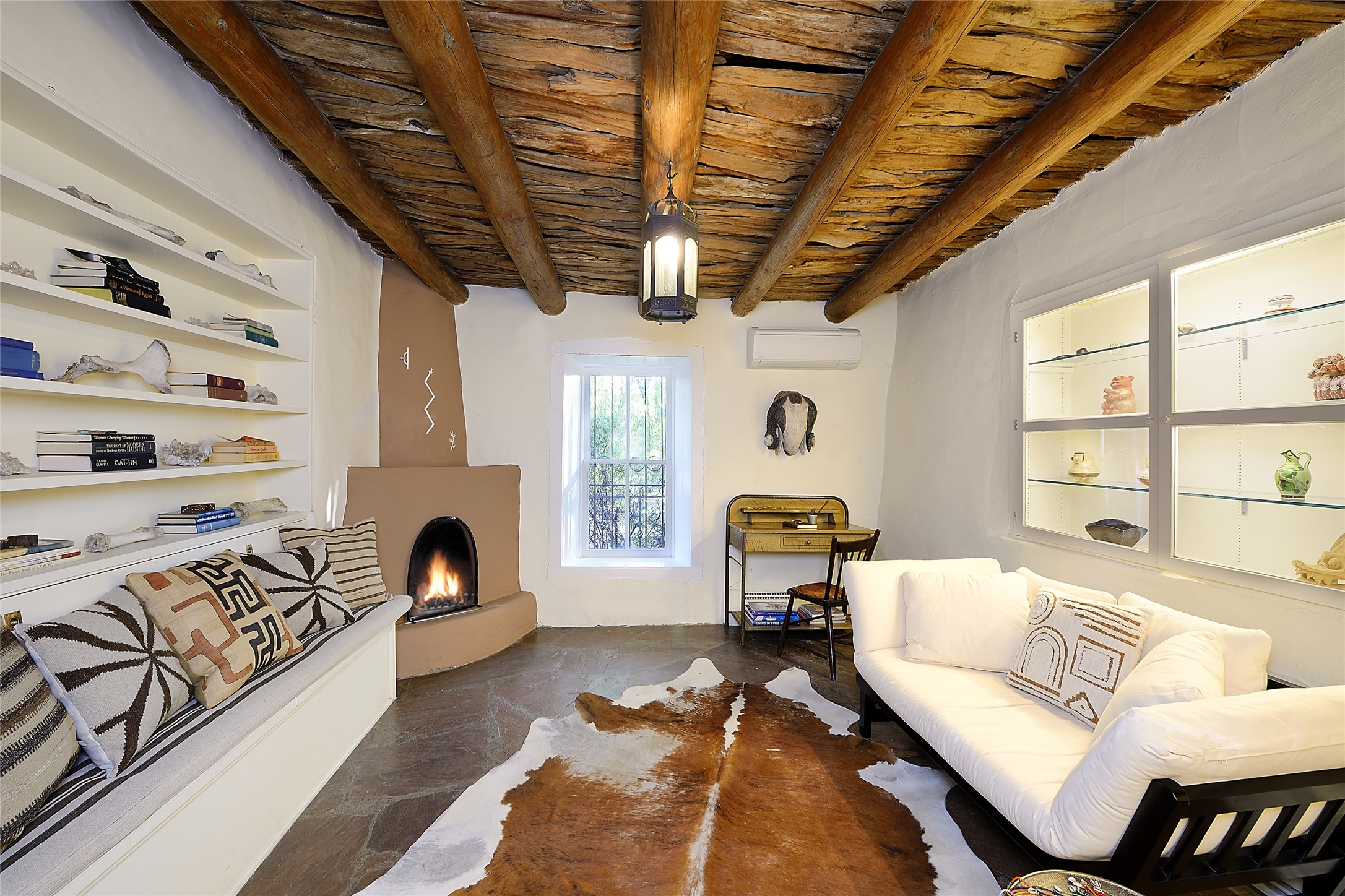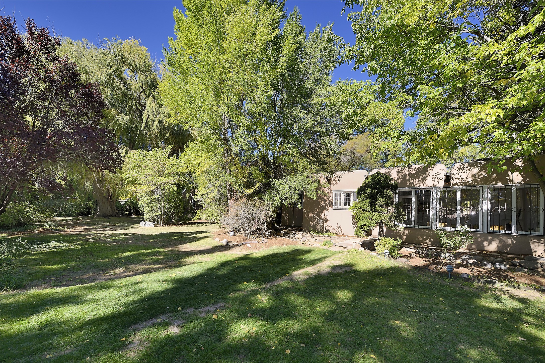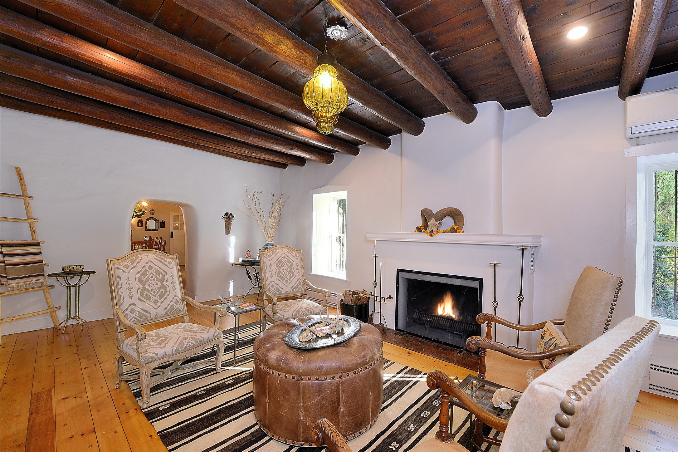 This historic estate is a one-of-a-kind New Mexico classic. The entire property has been extensively and lovingly updated with careful attention paid to conserving all the beauty, features and charm that has made it so enchanting since it was built. This over 4,300 square foot triple adobe estate sits behind a private gated entrance and is situated amongst over fifty 200+ year old cottonwoods, weeping willows, colorful gardens and meadows. The property sits on 3 lush acres in the Santa Cruz River Valley with pristine views of the Sangra de Cristo mountains. The property is conveniently located just 25 minutes north of Santa Fe.Full of amenities, the estate offers four large bedrooms, 5 1/2 bathrooms, 7 fireplaces, library, sunroom, bar, swimming pool, hot-tub, private creek, veranda and a nearly 2,000 sf courtyard. The courtyard offers easy access to all wings of the main building and is centered by a water feature and sheltered by an old apricot tree. One of the bedrooms is detached from the home and offers another layer of seclusion and escape. This room is fitted with a sitting area, kiva fireplace, soaking bathtub, and spacious shower.The estate has multiple possibilities as an excellent home, retreat, or possibly a Bed & Breakfast. The adjacent chapel building also has many potential uses.