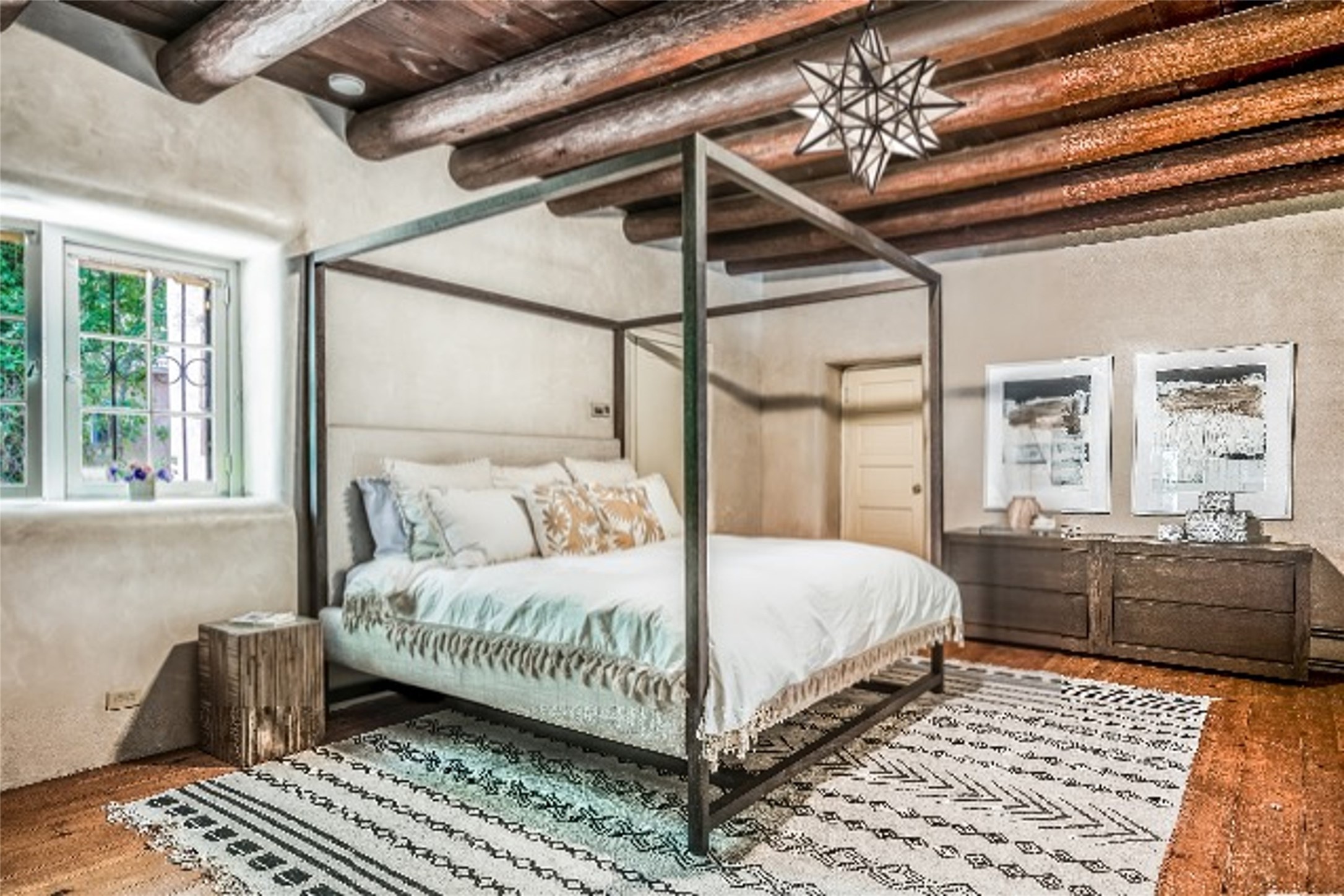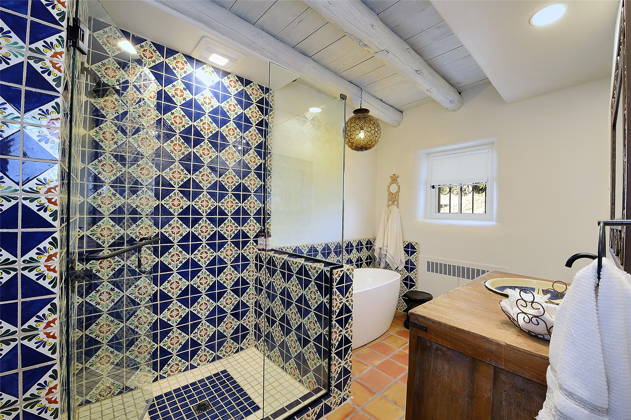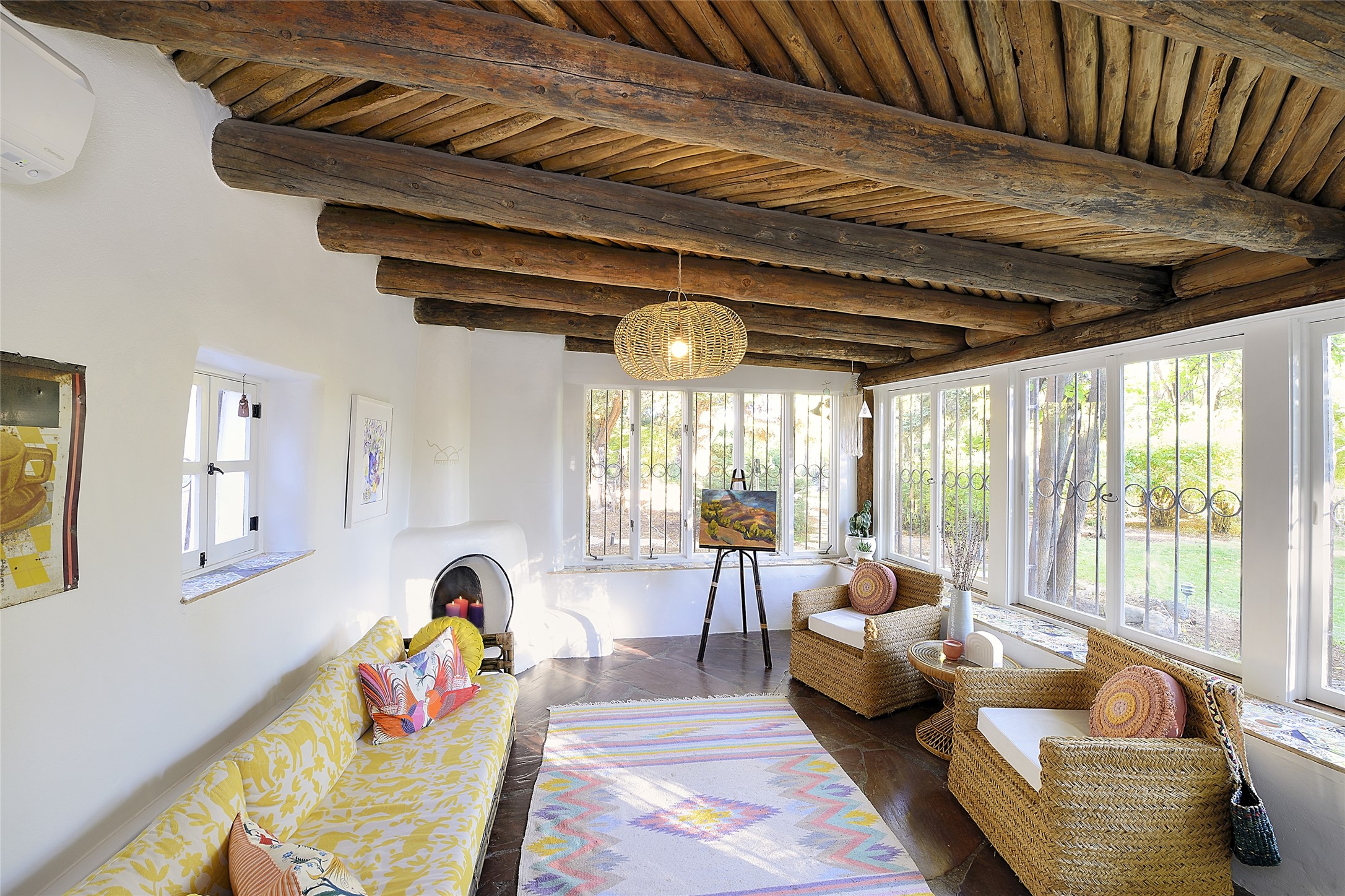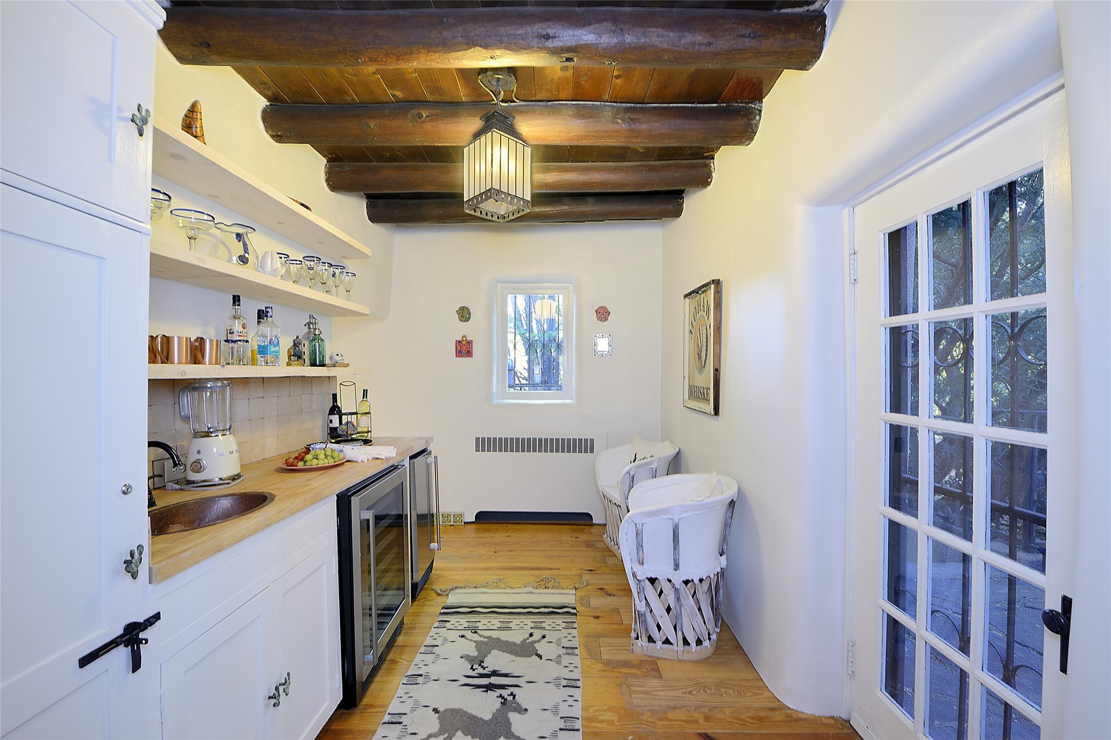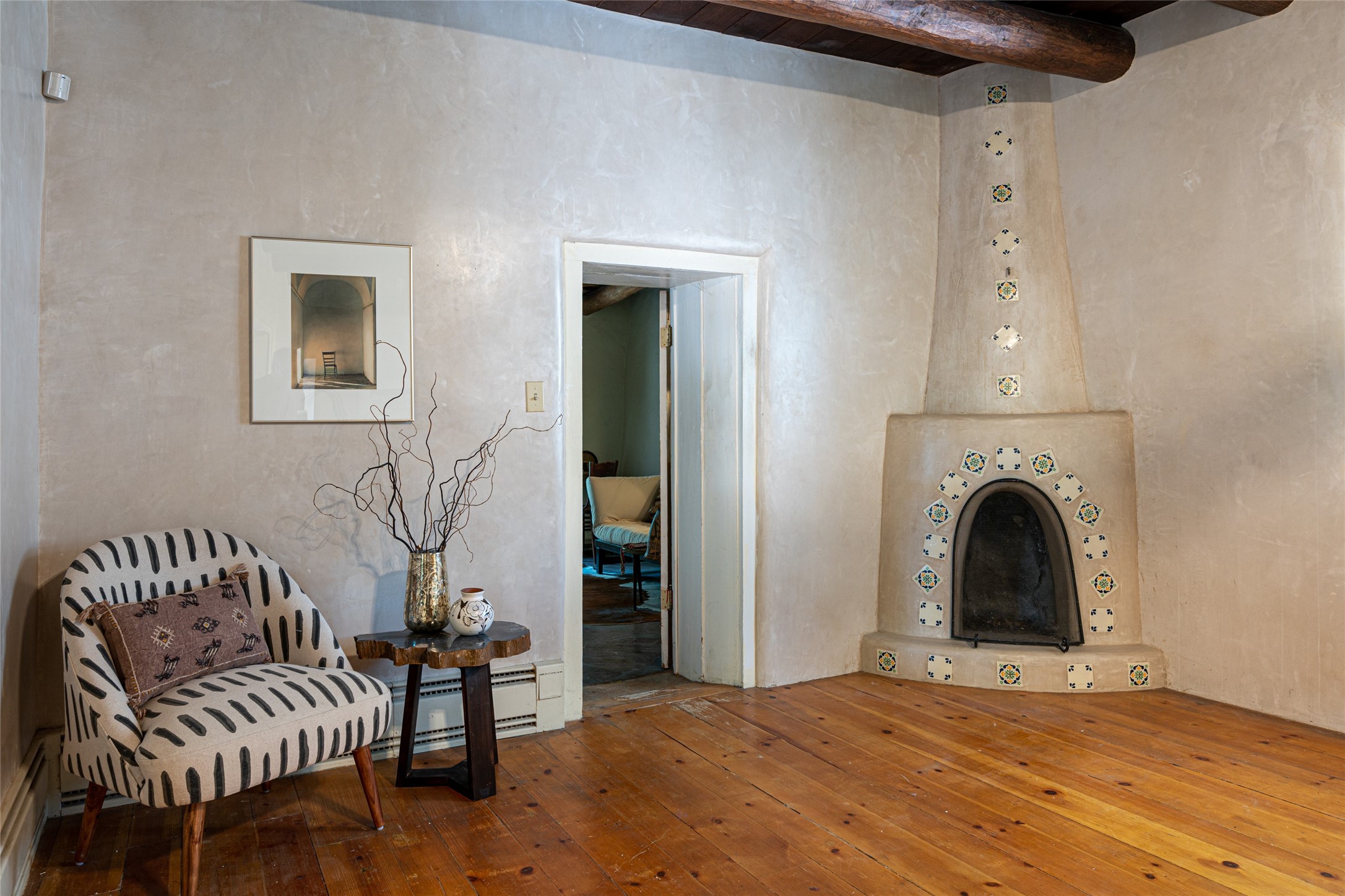 This historic estate is a one-of-a-kind New Mexico classic. The entire property has been extensively and lovingly updated with careful attention paid to conserving all the beauty, features and charm that has made it so enchanting since it was built. This over 4,300 square foot triple adobe estate sits behind a private gated entrance and is situated amongst over fifty 200+ year old cottonwoods, weeping willows, colorful gardens and meadows. The property sits on 3 lush acres in the Santa Cruz River Valley with pristine views of the Sangra de Cristo mountains. The property is conveniently located just 25 minutes north of Santa Fe.Full of amenities, the estate offers four large bedrooms, 5 1/2 bathrooms, 7 fireplaces, library, sunroom, bar, swimming pool, hot-tub, private creek, veranda and a nearly 2,000 sf courtyard. The courtyard offers easy access to all wings of the main building and is centered by a water feature and sheltered by an old apricot tree. One of the bedrooms is detached from the home and offers another layer of seclusion and escape. This room is fitted with a sitting area, kiva fireplace, soaking bathtub, and spacious shower.The estate has multiple possibilities as an excellent home, retreat, or possibly a Bed & Breakfast. The adjacent chapel building also has many potential uses.
