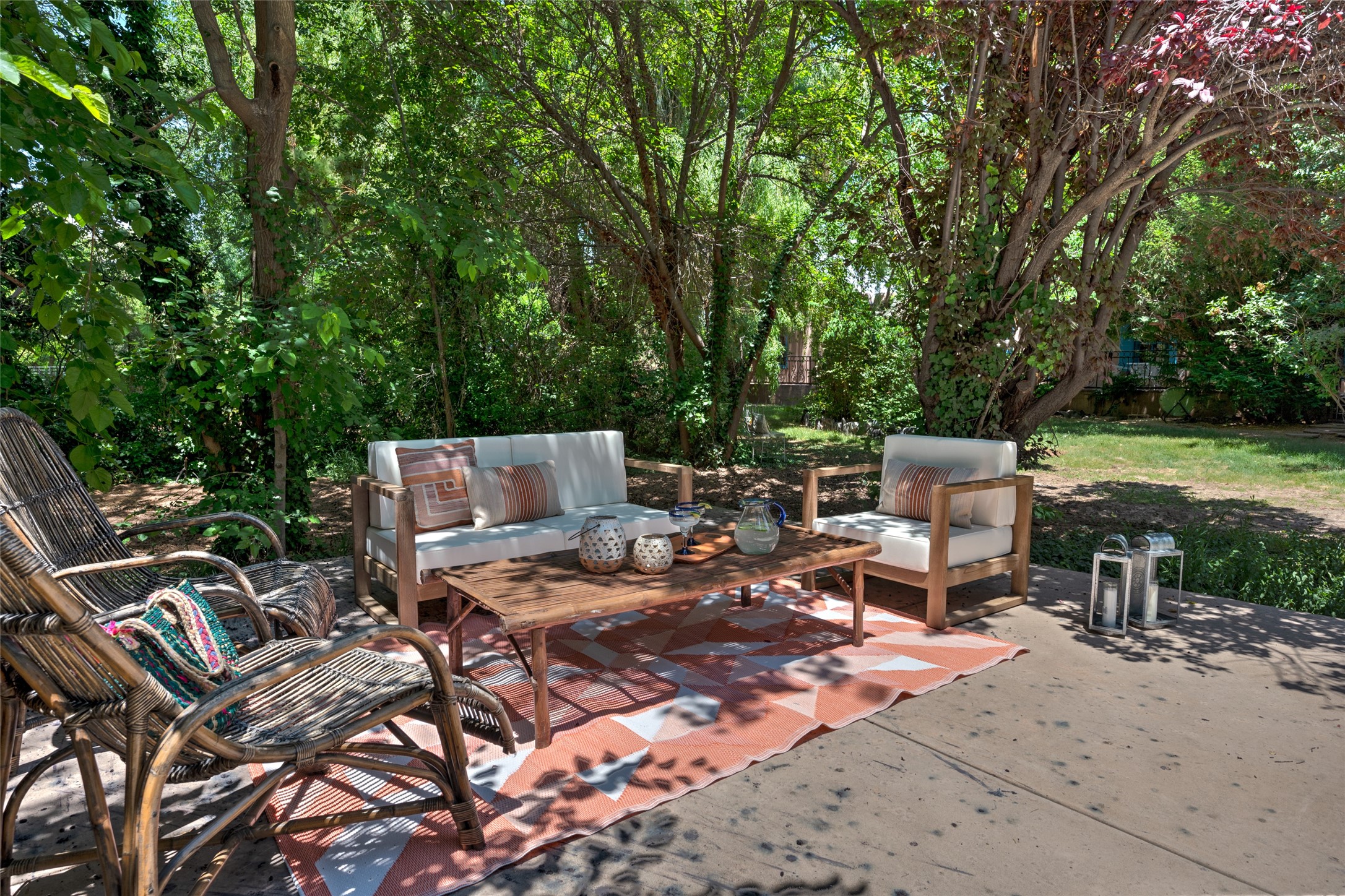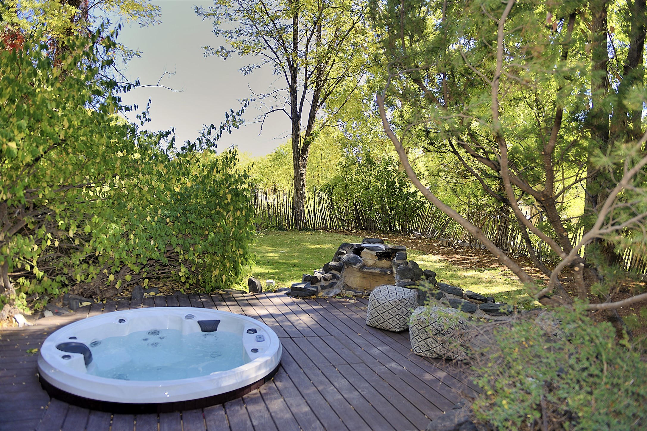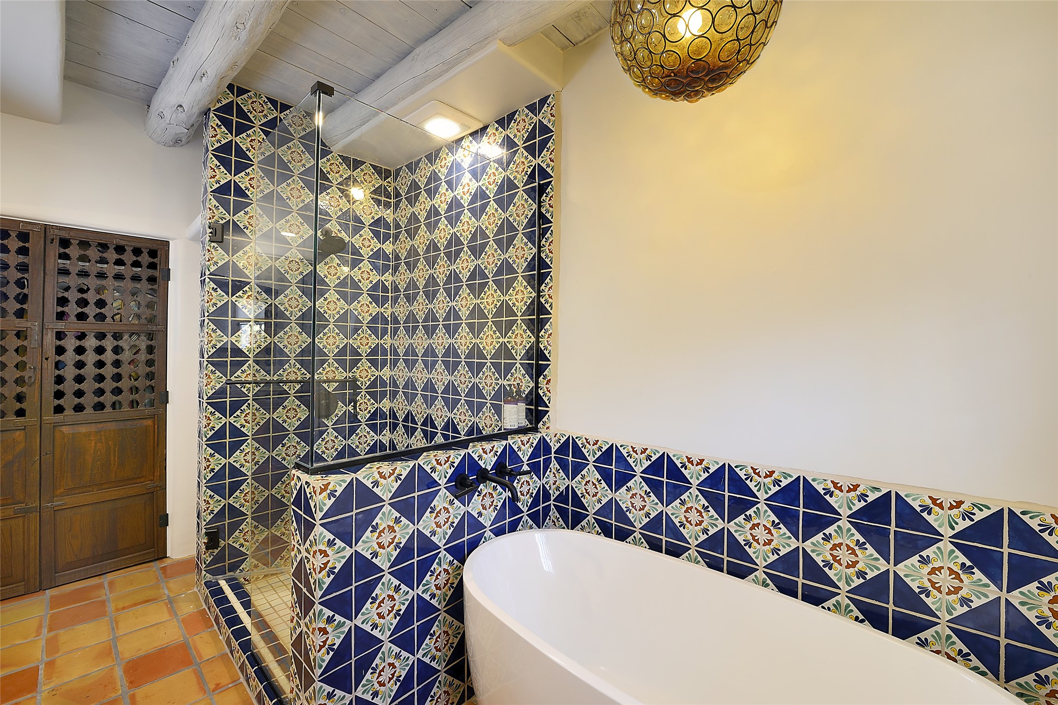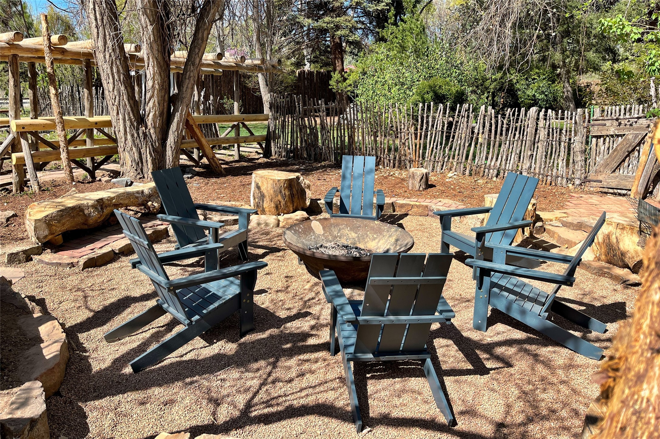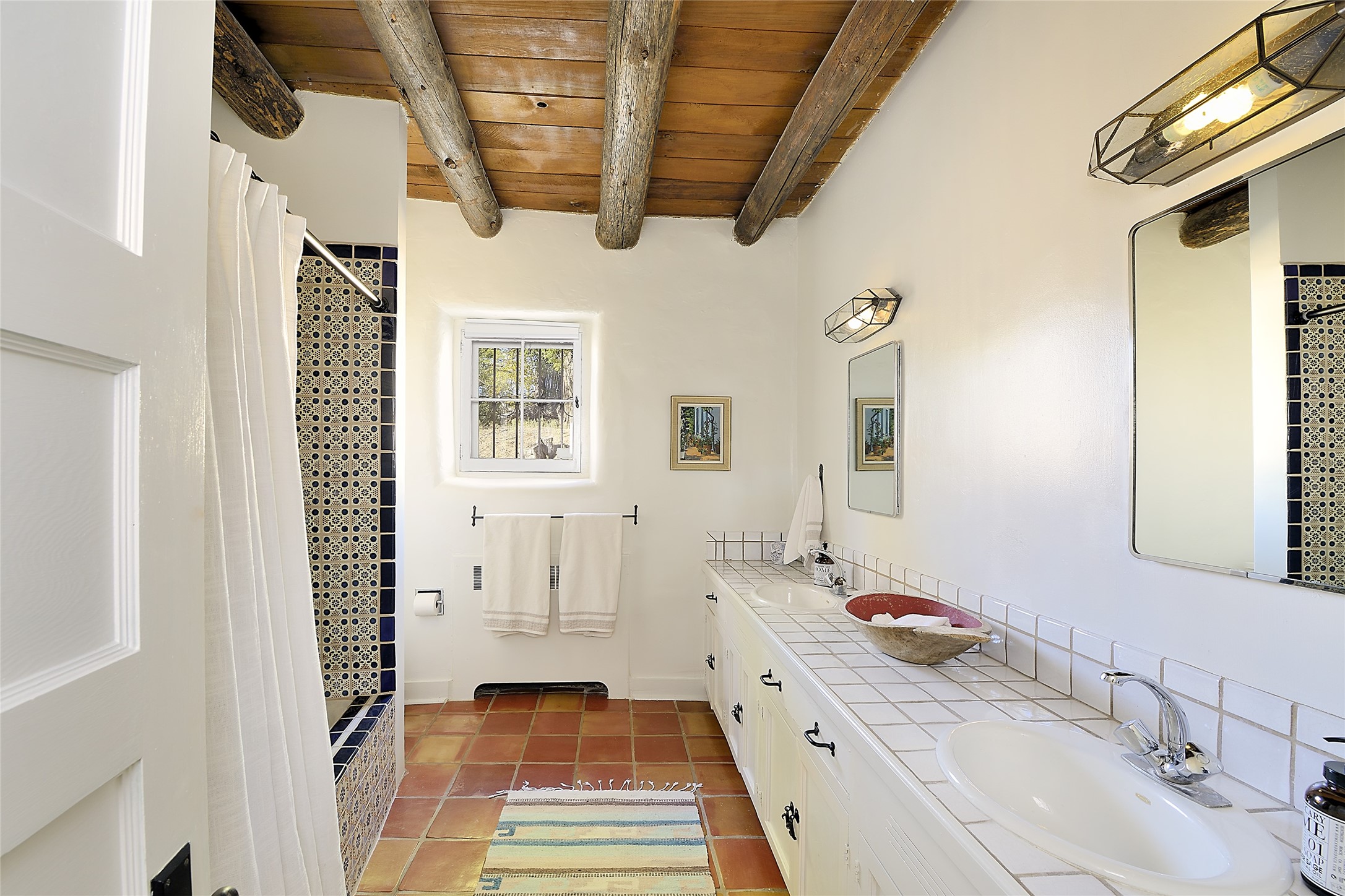 This historic estate is a one-of-a-kind New Mexico classic. The entire property has been extensively and lovingly updated with careful attention paid to conserving all the beauty, features and charm that has made it so enchanting since it was built. This over 4,300 square foot triple adobe estate sits behind a private gated entrance and is situated amongst over fifty 200+ year old cottonwoods, weeping willows, colorful gardens and meadows. The property sits on 3 lush acres in the Santa Cruz River Valley with pristine views of the Sangra de Cristo mountains. The property is conveniently located just 25 minutes north of Santa Fe.Full of amenities, the estate offers four large bedrooms, 5 1/2 bathrooms, 7 fireplaces, library, sunroom, bar, swimming pool, hot-tub, private creek, veranda and a nearly 2,000 sf courtyard. The courtyard offers easy access to all wings of the main building and is centered by a water feature and sheltered by an old apricot tree. One of the bedrooms is detached from the home and offers another layer of seclusion and escape. This room is fitted with a sitting area, kiva fireplace, soaking bathtub, and spacious shower.The estate has multiple possibilities as an excellent home, retreat, or possibly a Bed & Breakfast. The adjacent chapel building also has many potential uses.